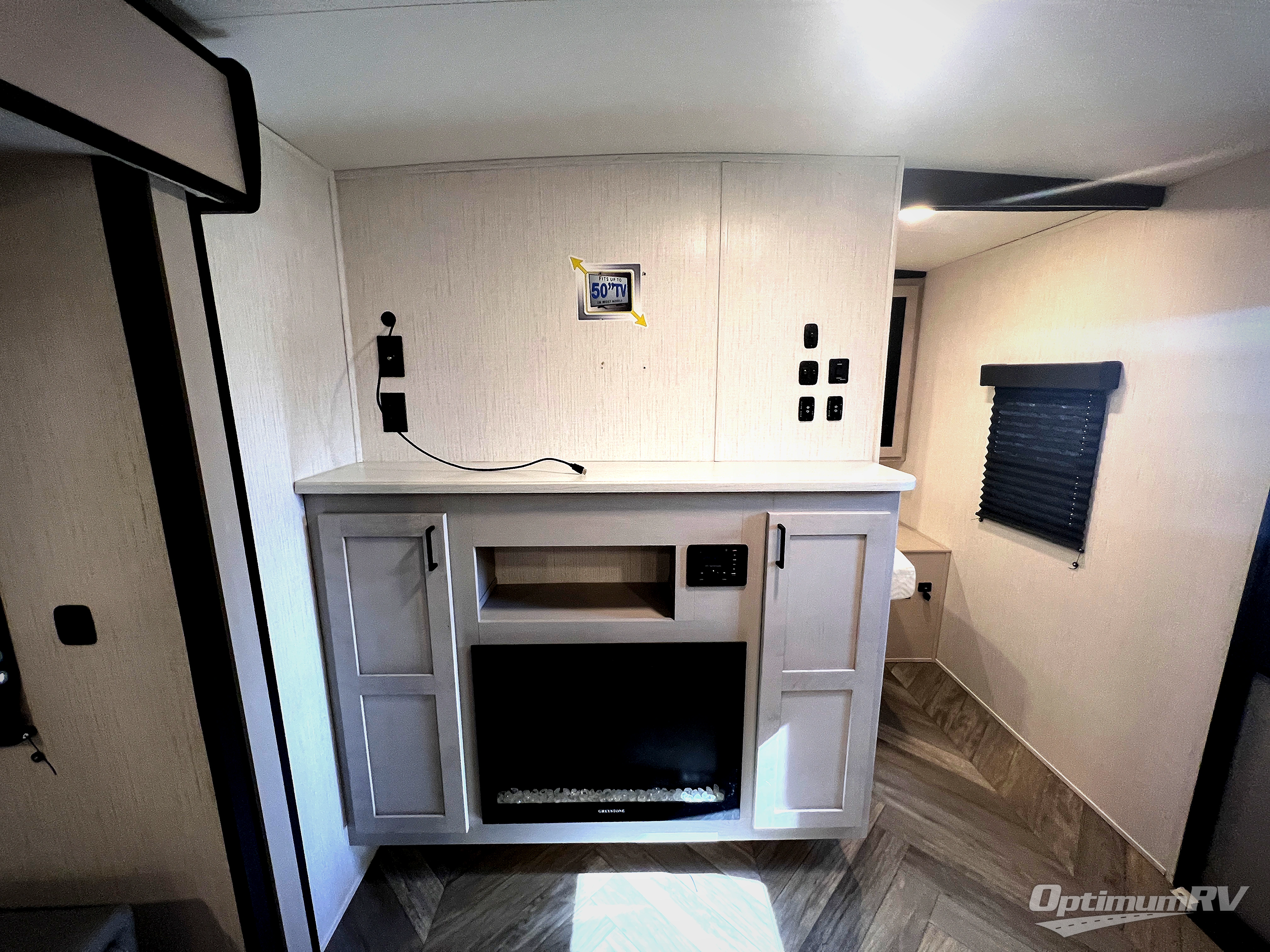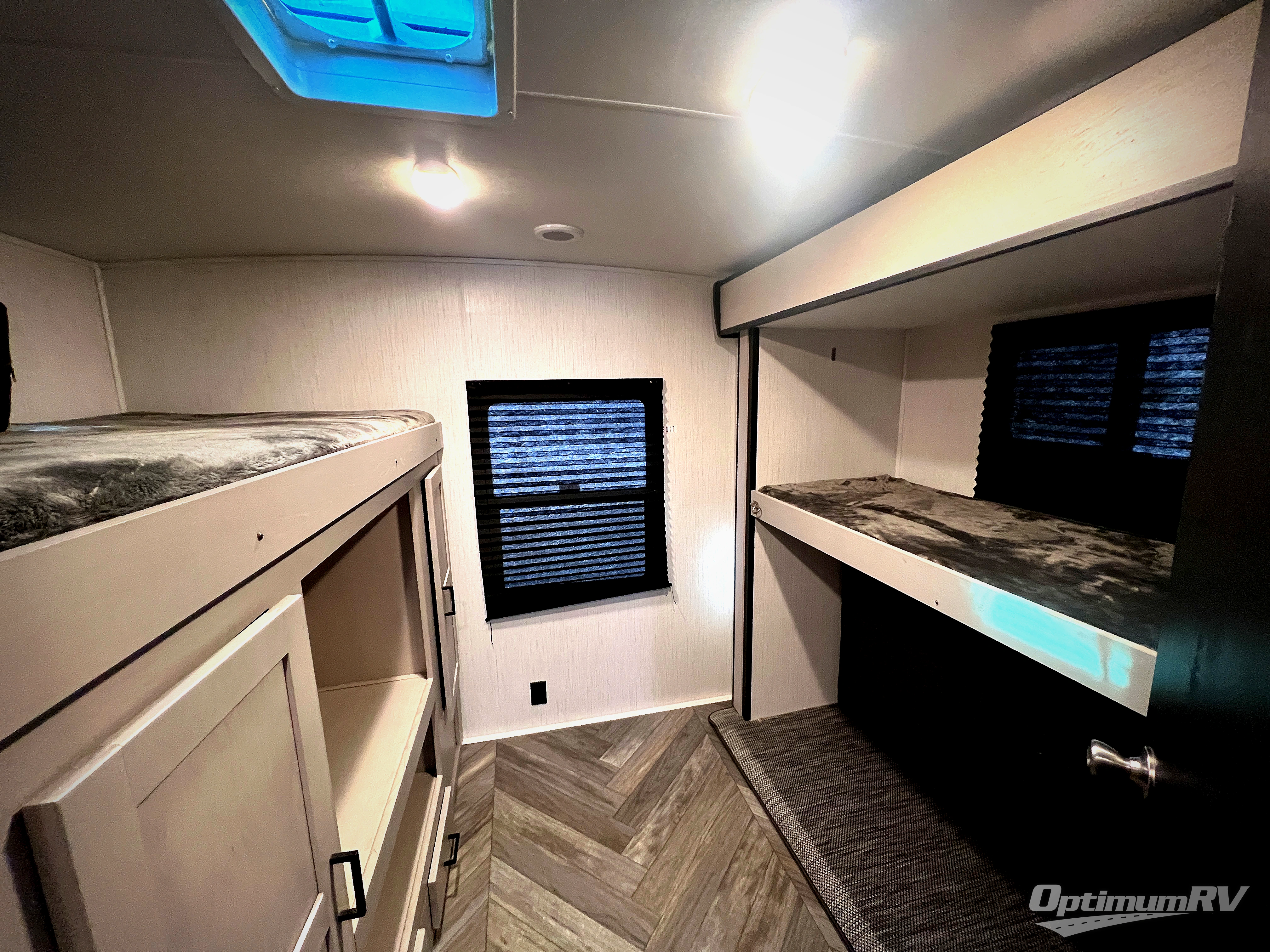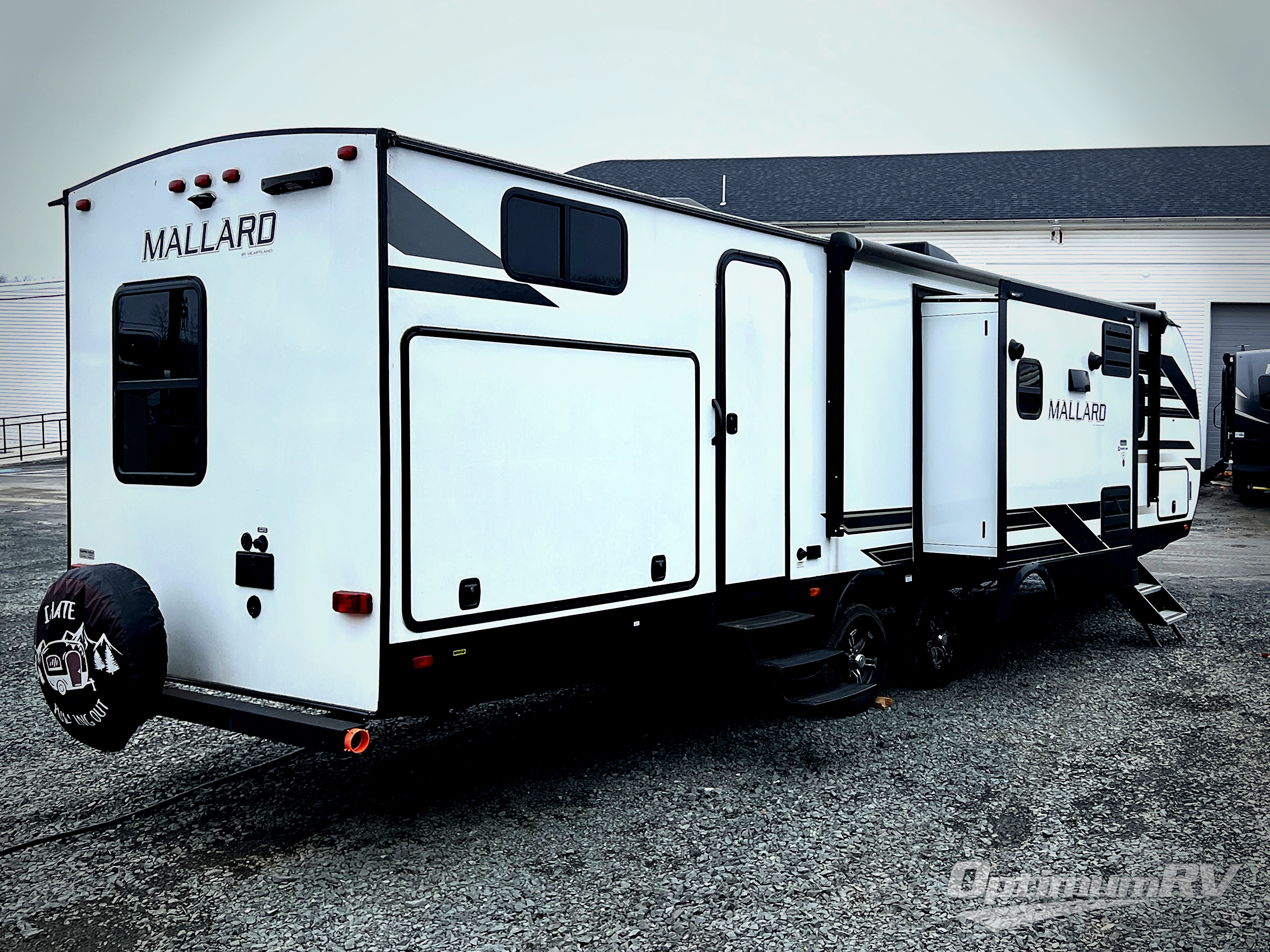 The rear private bunkhouse on this Mallard travel trailer provides triple bunk beds and a slide out offering more space to play indoors, and having dual entry in this trailer makes it easy to enter and exit to get back outside to make a meal on the outdoor kitchen or relax under the 18' power awning. Whipping up your favorite meals inside can be fun and easy with the complete kitchen including a center island which everyone will love. You will be able to retire to your own king bed with plenty of storage for your clothing and such, plus the exterior pass-through storage offers more space for the outdoor gear.