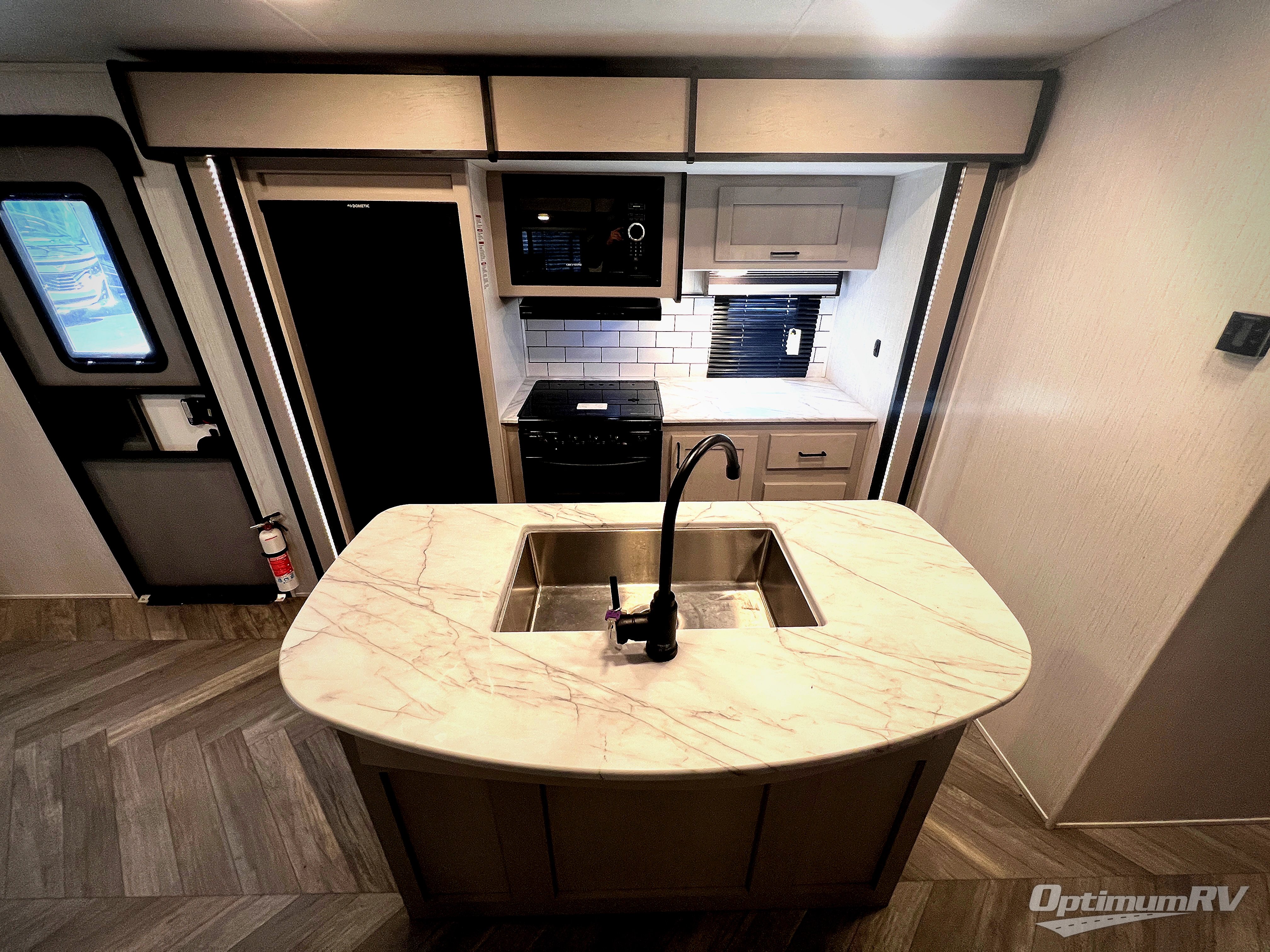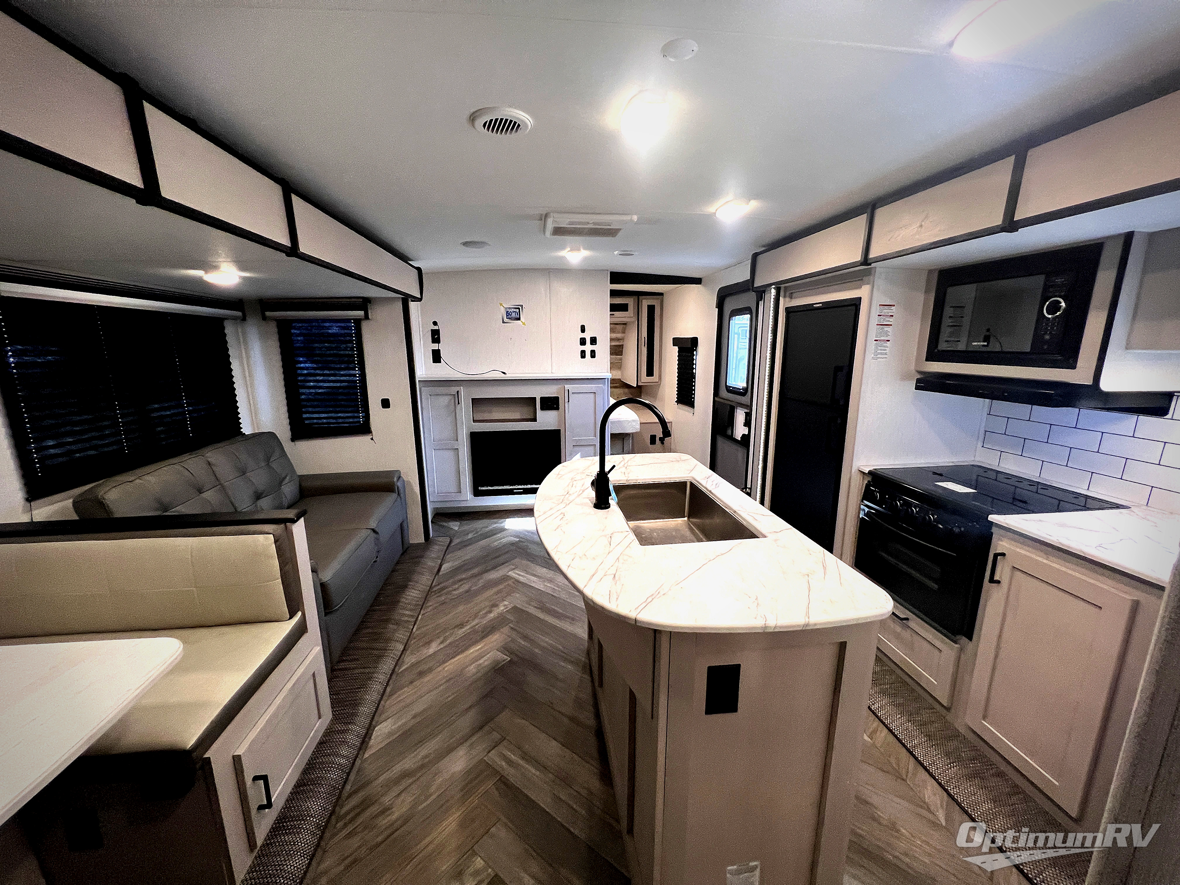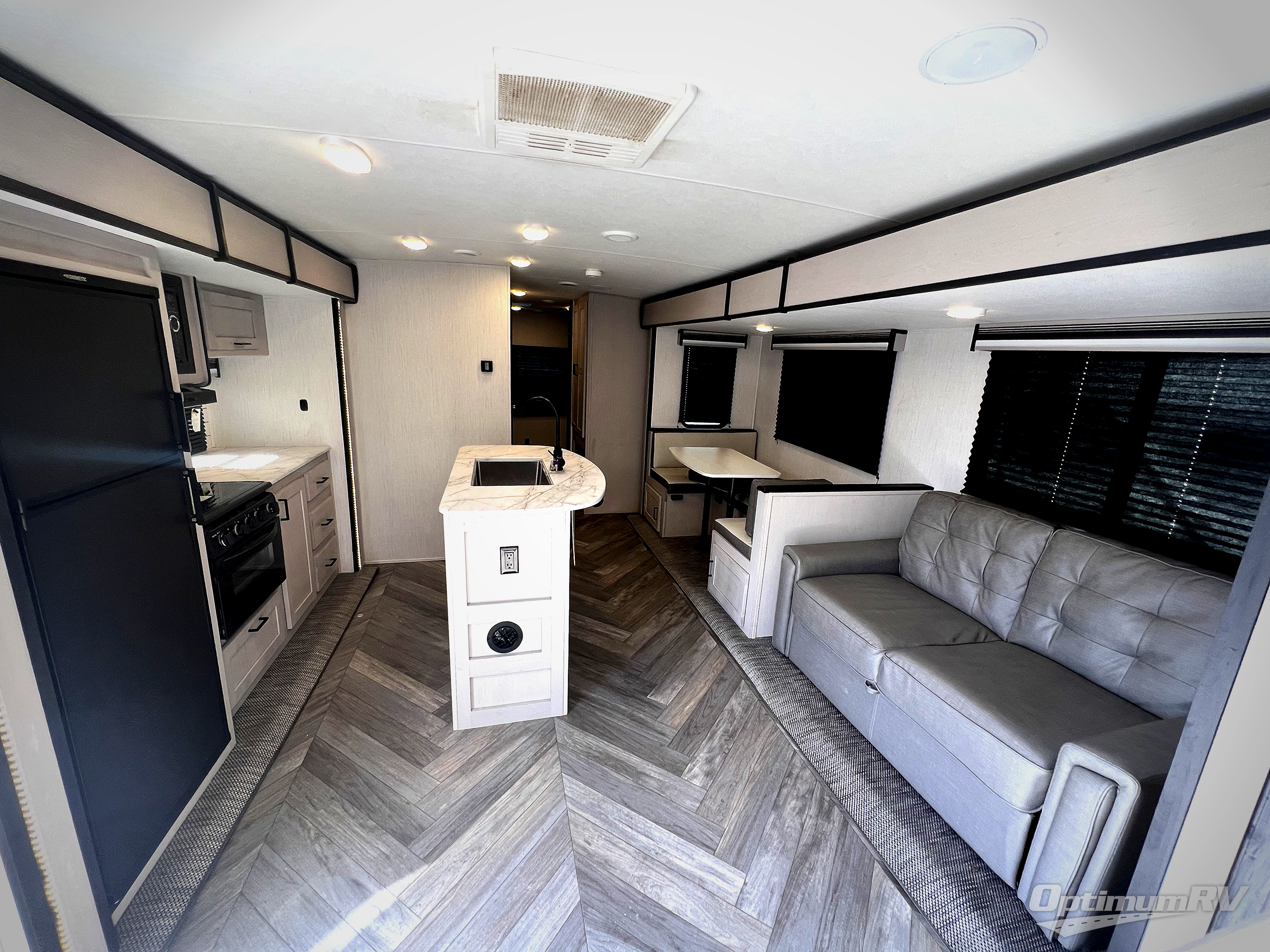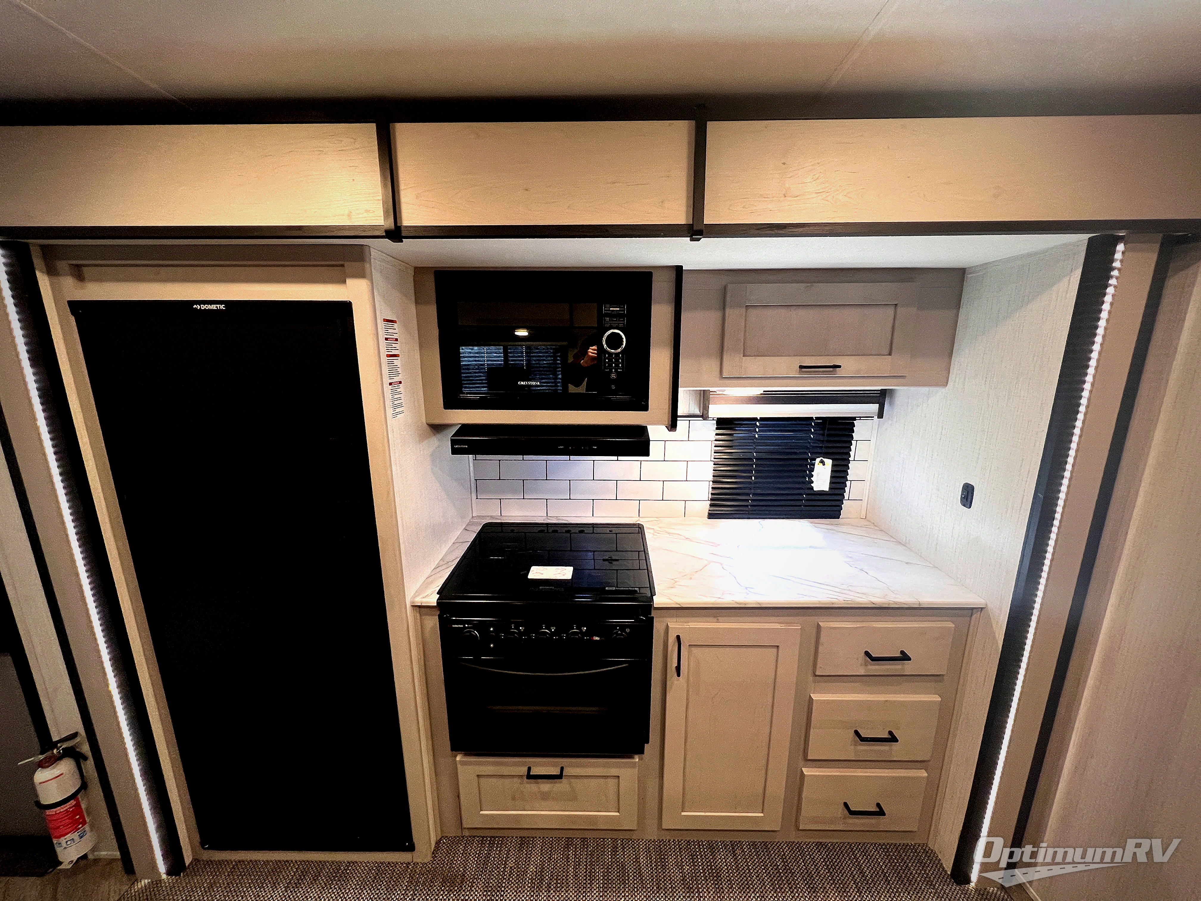 The rear private bunkhouse on this Mallard travel trailer provides triple bunk beds and a slide out offering more space to play indoors, and having dual entry in this trailer makes it easy to enter and exit to get back outside to make a meal on the outdoor kitchen or relax under the 18' power awning. Whipping up your favorite meals inside can be fun and easy with the complete kitchen including a center island which everyone will love. You will be able to retire to your own king bed with plenty of storage for your clothing and such, plus the exterior pass-through storage offers more space for the outdoor gear.