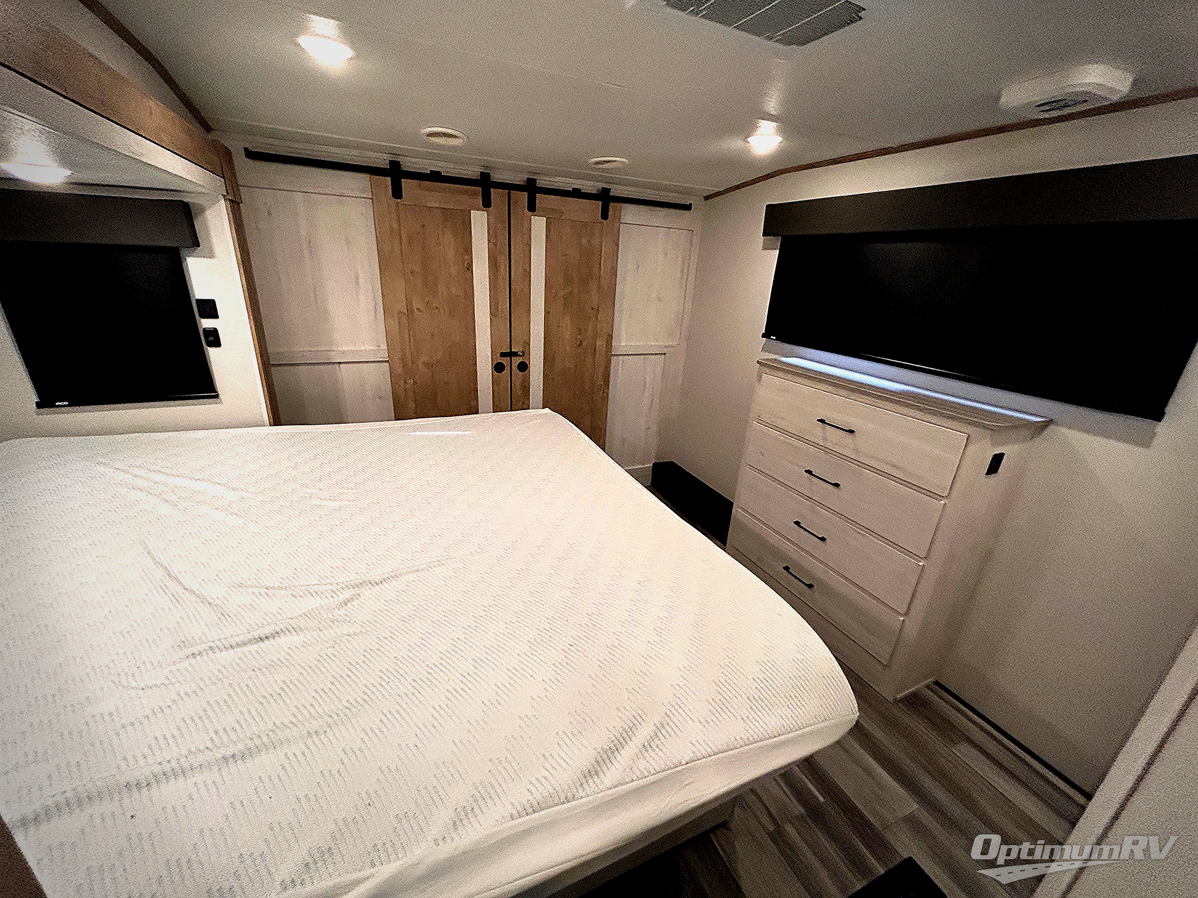 Live with no regrets in this Milestone fifth wheel! You will have a private bedroom all to yourself, and the rest of your group can occupy the rear bunkhouse suite which offers its own full bathroom, a set of bunk beds on a slide out, a loft with a ladder, and another slide out with a flip-up bunk above a dinette. The main living area has a large slide that holds the sofa, refrigerator, and pantry, and you can easily watch the Smart TV from the comfort of the sofa. The front bedroom contains a full-size wardrobe that has space prepped for a washer/dryer, so you'll have plenty of room for your clothes.