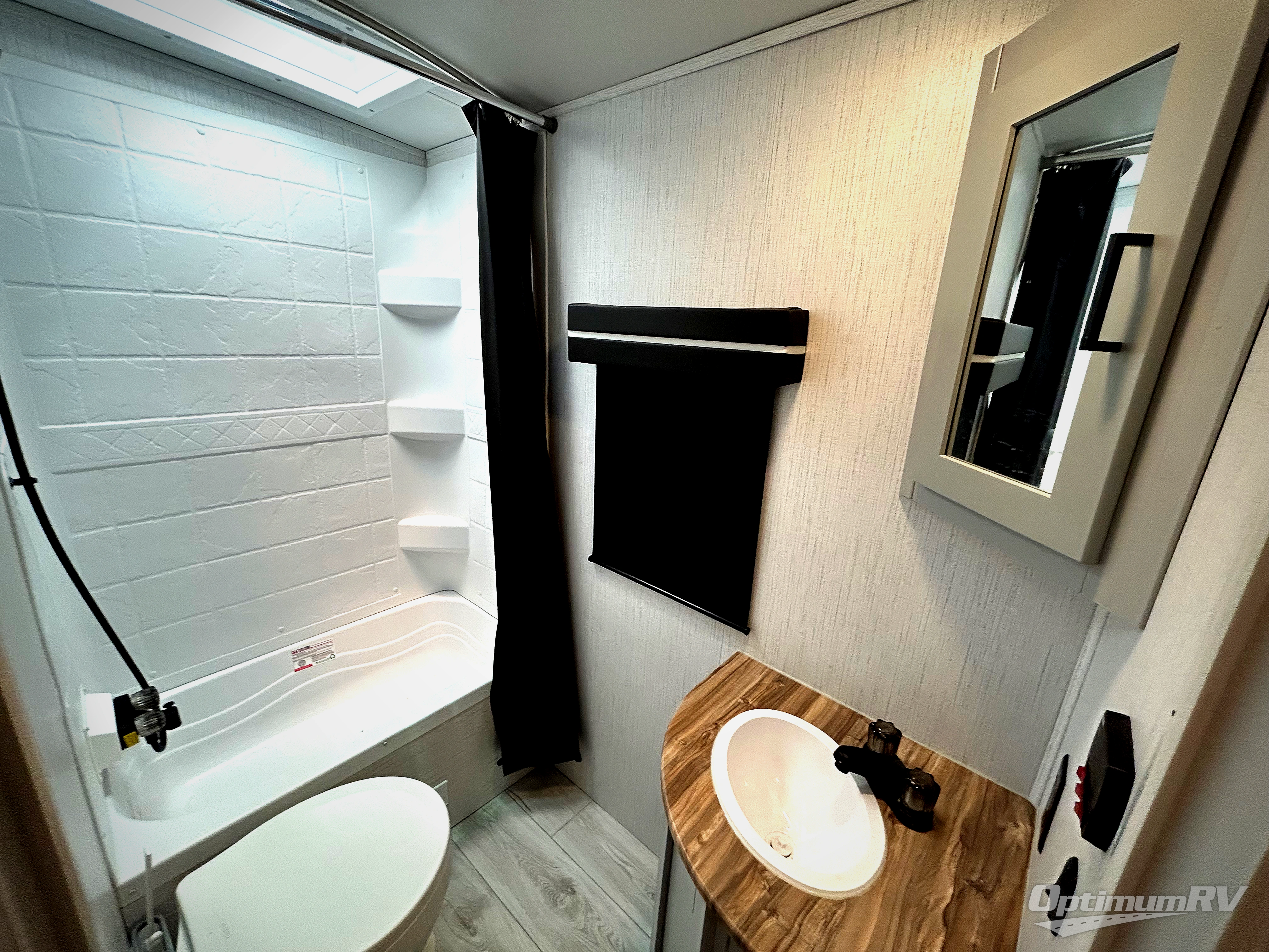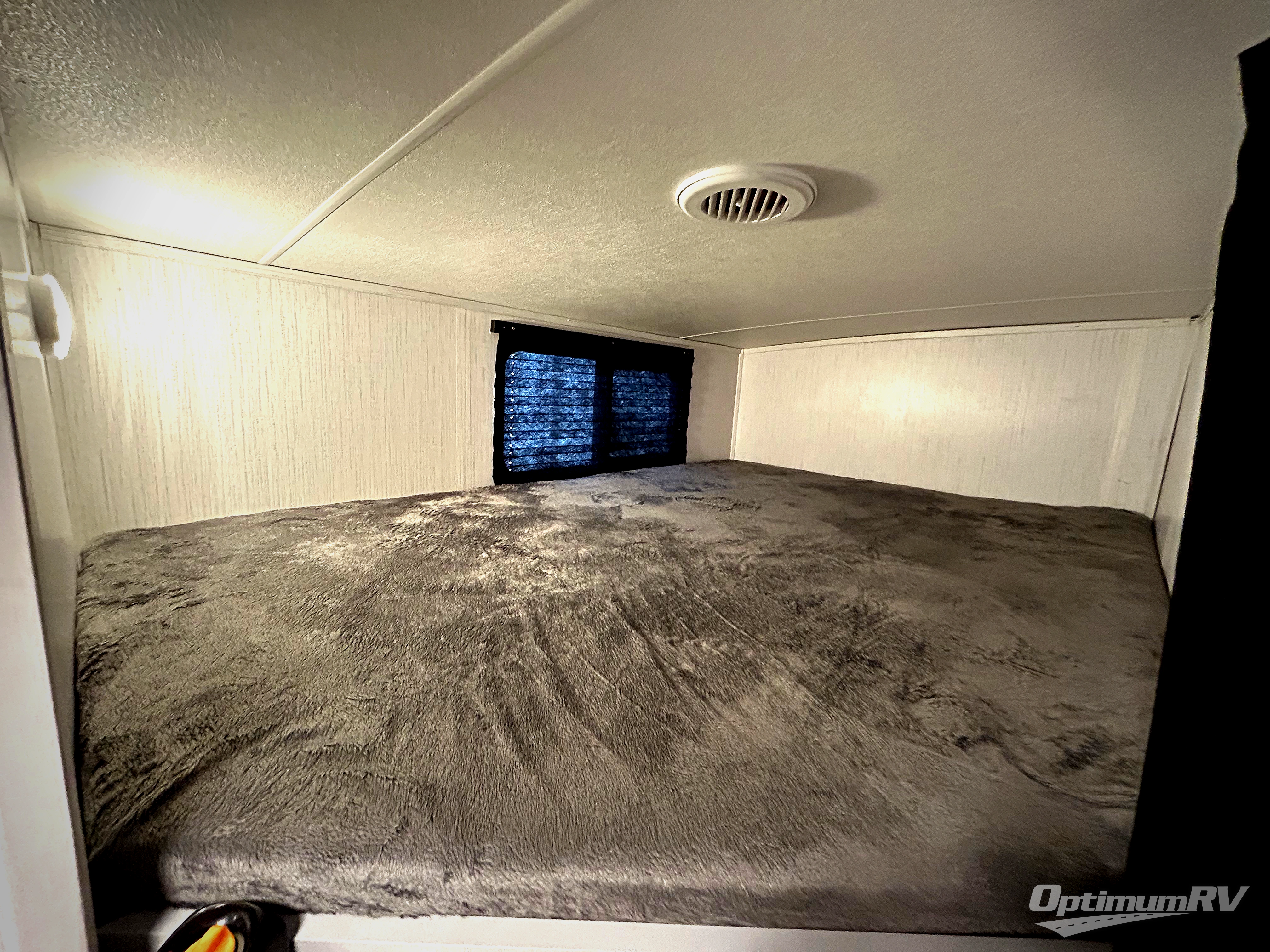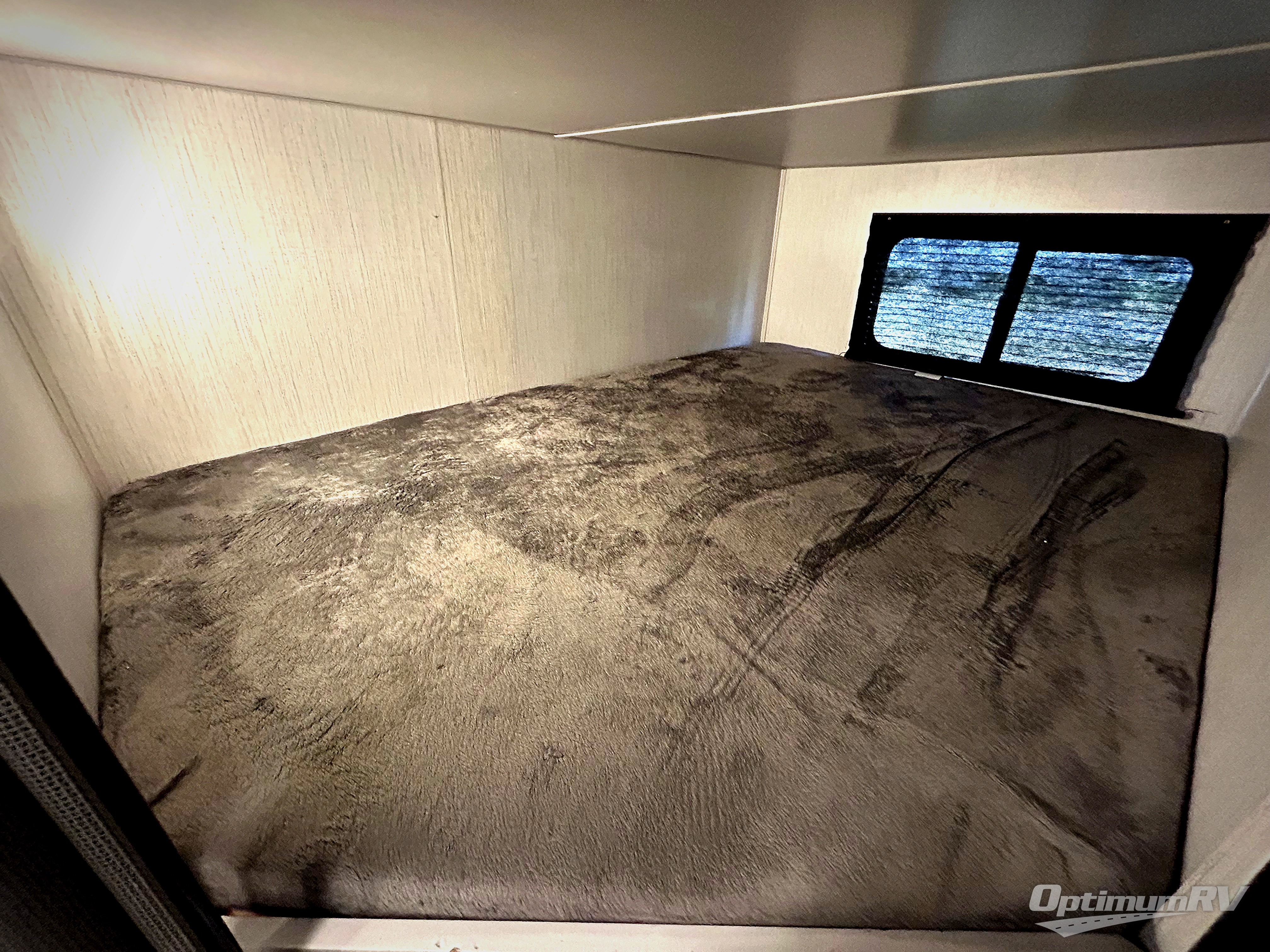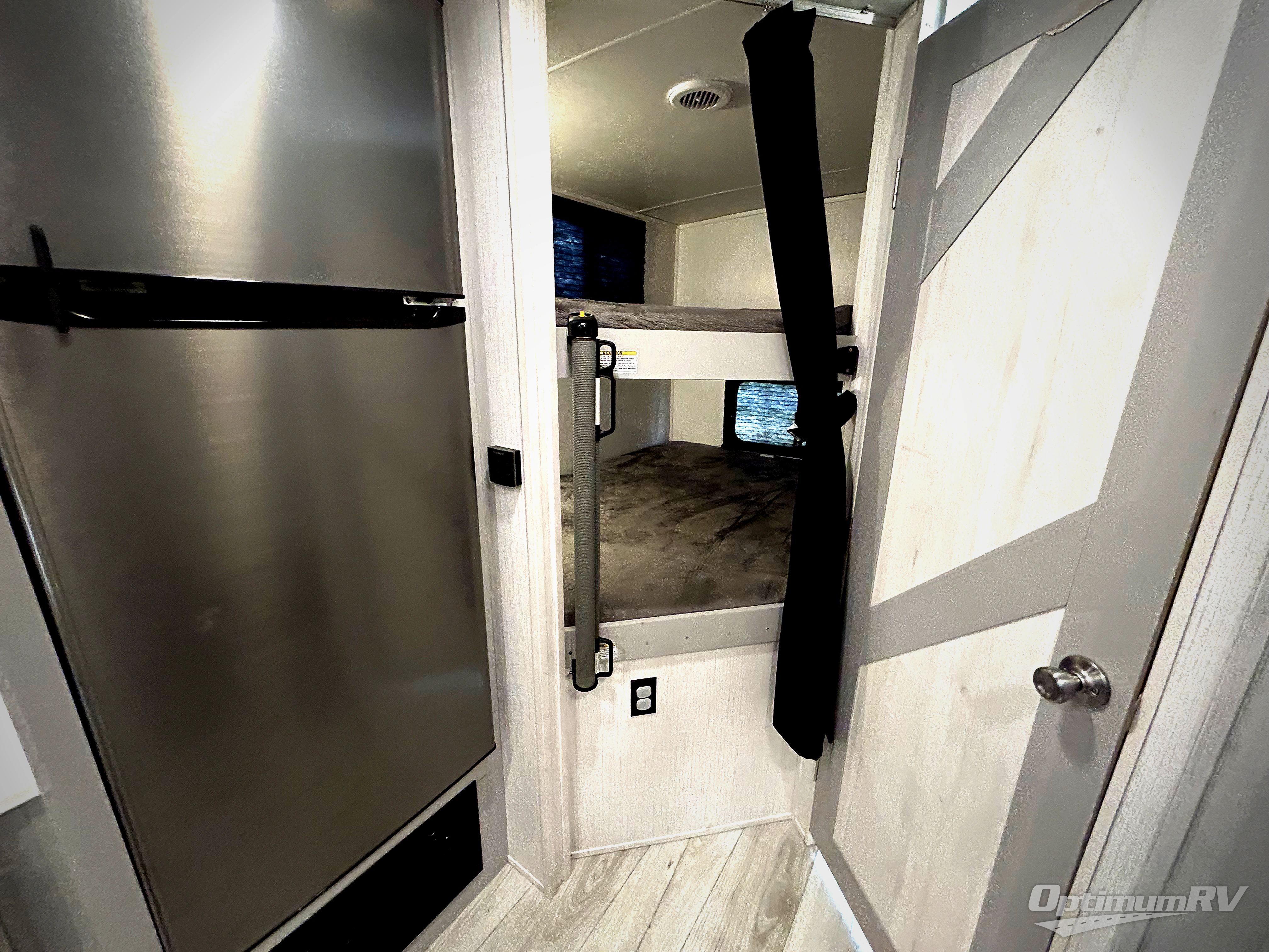 Double-size bunks make this travel trailer family and friends approved! The slide out will provide more space to stretch out in the main living area, and the full bath will come in handy when cleaning up each day. This model includes a front private bedroom with a king bed, plus dual nightstands for your belongings. Everyone can gather under the 19' power awning with LED lights while the chef of the group prepares dinner on the exterior kitchen!