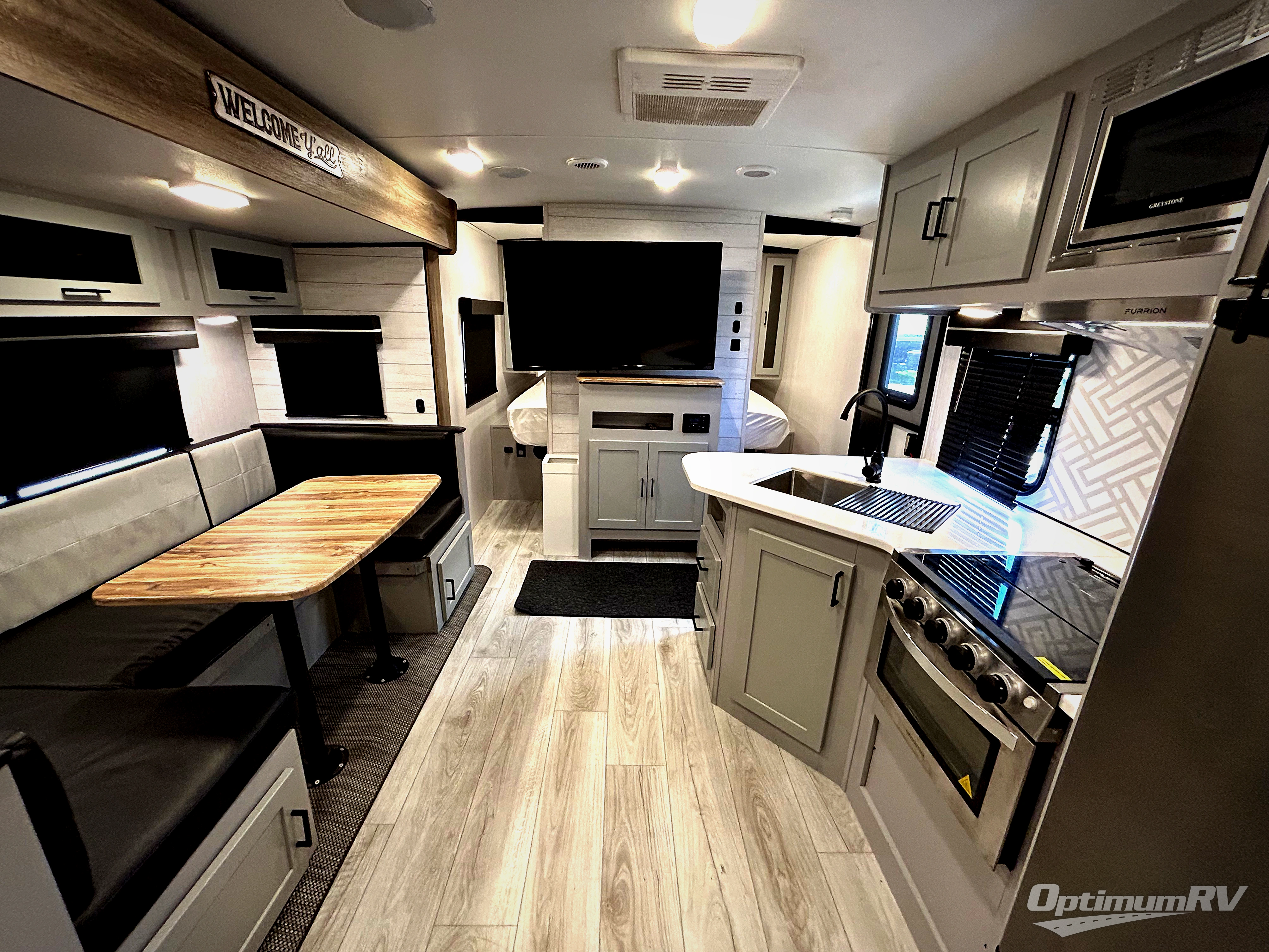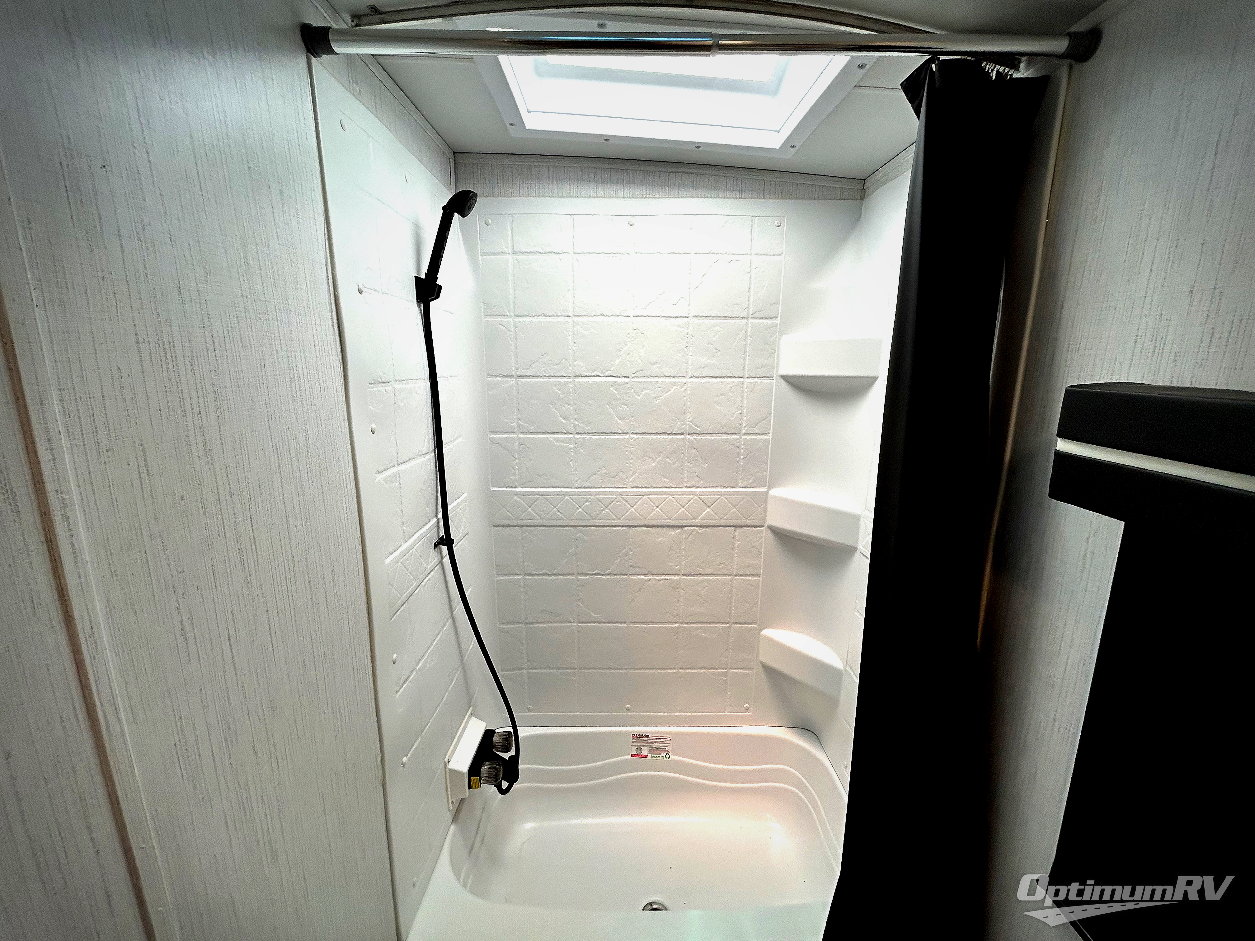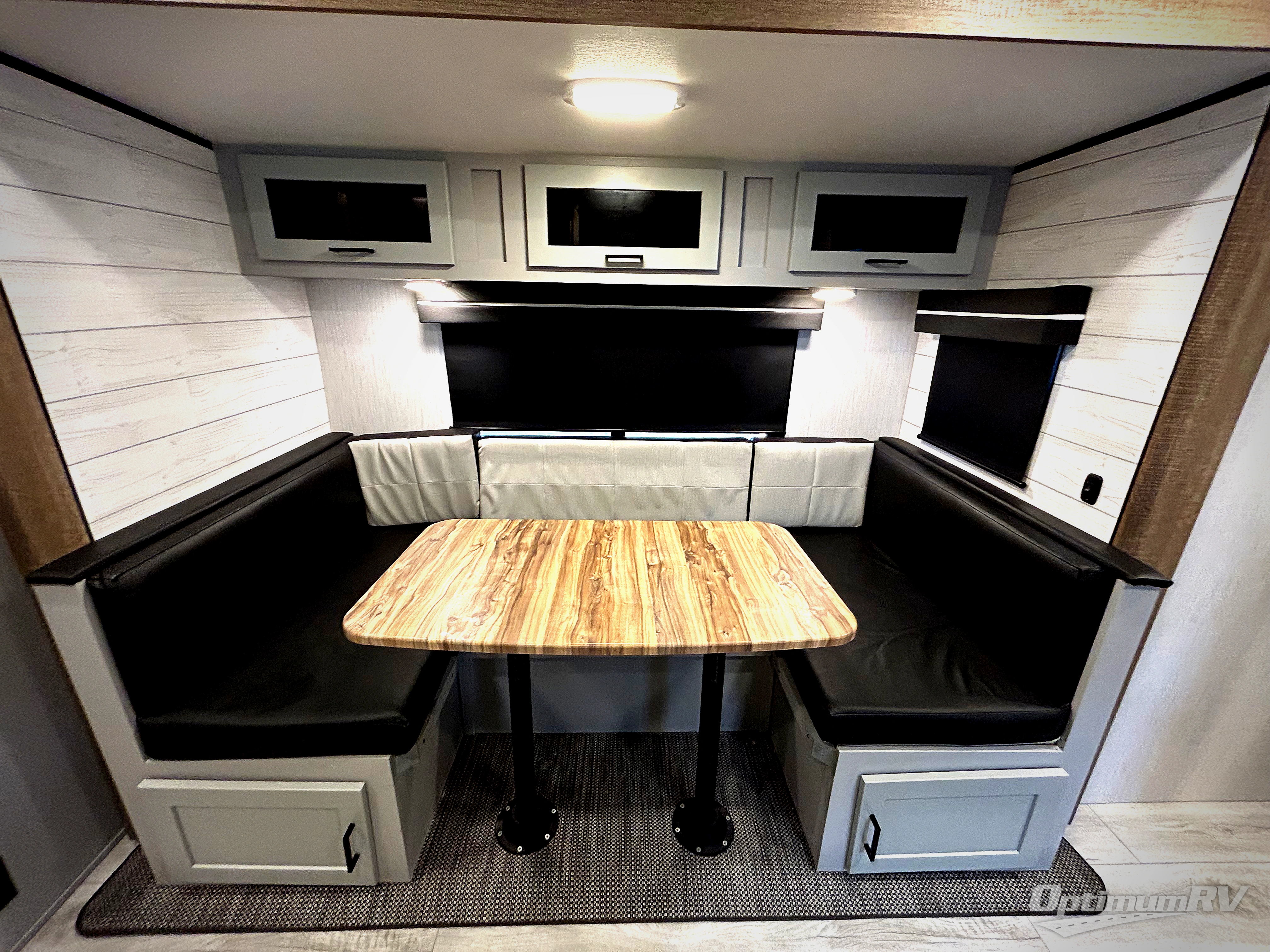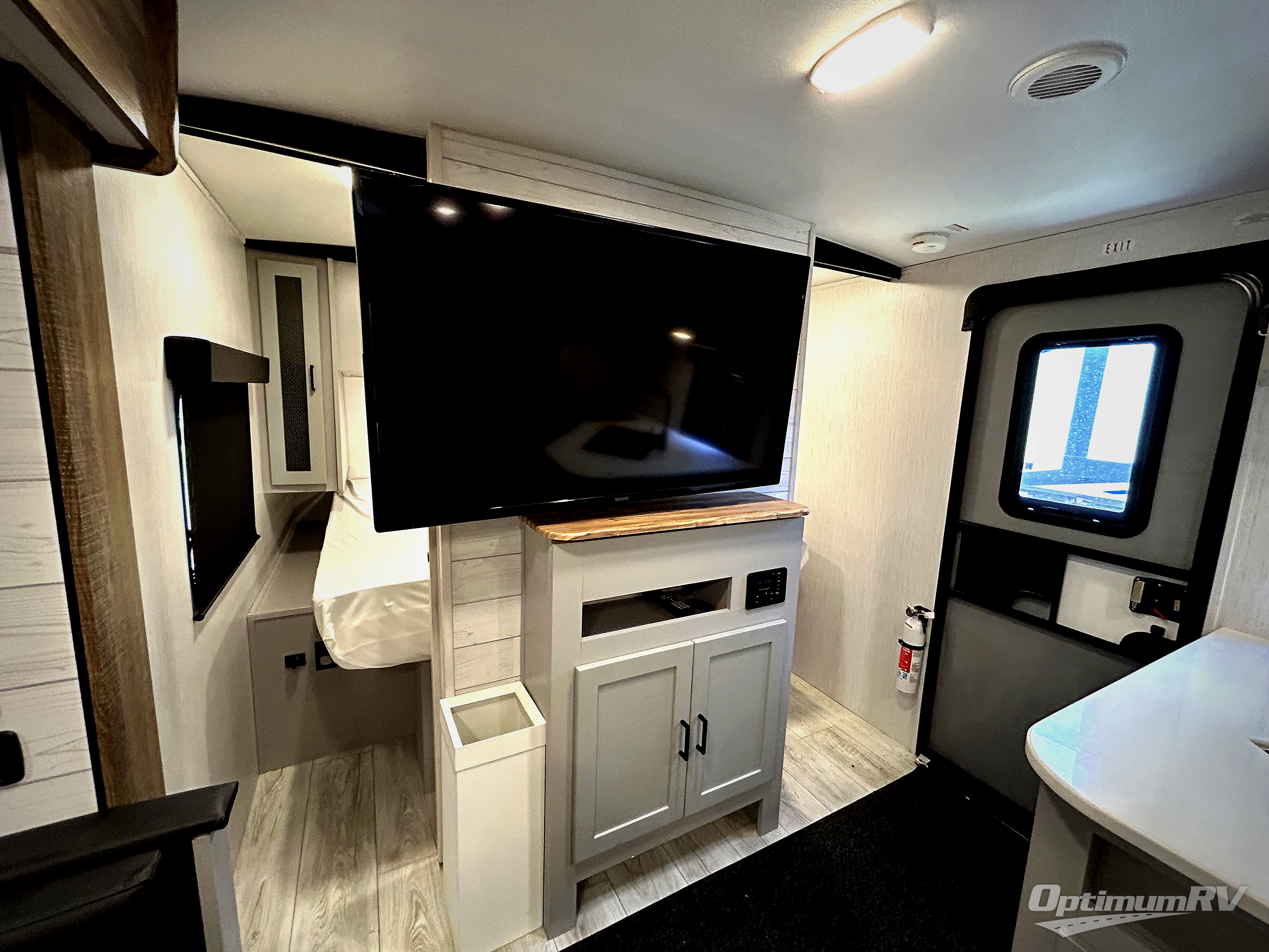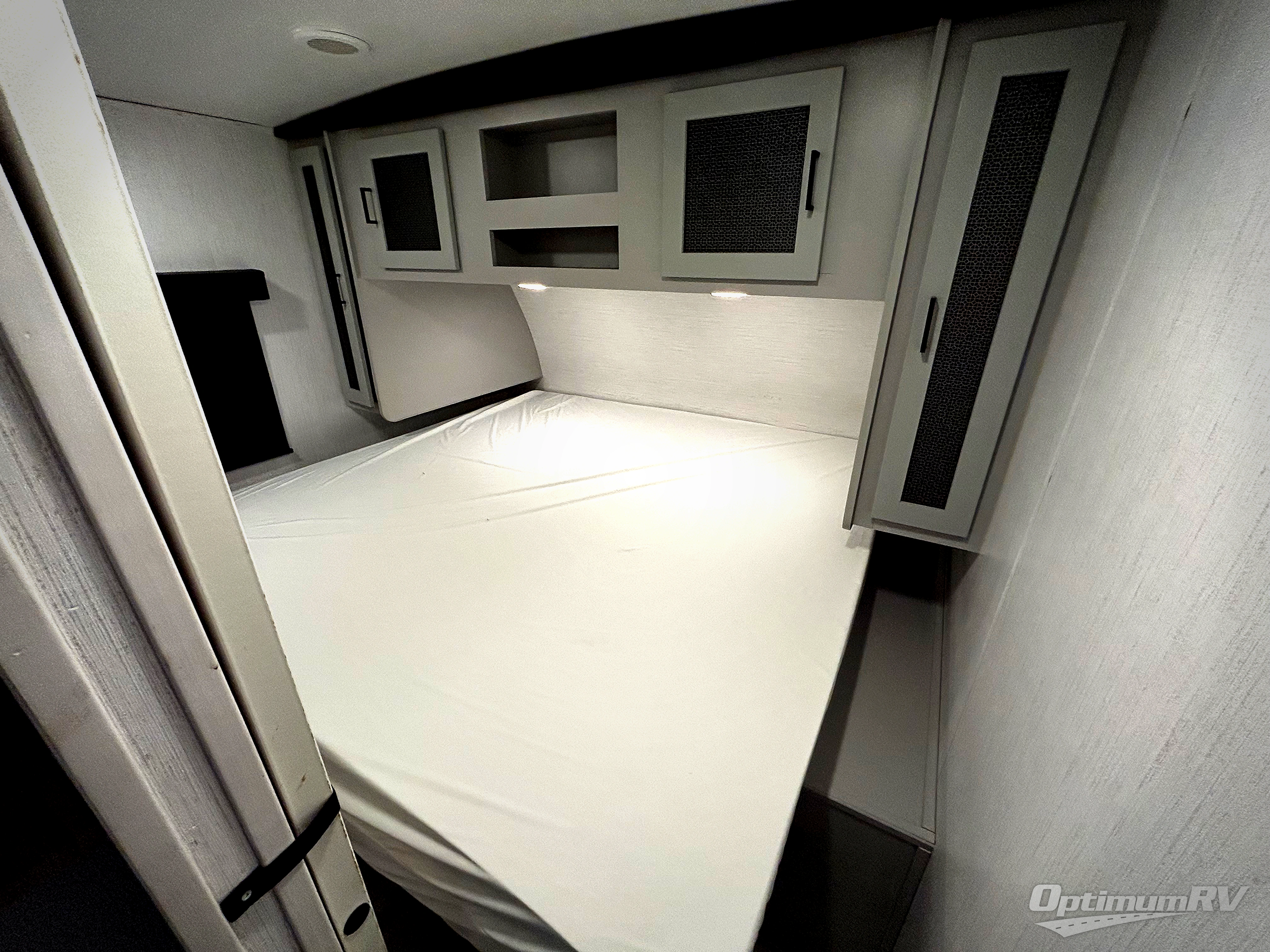 Double-size bunks make this travel trailer family and friends approved! The slide out will provide more space to stretch out in the main living area, and the full bath will come in handy when cleaning up each day. This model includes a front private bedroom with a king bed, plus dual nightstands for your belongings. Everyone can gather under the 19' power awning with LED lights while the chef of the group prepares dinner on the exterior kitchen!