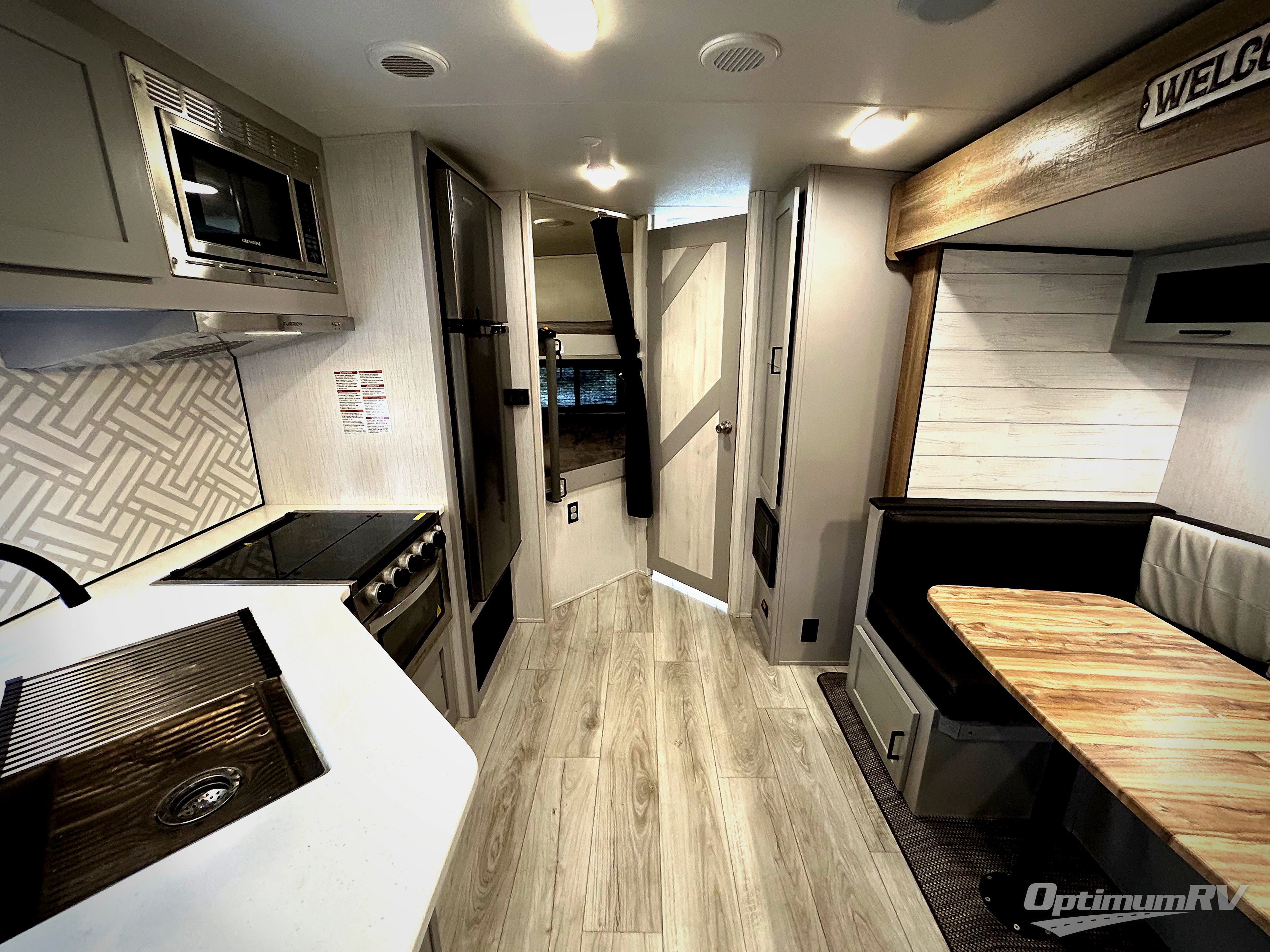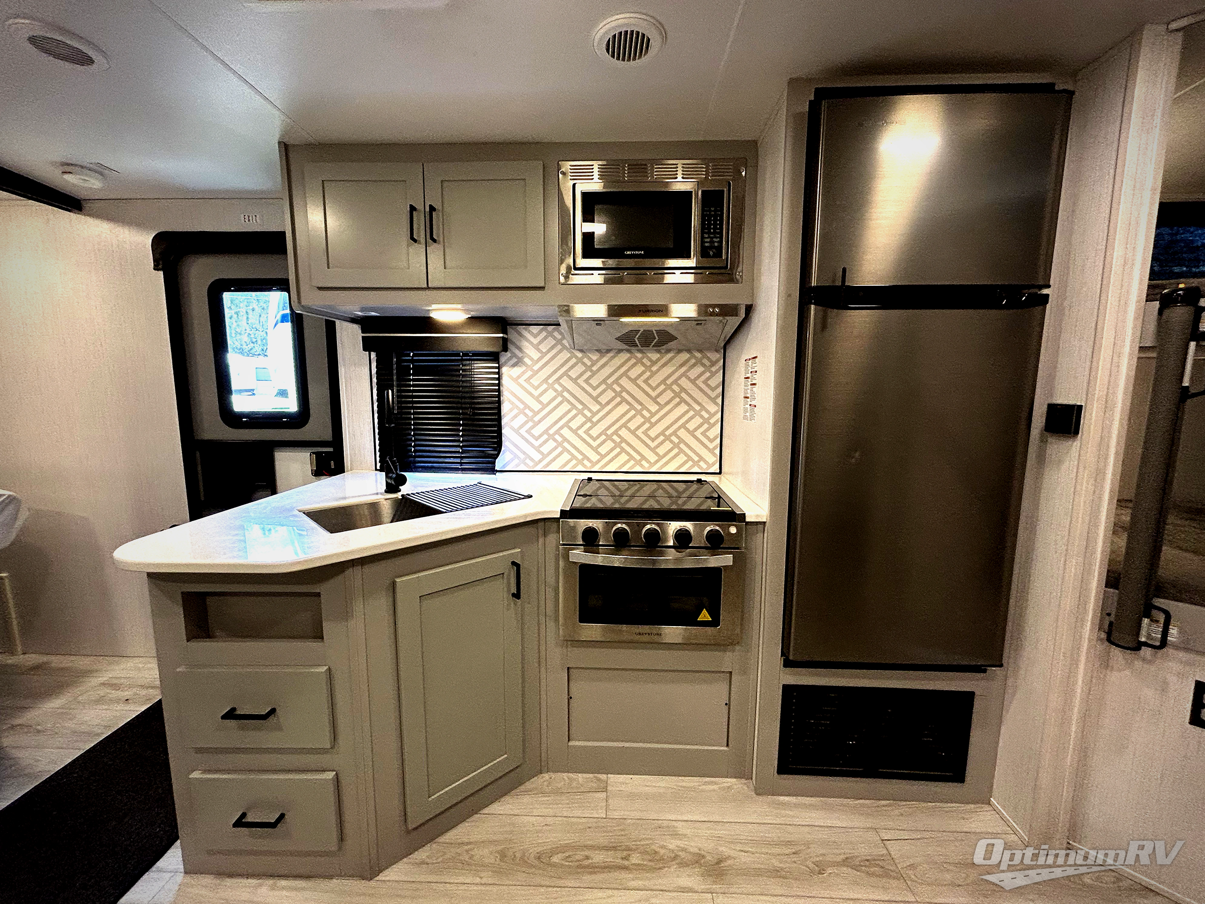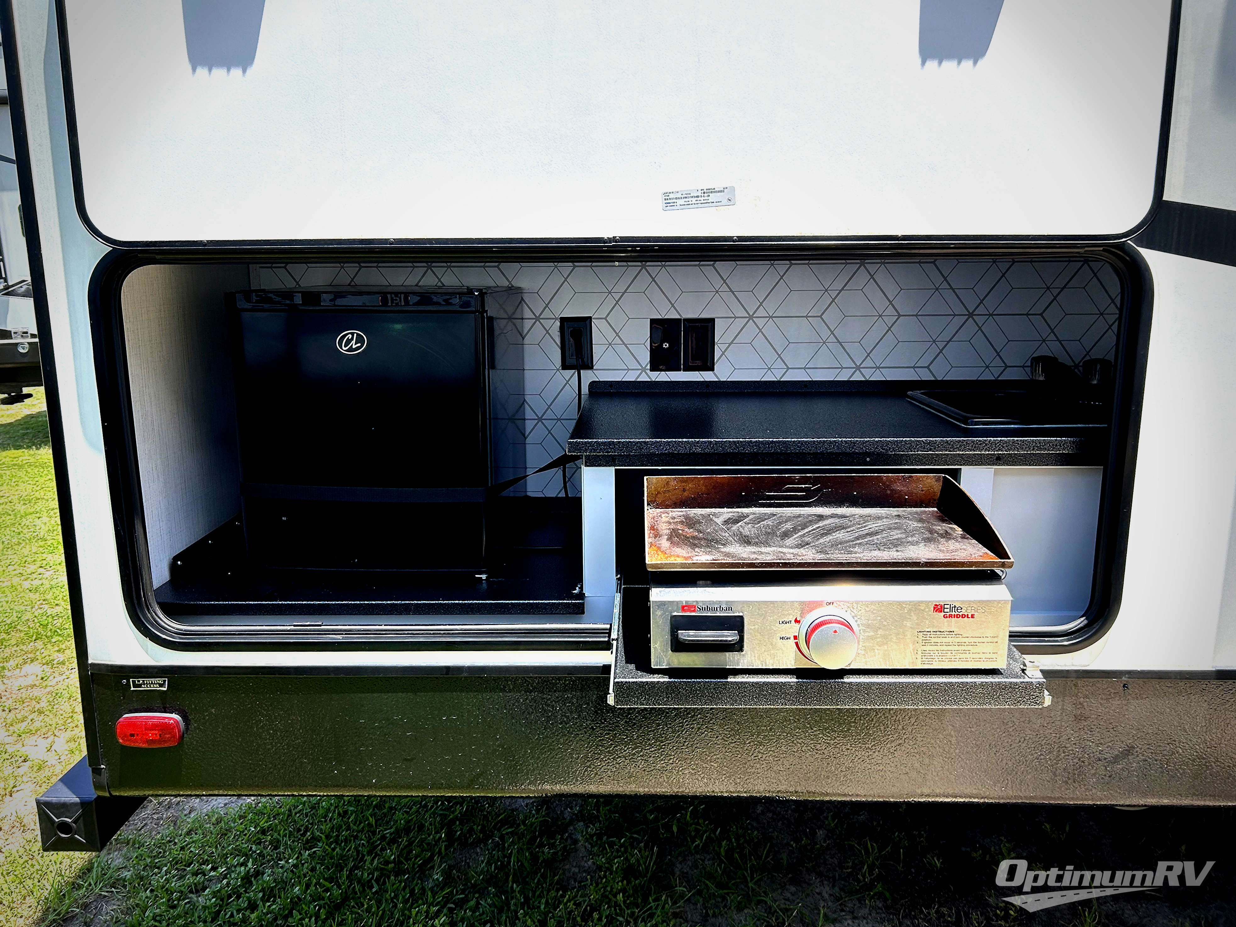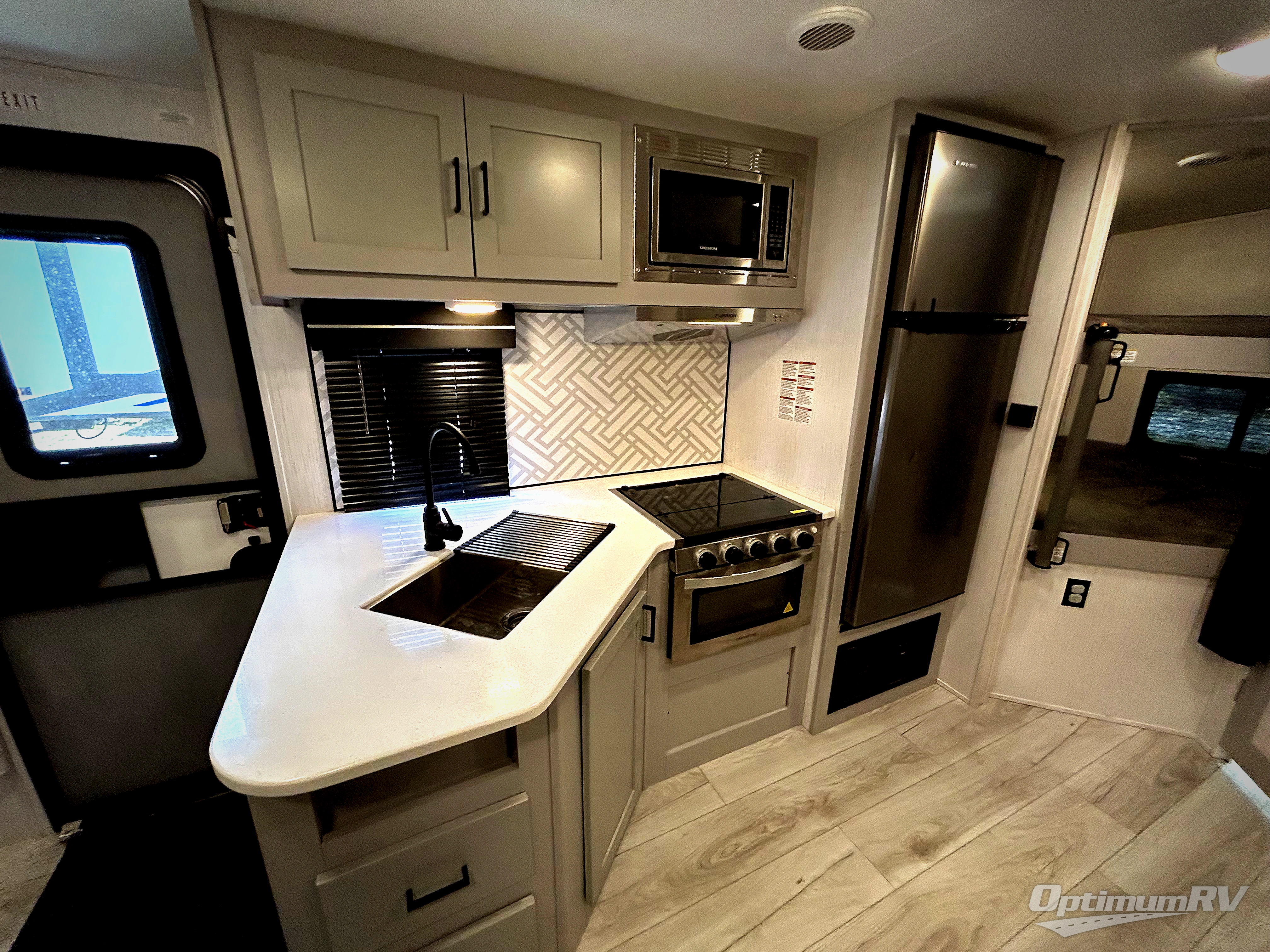 Double-size bunks make this travel trailer family and friends approved! The slide out will provide more space to stretch out in the main living area, and the full bath will come in handy when cleaning up each day. This model includes a front private bedroom with a king bed, plus dual nightstands for your belongings. Everyone can gather under the 19' power awning with LED lights while the chef of the group prepares dinner on the exterior kitchen!