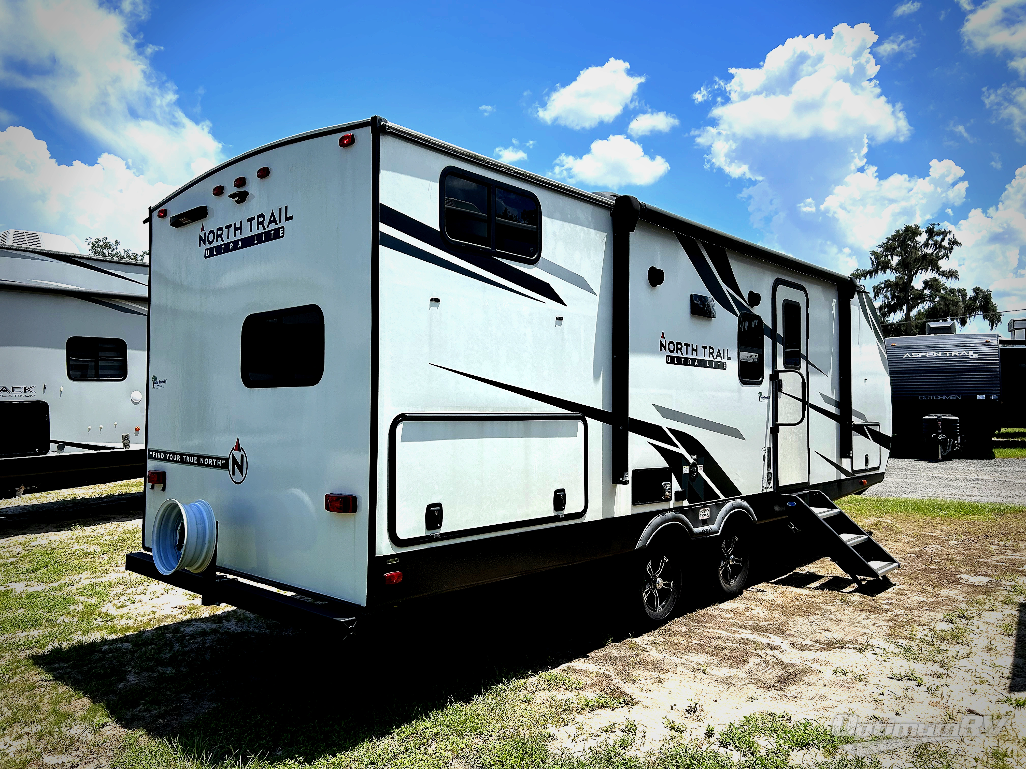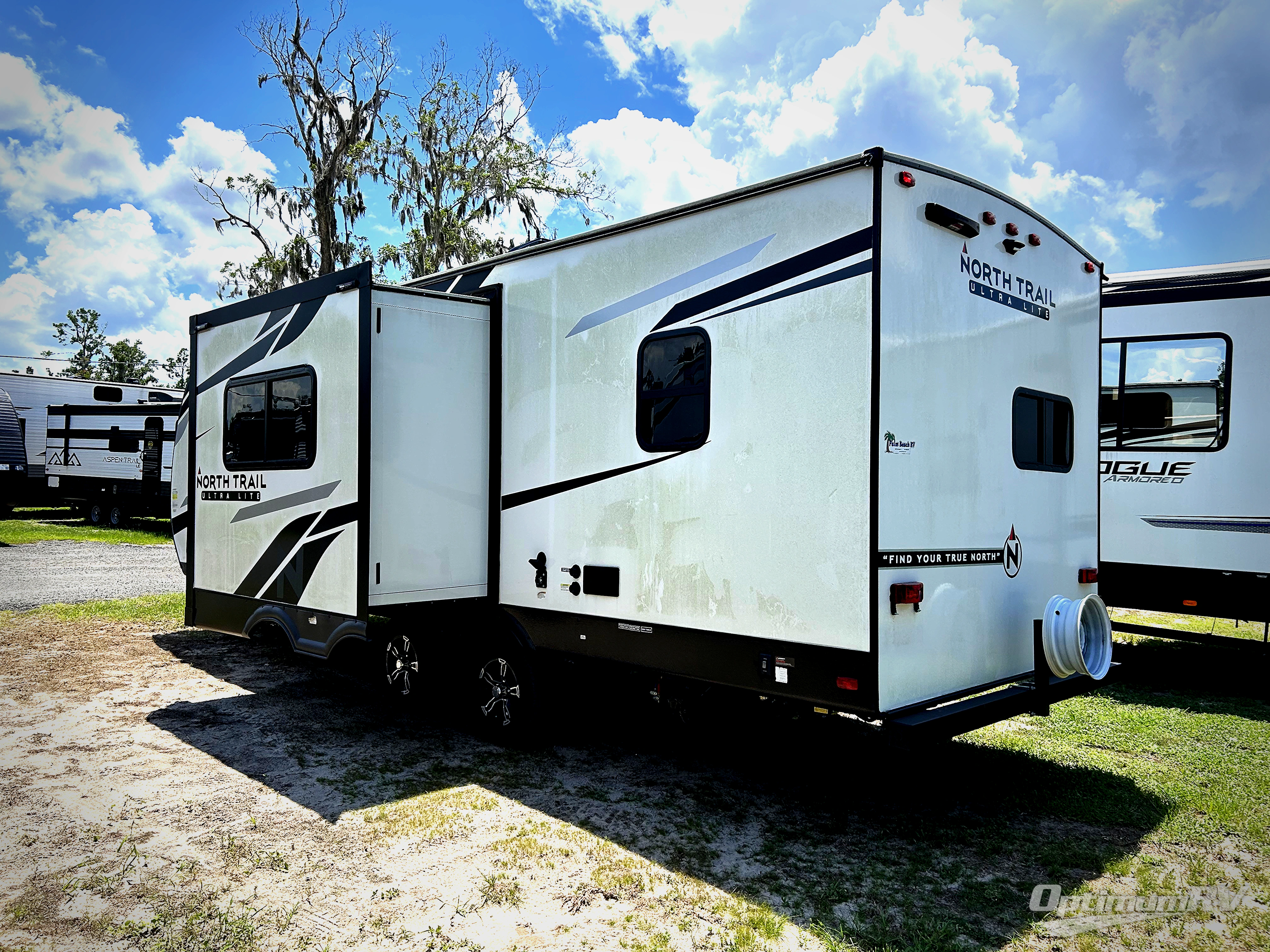 When you choose a North Trail travel trailer by Heartland you are choosing comfort, convenience, and quality craftsmanship at its best. The block foam brick insulation, enclosed and heated underbelly, plus Weather Guard thermal protection mean you can camp all year around. Each model features a Wide Trax suspension for a smooth ride, and the backup camera prep and solar prep make camping that much easier if you choose those options. Some of the other exterior features you will appreciate are the outside shower, the power stabilizer jacks and power tongue jack, and the outside speakers to keep the party going. Head inside to find stainless steel appliances, oversized windows, and premium flooring that is tear, slip, mold, mildew and cold crack resistant! You can't beat a North Trail travel trailer. Choose your favorite floorplan today!