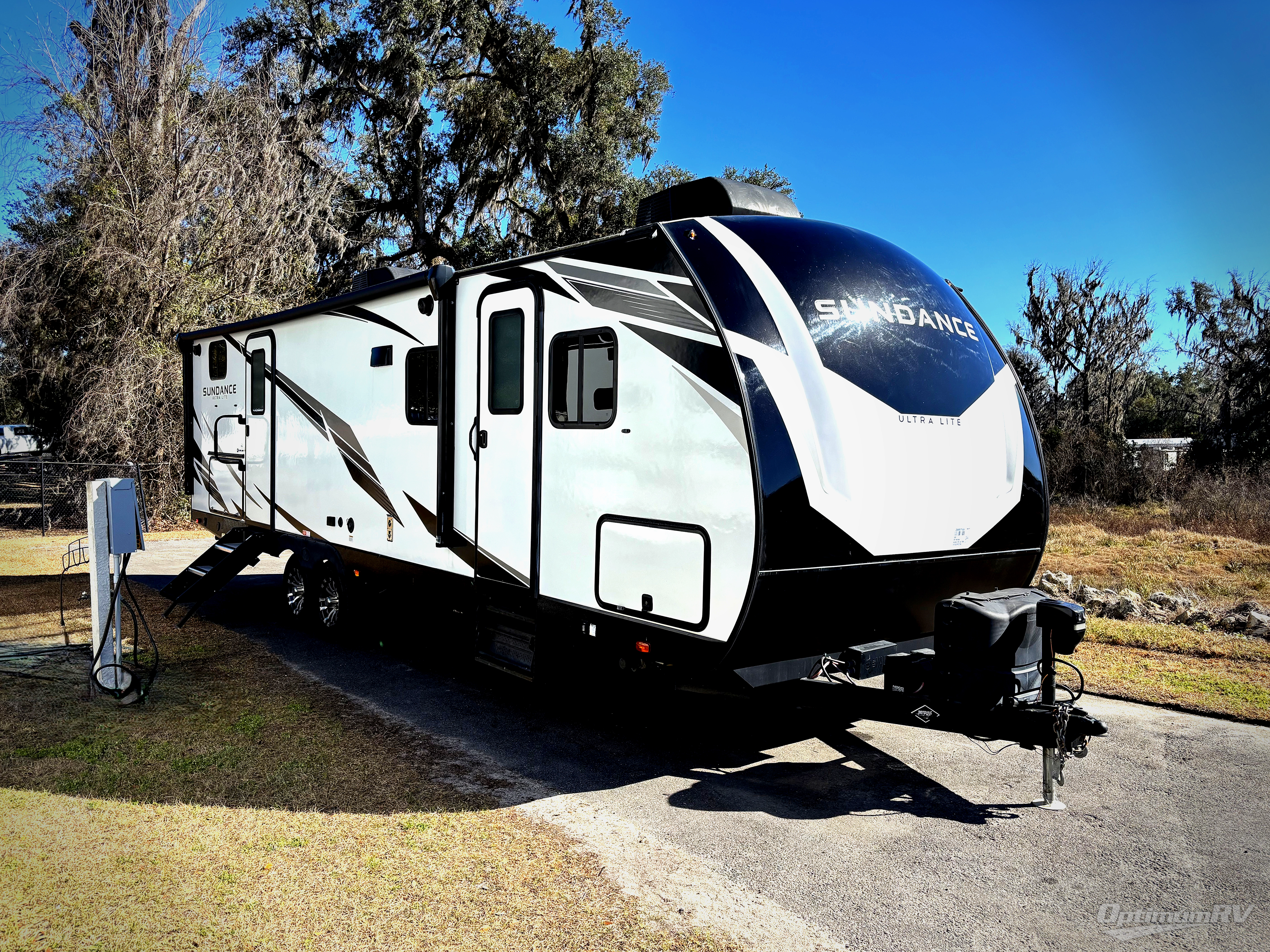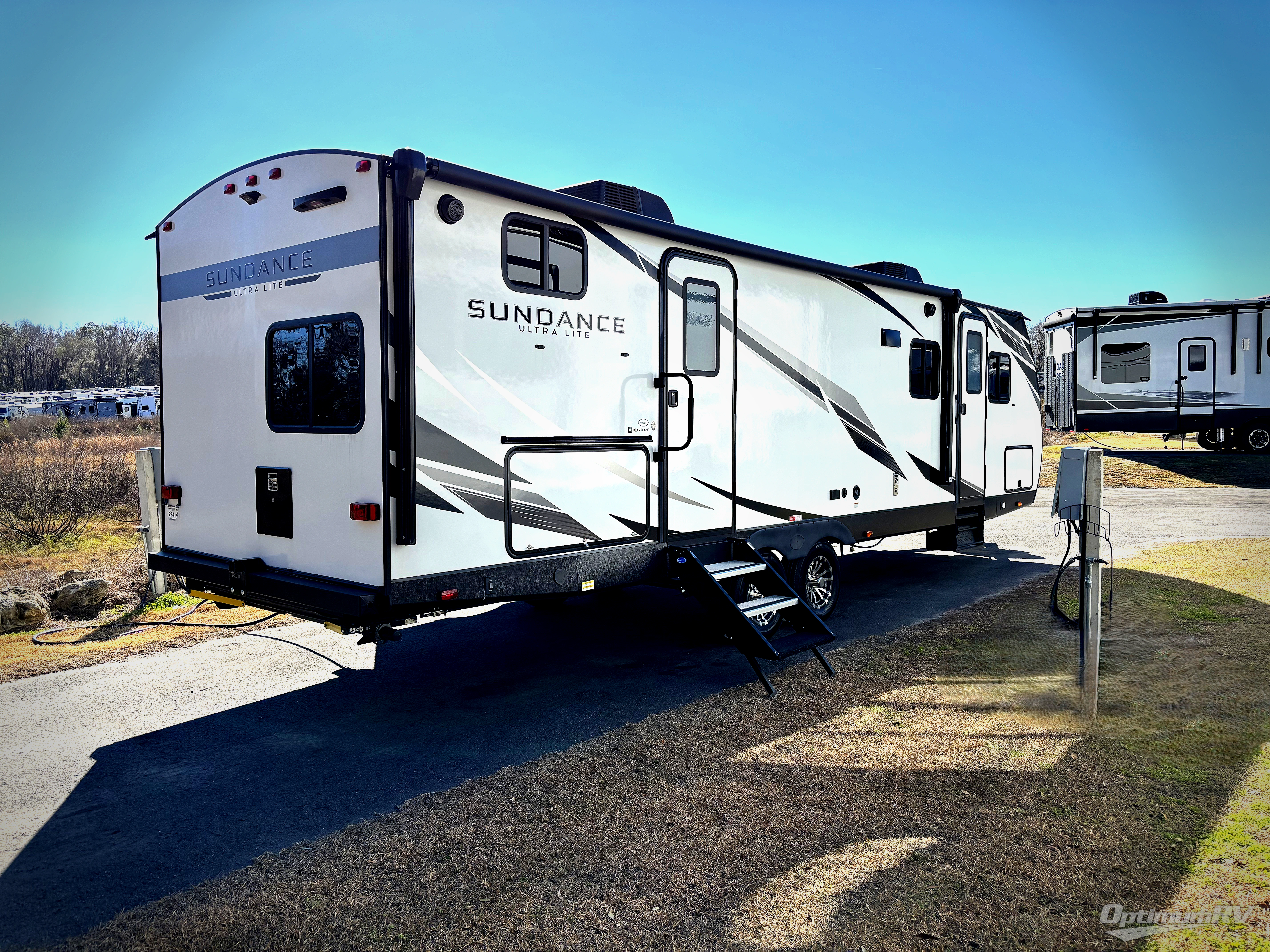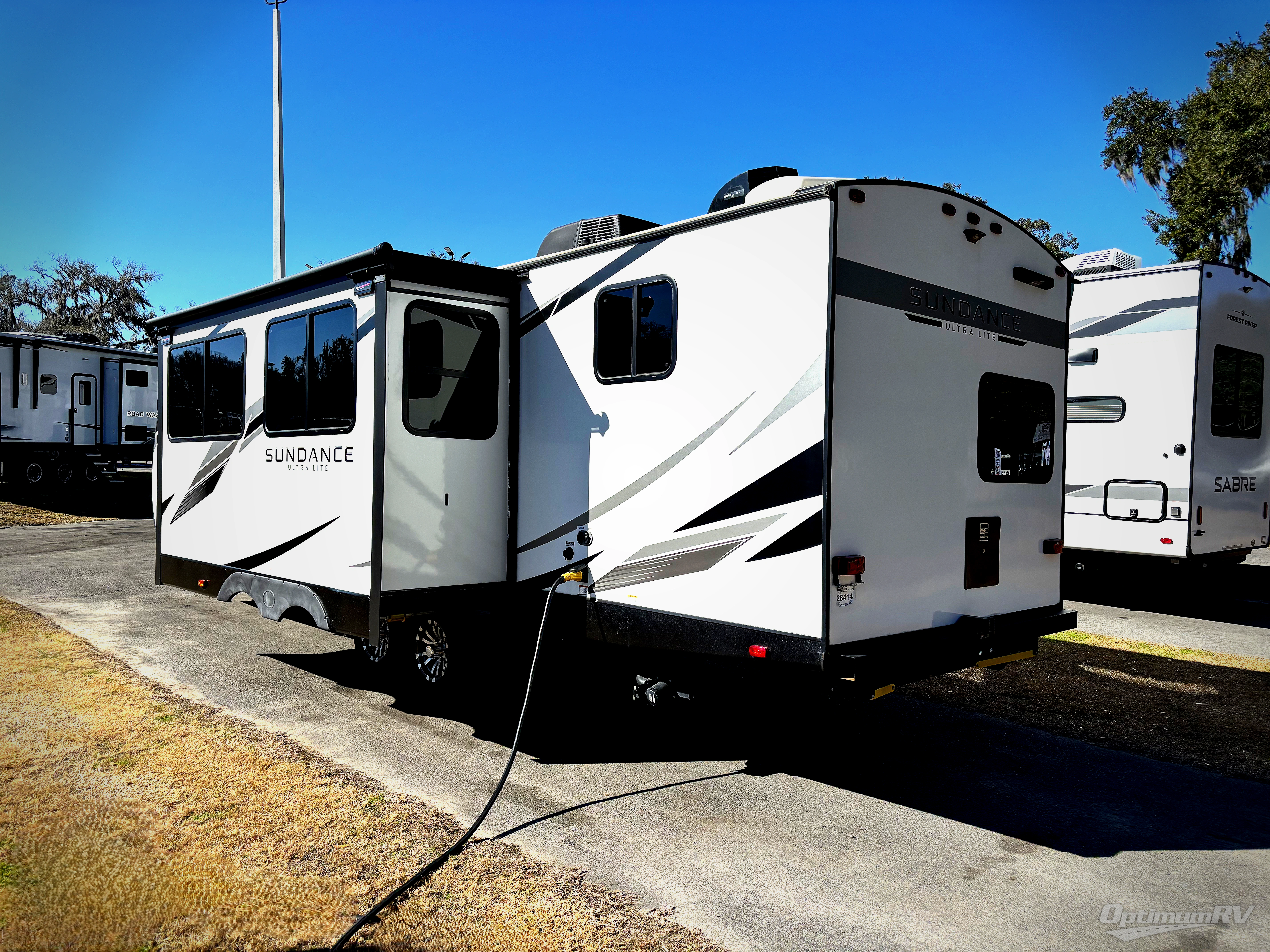 This Sundance Ultra Lite travel trailer will be an excellent traveling companion! It offers you lots of sleeping space with the double-size bunks, the sofa, the booth dinette, and the queen-size bed in the private bedroom. It also offers you extra living space with a large slide. As soon as you enter this trailer, you will notice a walk-in pantry to your right. You can use this for storing snacks, shoes, and other odd items. The full bathroom will prevent you from having to stand in line at the campsite's bathroom facilities, and the outdoor kitchen is an amazing addition that allows you to cook outside in the fresh air.