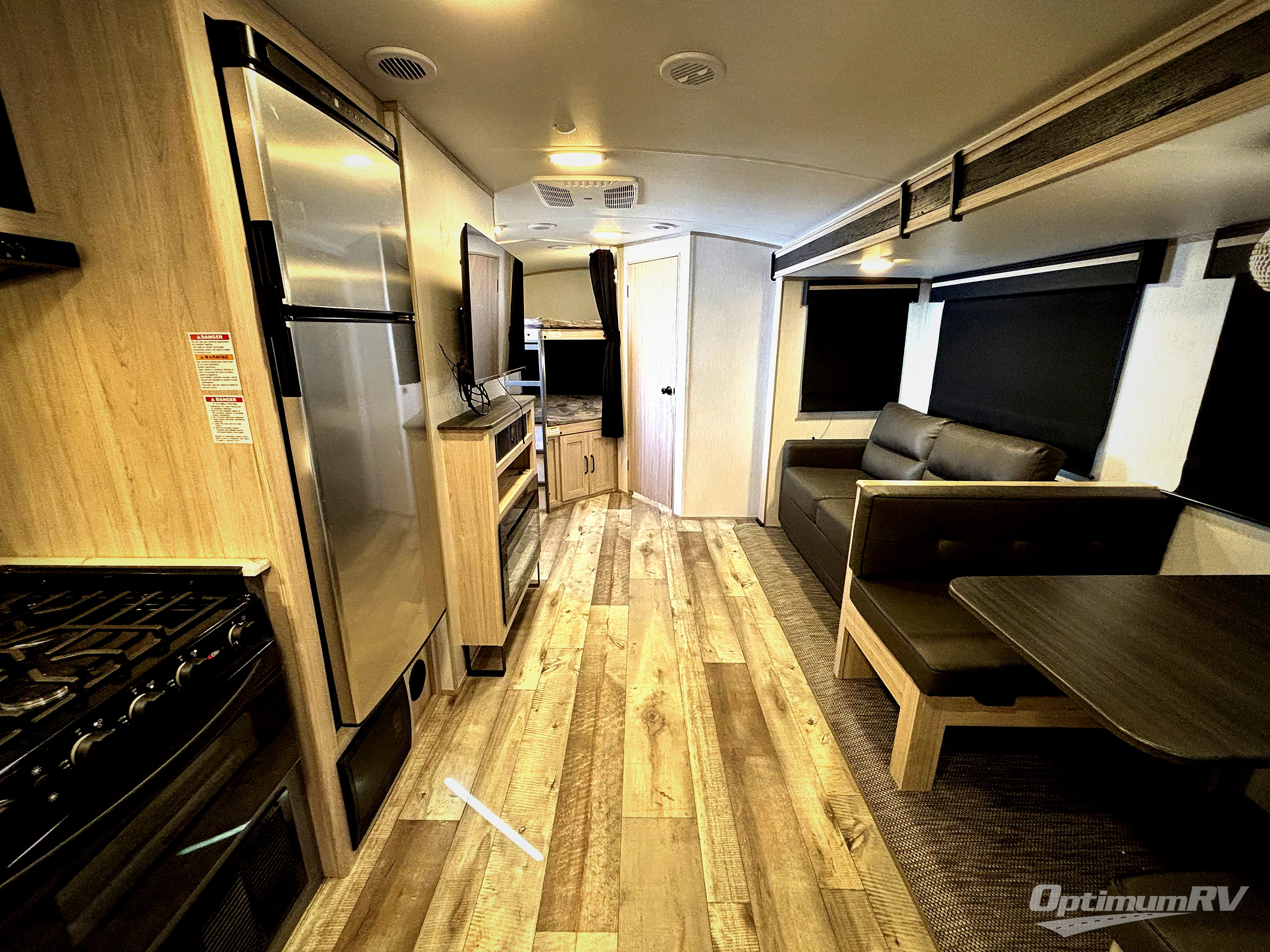 The Heartland Sundance Ultra Lite travel trailers and toy haulers are exceptionally beneficial for a family who is just starting out in the RV lifestyle. Each unit is constructed with an enclosed underbelly, a painted fiberglass front cap with LED lights, a walkable aluminum trussed barrel roof, and a rack and pinion power slide out. You'll have a spare tire and carrier for life's unfortunate mishaps and one unique key for all of your locks with the Keyed Alike system. The interior offers you woven flooring and residential-style furniture for a long-lasting traveling companion. You can use the outside spray port with a hose and sprayer for cleaning or hosing down the campsite.