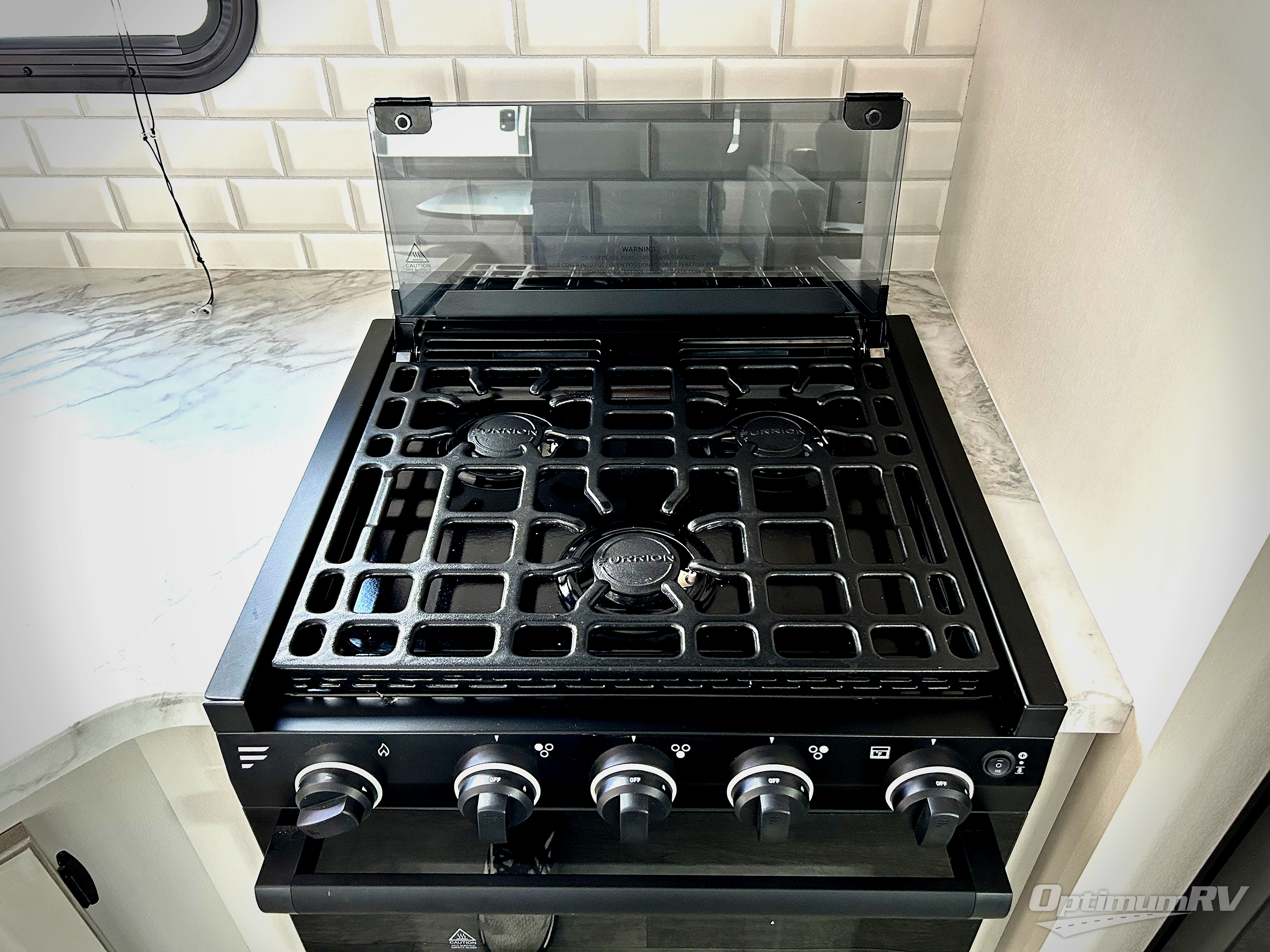 Get out and experience new campgrounds with this spacious trailer that offers a slide out jack knife sofa and booth dinette giving you dining, relaxing and sleeping space as well as more interior floor space to move from the front to the back. The dual entries are a great feature as well when you have eight campers on your trip. And having the second exterior entry/exit to the full bathroom is convenient for all. The cook will love the choice of making meals inside with full amenities or on the outside kitchen when relaxing under the 21' power awning with LED lights. And the front bedroom gives you a queen bed, dual wardrobes and windows for great views when inside. You might like to choose a few options such as theater seating or a tri-fold sofa in place of the jack knife sofa, the 120V heated tank pads for those cooler camping trips, and/or the Solar Power package if you want to camp off-grid.