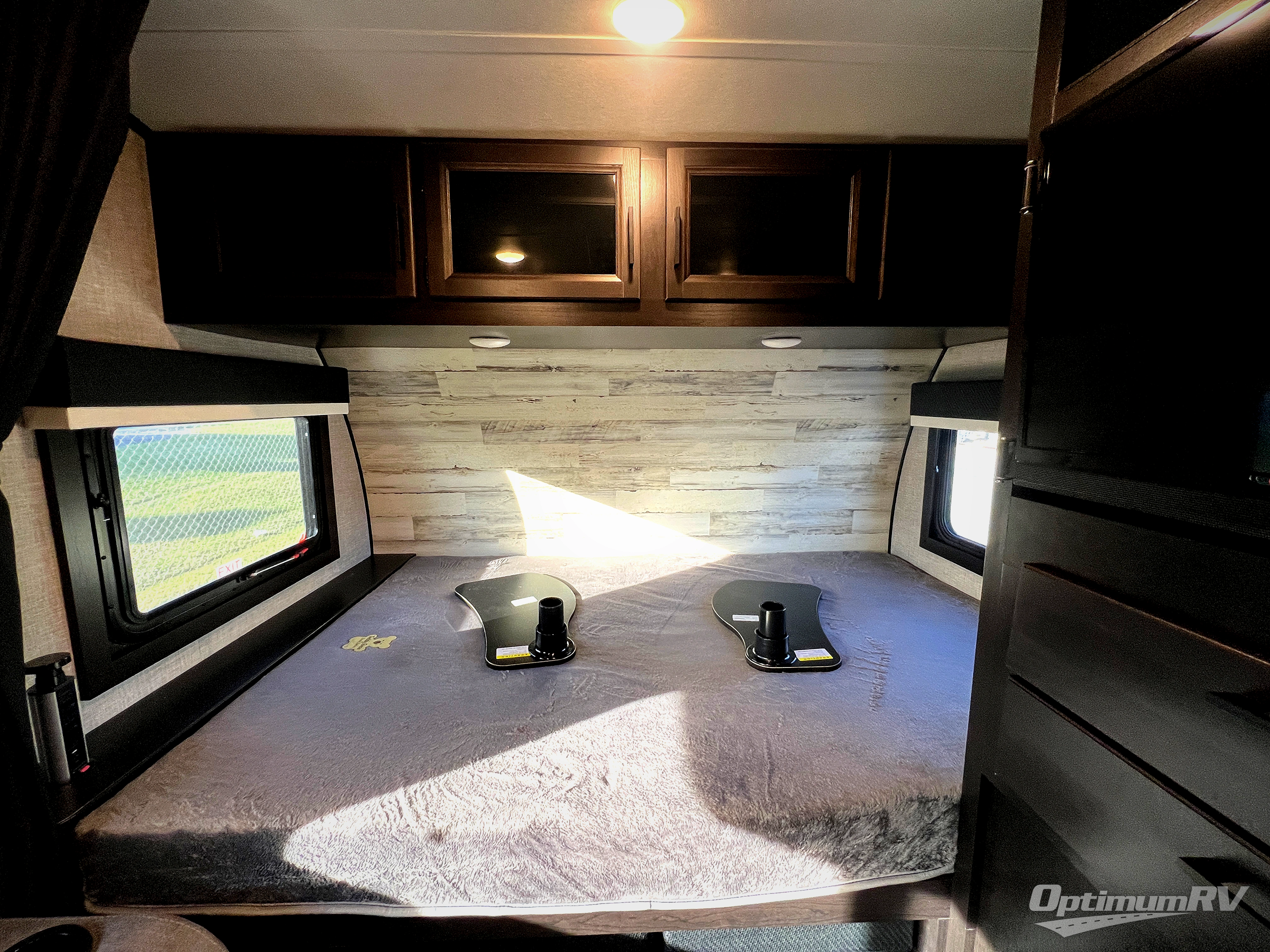 Weekends at the lake are made comfortable in this single slide out travel trailer. You will enjoy your own 54" x 80" front bed so you don't have to sleep on the floor, plus there is a jack-knife sofa if you have an overnight guest. The full bath features a radius shower with a skylight, plus plenty of storage space for your medicines and toiletries. This model includes a microwave oven and a three burner cooktop to prepare meals each day, and an 8 cu. ft. 12V refrigerator for perishables. You will also find an exterior refrigerator for cold drinks, plus a Jayport system with an LP quick connect.