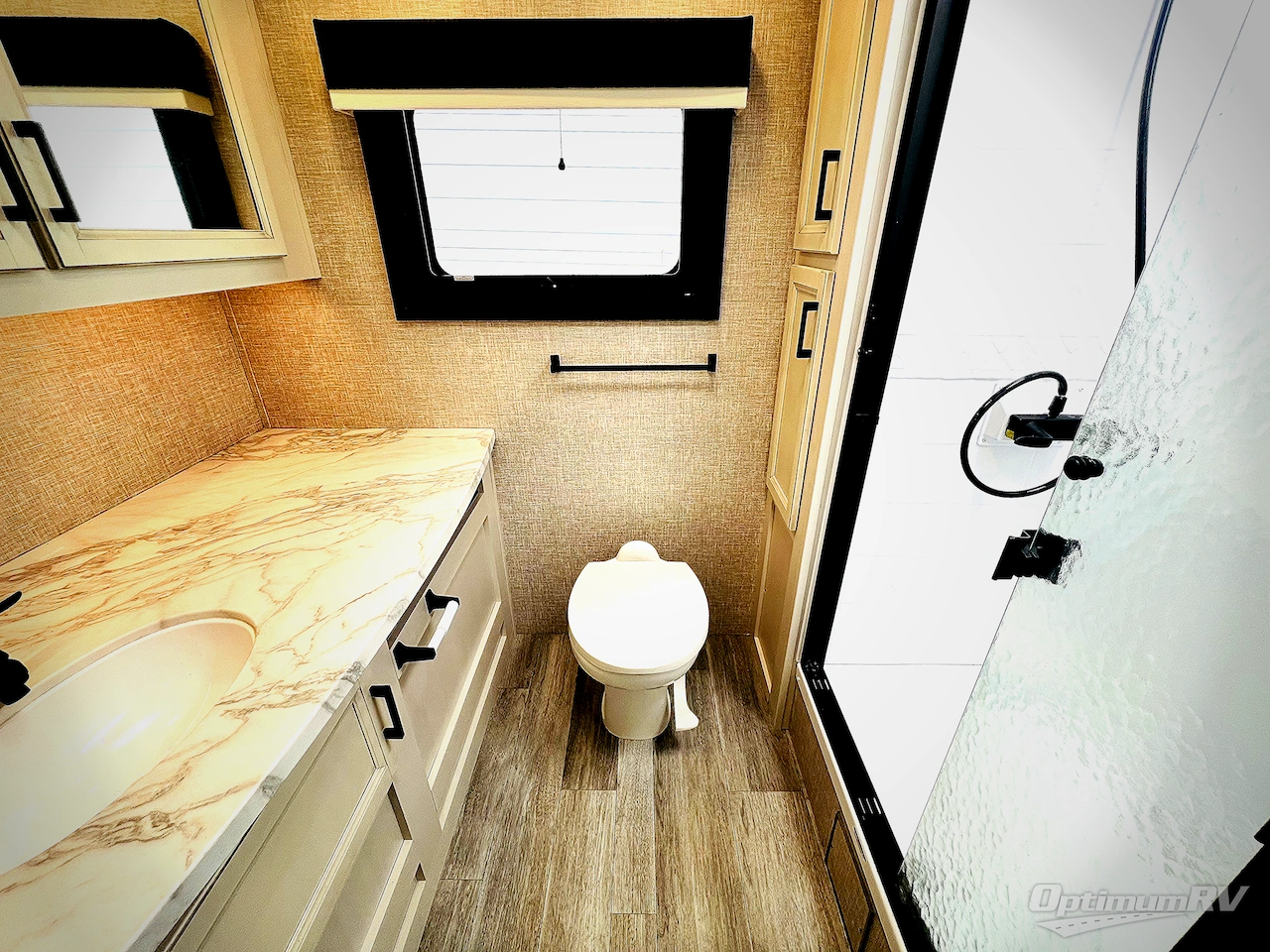 This versatile travel trailer is perfect for your family of four. The Murphy bed will provide comfortable sleeping space at night, and the jack-knife sofa will give you a place to relax during the day. Your crew can gather around the U-shaped dinette across from the fireplace, plus there is an LED TV here for movie night. This model also includes an outside kitchen under the 19' awning for an inviting outdoor living space, and two pass-through storage compartments for all your gear. And don't forget about the spacious full rear bath with plenty of counterspace, a medicine cabinet and a linen closet for clean towels!