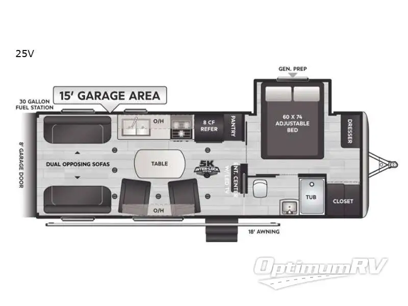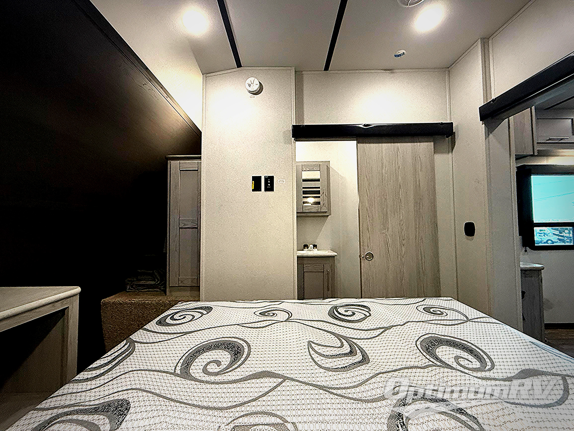 With any Fuzion Impact Edition toy hauler, the robust construction gives you years of enjoyment, and the unexpected conveniences and technology allow you to enjoy the indoors while exploring outdoors on a budget! Some standout features include the blade high-performance air flow system delivering an average of 20% more cooling power, and the 5k Interlock tie downs rated up to 5,000 lbs. each. The SolarFlex 200 delivers affordable, high quality solar energy and you can choose an option to upgrade if you like. While indoors, you will appreciate full-extension ball bearing drawer guides, pressed countertops, hardwood cabinetry, and bedside outlets/USB to keep your electronics charged. Choose an easy-to-tow, value-minded and impactful Fuzion Impact Edition toy hauler travel trailer or toy hauler fifth wheel today!
