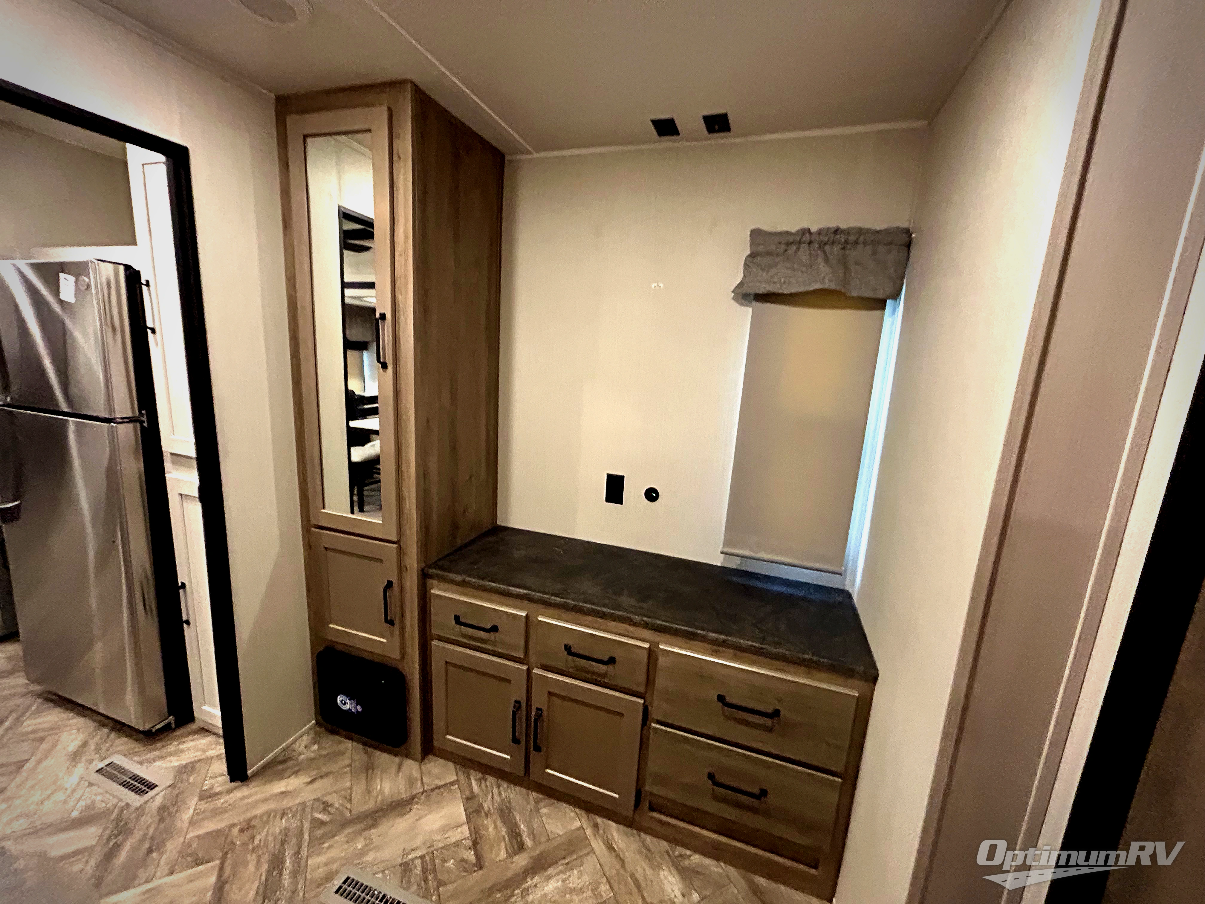 Get out of town and start enjoying the beautiful weather and scenery where you have chosen to place this Puma Destination. This spacious trailer has three slide outs for lots of interior floor space, plus two entries for convenience. The front bedroom offers a king bed slide, two closets, and a dresser. The rear bedroom suite includes a full bathroom and a queen bed slide, a vanity and a wardrobe. In between you can relax in the combined living and kitchen area on the sofa or booth dinette while visiting with the cook with full amenities.