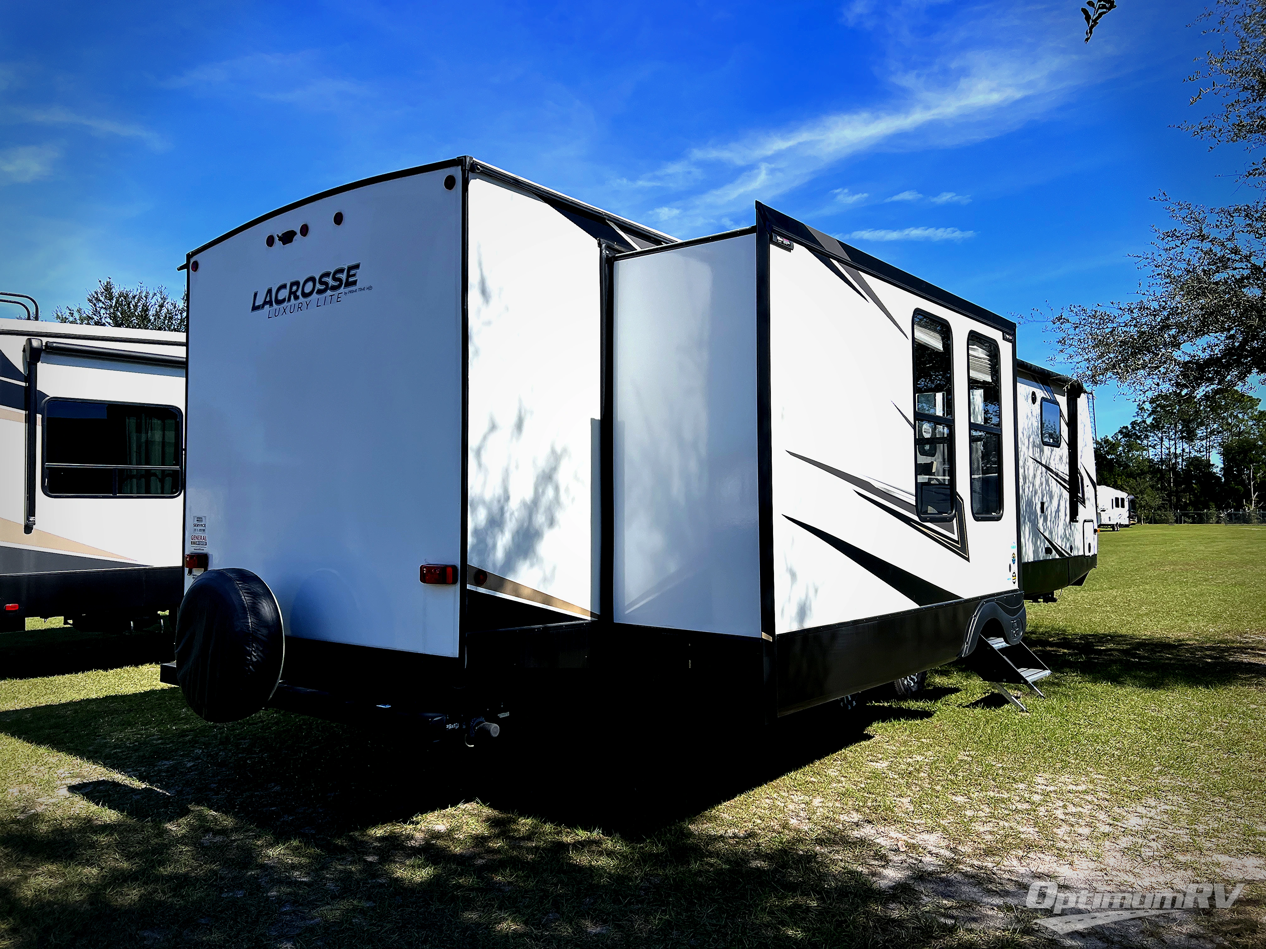 If you used to think that you had to spend a fortune to get a luxury RV, think again because the Prime Time LaCrosse travel trailer proves that you can combine luxury with value! The LaCrosse features premium vinyl flooring, large panoramic windows, an 82" interior height, motion-sensor LED lighting, and USB ports. On the exterior, the fully enclosed underbelly protects your unit so that you can adventure during colder weather, and the LED-lit electric awning is certainly a valuable feature that allows you to sit outside underneath some shade on a sunny afternoon. Come choose your model today!