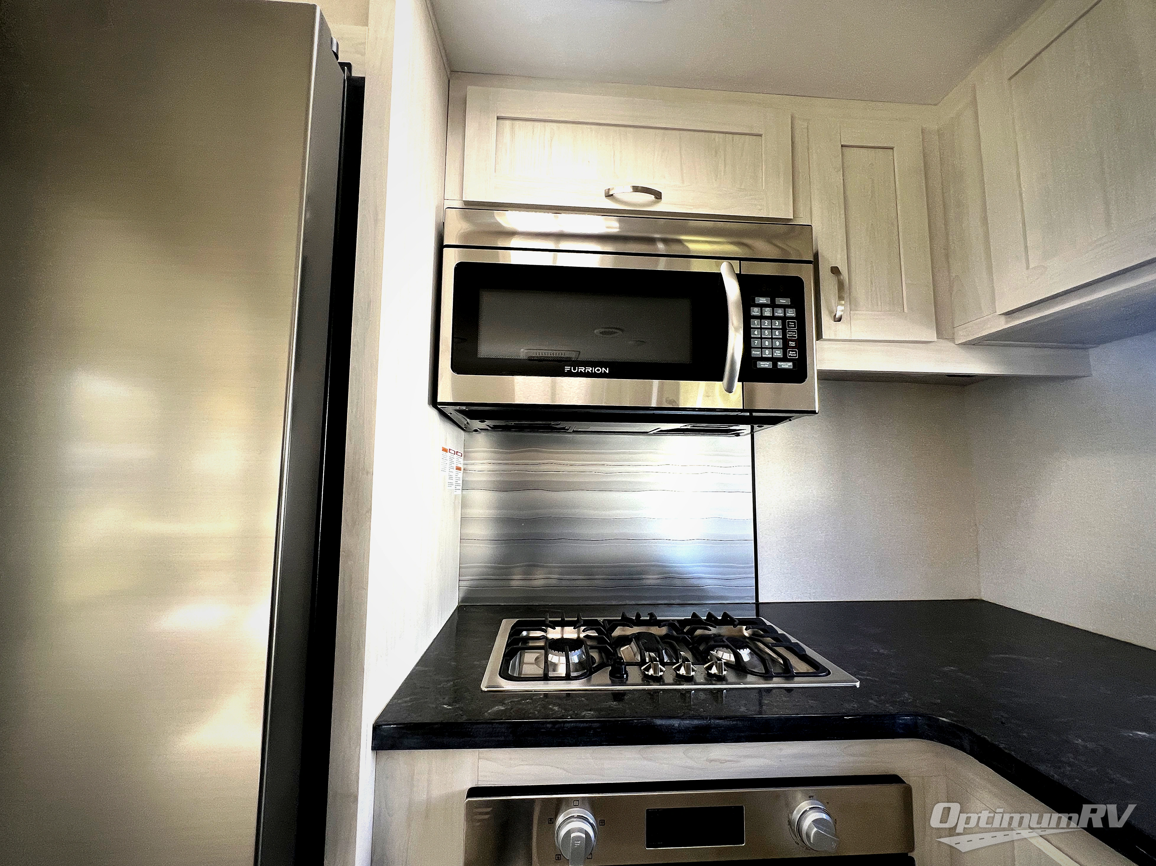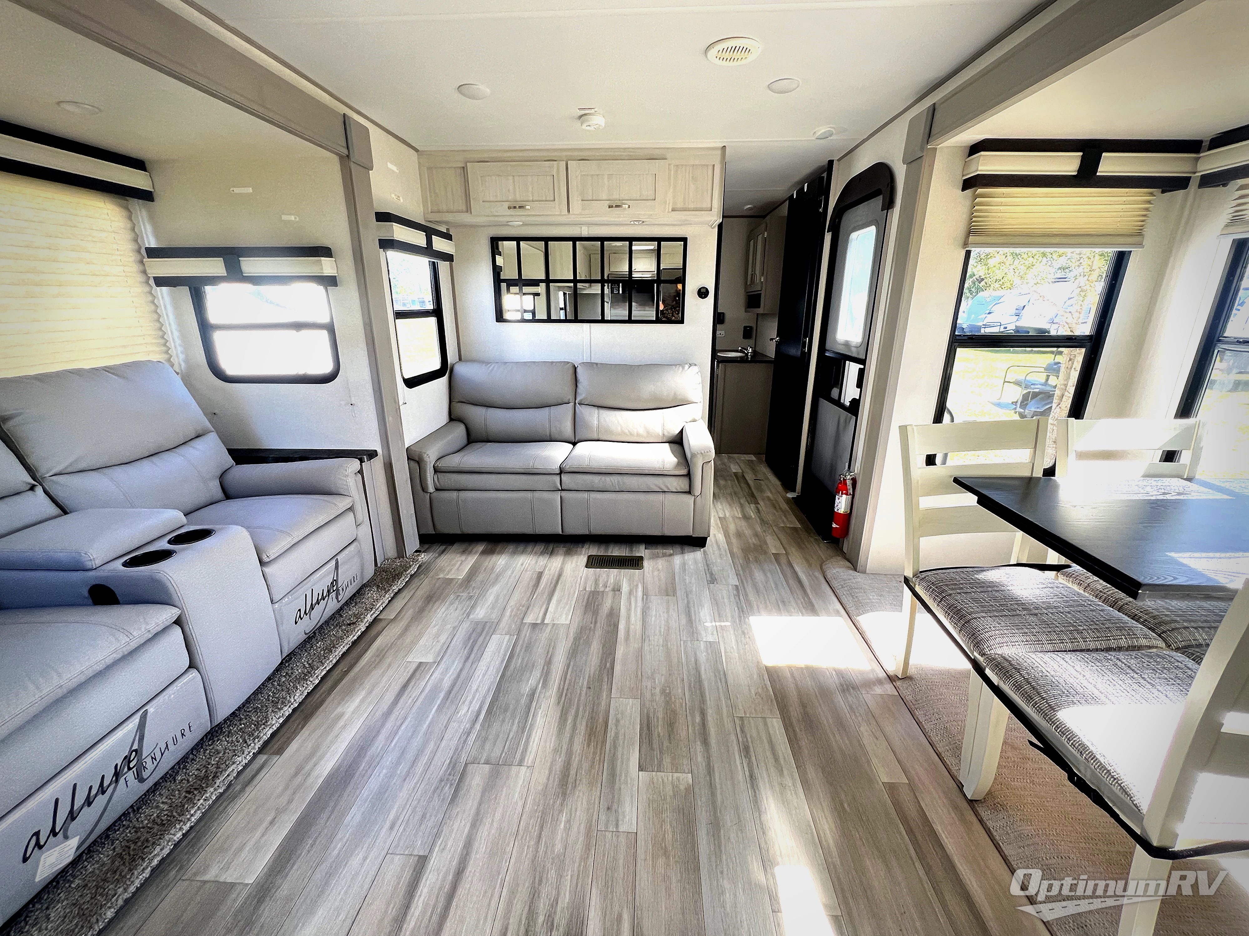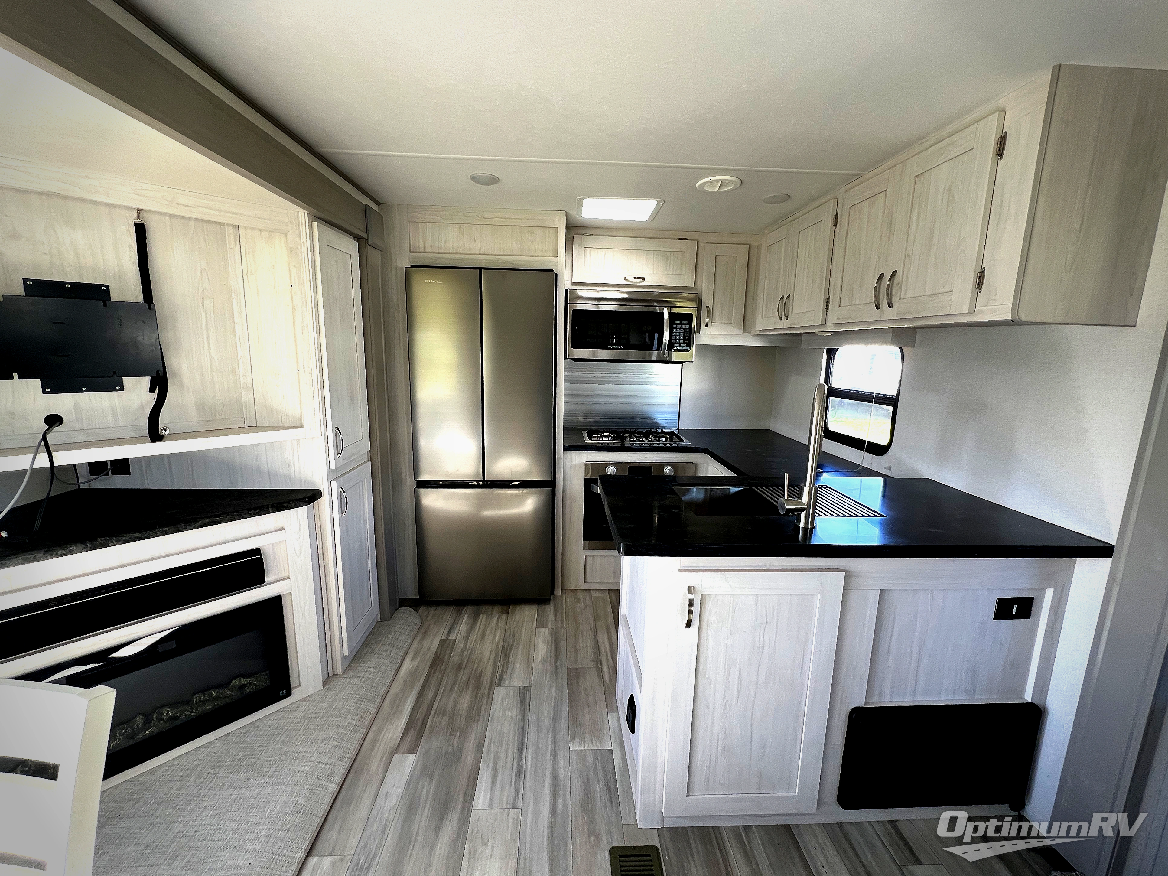 You will be ultra impressed by this LaCrosse travel trailer! First, the interior is made to feel just like your own home with its theater seating, hide-a-bed sofa, free-standing table with chairs, and entertainment center with 50" LED TV and fireplace. Second, you'll find even more residential comfort in the rear kitchen that has a Furrion residential cooktop, a 30" microwave oven, and a 10.7-cubic foot refrigerator. And lastly, the walk-through bathroom has two doors on either side with one of those doors leading directly into the front private bedroom, so you know you'll enjoy great comfort in this space each night. There is also a bedroom bench at the front of this trailer which gives you an enjoyable place to relax as you take in the views from the front windshield.
