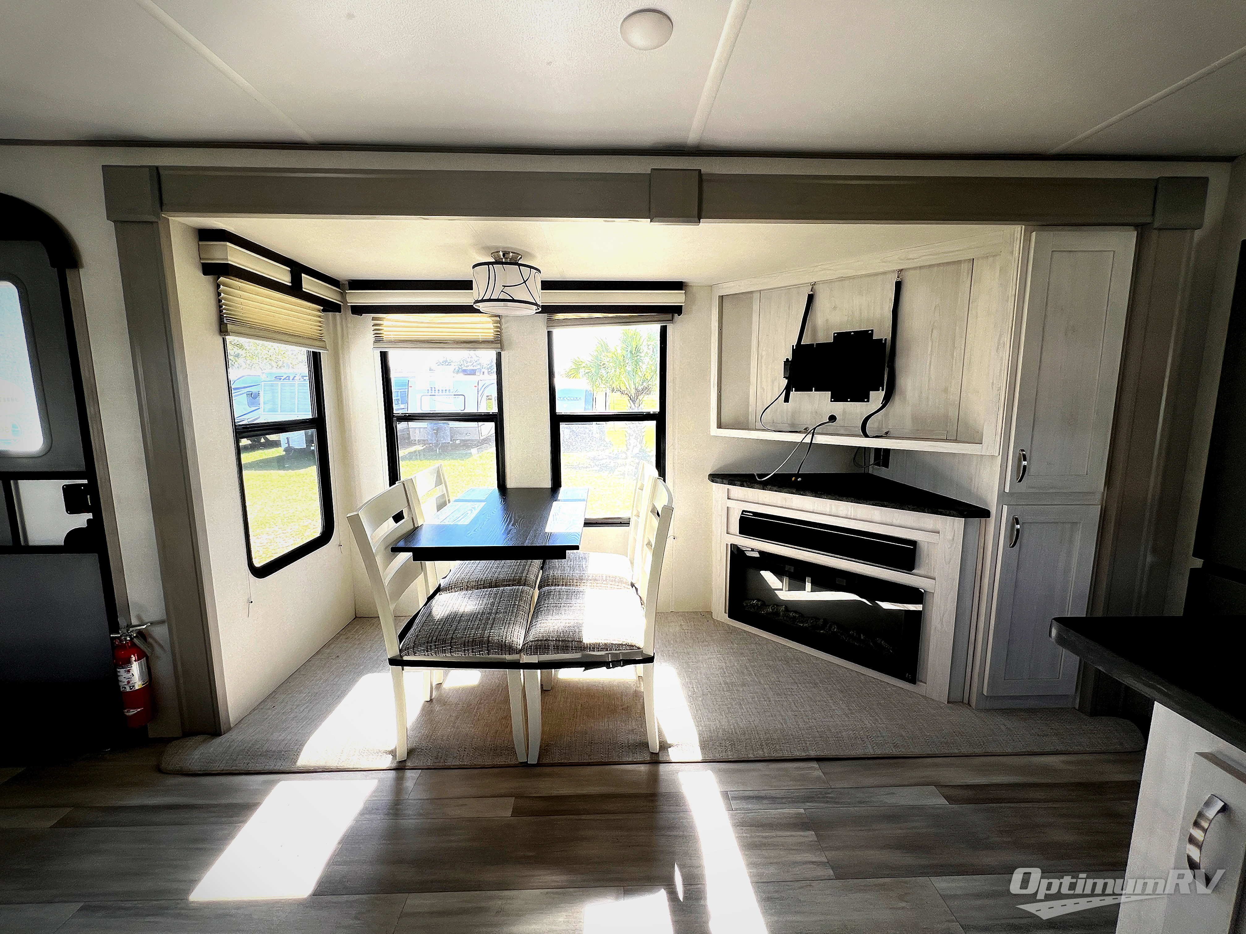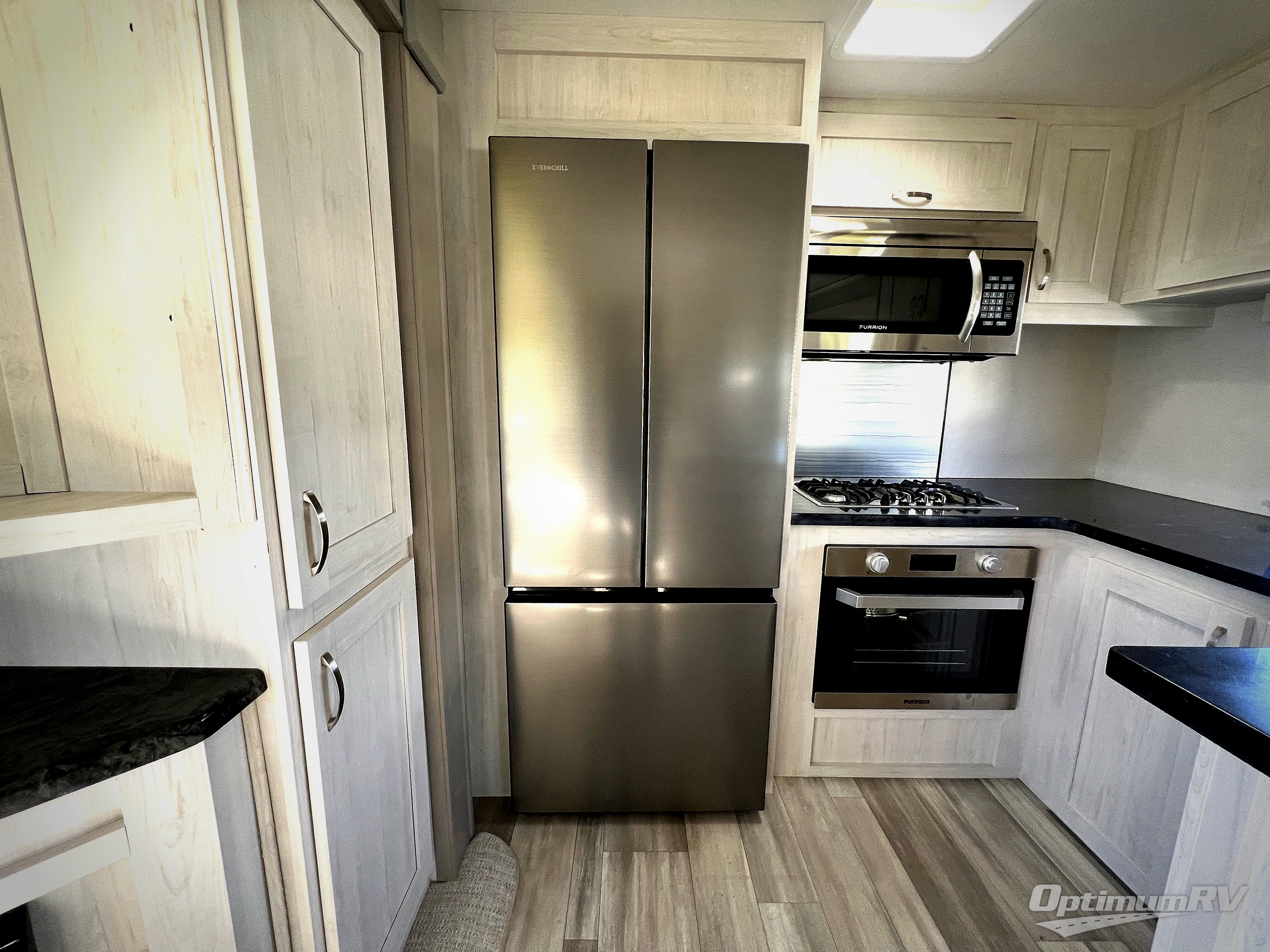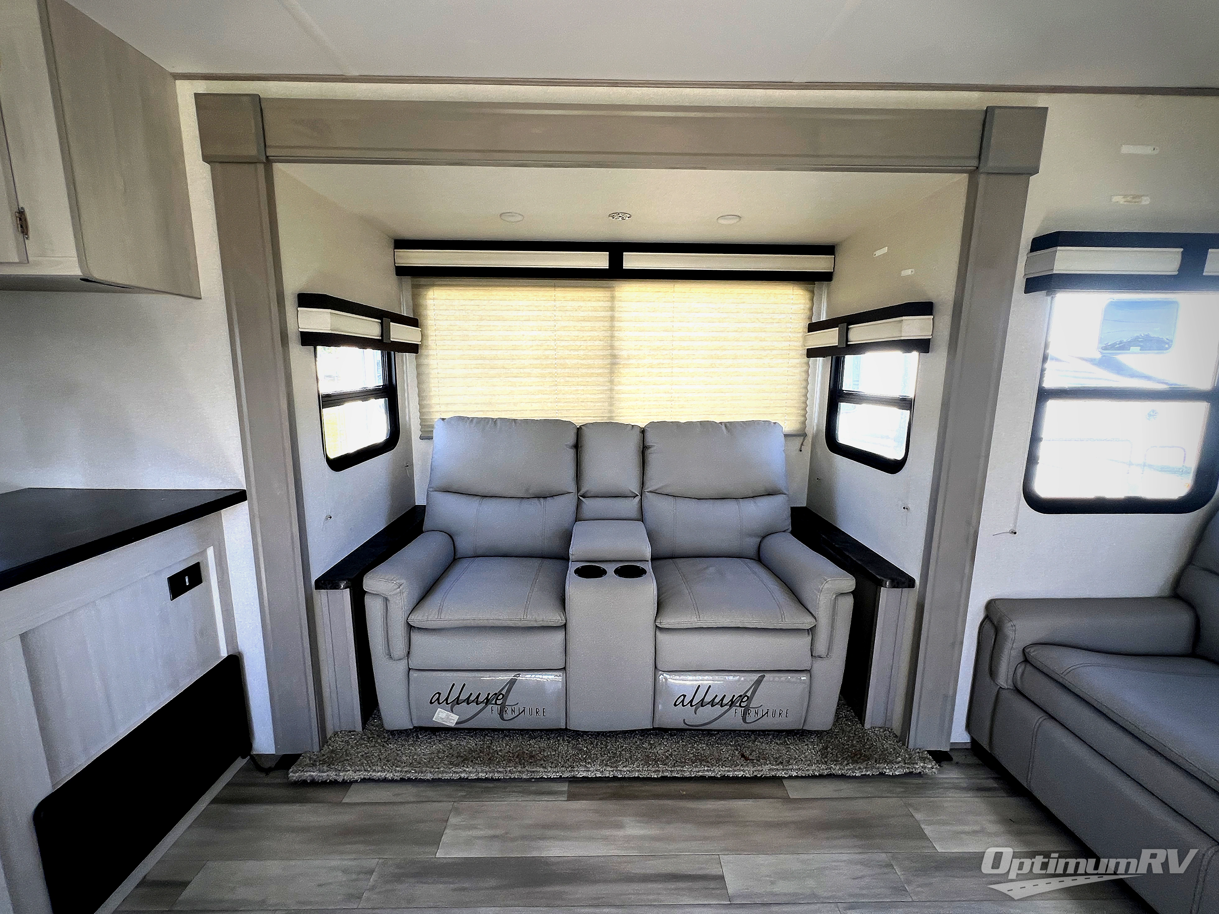 You will be ultra impressed by this LaCrosse travel trailer! First, the interior is made to feel just like your own home with its theater seating, hide-a-bed sofa, free-standing table with chairs, and entertainment center with 50" LED TV and fireplace. Second, you'll find even more residential comfort in the rear kitchen that has a Furrion residential cooktop, a 30" microwave oven, and a 10.7-cubic foot refrigerator. And lastly, the walk-through bathroom has two doors on either side with one of those doors leading directly into the front private bedroom, so you know you'll enjoy great comfort in this space each night. There is also a bedroom bench at the front of this trailer which gives you an enjoyable place to relax as you take in the views from the front windshield.