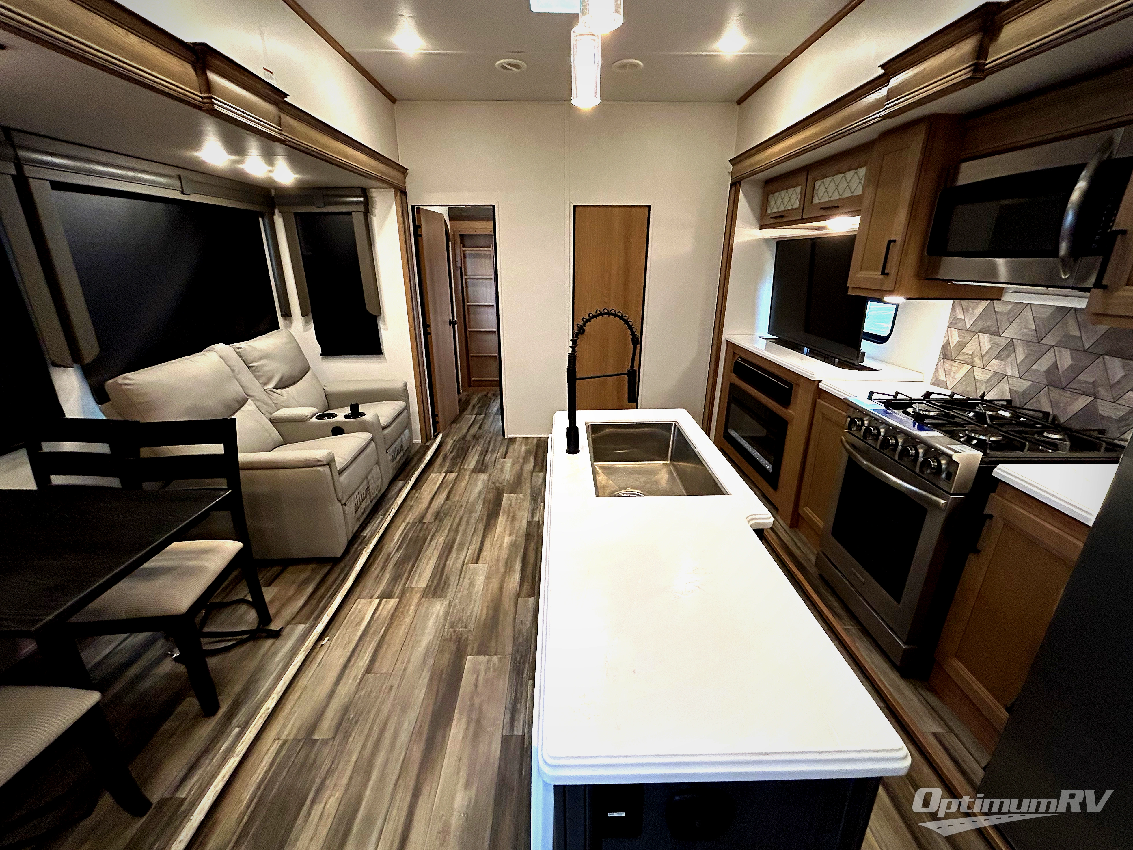 More luxury and more value is what you will find in each one of these Prime Time RV Sanibel fifth wheels! The Extreme Thermal package allows you to extend your camping season by including heated, enclosed water lines, an enclosed underbelly, a heated pass-through storage, and a heated universal docking center. You can keep the party going with the exterior speakers, the coax TV connection and a 110V outlet, plus USB ports in the basement storage. Each model includes an electric awning with LED lights, DOT approved deep tint safety glass, and a "E-Z FLEX" rubberized suspension to provide smooth towing on tougher roads. Inside, you will enjoy shaker style interior doors, a Furrion residential cooktop and oven, roller shades throughout, and "Atrium" dinette windows to let sunlight in for an inviting space. Come find the model that fits your needs today!