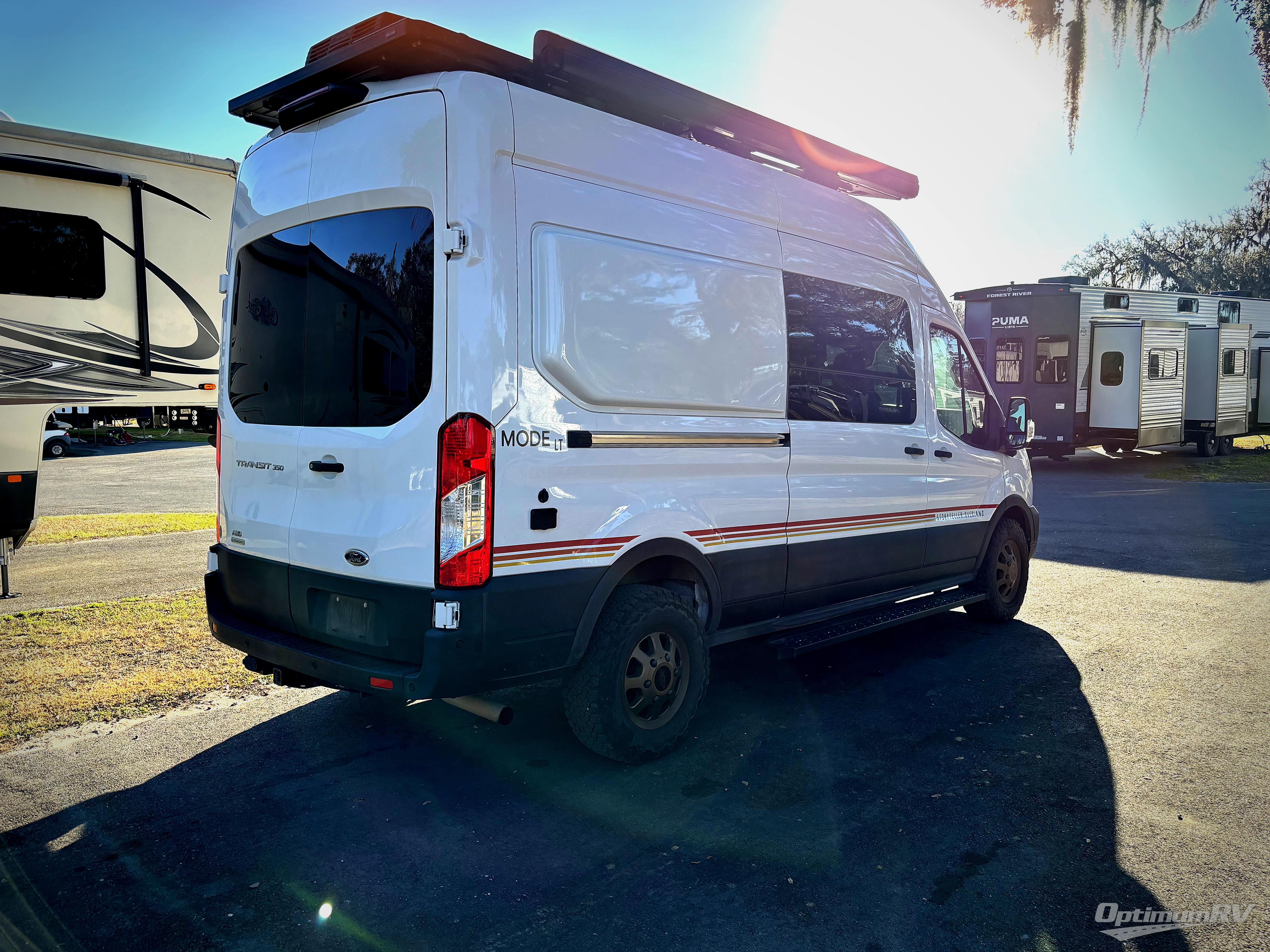 It's time to enjoy urban adventures, state park campouts, and trails in this MODE LT with a Ford 3.5L EcoBoost!   As you search for your next destination, you will appreciate the cab conveniences from adaptive cruise control, the SYNC 8" multi-function display, and the front/rear split camera and side sensor system.  You can easily set up the GrooveLounge two-seater convertible sofa bed and the patented Dreamweaver bed/convertible work surface to relax, unwind and sleep on.  The portable induction cooktop and the exterior fold-down table provide the flexibility to make meals where ever you would like.  And there is a MODE COM 11" full-color touchscreen control system, and the 12kWh M-Power Energy Storage System gives you the power to go off-grid. There are many more features that make this an adventure van you will enjoy for years and years!