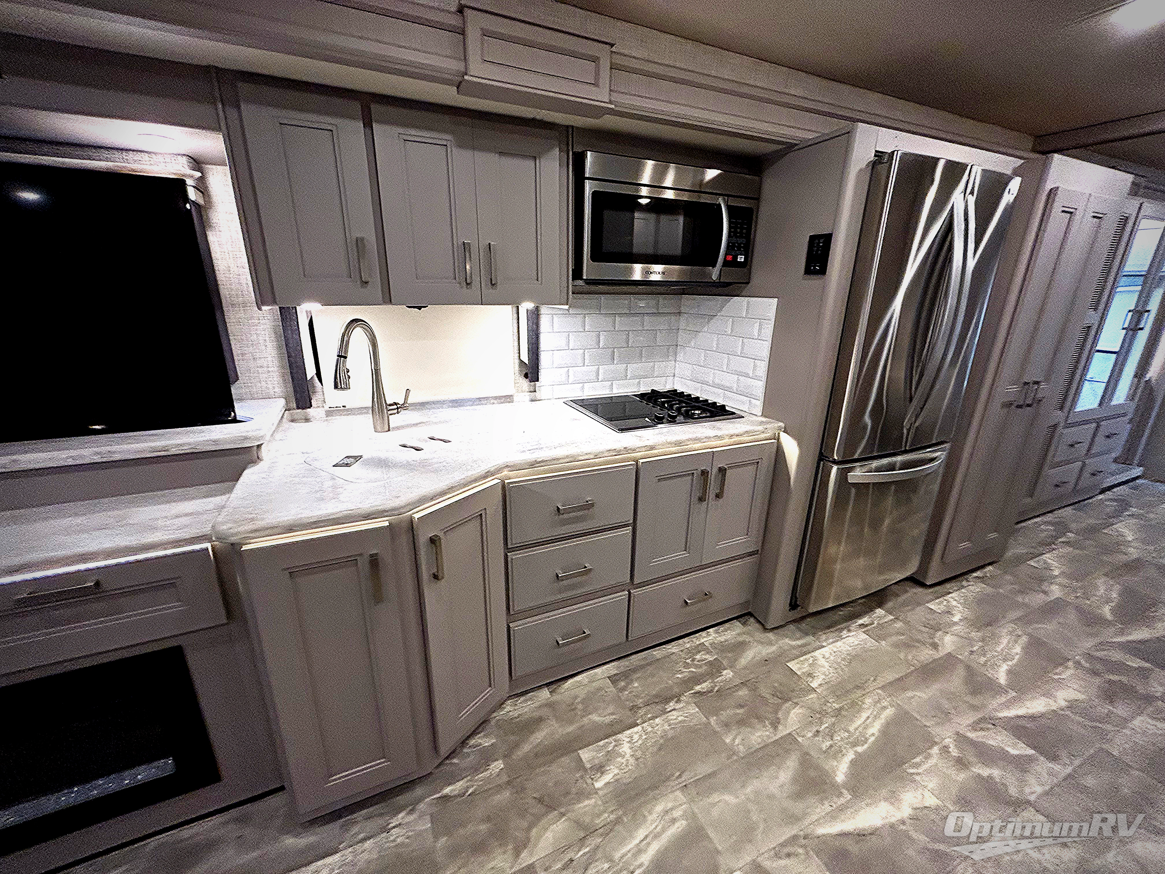 This motorhome features a full-wall slide, plus two additional slides for maximum space and comfort. You can sleep seven people thanks to the drop-down overhead bunk, the king bed slide out, and the furniture in the main living area. The fireplace and retractable 50" TV will make it feel a little more like home, and the residential kitchen is any chef's dream. Since this model includes a bath and a half, your guests won't have to wait in line, and you'll find plenty of storage space throughout for everyone's belongings.