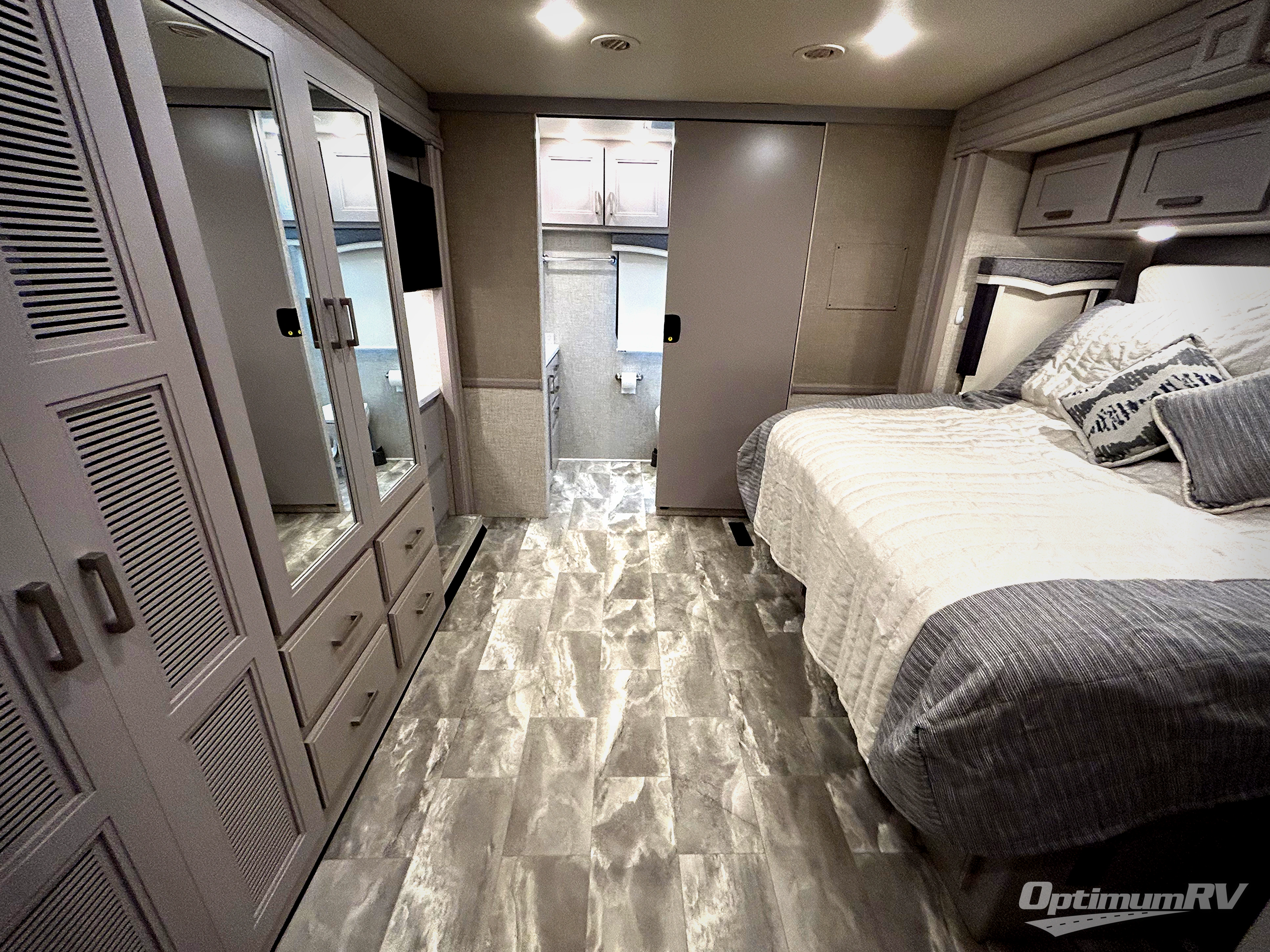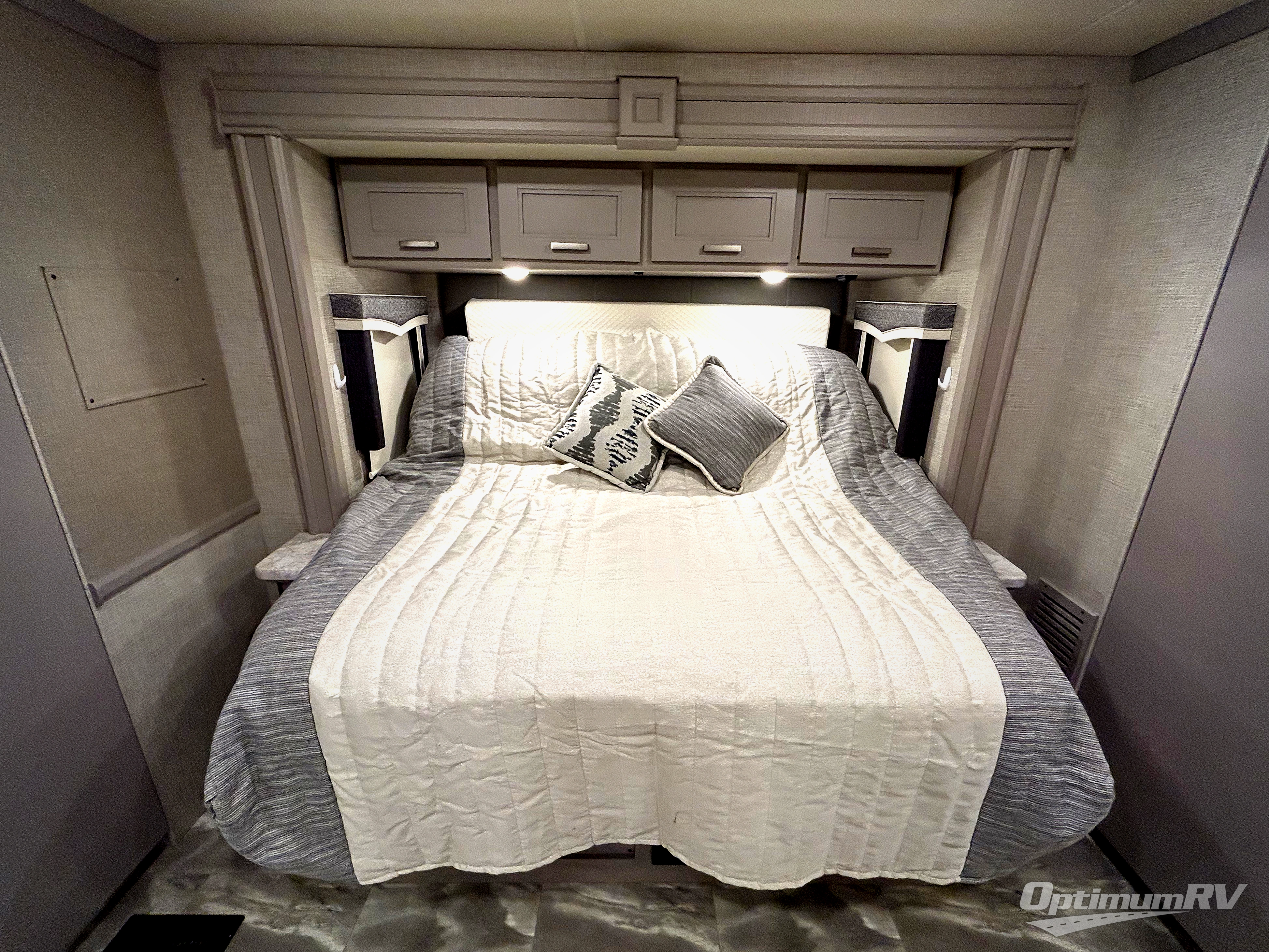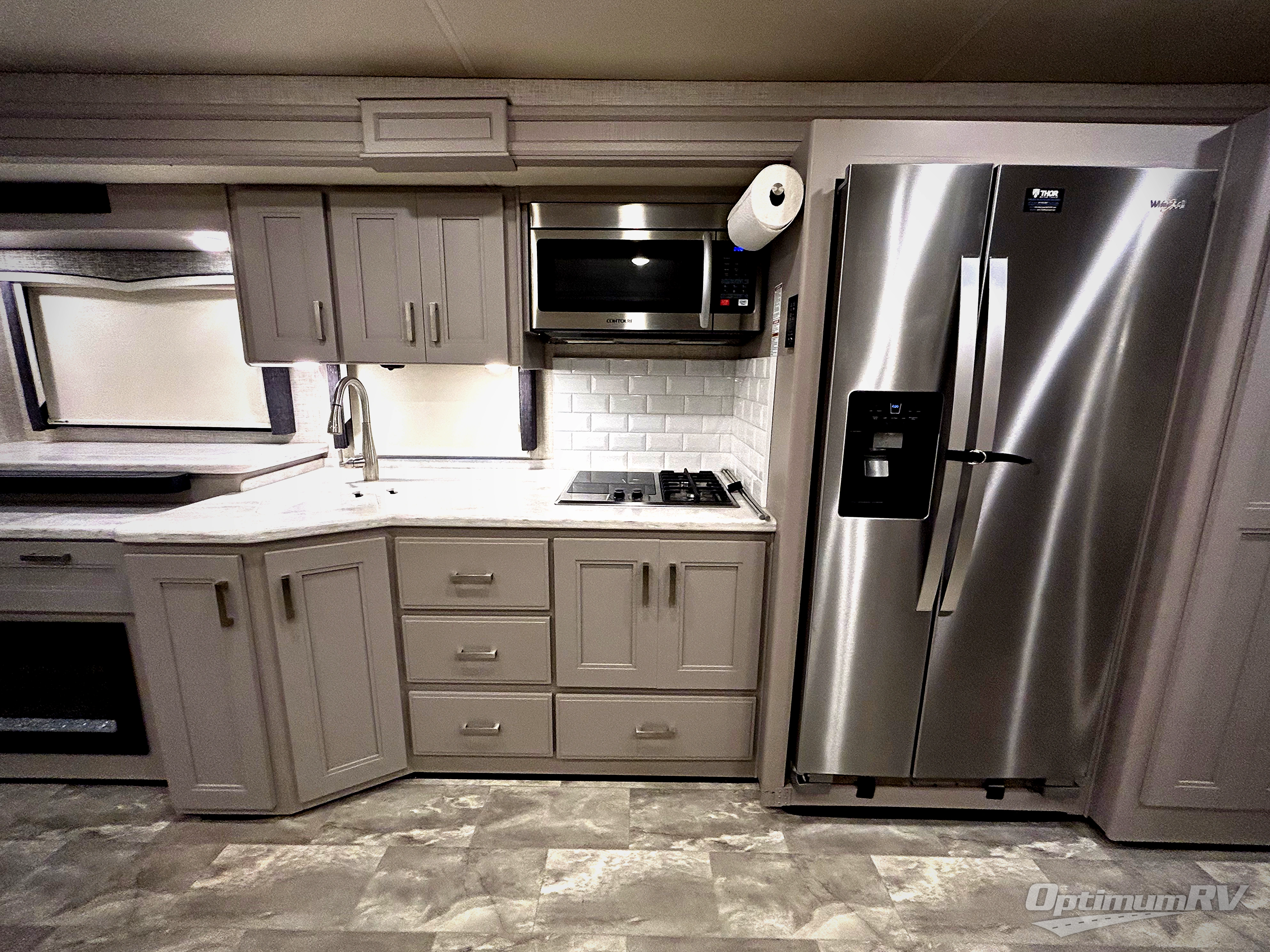 Hop on board the Challenger Class A gas motorhome by Thor Motor Coach for an adventure of a lifetime. The modern dash features a 10.1" touchscreen dash radio with Bluetooth and Sirius/XM radio, plus there are reclining/swivel leatherette captain's chairs for your comfort. Setting up your coach will be a breeze with the automatic leveling jacks with touchpad controls, and each model includes an Onan RV QG 5500 gas generator, dual roof A/C's, and many more amenities for hassle-free camping. The interior of the Challenger will have you feeling at home in a heartbeat. Residential vinyl flooring, solid surface countertops, and satin-finish cabinetry are just a few comforts you will enjoy. Each model also includes a Winegard ConnecT WiFi extender +4G to keep you connected to the outside world as you travel, and an entertainment package that will never leave you bored!