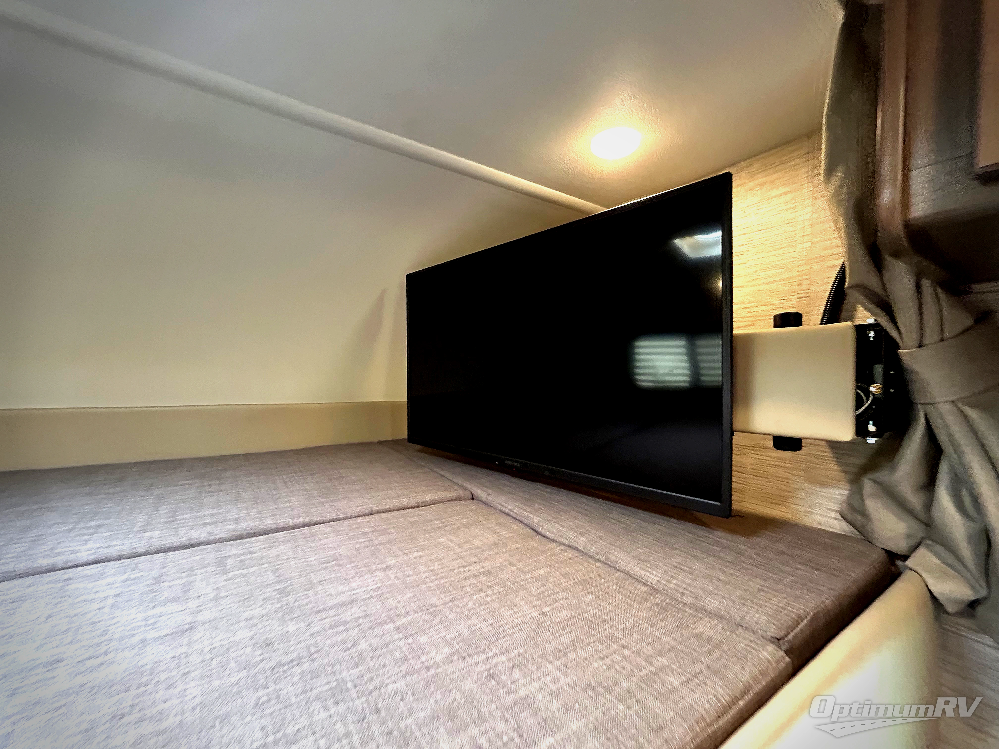 Get ready to travel for long periods of time in this coach that offers sleeping space for five when you utilize the rear corner queen bed, the Bunk over cab and the dream dinette. You and your friends will enjoy staying anywhere with the views out of the windows, the full bathroom only a few steps away and the kitchen amenities to feed everyone plus some. The chef will love the galley kitchen and being able to watch the 40" TV with swivel while cooking. You might even like to add an optional exterior 32" TV to enjoy while relaxing outside under the power awning with integrated LED lighting to enjoy at night.