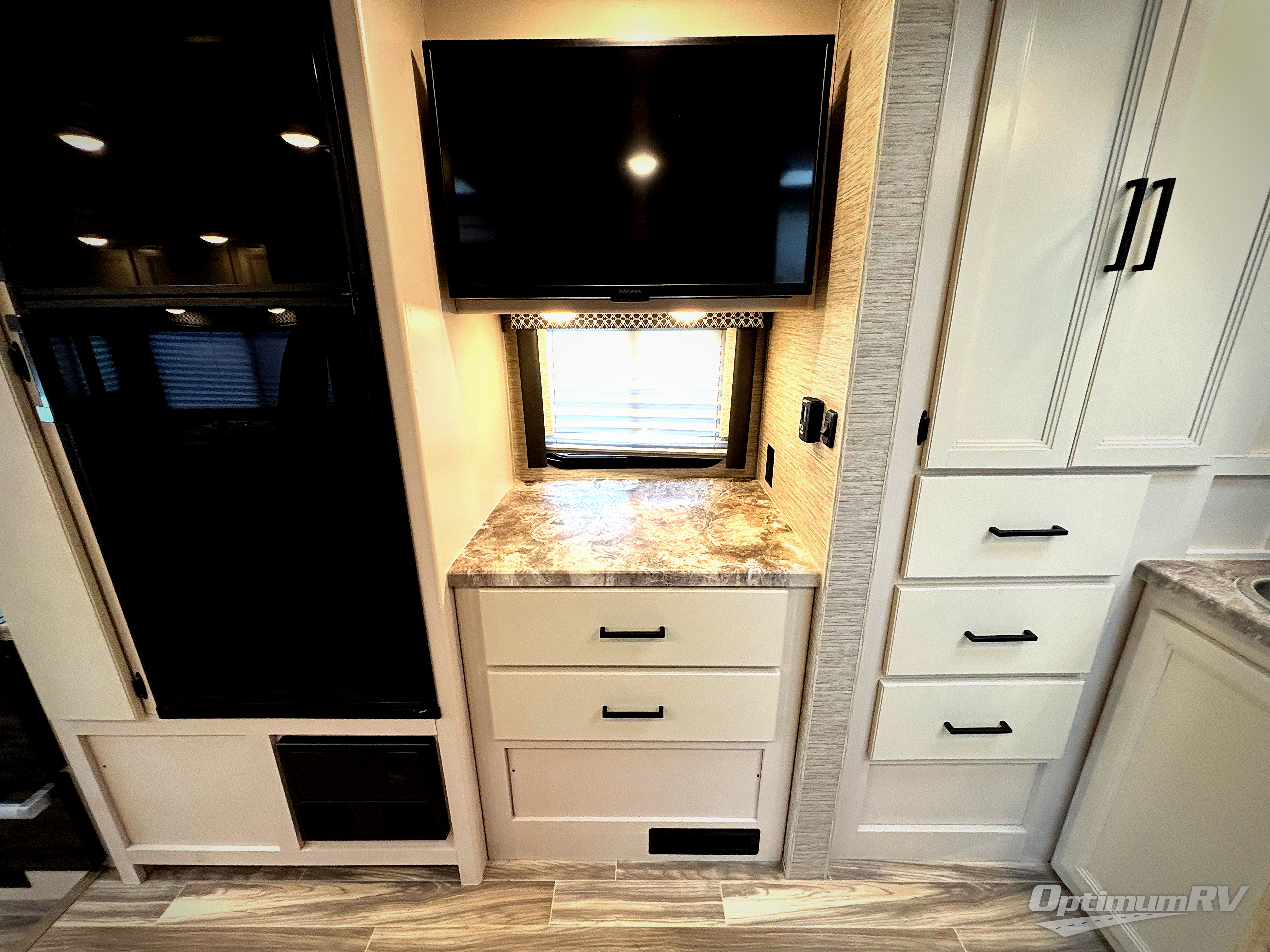 Its time to enjoy life and venture to see new places, enjoy events and visit with friends in your state or even further! You will love having a living area as well as a bedroom with the versatility of the Murphy bed and sofa combination. And the curtain allows you privacy when you have overnight guests sleeping on the dream dinette and the cab over bunk. You might like to add the 32" TV option across from the sofa if the 40" TV with swivel in the cab area isn't enough. There are full kitchen amenities for the cook including a double door refrigerator and a pantry to store all the goodies. And the sliding door into the rear full bathroom saves even more space for you to enjoy getting cleaned up and/or ready for bed or the next adventure.