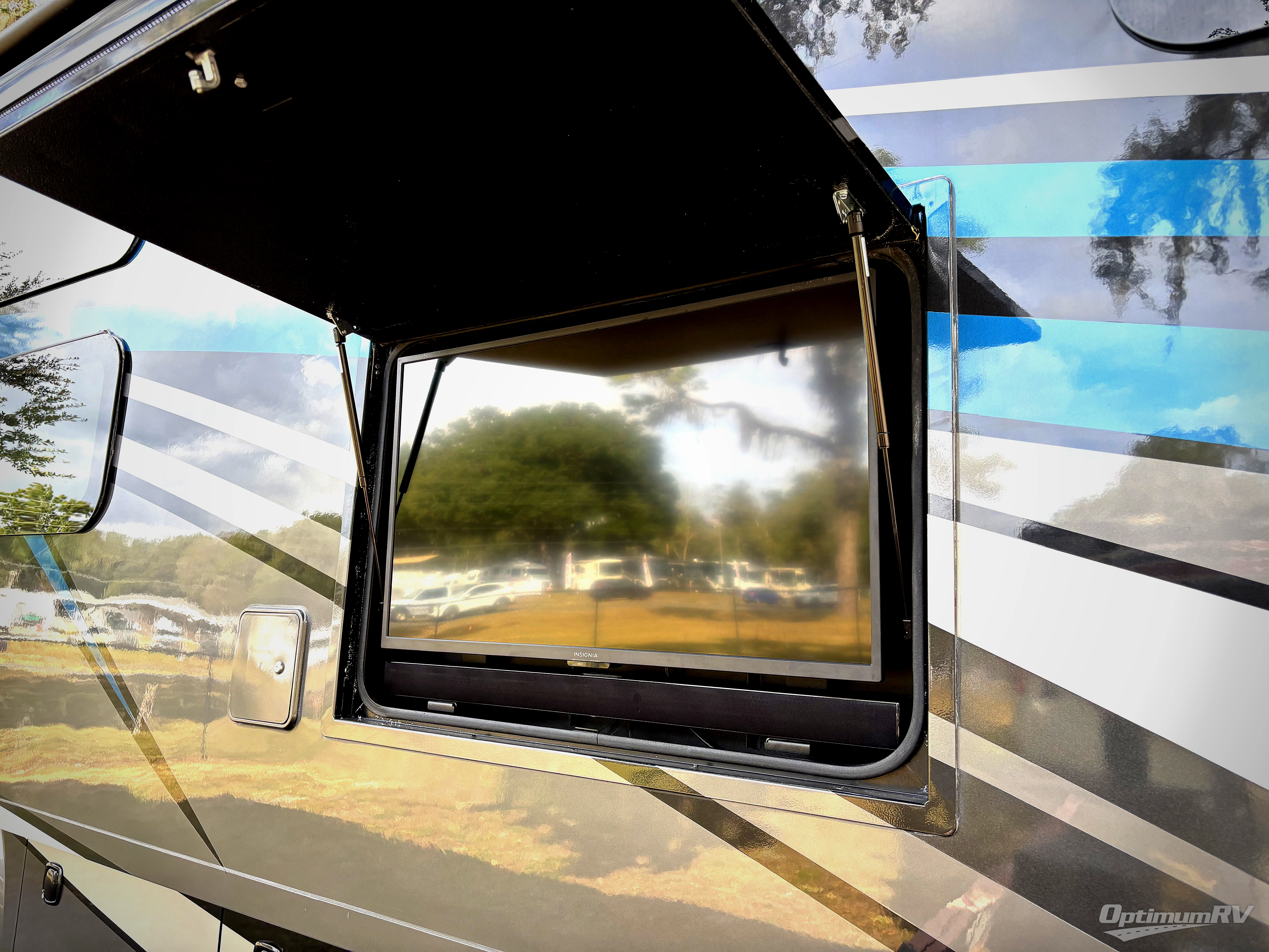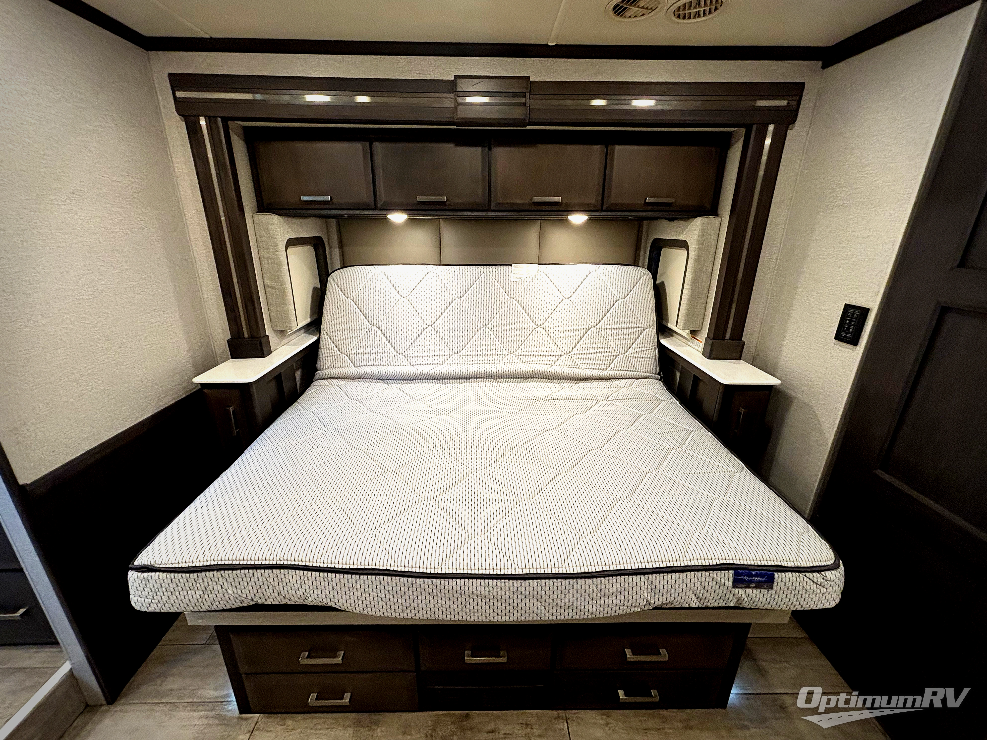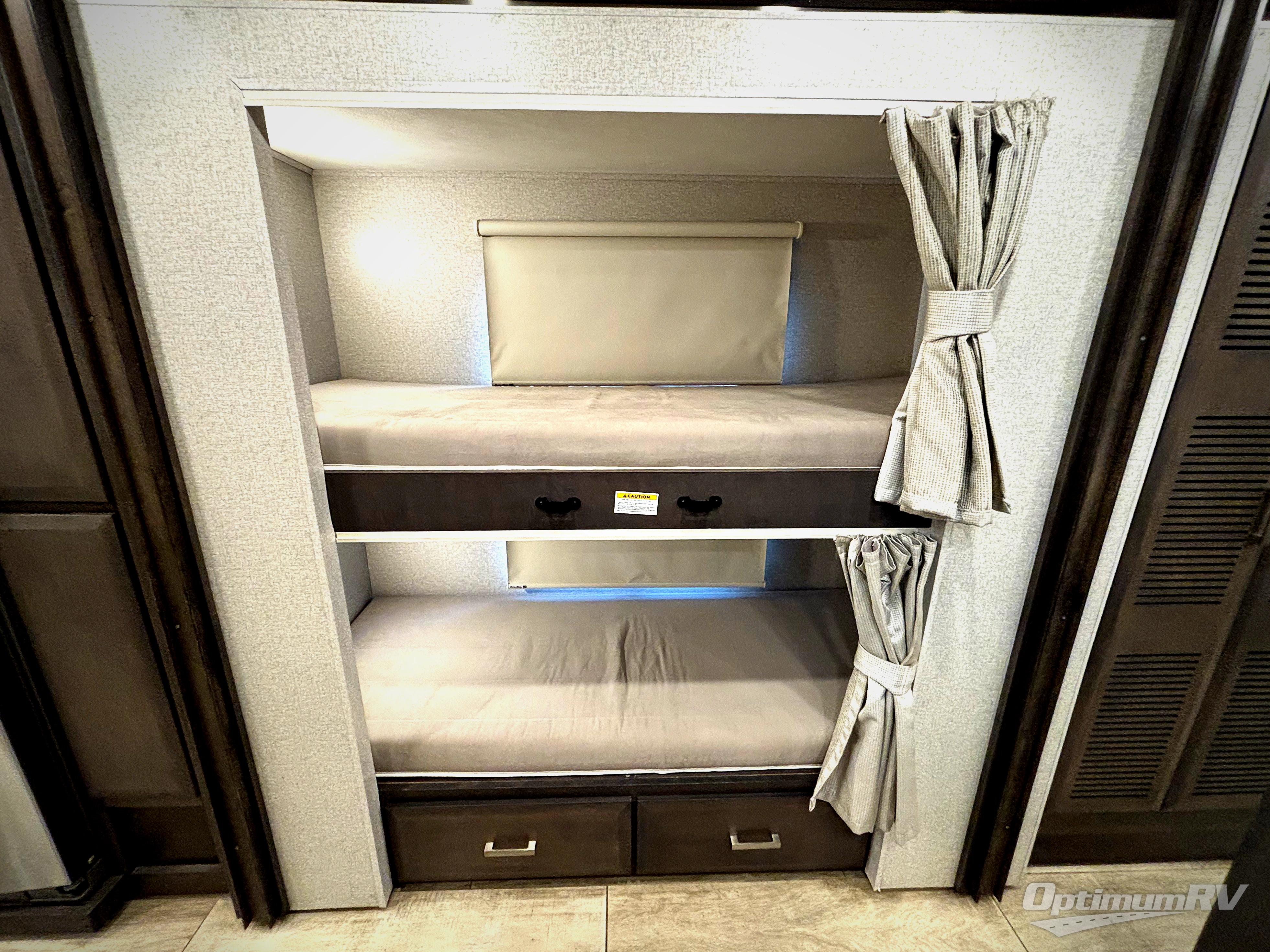 This Venetian Class A diesel motorhome has a high amount of luxury with two full bathrooms! One of those bathrooms is even included back in a master suite for you to enjoy, and this bathroom contains a dual-sink vanity to help you both get ready with ease. You'll have quite a lot of sleeping space too with the inclining king bed, 27" x 74" bunk beds, 80" sofa, 90" Dream Dinette, and 48" x 74" drop-down bunk above the cab. On top of that, you have the storage space and entertainment needed for all of those people with the two linen closets, a bedroom closet and dresser, two kitchen pantries, a residential refrigerator, and four LED HDTVs.