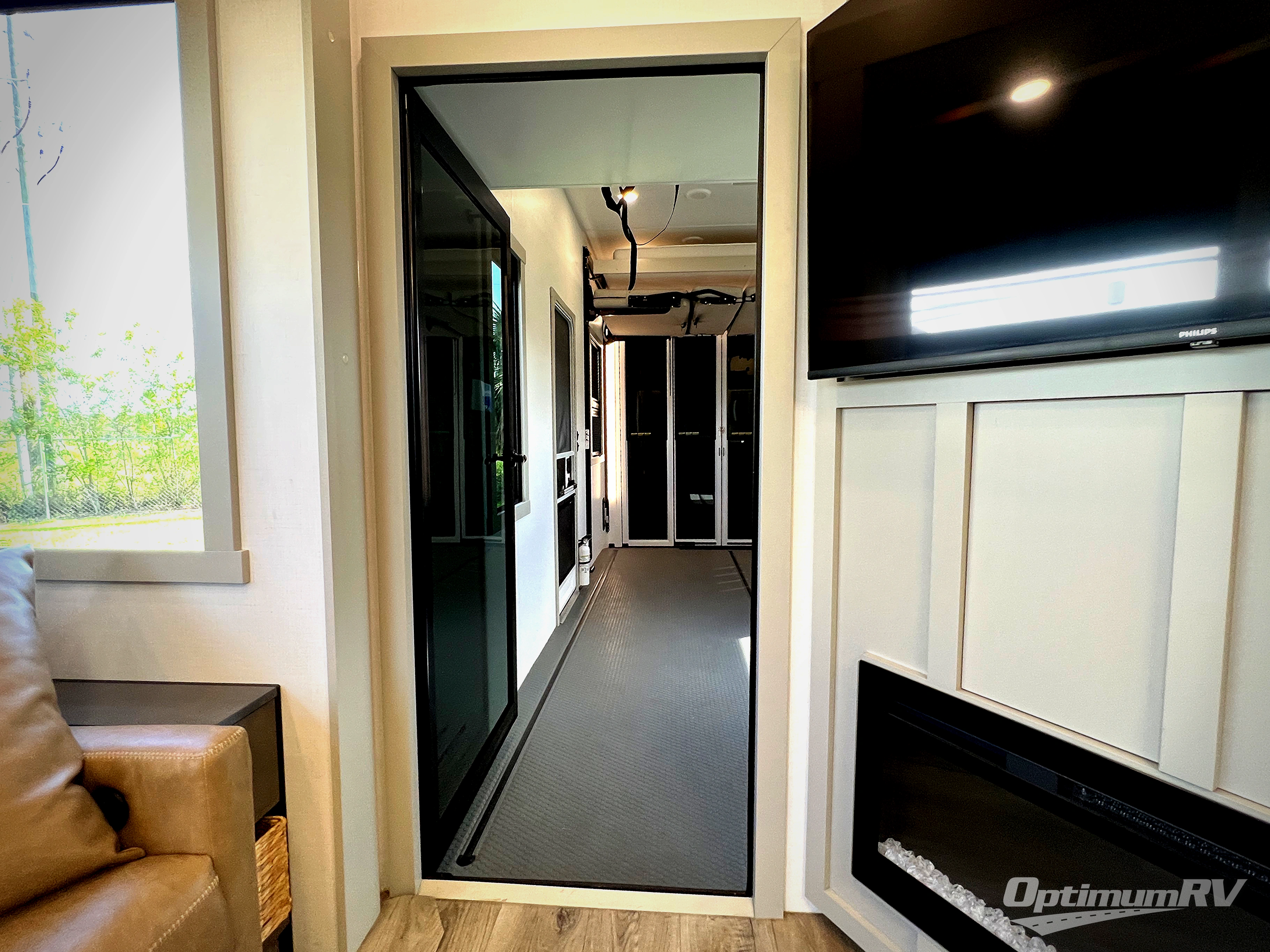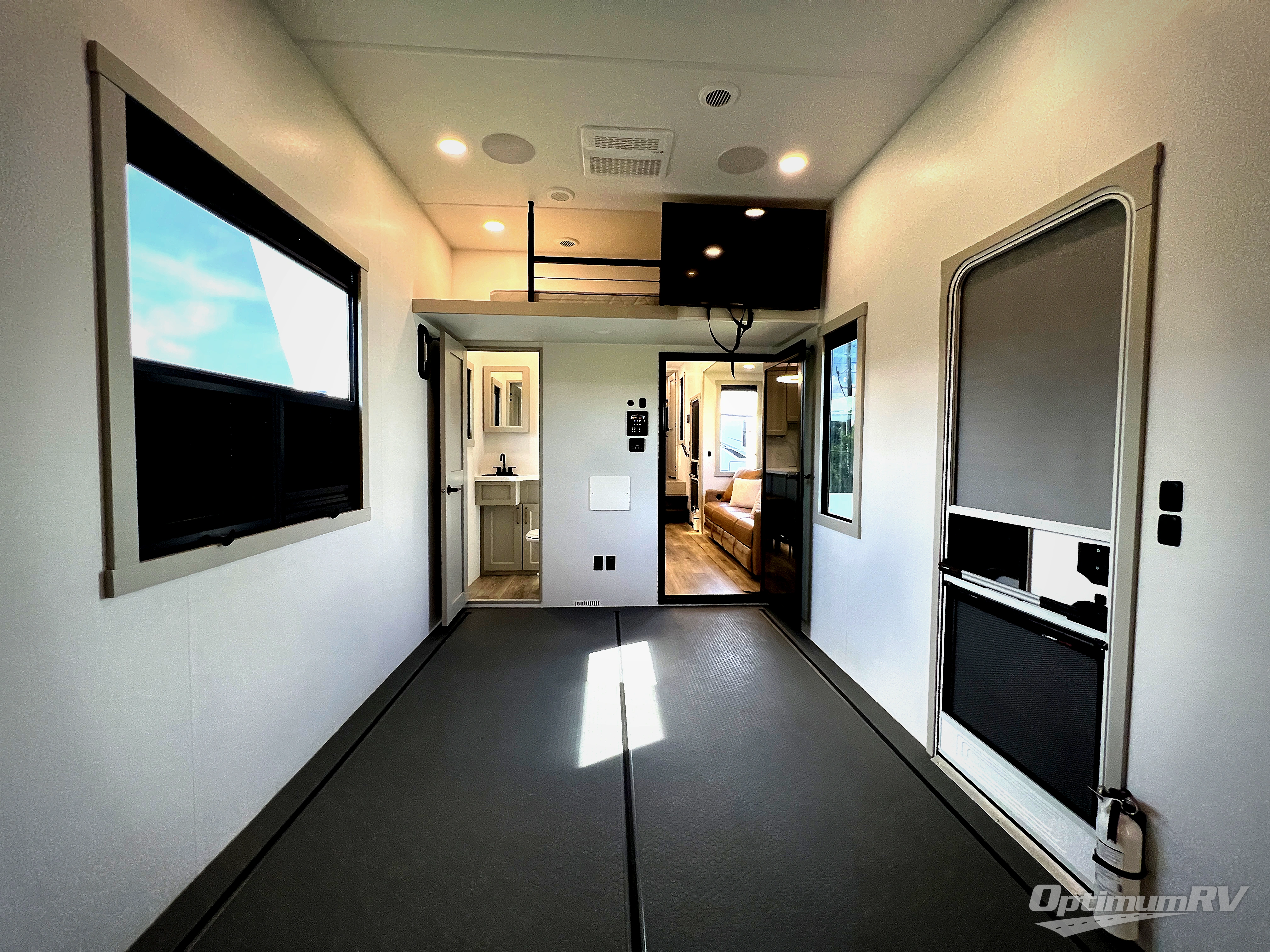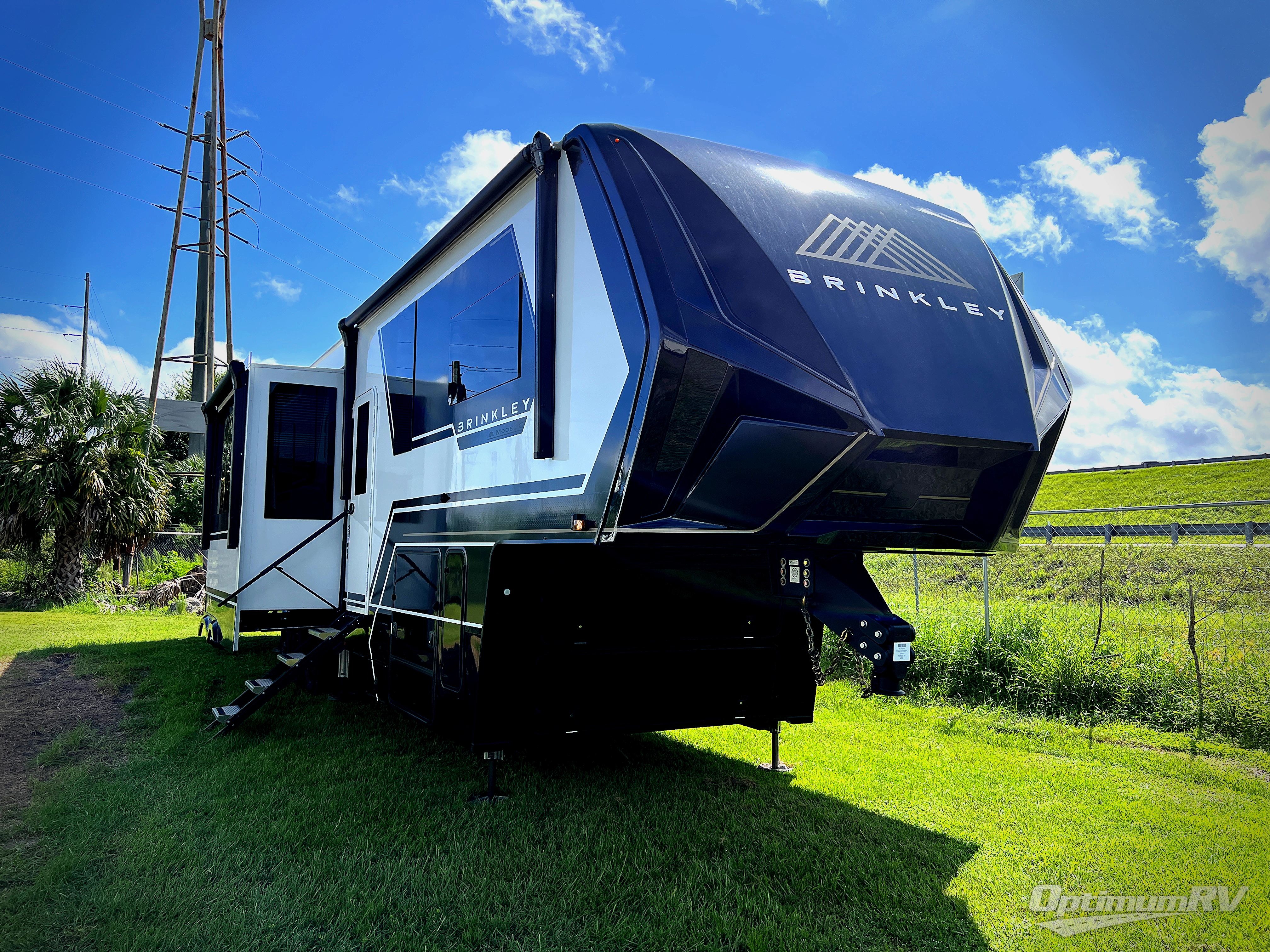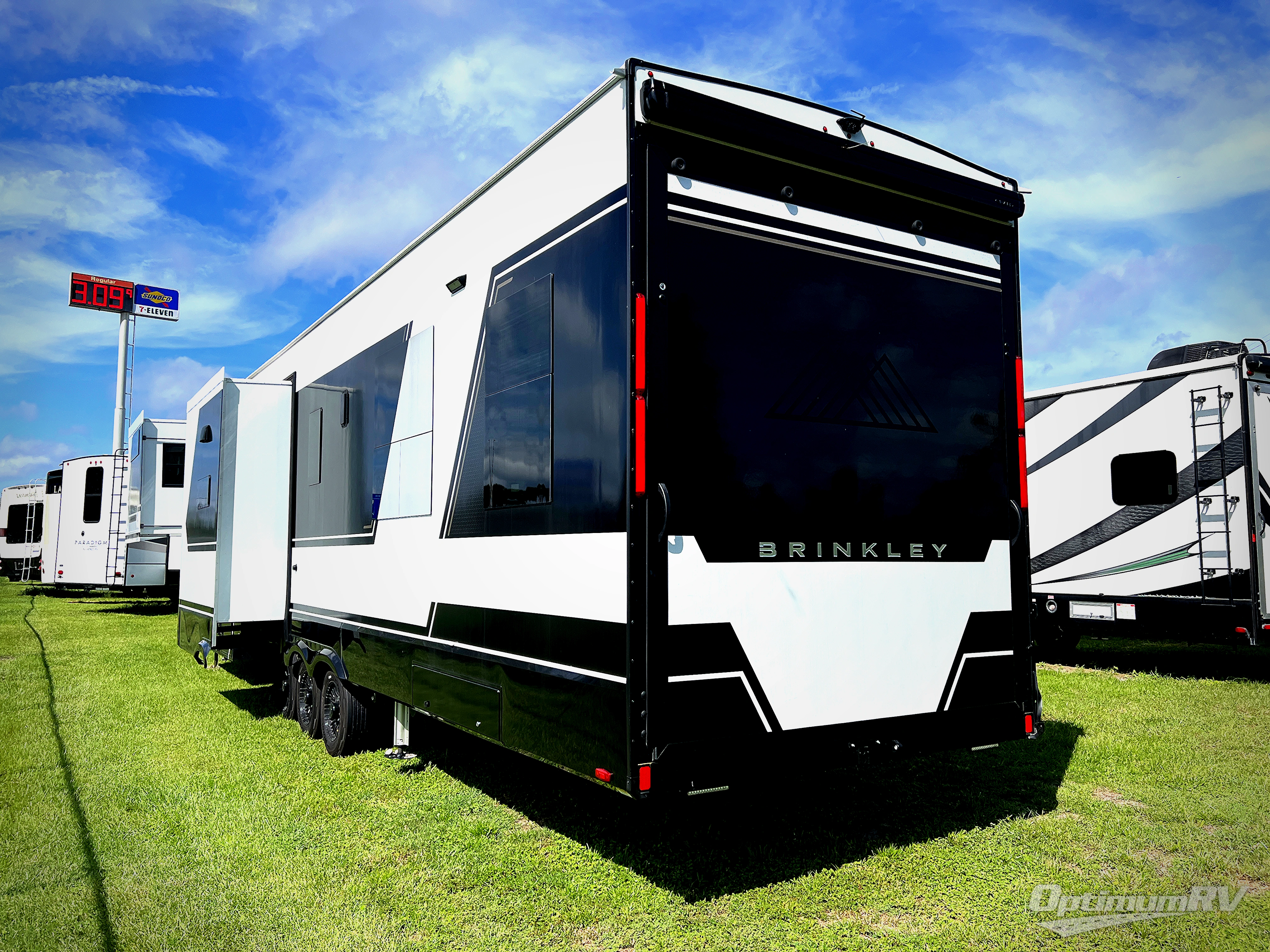 With any Model G toy hauler fifth wheel by Brinkley you will enjoy luxurious amenities, tons of storage space, and innovative features that have been developed and tested in the real world. Durable construction includes an industry leading PDI process, an industry best insulation package, and reinforced and walkable slide roofs. Some of the exterior features you'll find are a 3-way pass-through with a multi-functional flip-up bulkhead wall, under I-beam storage, a MAX-Vision reverse lighting system, and a low-maintenance roof to name a few. A Rockford Fosgate audio system comes standard, along with a OneControl app system that lets you control your fifth wheel's functions right from your mobile device. You will find the solar system with a designated storage area to be ultra convenient, plus there is a FlexPower 5500 with a dual fuel inverter generator for all your power needs. Head inside to find a residential interior with Brinkley's CraftSense wood trim construction, floating entrance steps, integrated window screens and insulated blackout blinds, and residential solid surface countertops plus backsplash. You will also enjoy the neon shower lighting and recessed medicine cabinets in the bath, plus motion activated LED bed lights and dual bedside outlets in the bedroom. Choose a Model G toy hauler fifth wheel to experience all the luxury it has to offer!