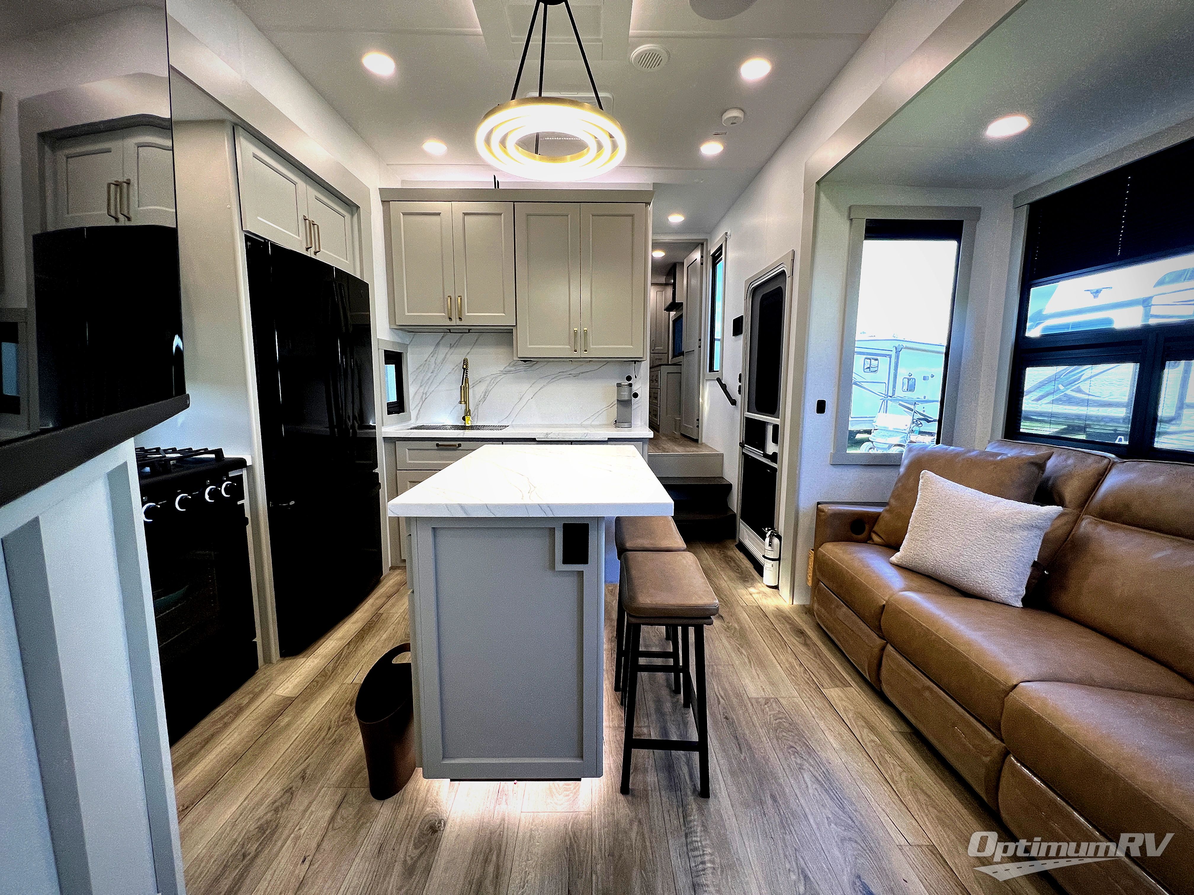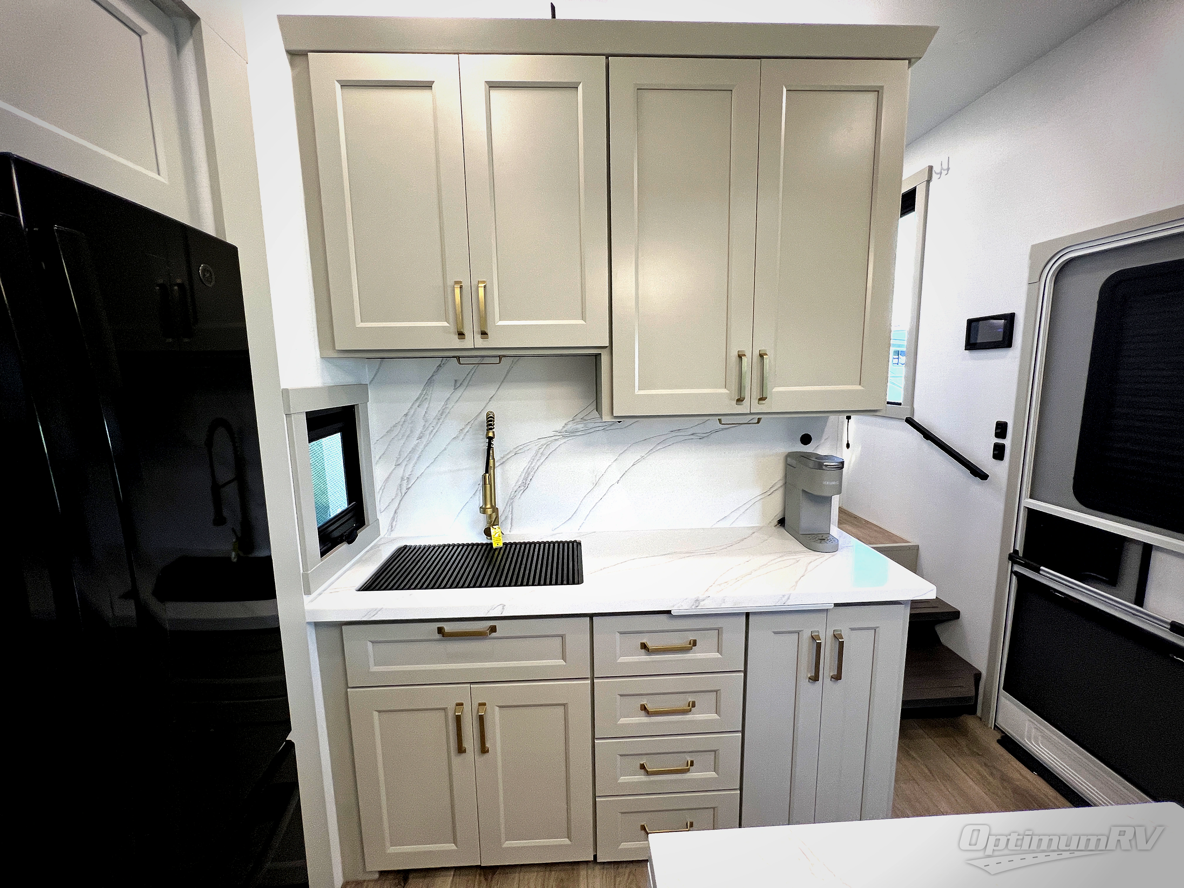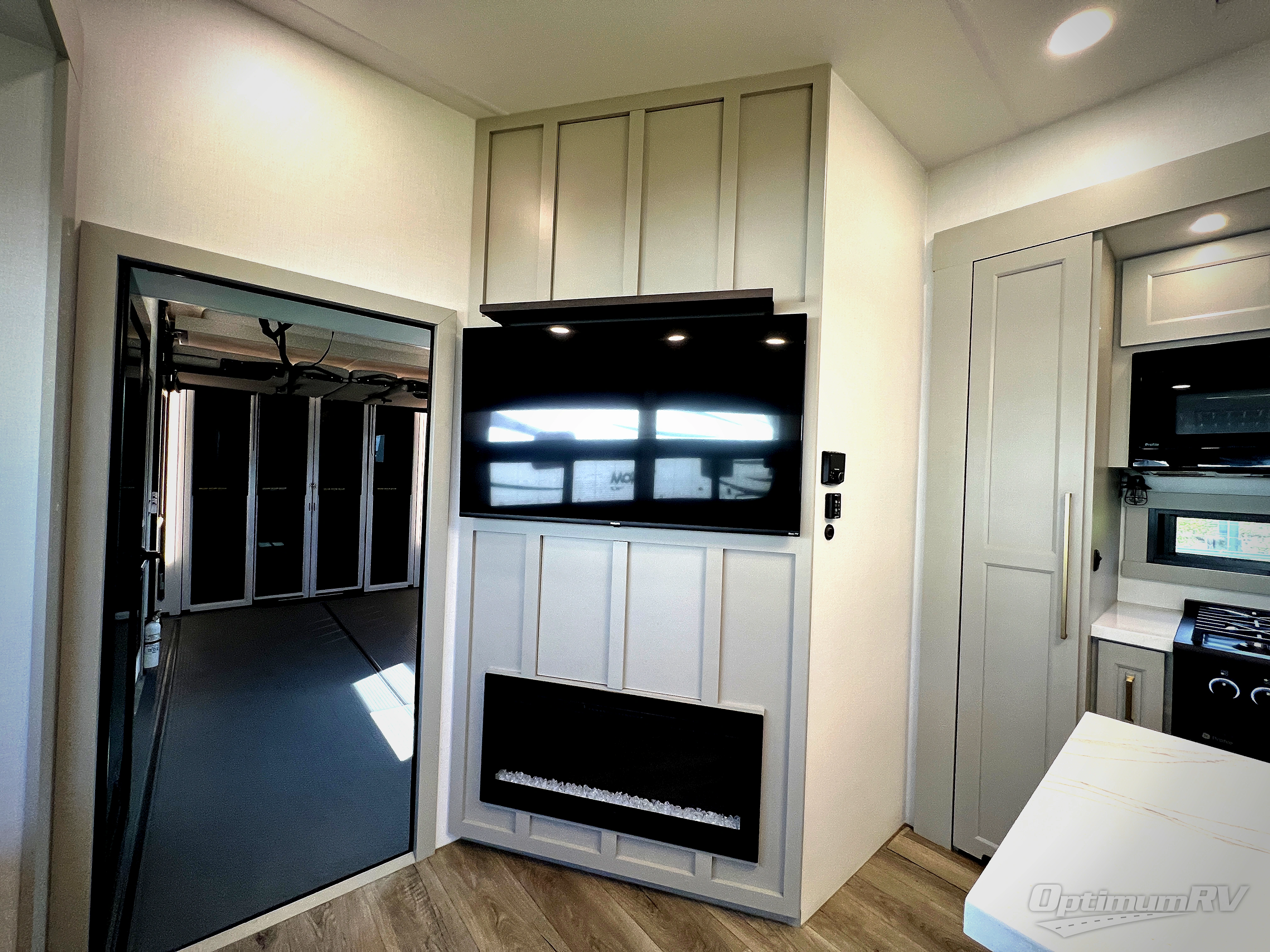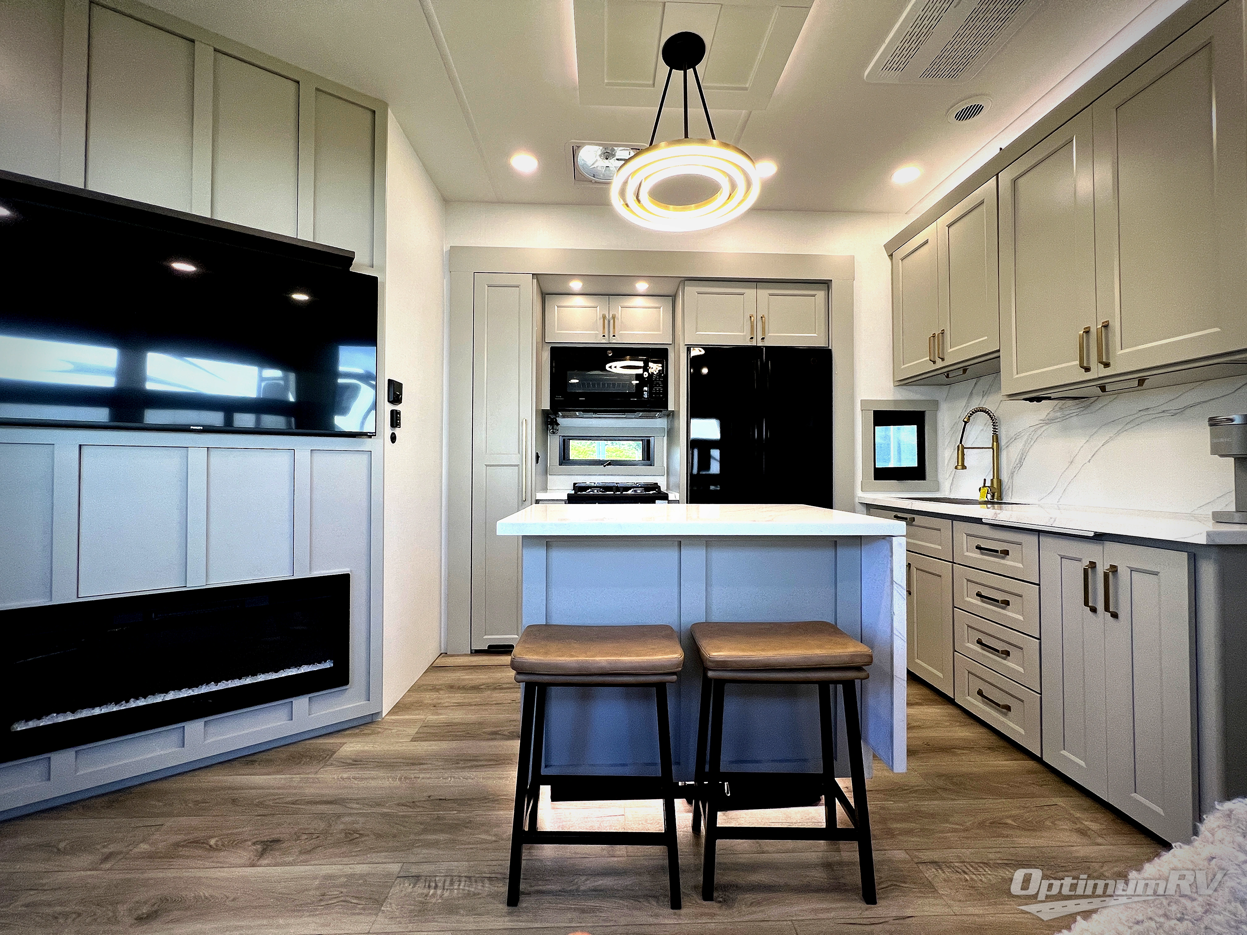 With any Model G toy hauler fifth wheel by Brinkley you will enjoy luxurious amenities, tons of storage space, and innovative features that have been developed and tested in the real world. Durable construction includes an industry leading PDI process, an industry best insulation package, and reinforced and walkable slide roofs. Some of the exterior features you'll find are a 3-way pass-through with a multi-functional flip-up bulkhead wall, under I-beam storage, a MAX-Vision reverse lighting system, and a low-maintenance roof to name a few. A Rockford Fosgate audio system comes standard, along with a OneControl app system that lets you control your fifth wheel's functions right from your mobile device. You will find the solar system with a designated storage area to be ultra convenient, plus there is a FlexPower 5500 with a dual fuel inverter generator for all your power needs. Head inside to find a residential interior with Brinkley's CraftSense wood trim construction, floating entrance steps, integrated window screens and insulated blackout blinds, and residential solid surface countertops plus backsplash. You will also enjoy the neon shower lighting and recessed medicine cabinets in the bath, plus motion activated LED bed lights and dual bedside outlets in the bedroom. Choose a Model G toy hauler fifth wheel to experience all the luxury it has to offer!