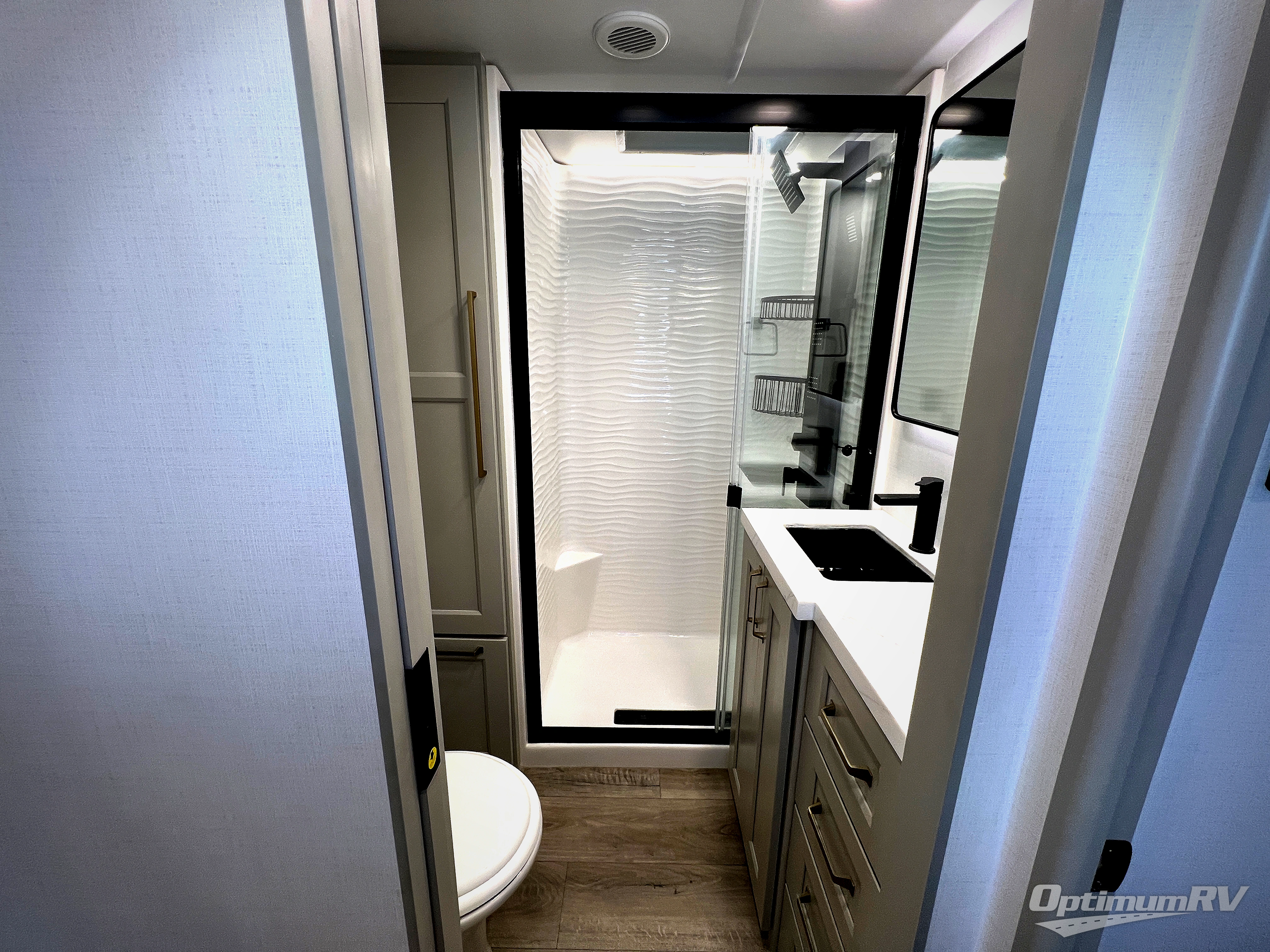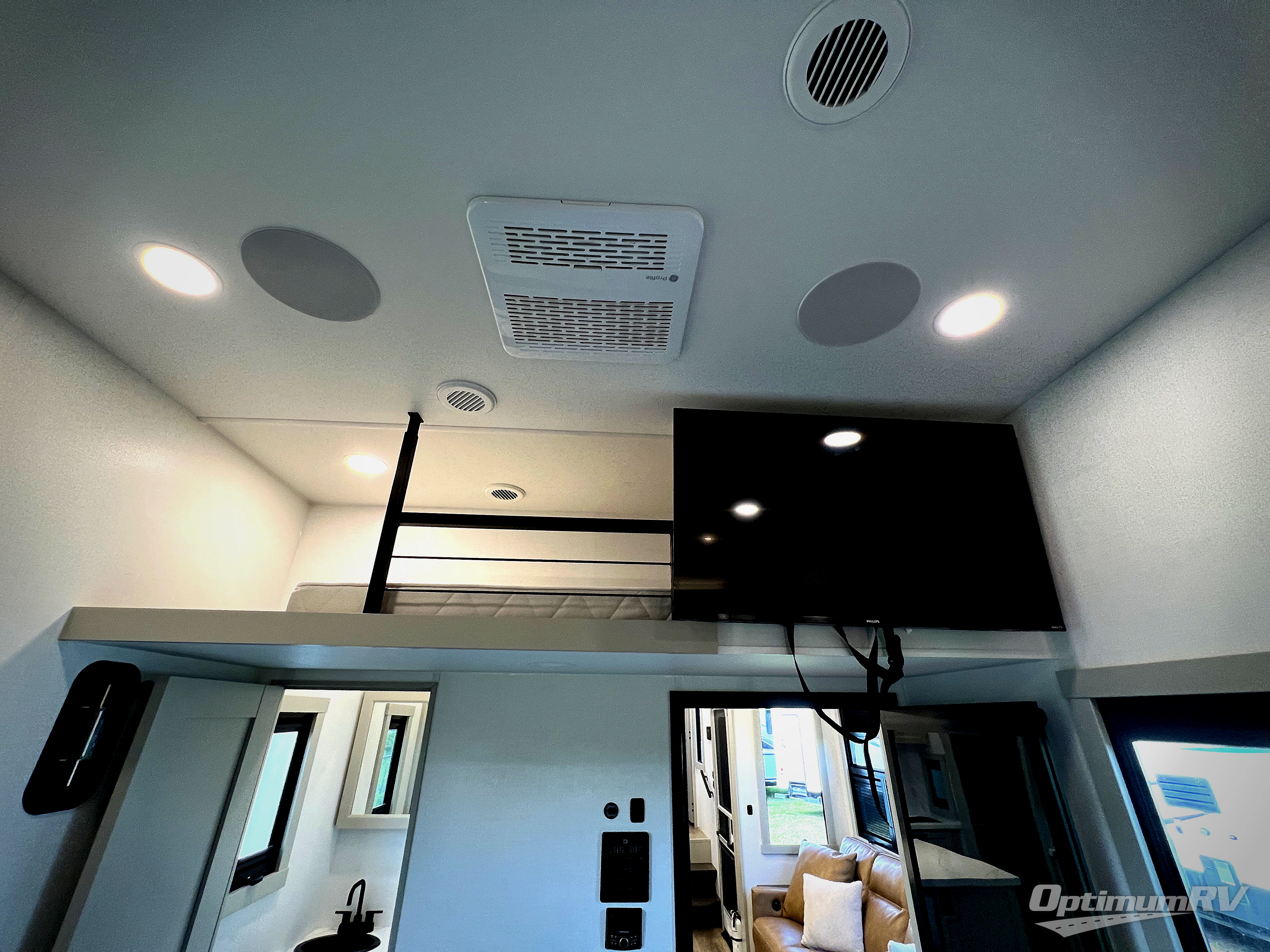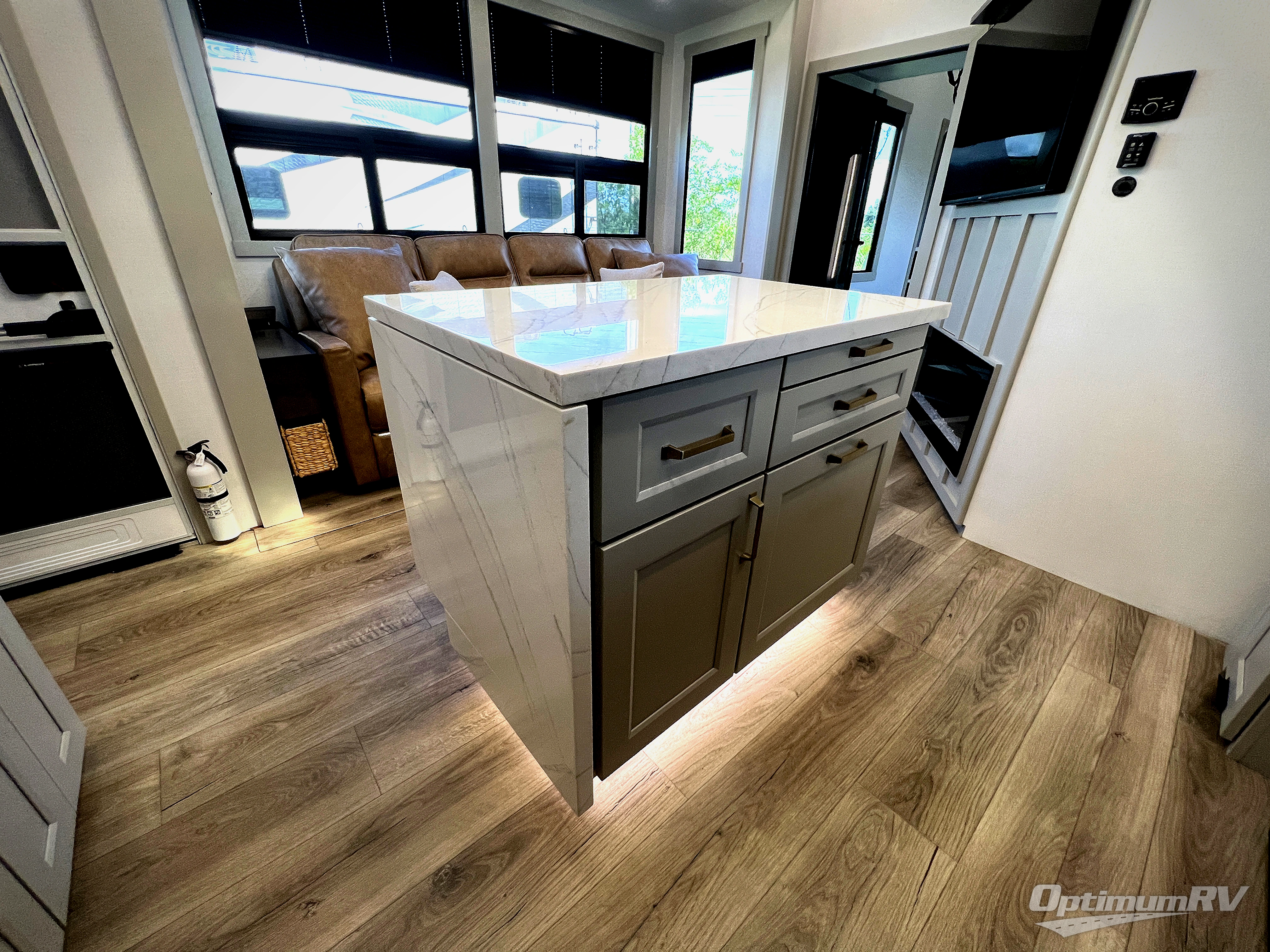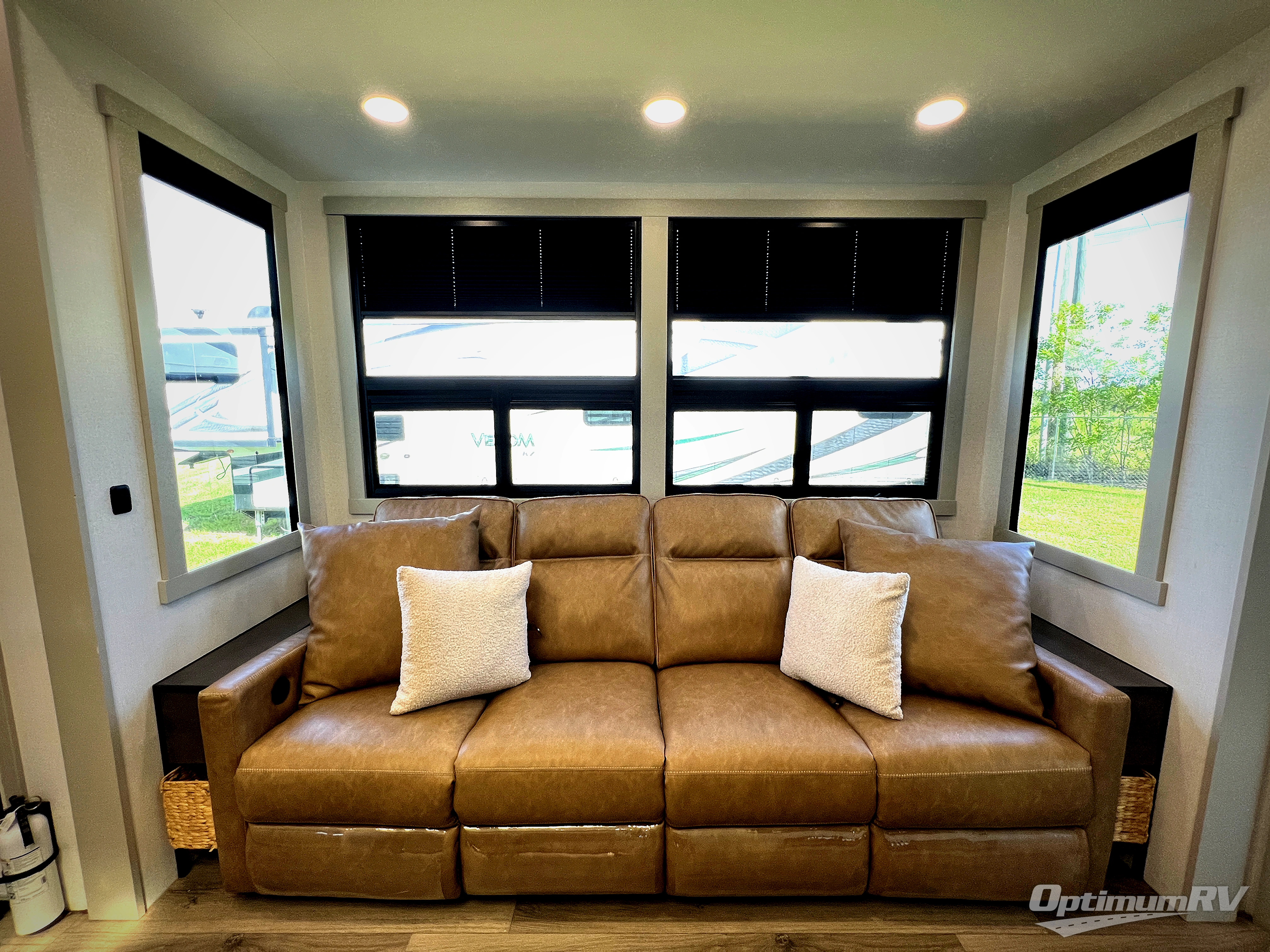 With any Model G toy hauler fifth wheel by Brinkley you will enjoy luxurious amenities, tons of storage space, and innovative features that have been developed and tested in the real world. Durable construction includes an industry leading PDI process, an industry best insulation package, and reinforced and walkable slide roofs. Some of the exterior features you'll find are a 3-way pass-through with a multi-functional flip-up bulkhead wall, under I-beam storage, a MAX-Vision reverse lighting system, and a low-maintenance roof to name a few. A Rockford Fosgate audio system comes standard, along with a OneControl app system that lets you control your fifth wheel's functions right from your mobile device. You will find the solar system with a designated storage area to be ultra convenient, plus there is a FlexPower 5500 with a dual fuel inverter generator for all your power needs. Head inside to find a residential interior with Brinkley's CraftSense wood trim construction, floating entrance steps, integrated window screens and insulated blackout blinds, and residential solid surface countertops plus backsplash. You will also enjoy the neon shower lighting and recessed medicine cabinets in the bath, plus motion activated LED bed lights and dual bedside outlets in the bedroom. Choose a Model G toy hauler fifth wheel to experience all the luxury it has to offer!
