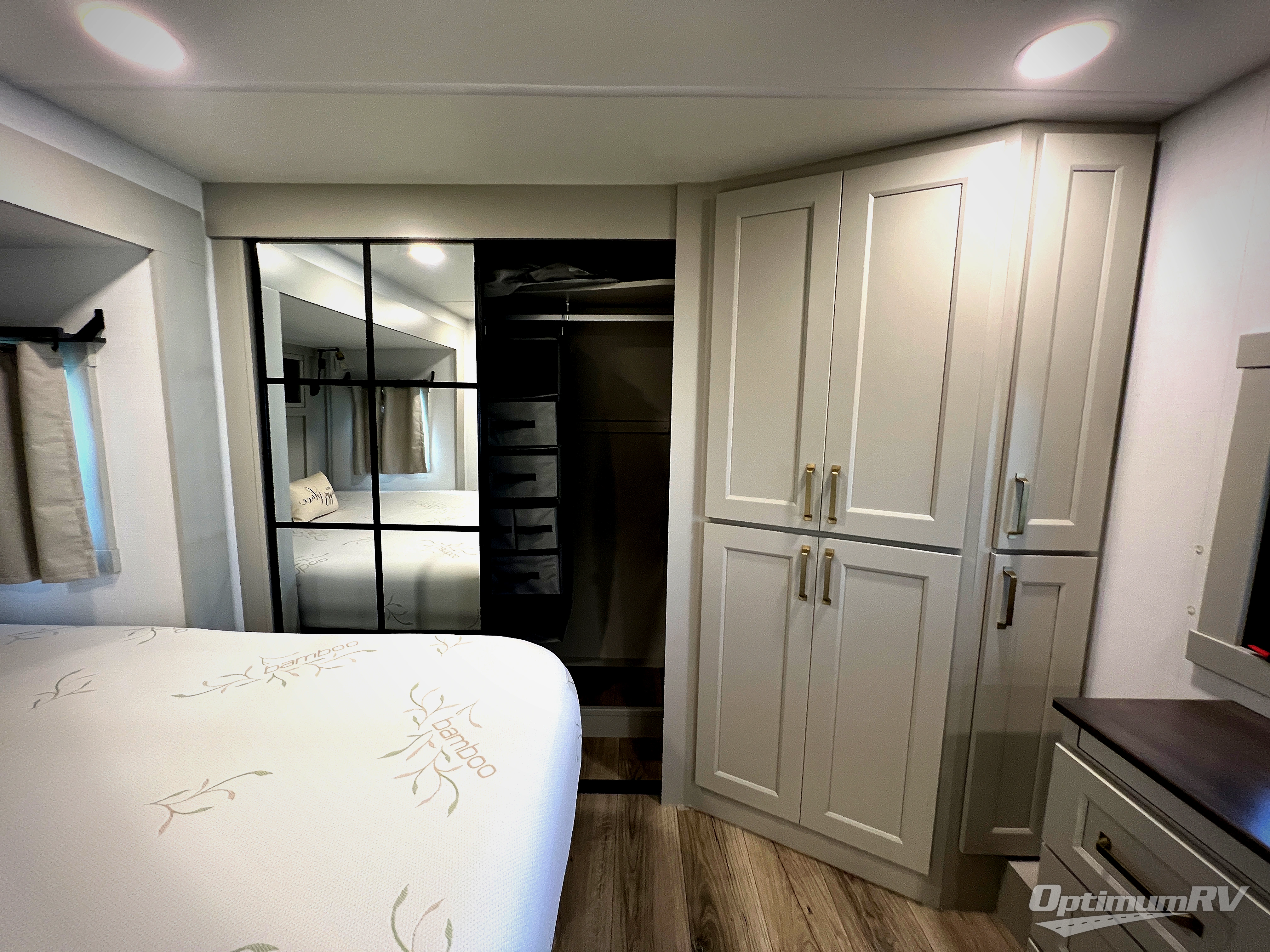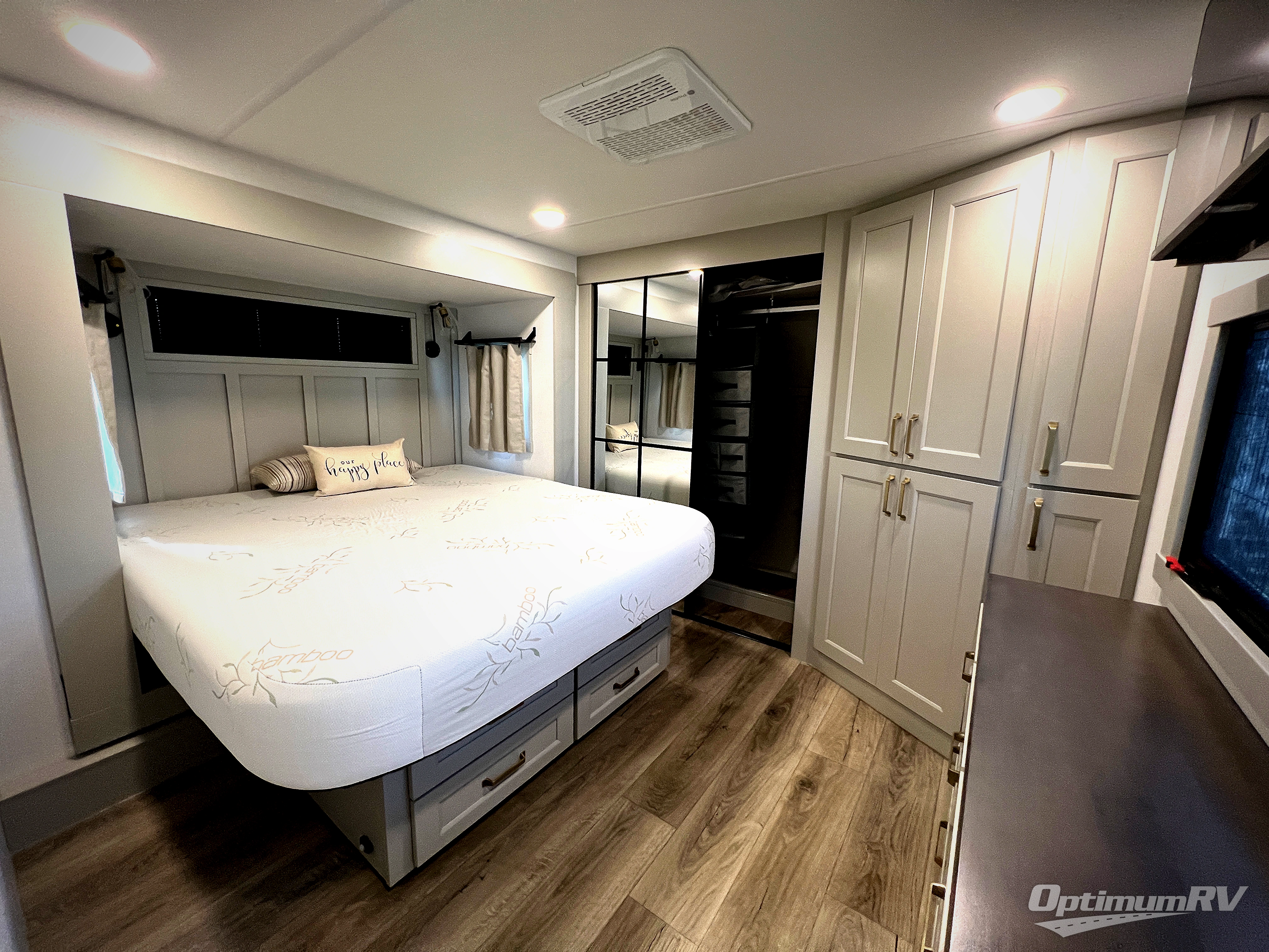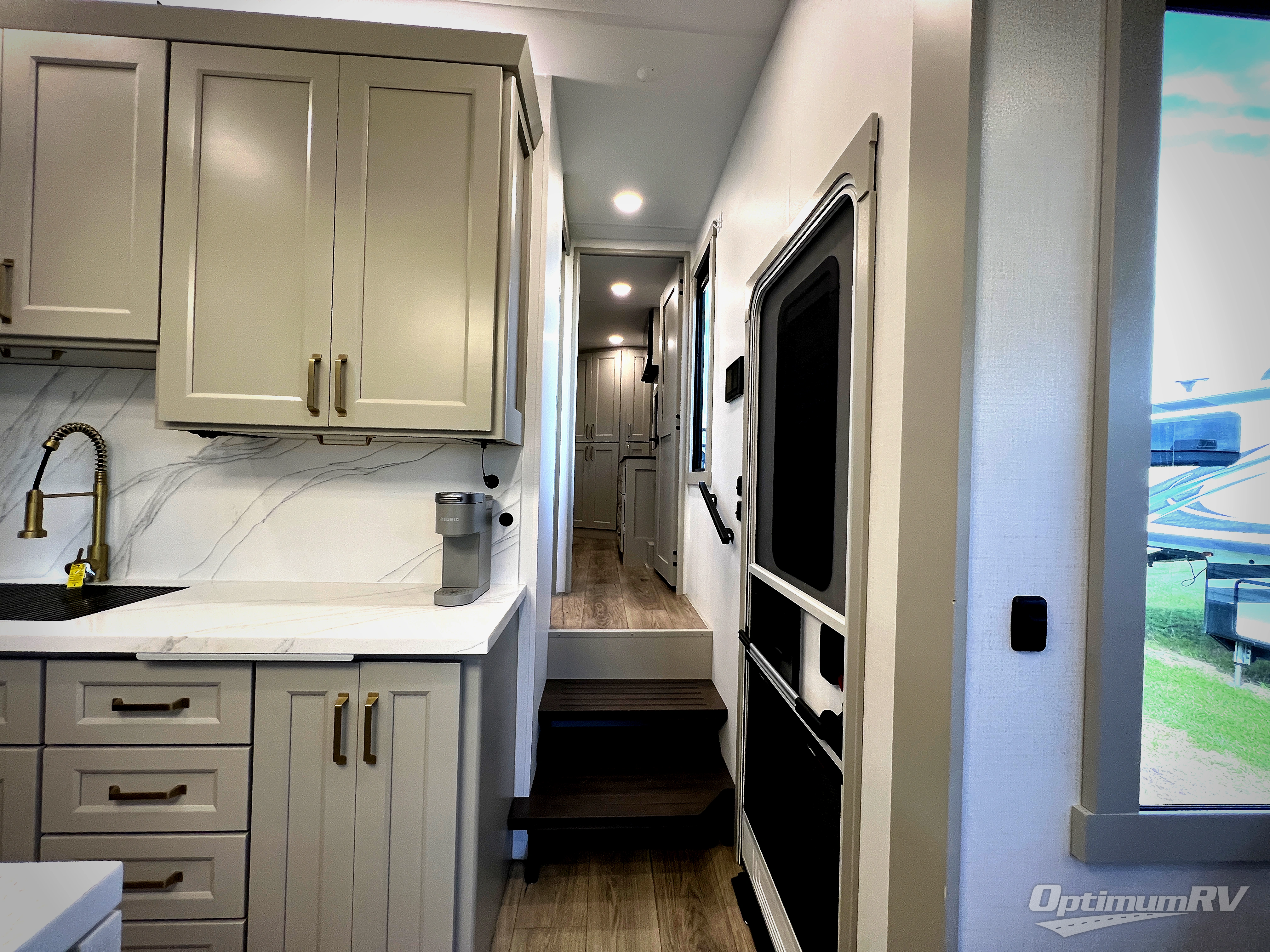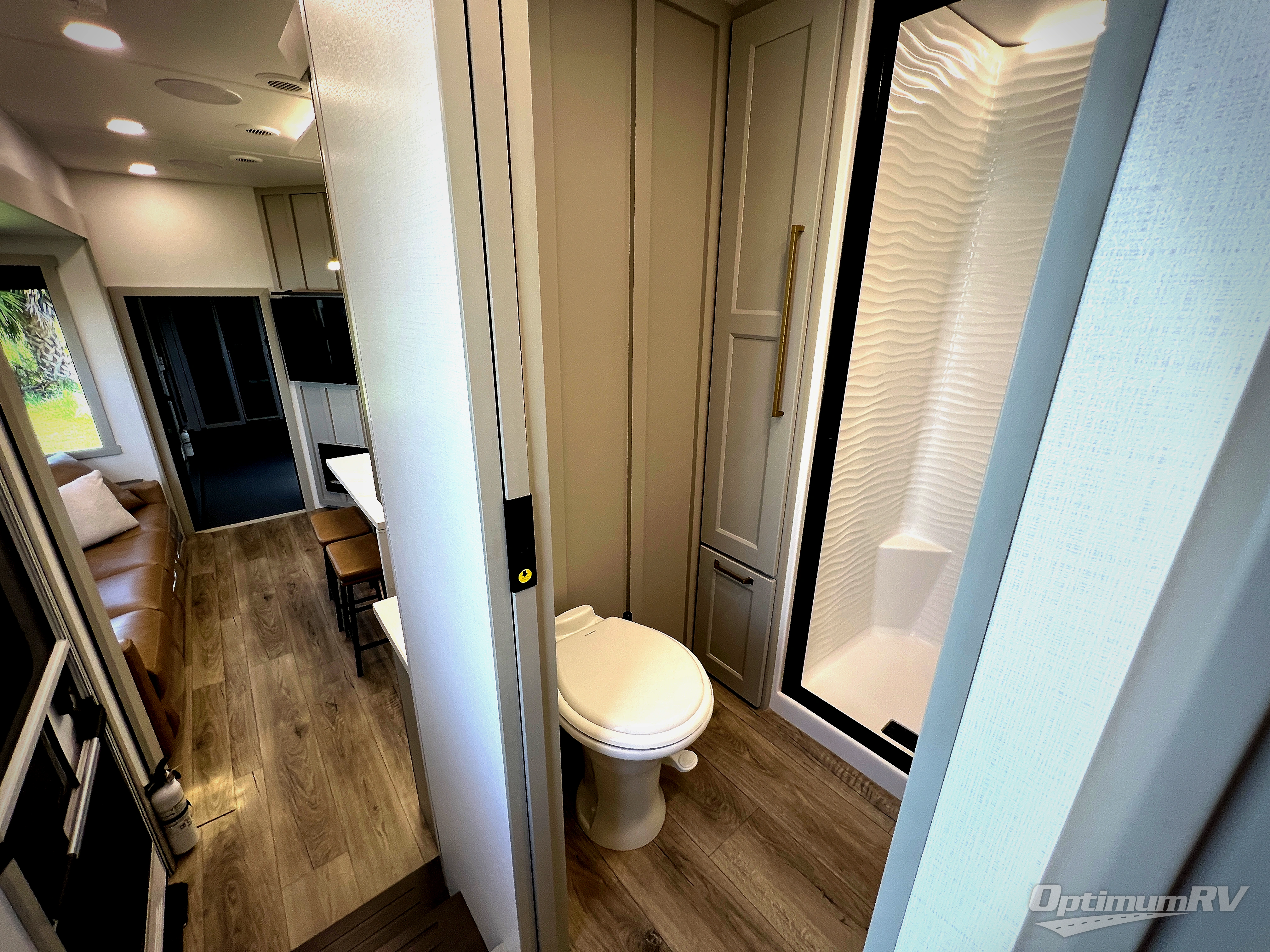 With any Model G toy hauler fifth wheel by Brinkley you will enjoy luxurious amenities, tons of storage space, and innovative features that have been developed and tested in the real world. Durable construction includes an industry leading PDI process, an industry best insulation package, and reinforced and walkable slide roofs. Some of the exterior features you'll find are a 3-way pass-through with a multi-functional flip-up bulkhead wall, under I-beam storage, a MAX-Vision reverse lighting system, and a low-maintenance roof to name a few. A Rockford Fosgate audio system comes standard, along with a OneControl app system that lets you control your fifth wheel's functions right from your mobile device. You will find the solar system with a designated storage area to be ultra convenient, plus there is a FlexPower 5500 with a dual fuel inverter generator for all your power needs. Head inside to find a residential interior with Brinkley's CraftSense wood trim construction, floating entrance steps, integrated window screens and insulated blackout blinds, and residential solid surface countertops plus backsplash. You will also enjoy the neon shower lighting and recessed medicine cabinets in the bath, plus motion activated LED bed lights and dual bedside outlets in the bedroom. Choose a Model G toy hauler fifth wheel to experience all the luxury it has to offer!