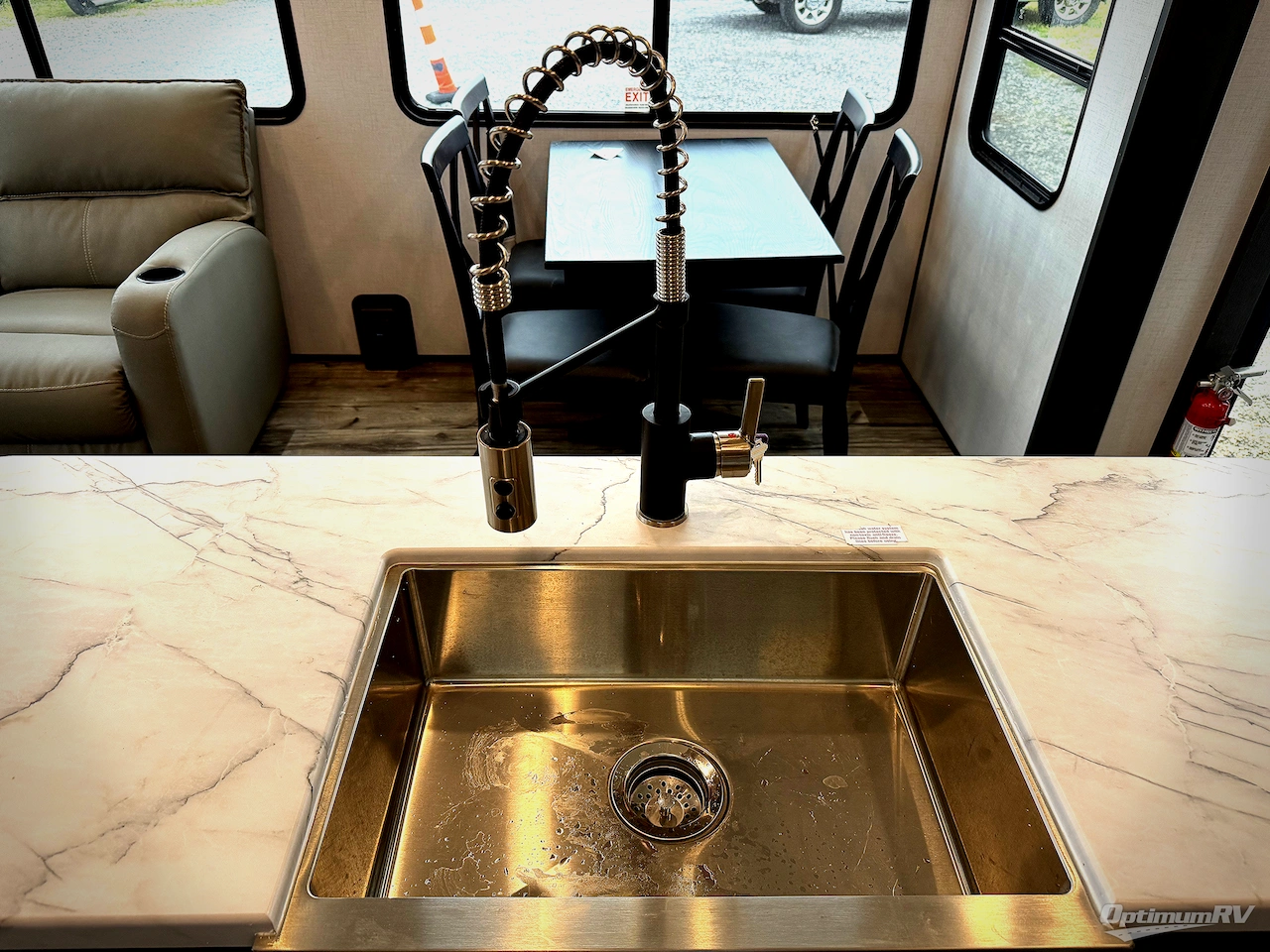 If you've been looking for a travel trailer with more comfort and ample sleeping space, check this one out! There is a loft area with two beds the little ones are sure to love, plus a rear private bedroom with a king bed slide out, a closet with washer and dryer prep, and its own exterior entry door. The spacious full bath includes a large linen closet to store clean towels, plus a shower with a seat for added convenience. Head to the combined kitchen and living area to relax on the theater seating across from the entertainment center and fireplace, or dine at the free-standing dinette. There is also a tri-fold sofa where additional guests can sleep!