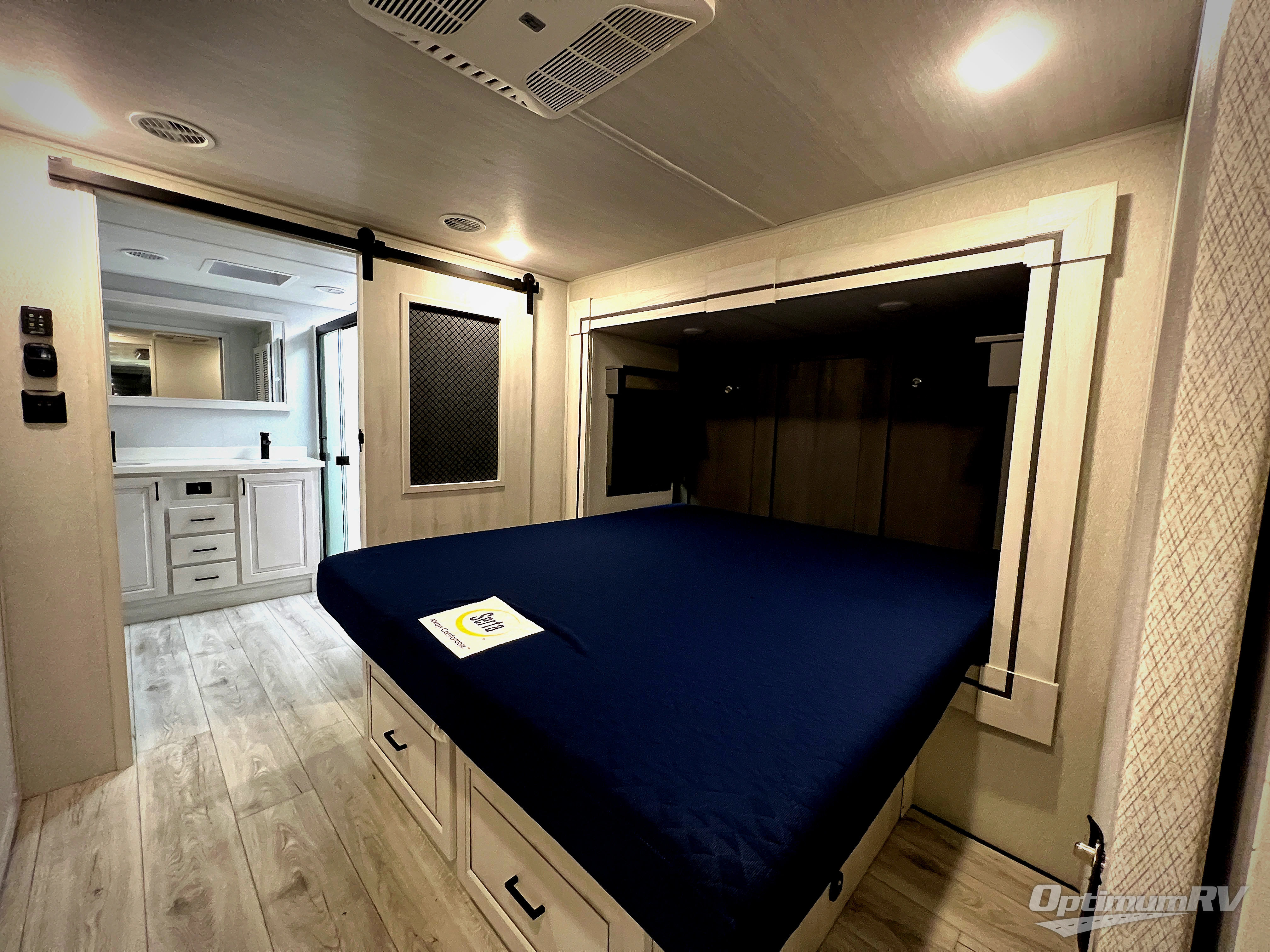 There is just too much luxury to name on the EAST TO WEST Ahara fifth wheel! These units are quite impressive, and once you see them, you'll know what we mean. The Ahara first grabs your attention with its hi-gloss gel-coated fiberglass exterior which showcases two power awnings with LED lights, an LP quick connect, an exterior cable/satellite hookup, and a universal all-in-one docking station. For towing, you'll find a MORryde CRE 3000 suspension, Dexter Gladiator thick-wall 7,000-LB axles with Nev-R-Adjust brakes, and preparations for a rearview camera. Traveling during all seasons is also made easy with the high-efficiency triple A/C system, a 40,000 BTU high-capacity furnace, a heated, insulated, and enclosed underbelly and dump valves with circulating heat, and Radiant Technology Composites insulation in the roof, front cap, and underbelly.