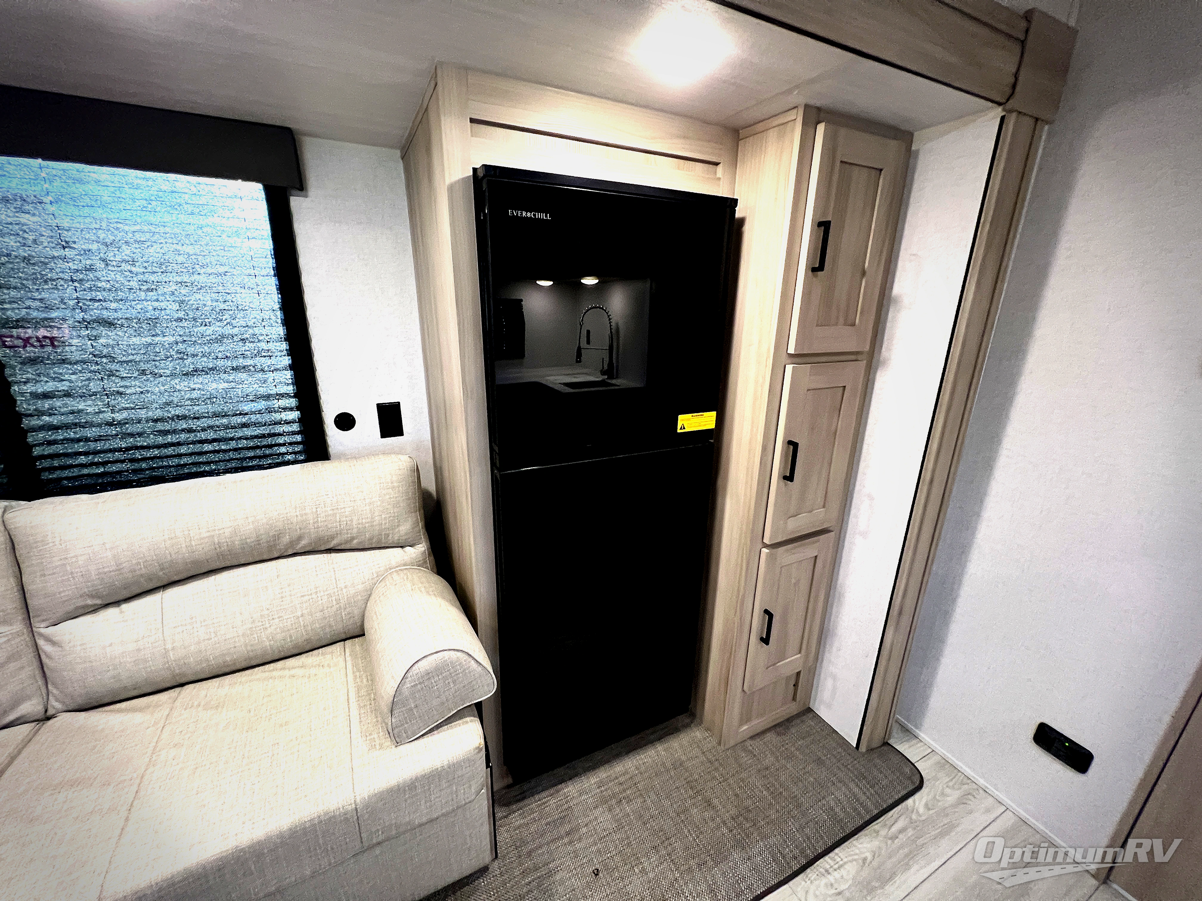 Each Della Terra travel trailer by EAST TO WEST is constructed with an enclosed and heated underbelly and enclosed holding tanks so you can camp all year long. There is also a power tongue jack with an LED light for easy set up and a power awning with LED lights you can rest under after you've unpacked. The Explore Comfort Package comes with marine grade woven PVC flooring in the slide outs with no carpet, an 81" interior ceiling height, upgraded Congoleum designer linoleum flooring, and many more comforts.