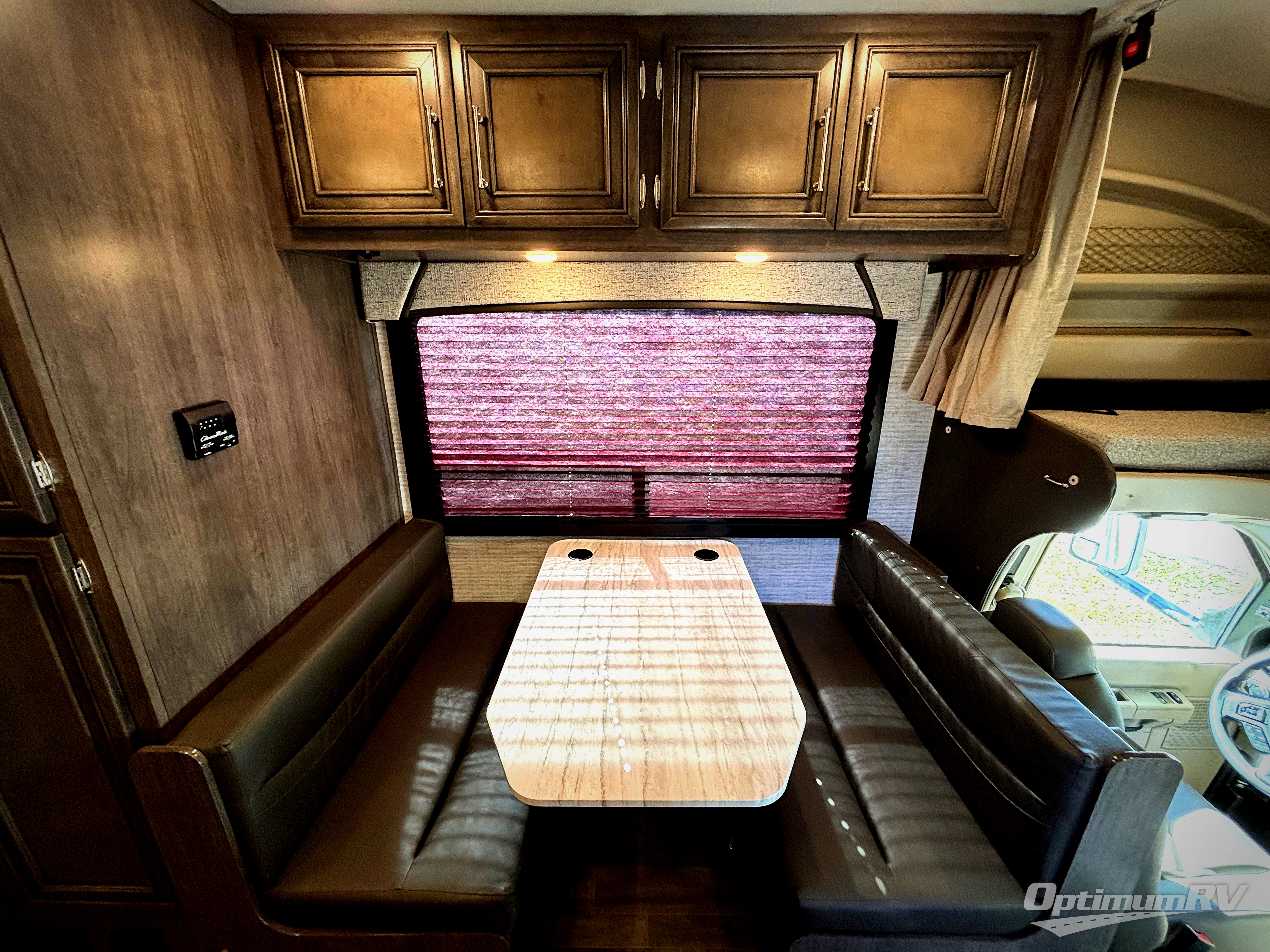 The Odyssey SE Class C gas motorhome by Entegra Coach is constructed with TuffShell vacuum-bond laminated sidewalls, a one-piece, seamless fiberglass front cap, and bead-foam insulation for added durability and strength. Whether you choose a model with a Ford E-450 chassis or Chevy 4500 chassis, you will get a durable coach made to last. The driver will also love the power steering, tilt steering wheel, and auxiliary start switch, and there are privacy curtains for the cab area to close at night. The 7' interior ceiling height will provide plenty of space to stretch out and the high-intensity, recessed LED lights will make your space feel more like home. All of your power needs will be met with a 4,000-watt generator and 12V house battery, plus there is a 13.5K BTU A/C and 30K BTU furnace to keep you comfortable all year long. There are a couple additions you might want to add to further customize your Odyssey SE, like the optional automatic hydraulic leveling jacks and the optional 200W solar panel for some off-grid camping!