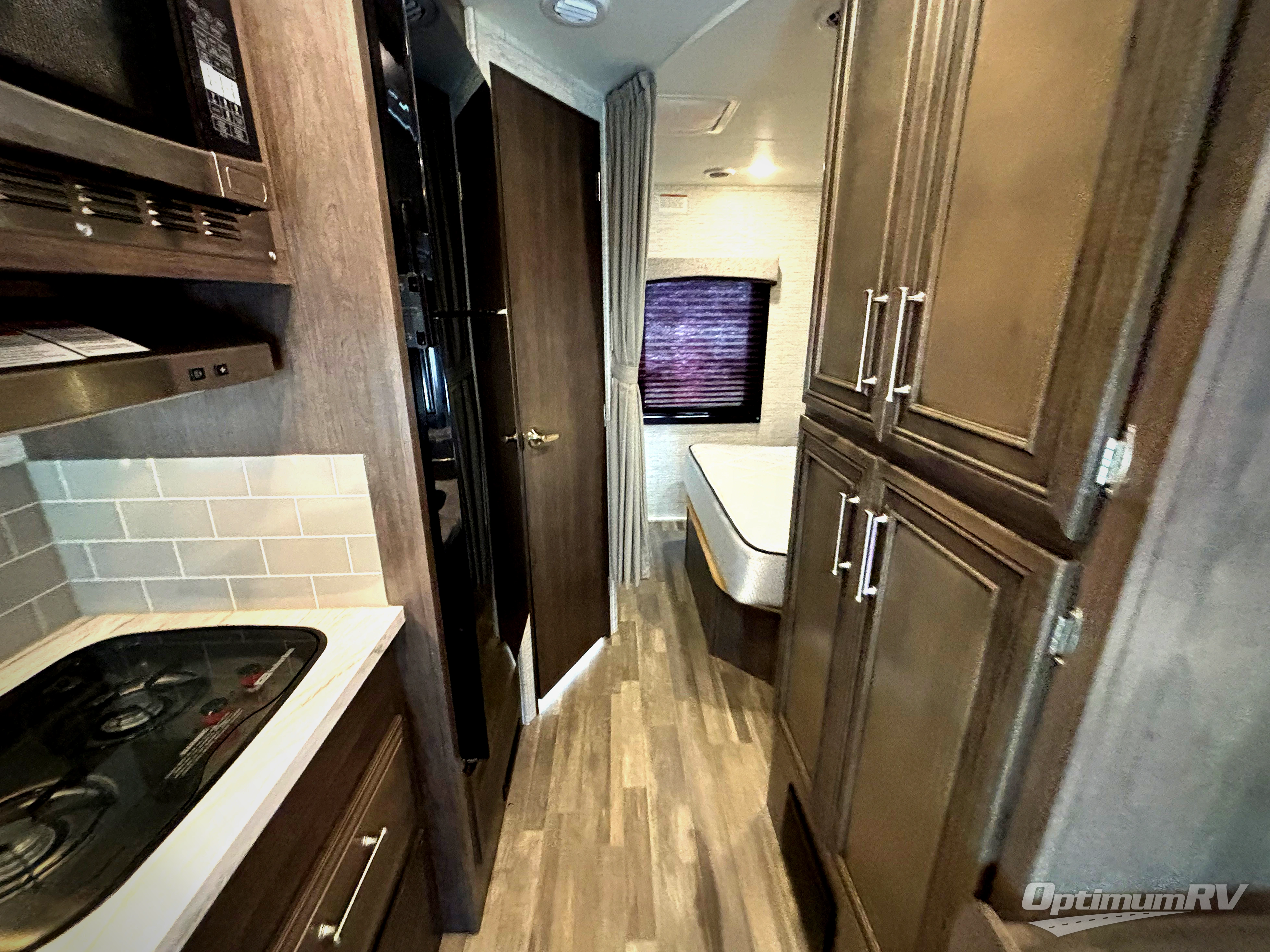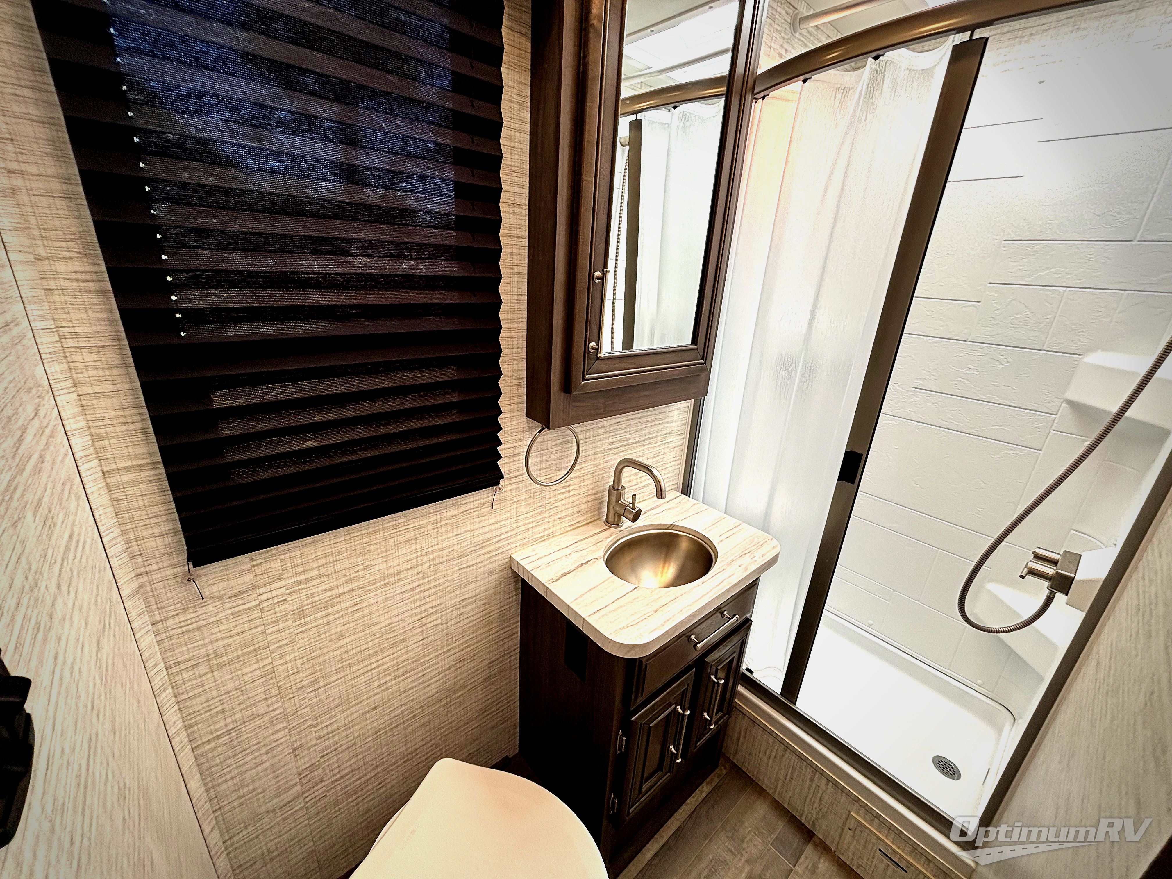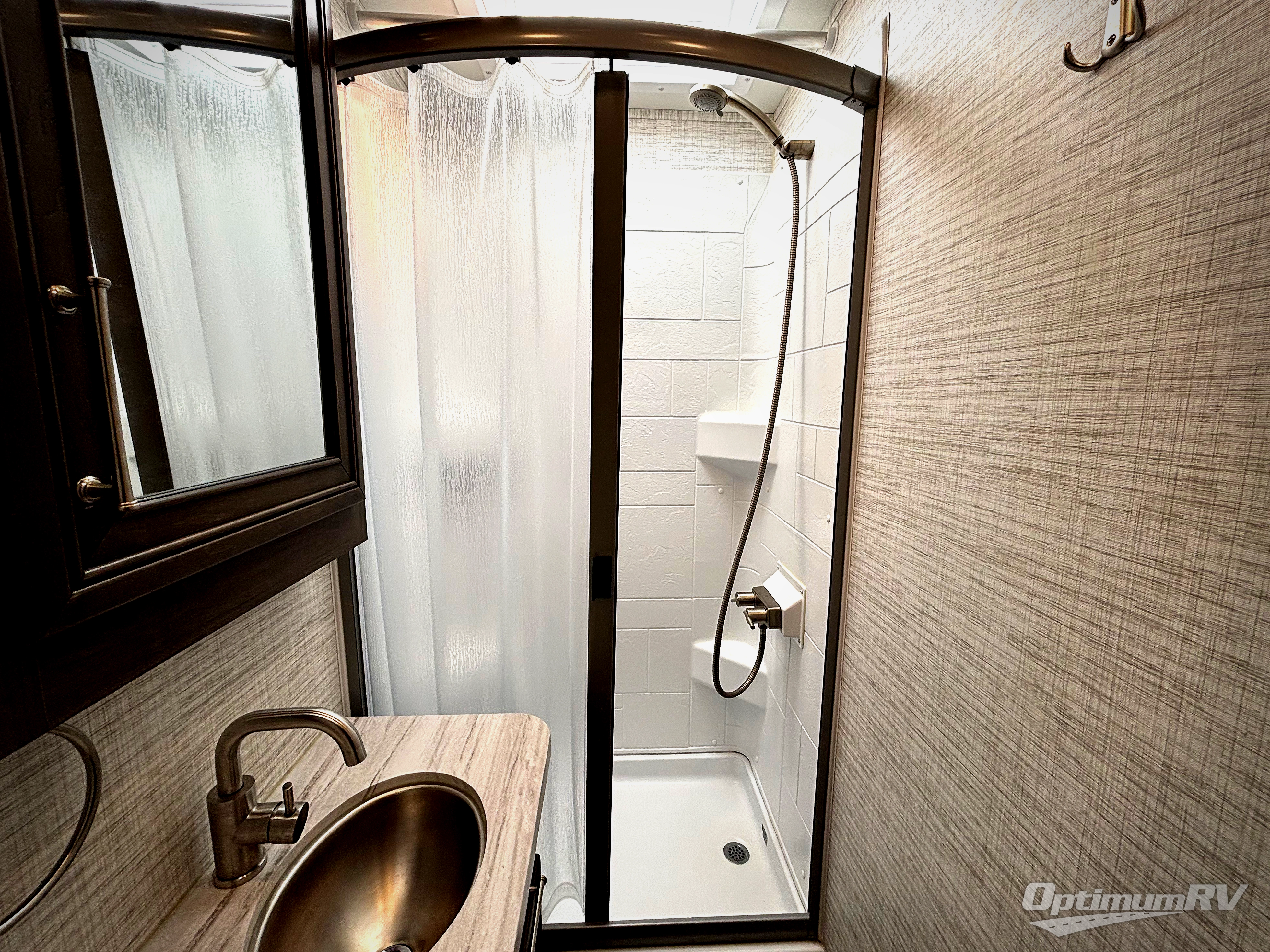 Make your trips complete in this coach that can sleep four to five each night. There is a cab-over bunk with a 750 lb. capacity for guests and an RV queen bed slide out in the rear corner bedroom. The booth dinette can be used to dine at, play games, and even sleep an additional guest or two little ones. A two burner cooktop comes standard in the kitchen, along with a convection microwave, a stainless steel sink, and a 10 cu. ft. refrigerator. You will also appreciate having a full bath on board, and the 13' electric awning outside will provide a place to relax with a cold drink!