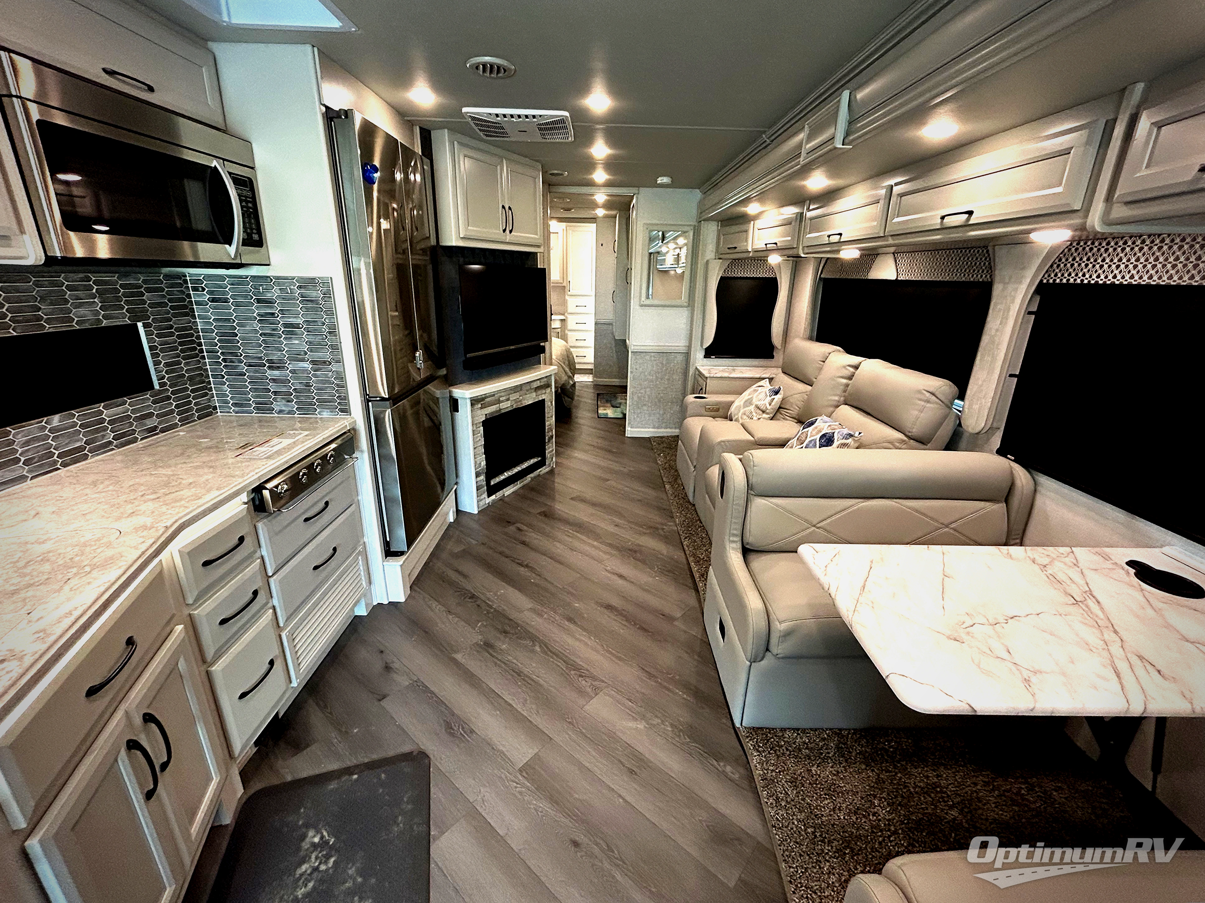When you are ready to travel the countryside, this coach will get you there in comfort with luxury and residential features that you deserve. The driver and passenger will love the automotive style dash with color monitor and workstation, plus the pedestal table in between. Once you have setup for the evening, you might enjoy reclining back in the chairs or sitting on the jackknife sofa that offers guests a place to stay the night, along with the rest EZ dinette and the optional Hide-A-Loft power overhead bunk if you added that feature. Your guests can use the mid-coach half bath while you have your own master suite with a king bed slide and storage, plus a full rear bathroom all to yourself.