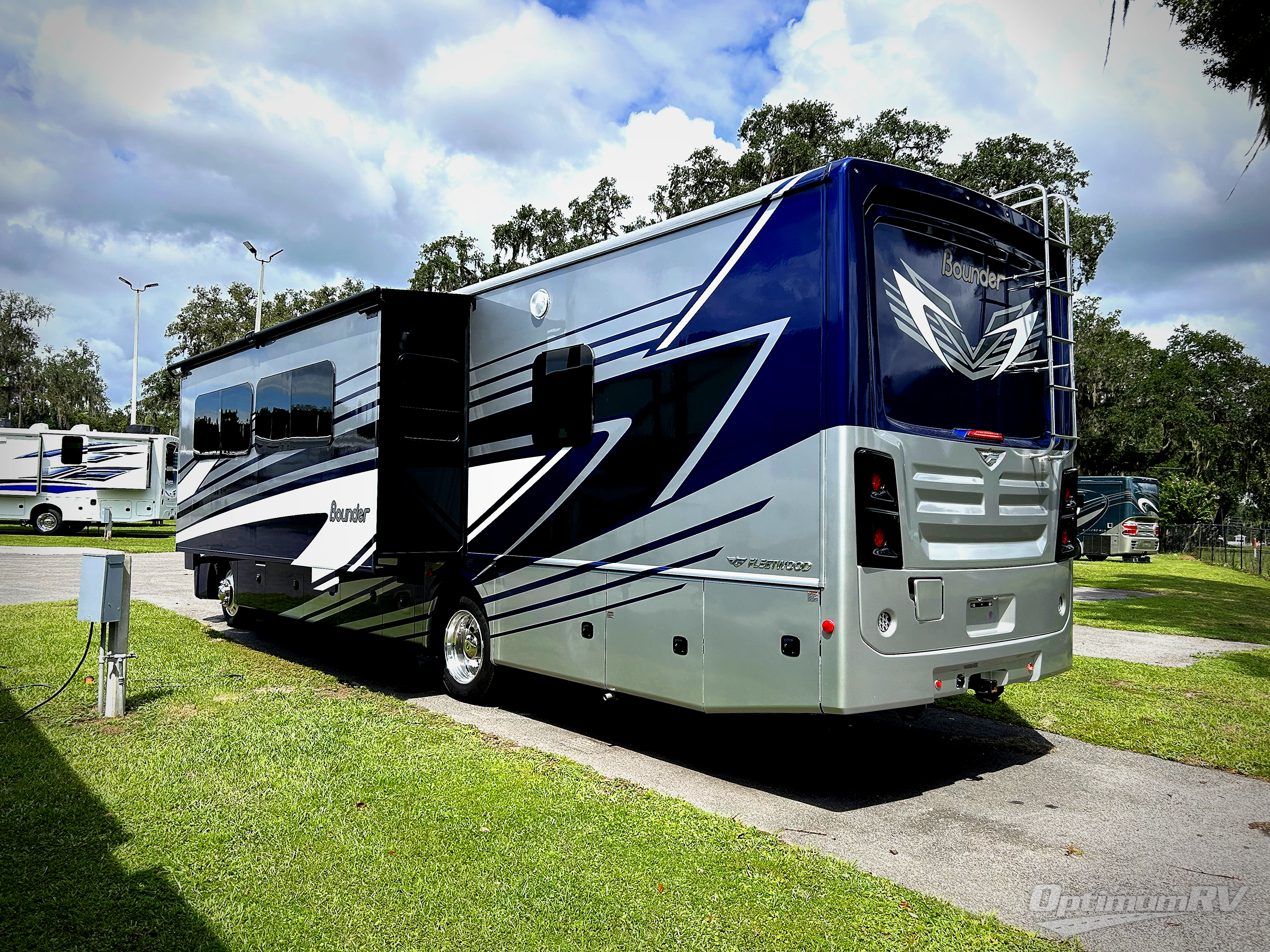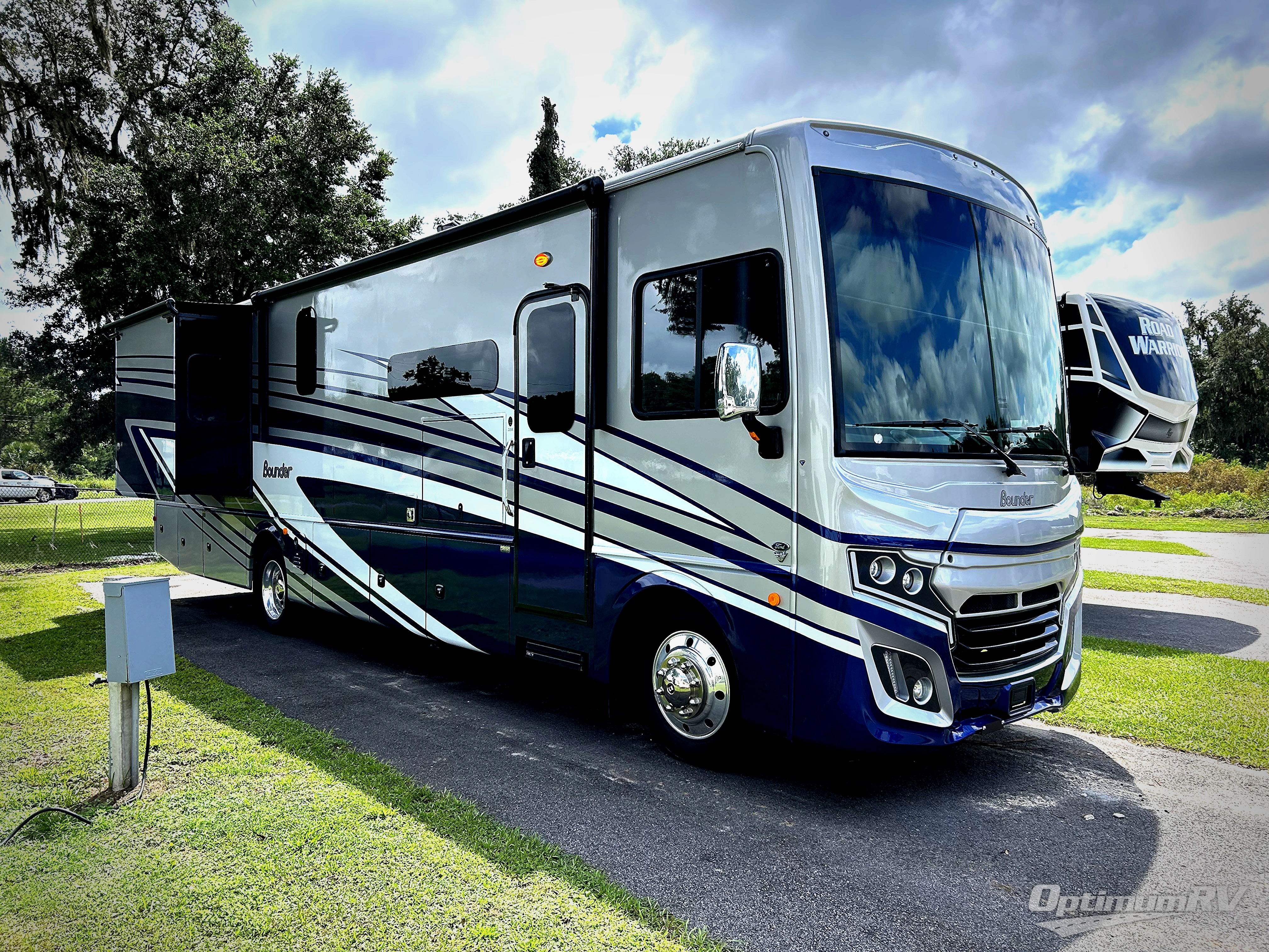 With any Bounder Class A gas motorhome by Fleetwood, you can travel in luxury and style with the power you desire to enjoy the ride as much as the destination. Beginning with the Power Platform Ford chassis, the enhanced safety features such as remote, power-heated mirrors with turn indicators and side cameras, and the color monitor for side and rear cameras, traveling is made easy. There is also an automotive one-piece windshield, a 100W solar panel, and WiFi Ranger Sky4 that come standard. A 5.5kW Onan generator will keep you powered up and you'll find plenty of storage both inside and out for personal belongings, camp gear, and more. Inside you will love the look of the durable, hand-laid Tarkett flooring, the energy efficient LED flush mount ceiling lighting, and the fiberglass shower with a glass door. Choose a Bounder Class A gas coach to discover even more stand-out features!