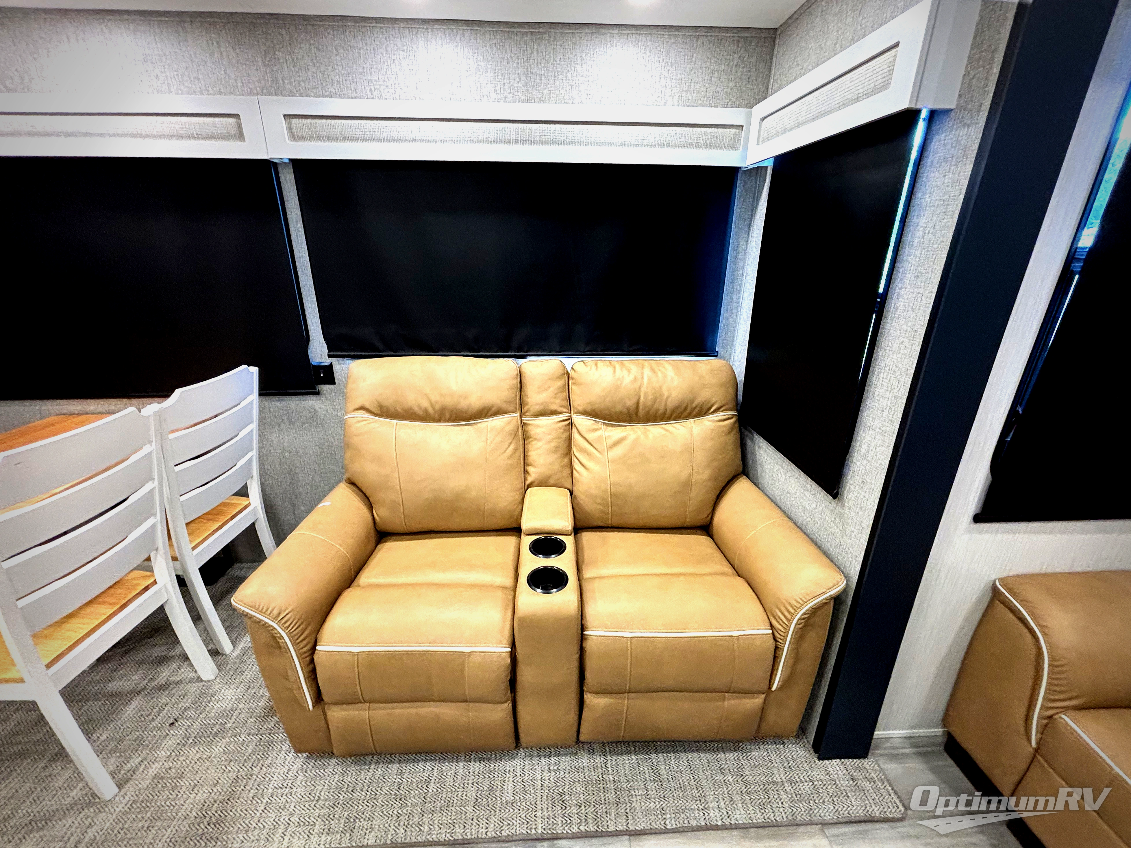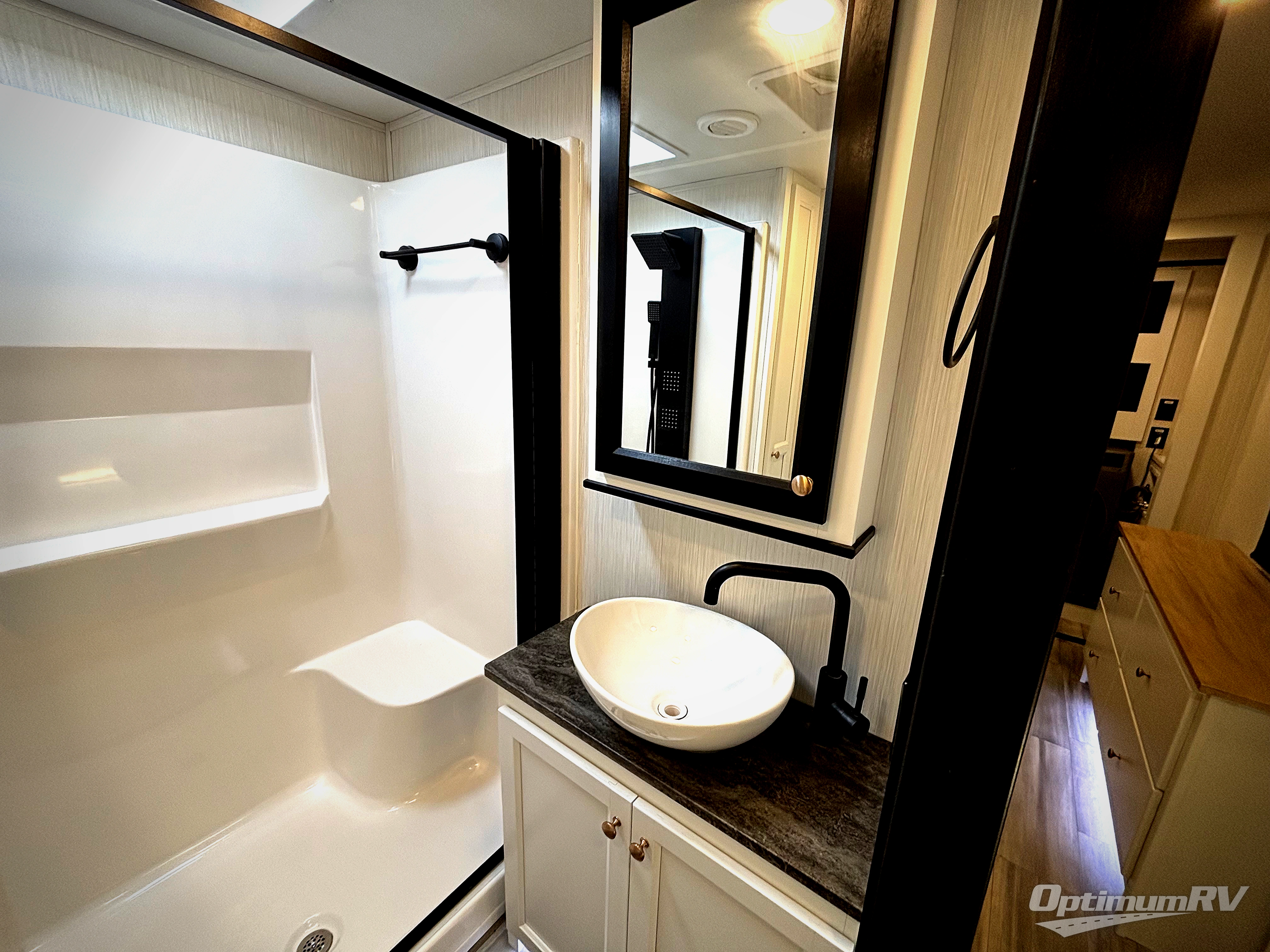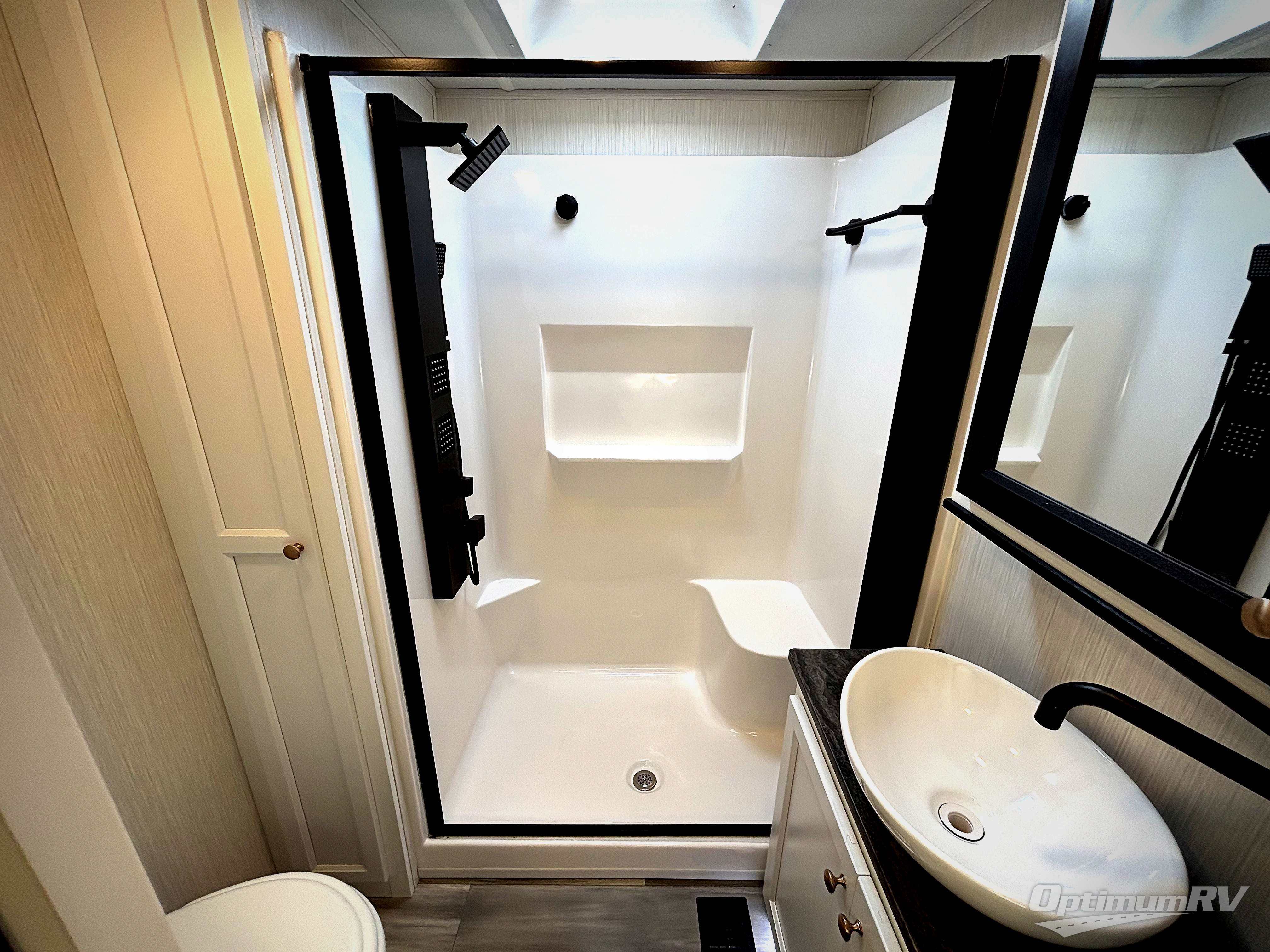 With any Cedar Creek Experience fifth wheel by Forest River, you will bet met with luxury features both inside and out! The True Gelcoat exterior is the best of the best in exteriors and the 3M bonded sidewalls will hold up over years of use. Each model includes Lippert 7,000 lb. axles with ABS brakes, Road Warrior suspension, plus TST tire pressure monitoring system to make towing that much easier. You will also find a 200 watt solar panel outside, along with a heated front storage compartment, a Nautilus P4 multi-function panel with an outside shower, black tank flush, and 12V battery disconnect, plus many more exterior conveniences. The interior will have you feeling like you haven't left home with vinyl floor coverings, Ashley furniture power theater seating, a cozy fireplace, a large bath counter, and the list of comforts goes on! Each model is also pre-wired for satellite to the roof, and you're sure to never go bored with a Smart TV in the living room and an added bedroom TV!
