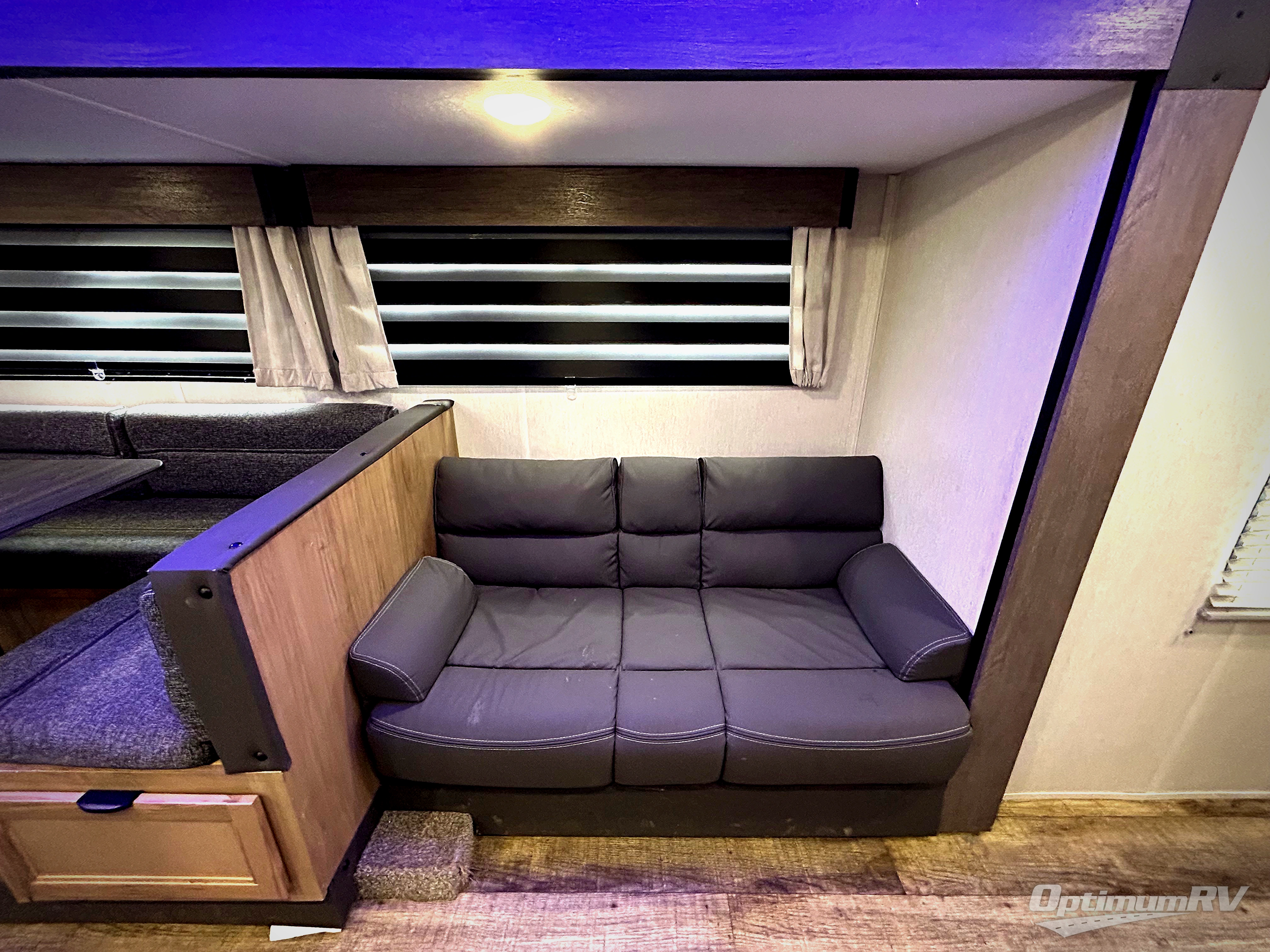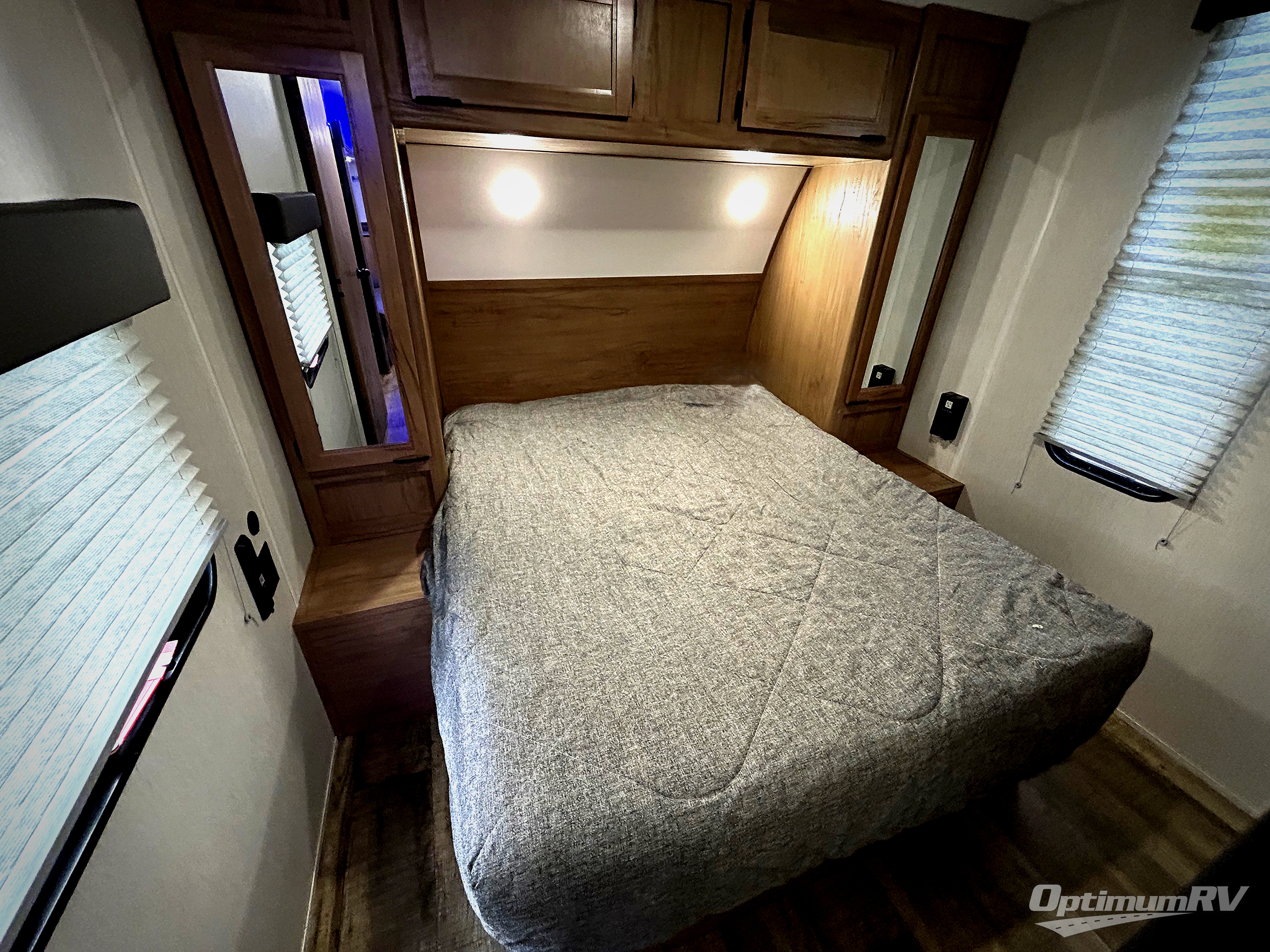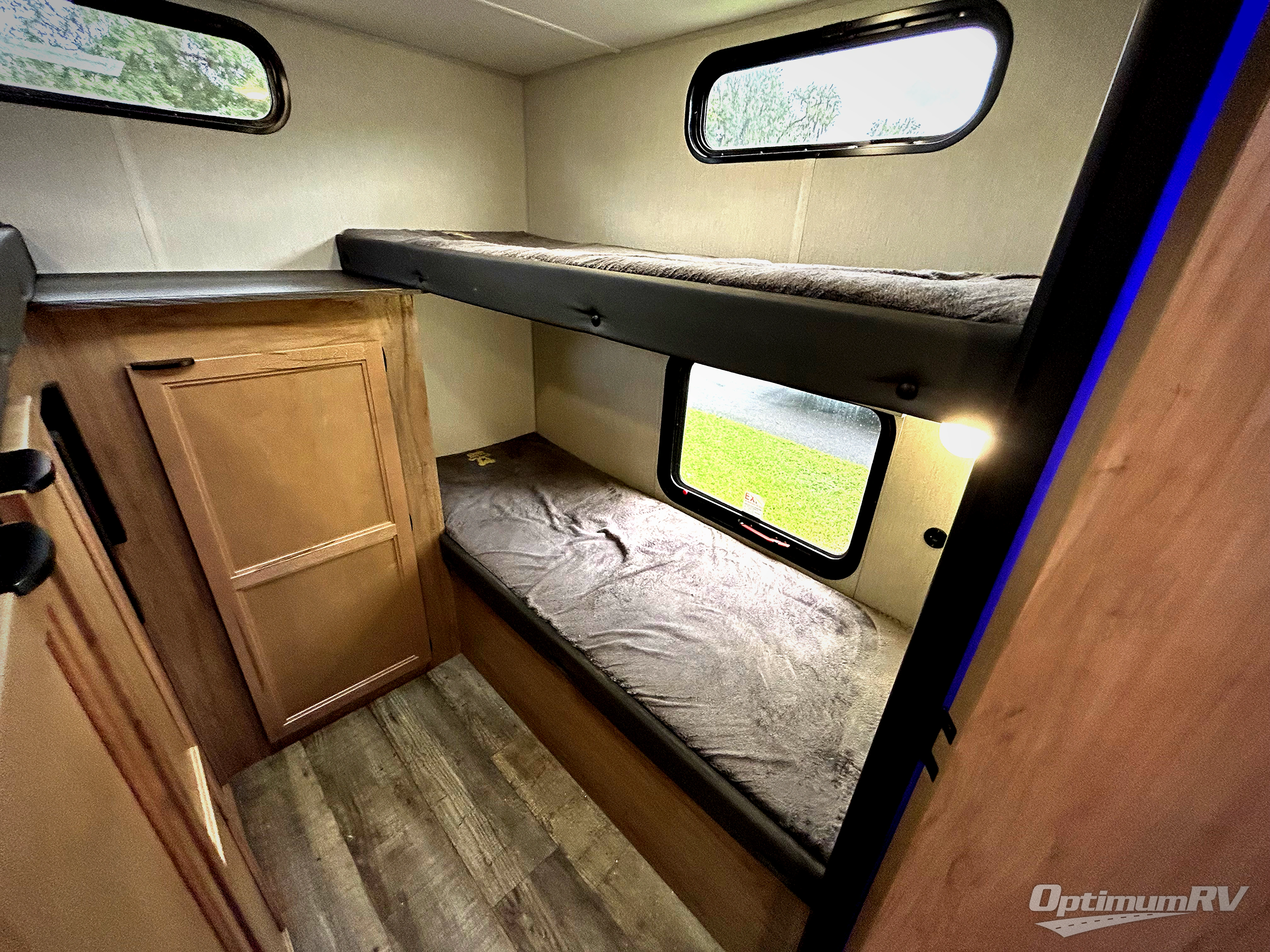 Your larger family will love spending weekends away with this Cherokee Grey Wolf travel trailer as their home away from home. This model offers lots of sleeping space with three bunk beds in the rear private bunkhouse. In the front, there is a master suite with wardrobes and nightstands on either side of the queen bed, and it even has private access to the dual-entry bath. The two entry doors will make accessing the trailer easy for everyone, and you will appreciate the abundant storage throughout this unit including large overhead cabinets, a spacious pantry, and numerous outside storage compartments for all of your outdoor gear. You also even have an outside bar & grill!