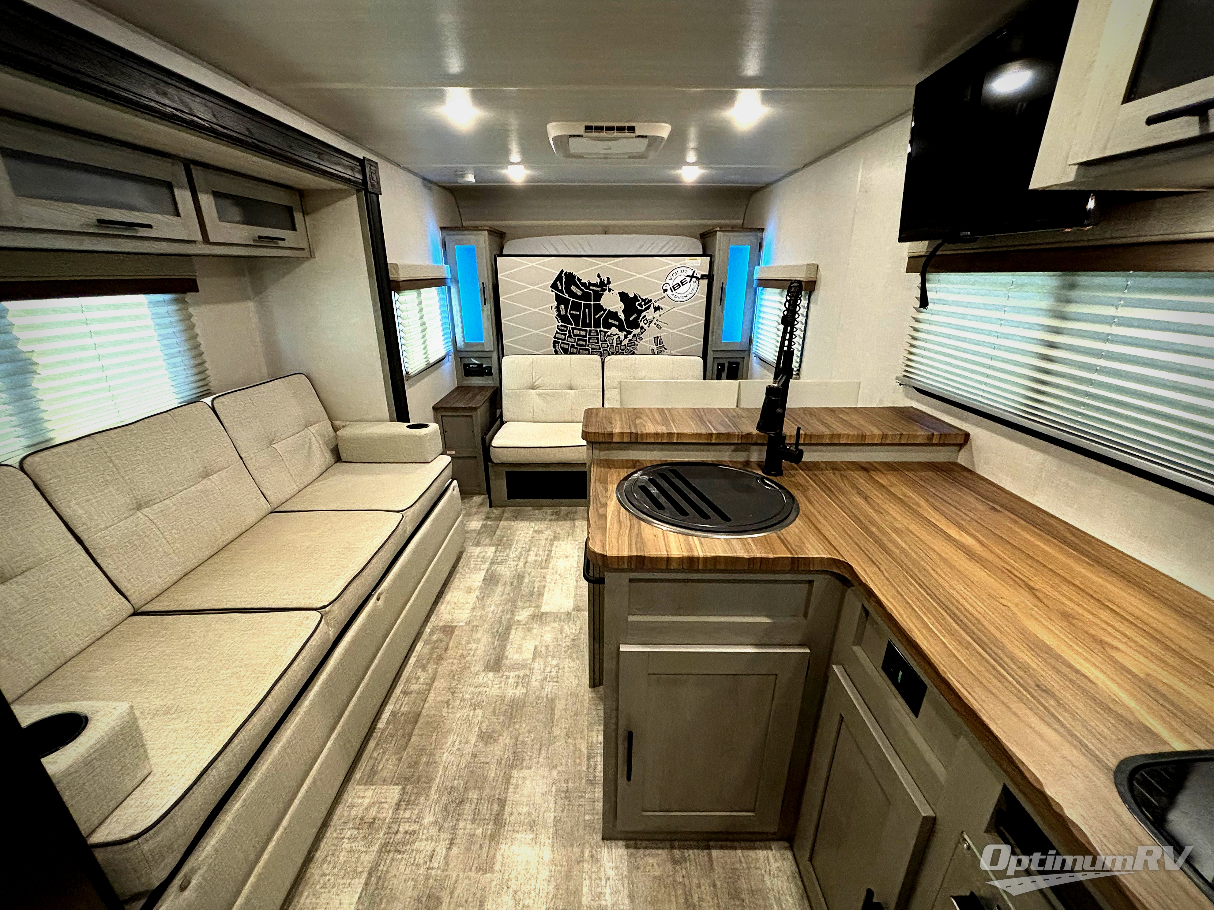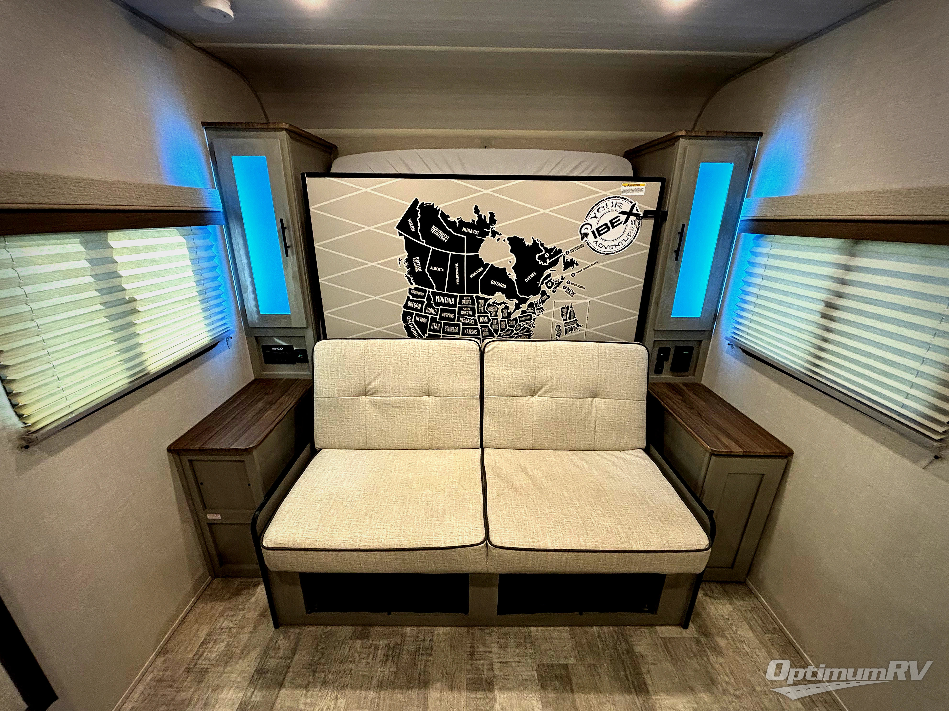 This Ibex travel trailer is incredibly versatile! With two sofas, there's plenty of room to relax inside, or set up outdoors under the 16' awning. There's a 60" x 80" Murphy bed where you'll be able to sleep comfortably. Dine in style at the L-shaped countertop with bar stool seats and chat with the cook in the kitchen. Stainless steel appliances finish the look. At the rear you'll find a full bath with a radius shower. And you might like to add the optional Unplugged Package that comes with premium lithium-ion batteries, an easy view control panel, a high efficiency A/C, and more!