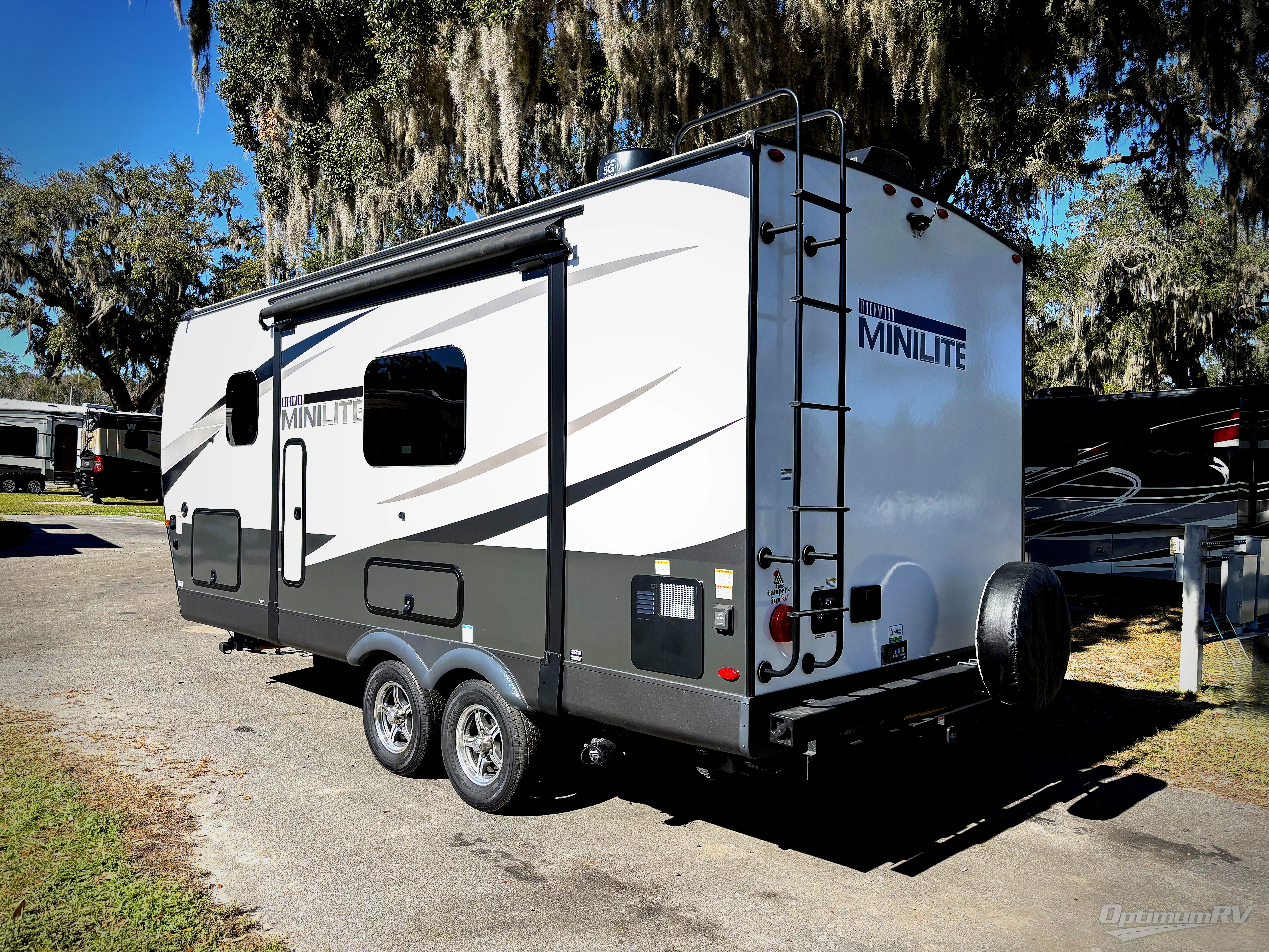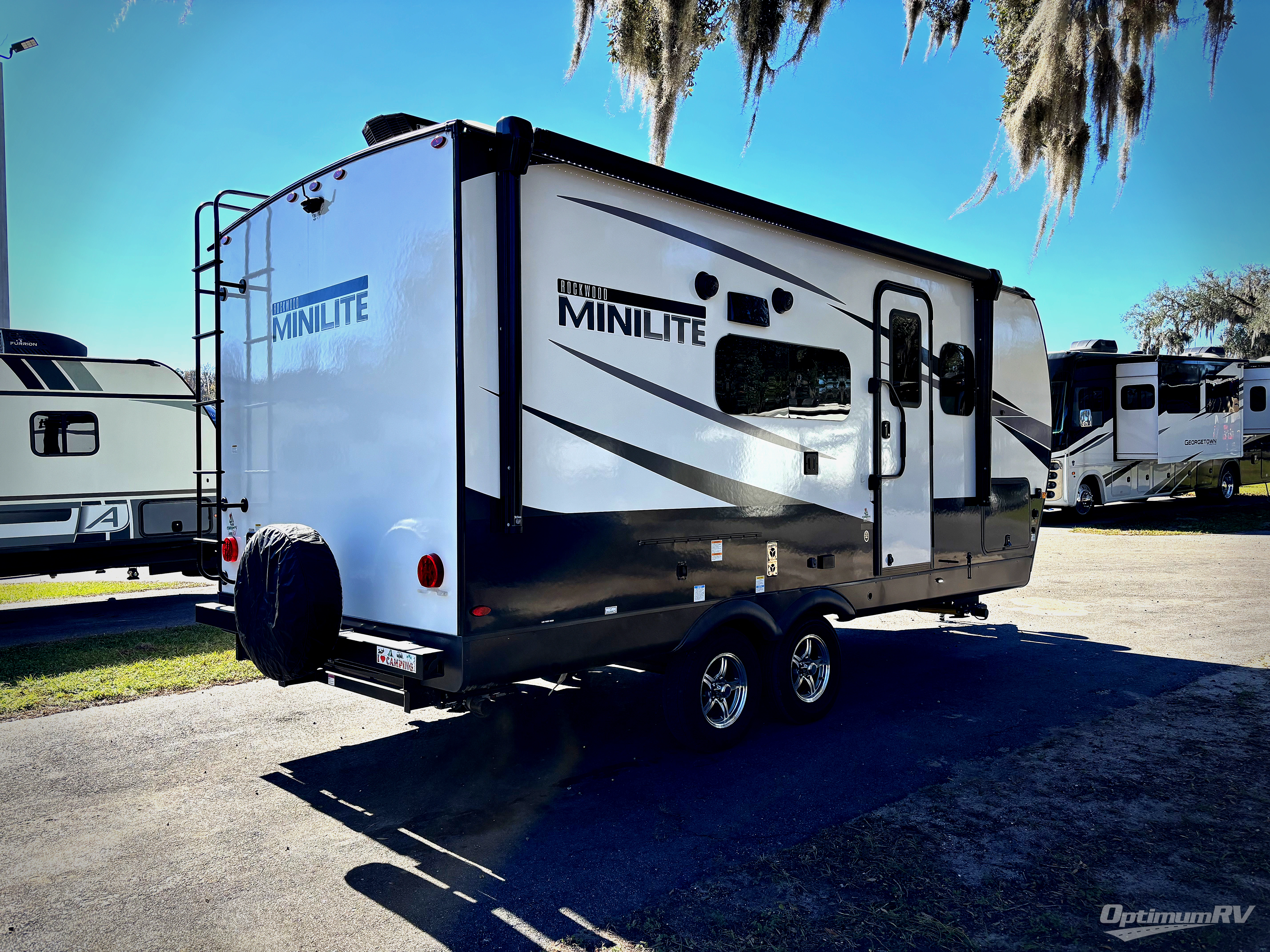 Each Rockwood Mini Lite travel trailer by Forest River is constructed with a fully laminated one-piece walkable roof, sleek frameless windows, and a six-sided full aluminum frame for strength and durability. The 12V thermostatically controlled heated tanks, plus radiant foil in the underbelly, front caps, and slide out floors will allow you to camp well into the colder months, and the 200W roof solar panel will be perfect for a little off-gridding. Each model includes solid surface kitchen countertops, solid wood cabinet doors, night roller shades, plus many more interior features. Having an Air 360+ omnidirectional antenna with wifi prep on board will allow you to get some work done if it's needed, and the power tongue jack provides hassle-free set up, so you can enjoy more time relaxing!