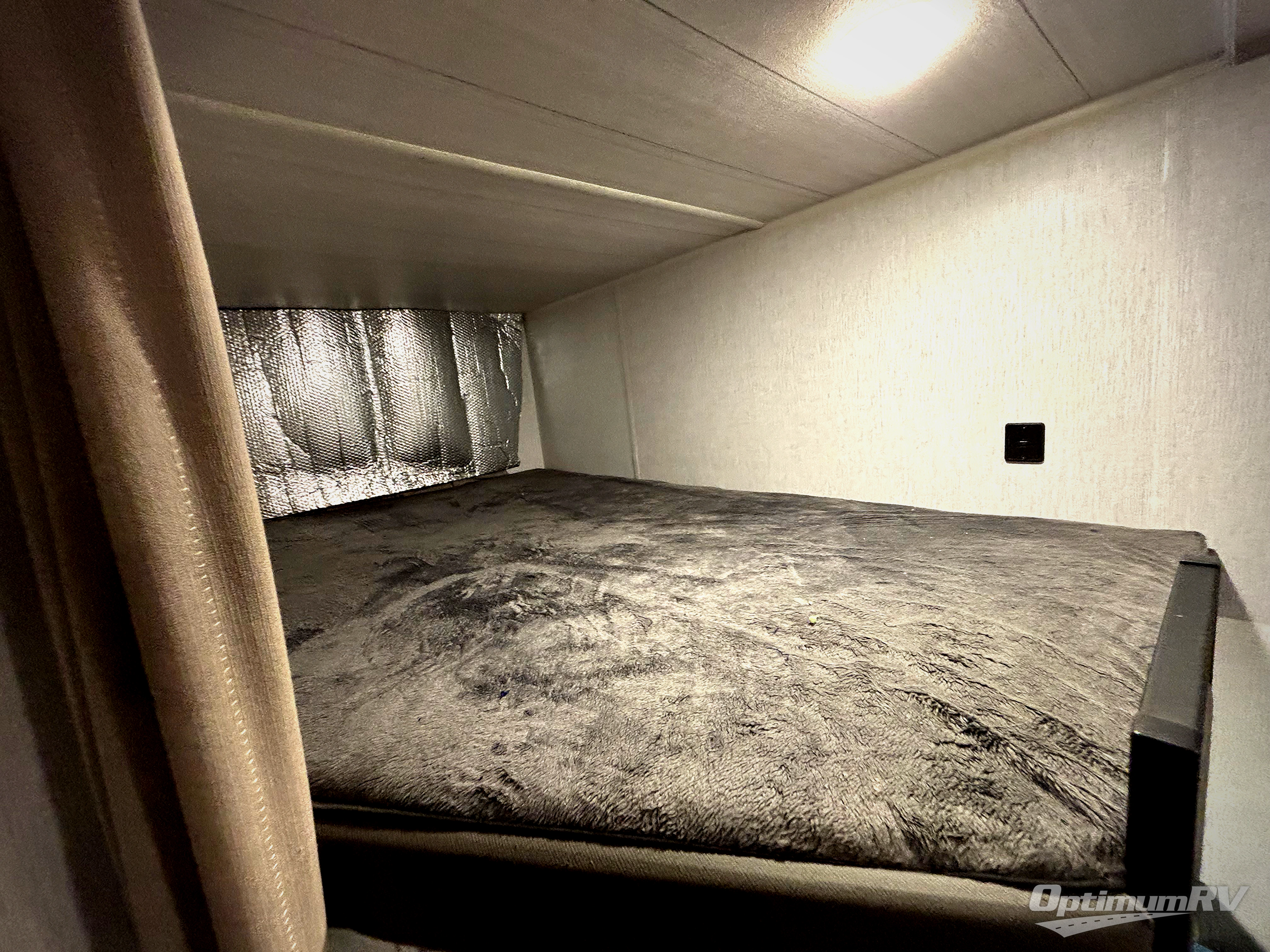 Load up this light weight travel trailer with double-size bunks and head to your favorite campsite! There is plenty of seating and sleeping spaces between the rear bunks, the custom king bed with Versa Tilt, the booth dinette, and the sofa. The front bed has closets on either side of it and a privacy curtain to draw at night. The oversized 11 cu. ft. 12V refrigerator will keep your perishables fresh and the three burner cooktop is just waiting for you to prepare a delicious home cooked meal. And you might want to add the optional outside kitchen for a sunrise breakfast!