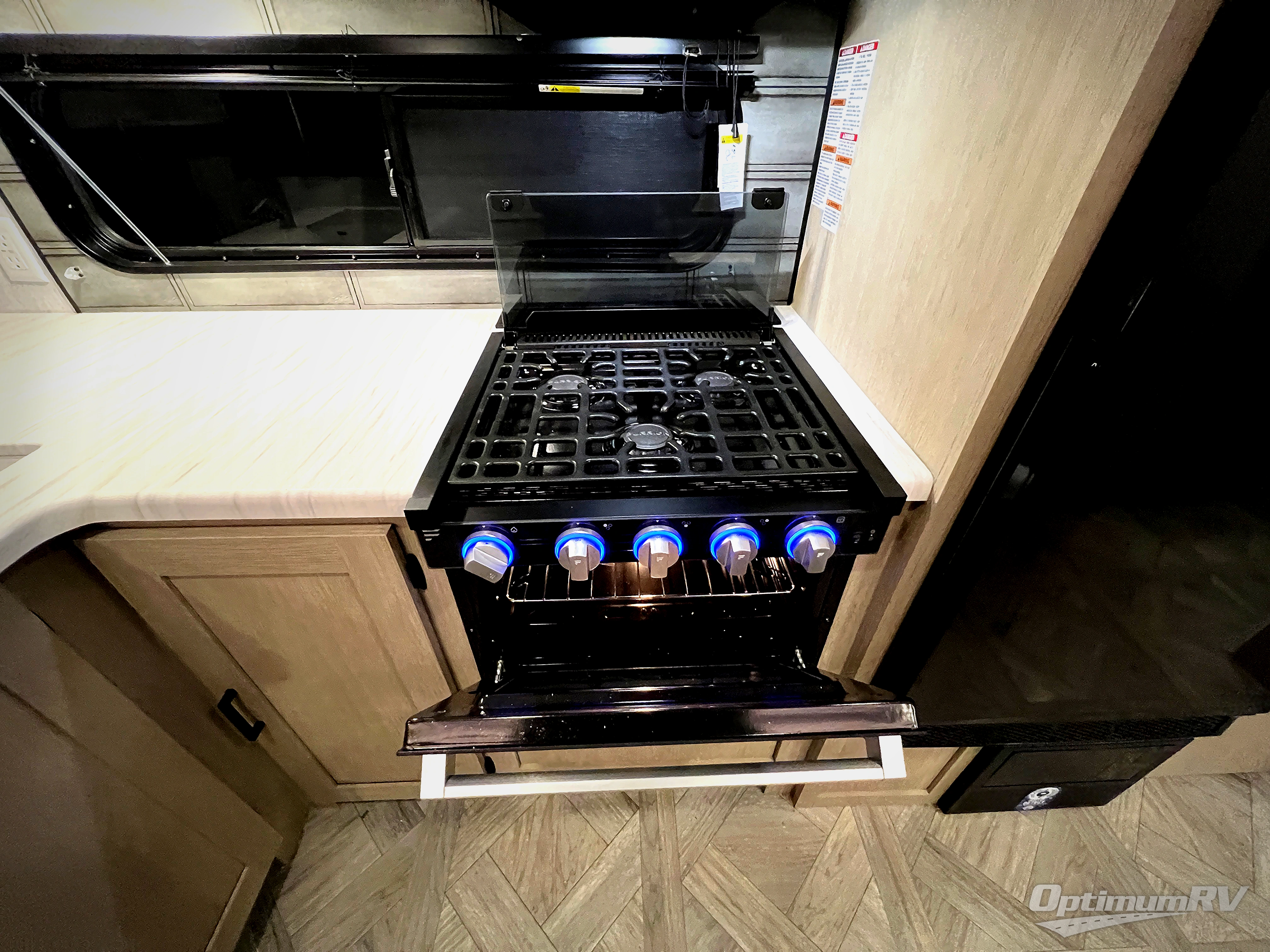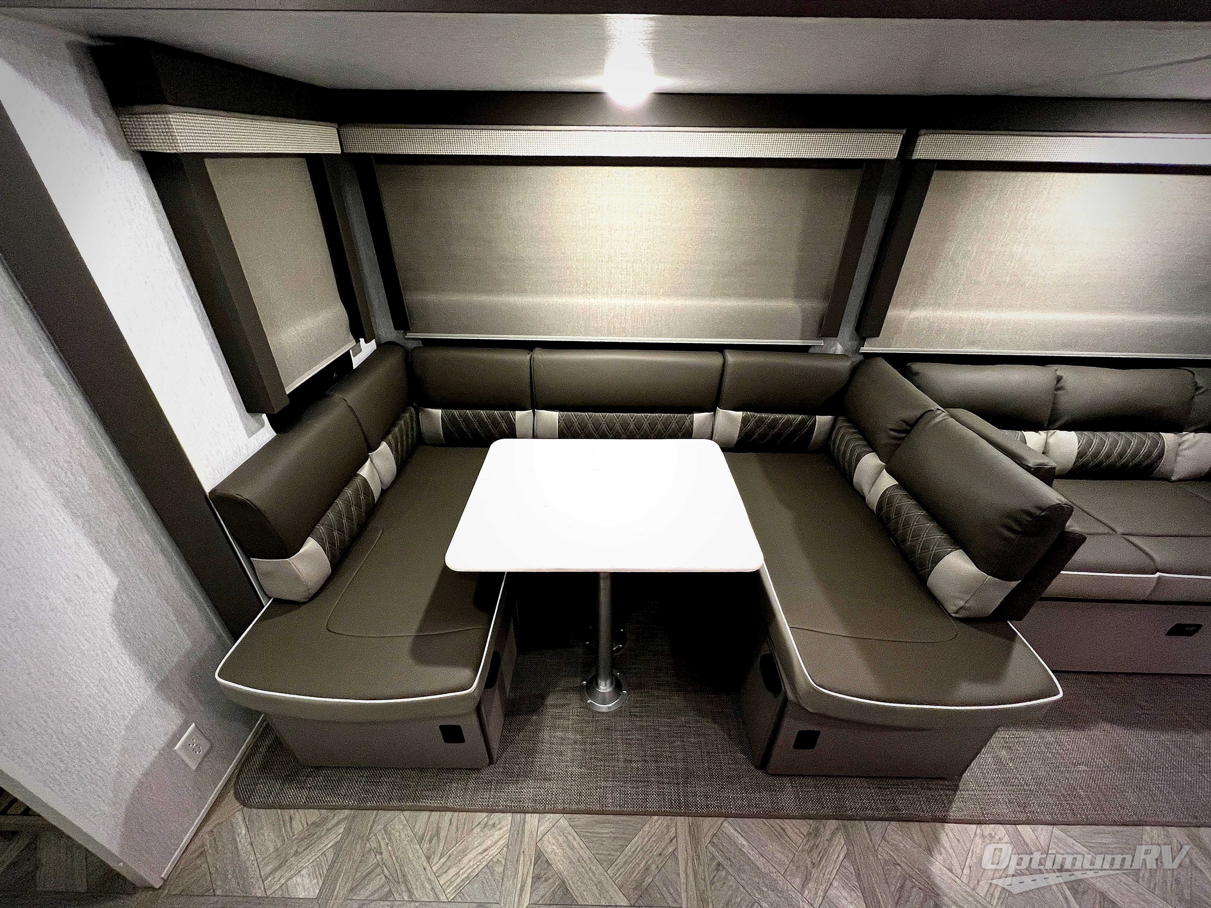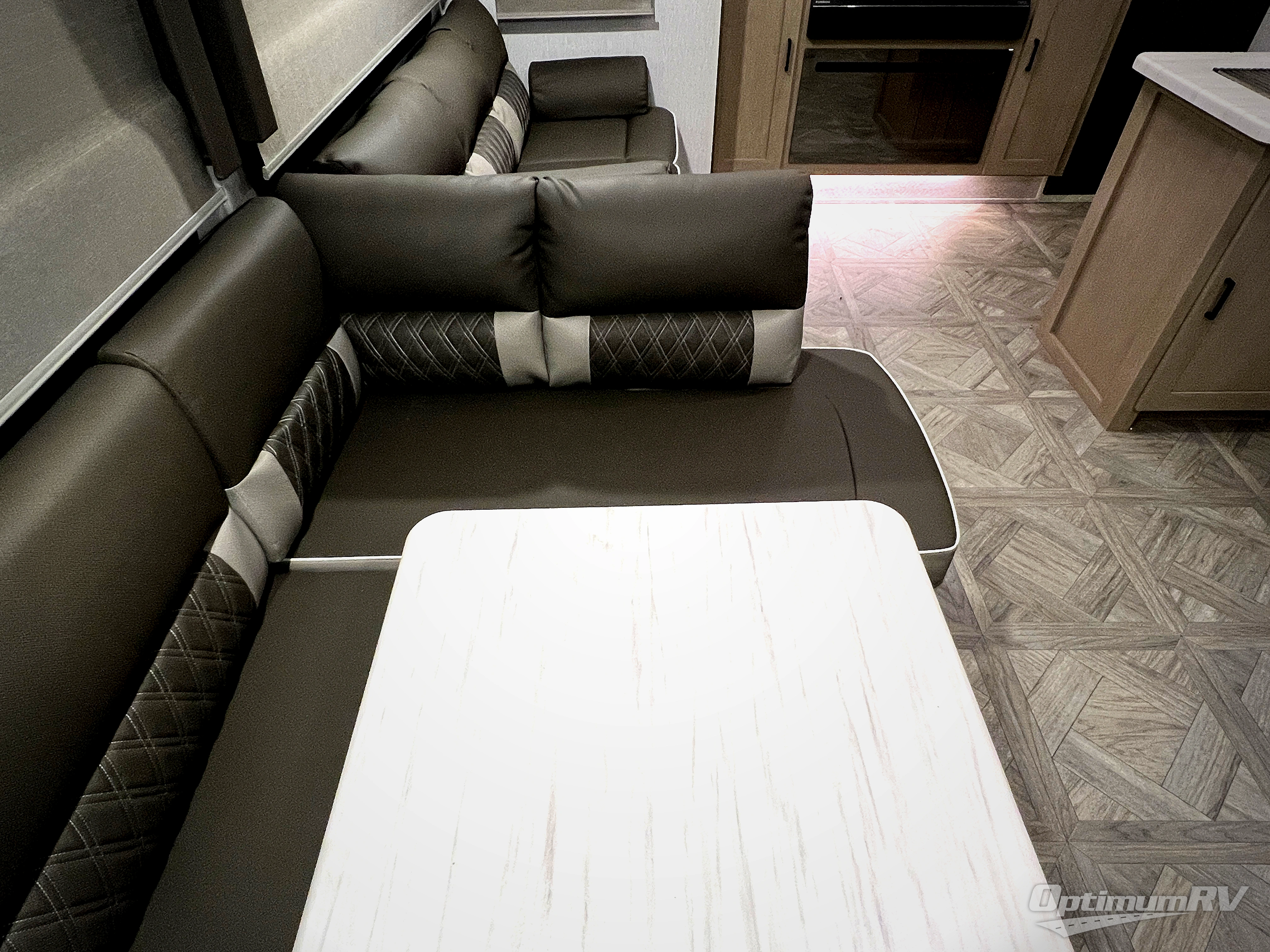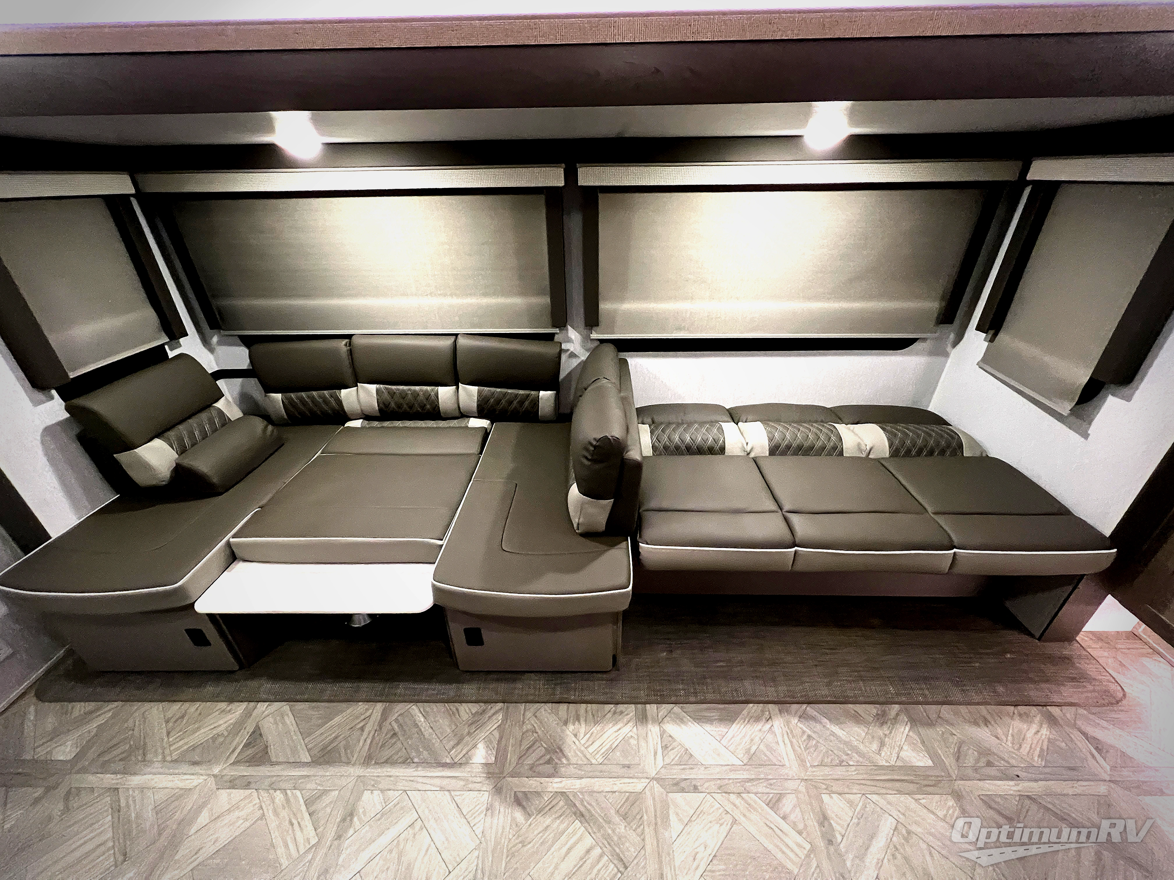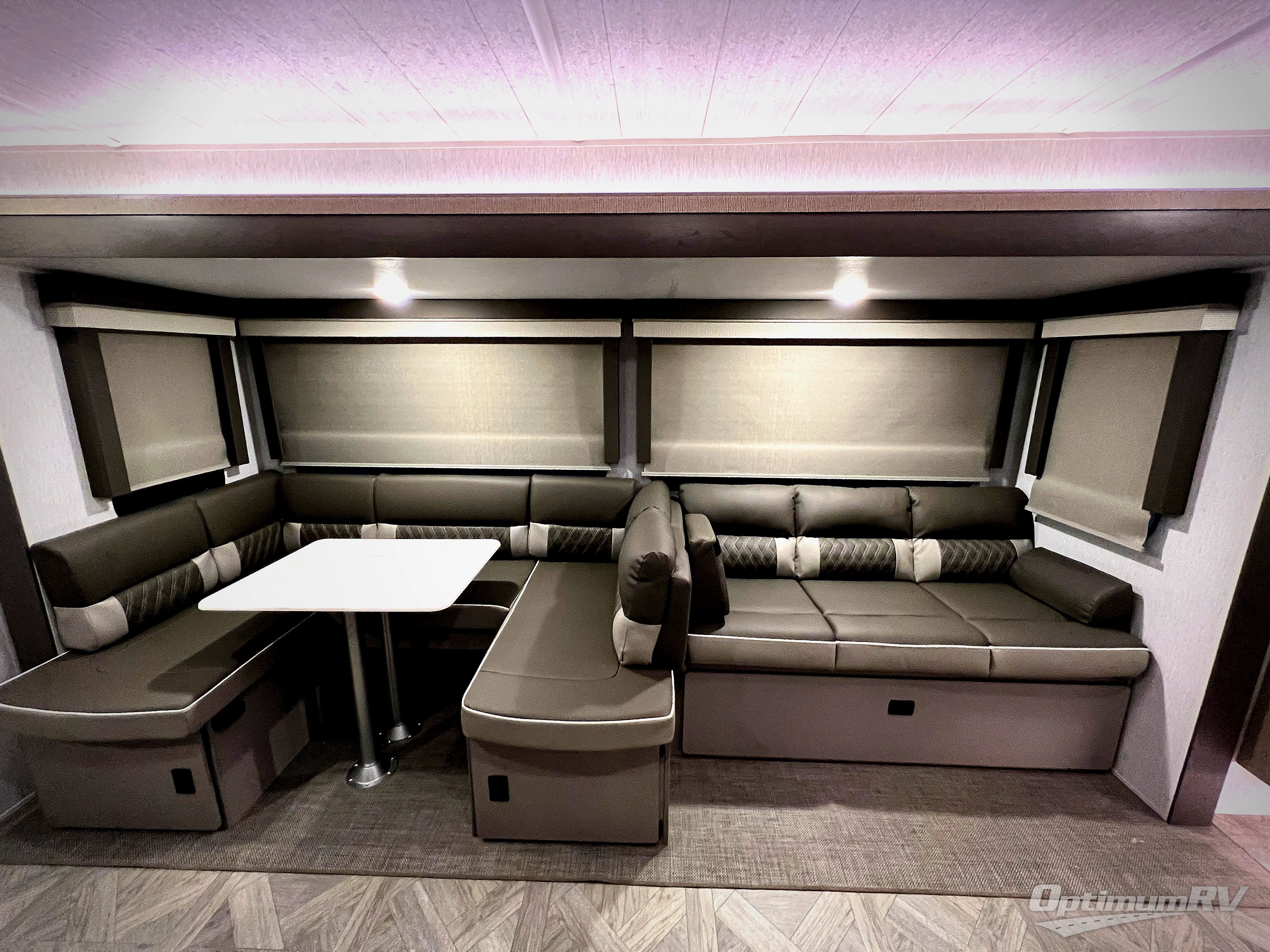 Hurry back to the campsite with this Wildwood travel trailer! With plenty of conveniences all throughout, this model gives you room and amenities to sleep ten people comfortably. You can choose from the custom king bed with Versa Tilt up front in the private bedroom, the set of double-size bunks in the back, or the U-shaped dinette and Versa-Lounge in the main living area. Plus, cooking for everyone will be a breeze in the fully-equipped kitchen or optional exterior kitchen!