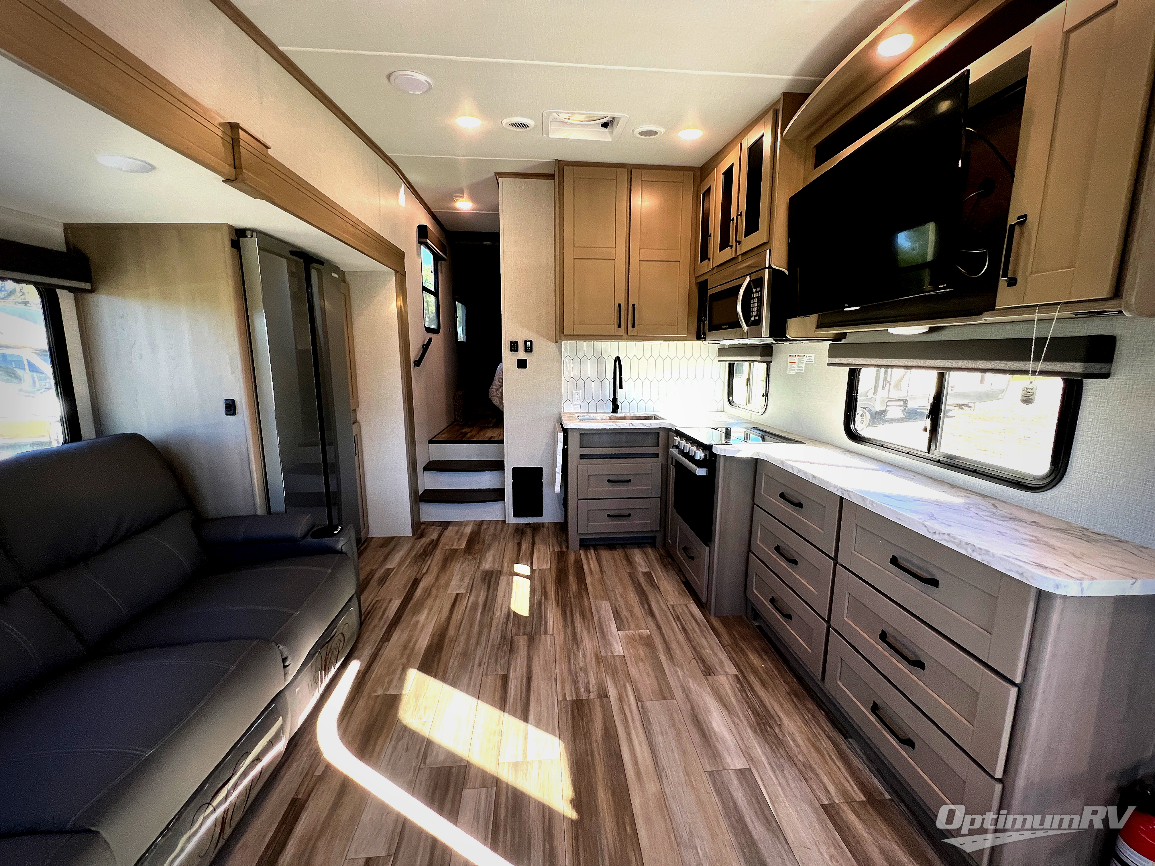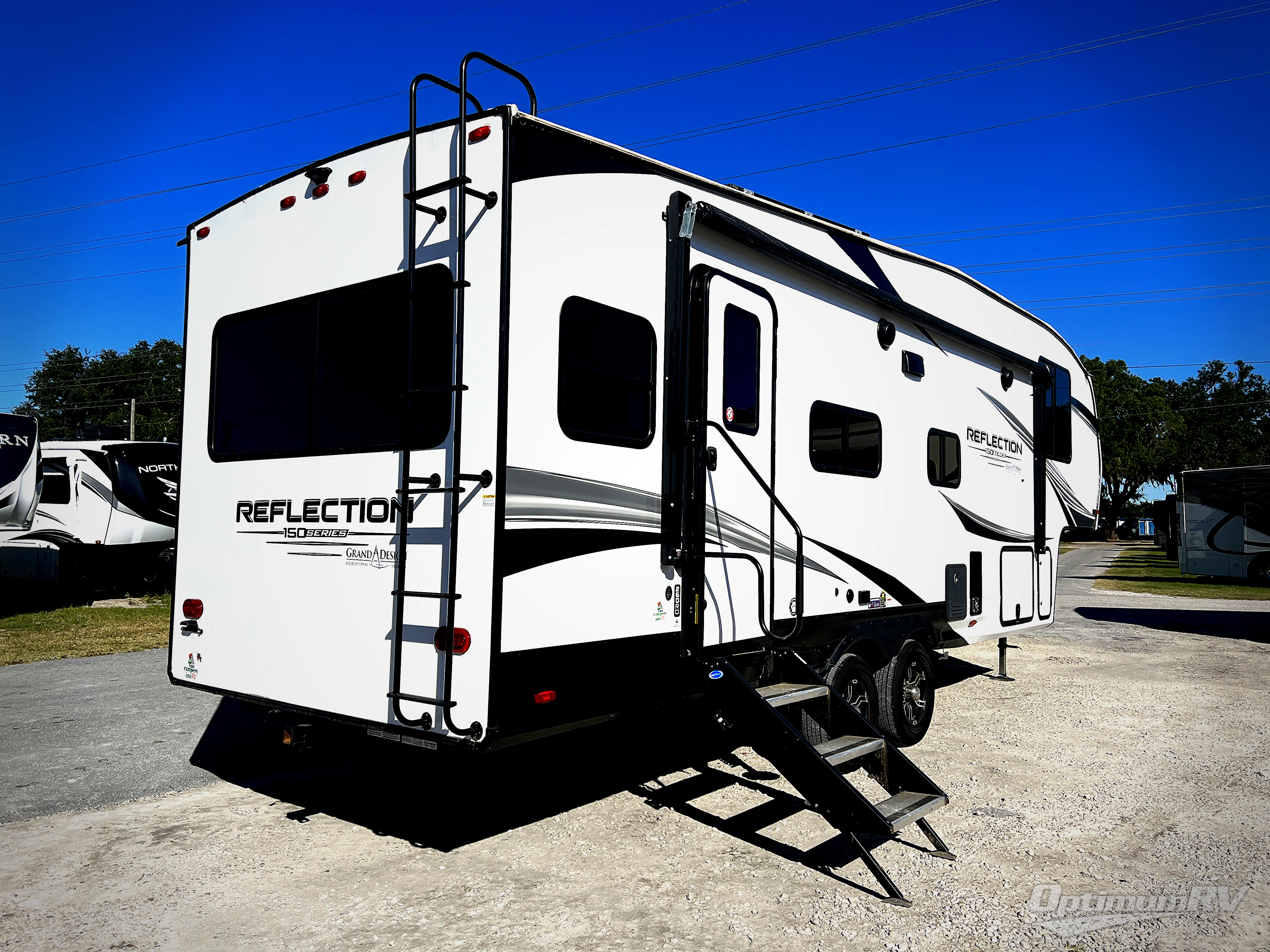 With any Reflection 150 Series fifth wheel by Grand Design, there is more available payload capacity and a broader range of half-ton trucks capable of towing this fifth wheel, and no slider hitch is needed thanks to the 90-degree turning radius which makes them short bed friendly and easier to tow. The mandatory Ultimate Power package provides a "One-Touch" automatic leveling system and a detachable power cord with LED light for easy setup, plus motion sensor pass-through lighting and entry lighting, and the Tire Linc TPMS will help you stay safe on the road. The interior offers residential luxury from the cabinetry and premium congoleum flooring, plus the booth dinette to the residential-style window treatment. Make your refined decision today!