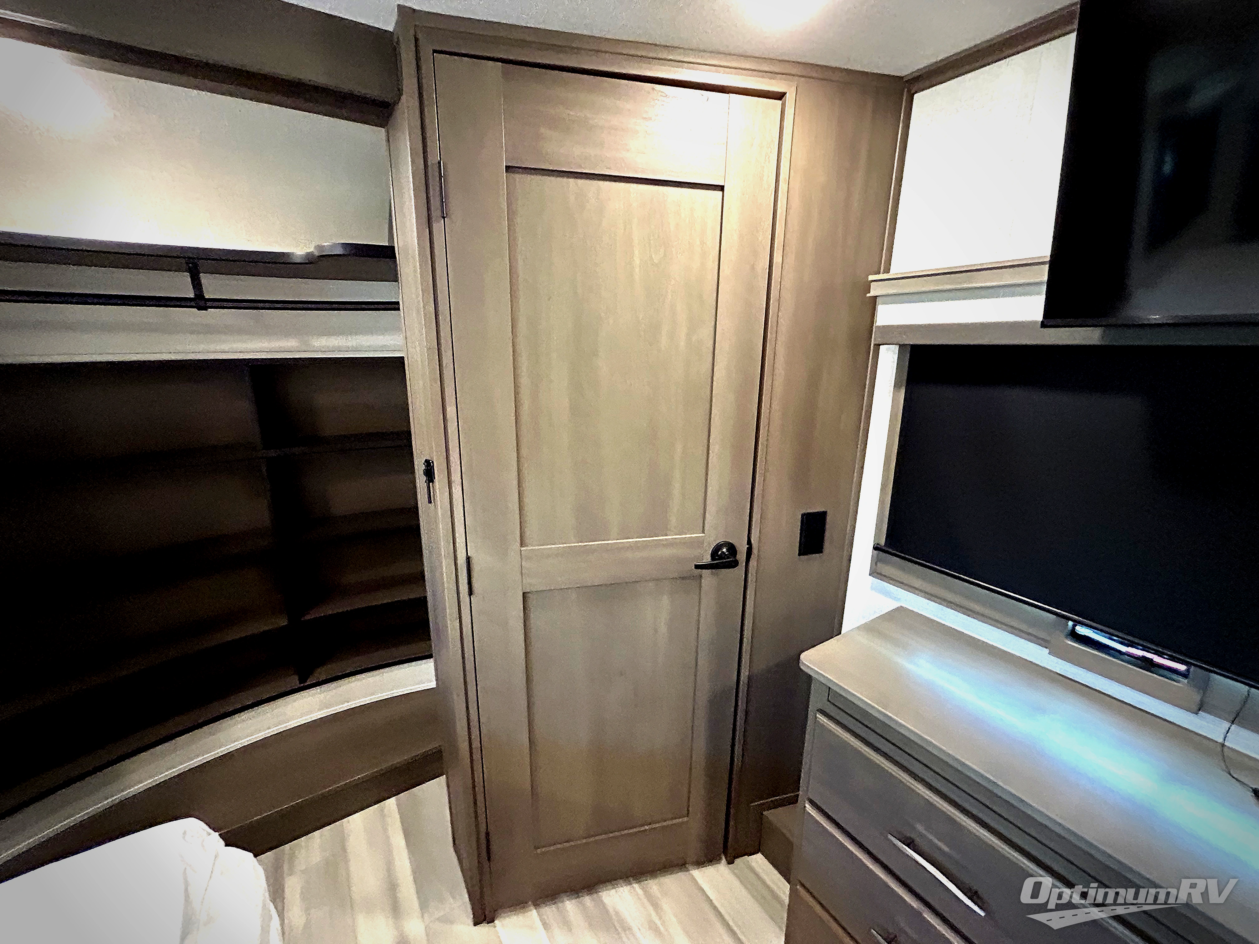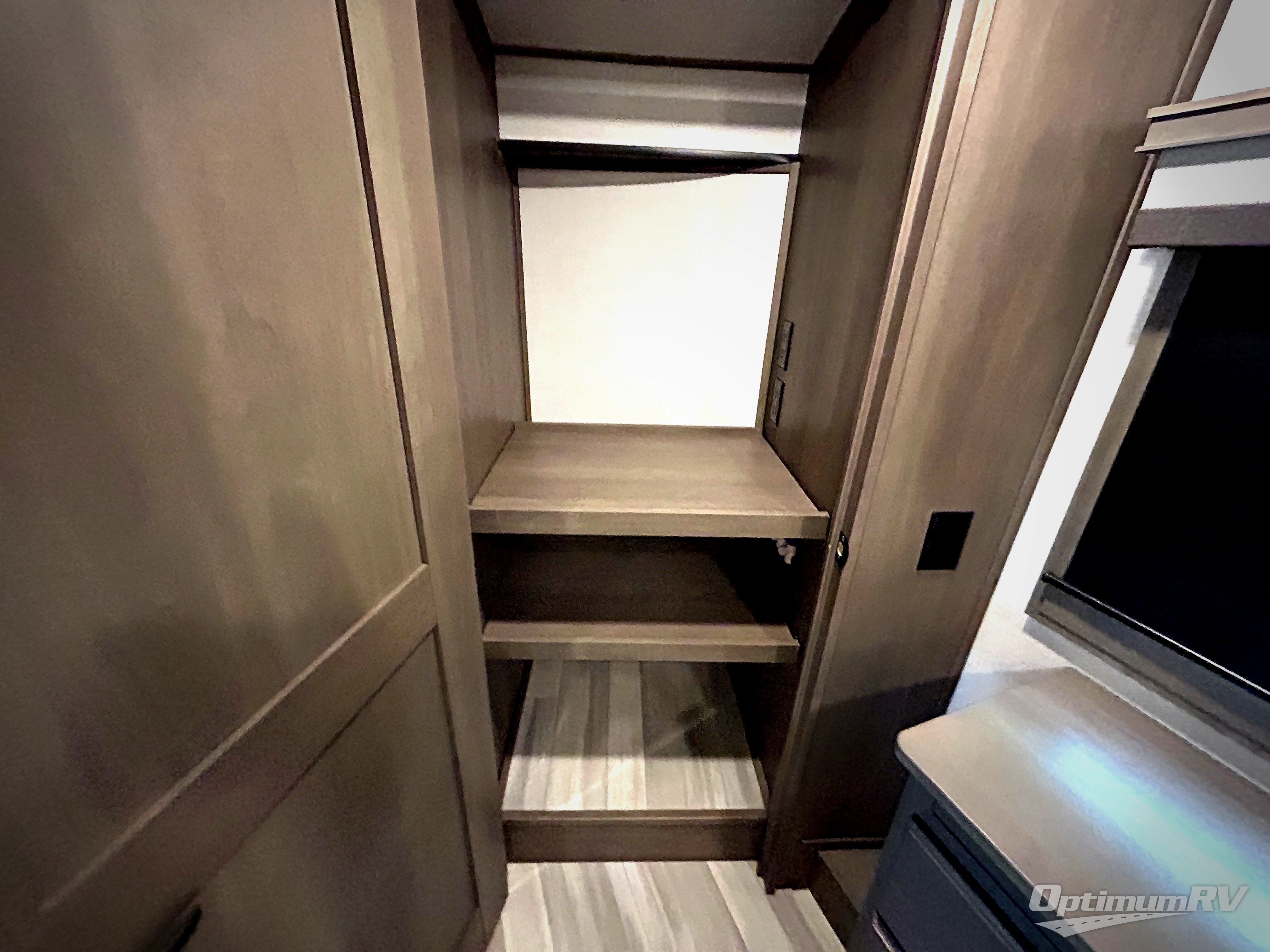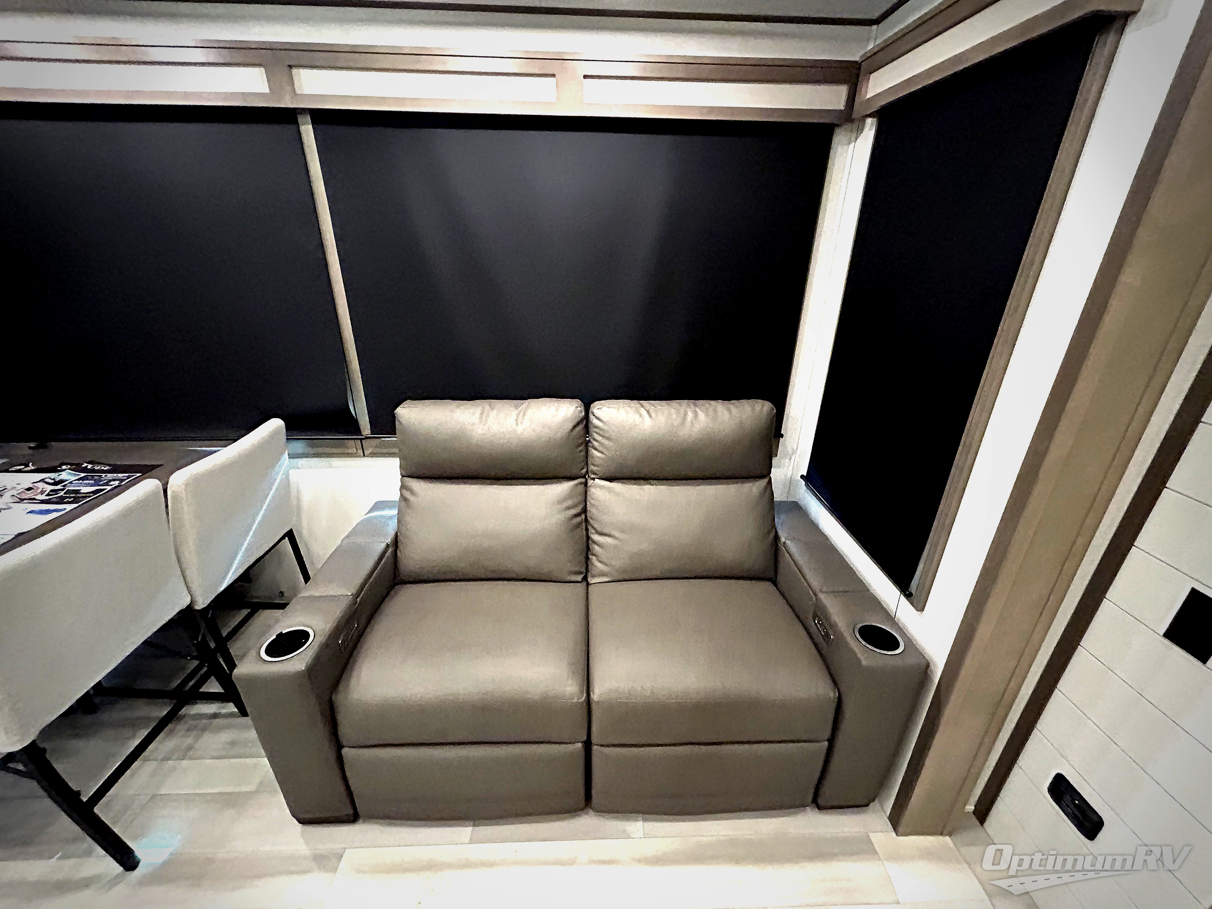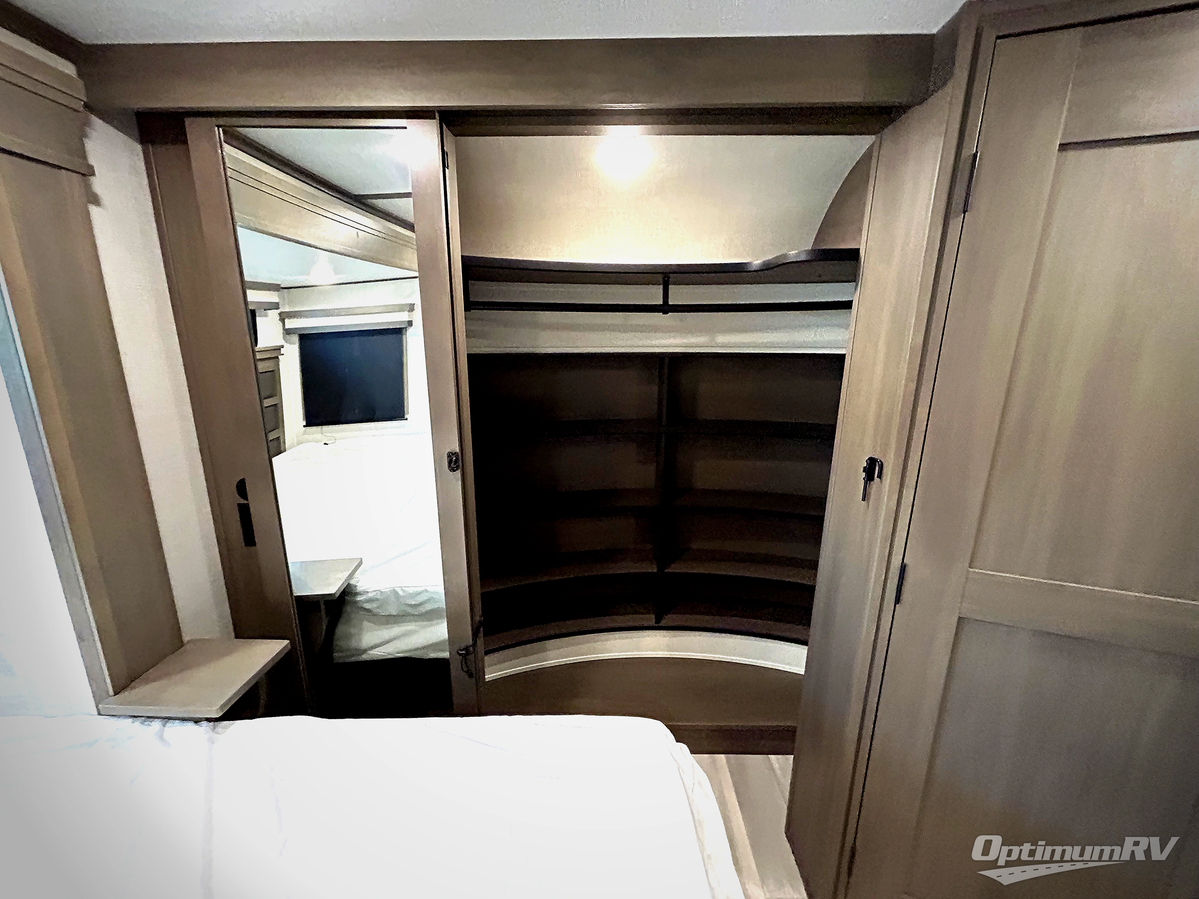 For an affordable luxury extended stay for your family, this Solitude is it! Two private bedrooms plus an overhead Sky Suite loft above the rear bedroom which also has it's own private rear entry/exit door is just the beginning of what is in store for your camping convenience. You will love the spacious feel that the Solitude provides with taller ceilings, larger scenic windows, and an interior width of 8' 5", not to mention FIVE slides in this unit alone. You may not even want to go home once you get a look inside. The upscale kitchen features an island with dishwasher prep, a large single bowl sink, a 12V 20 cu. ft. refrigerator for your perishables, and a 24" residential oven, not to mention you will also enjoy a microwave, pantry, and hutch for your dishes, plus a free standing dinette! You can easily take along extra family and friends with the second private bedroom featuring it's own private bath and entry which is great for another couple, and there is even loft space above this rear private bedroom for added storage or sleeping for children. Both bathrooms feature a shower with a skylight, vanity and sink, plus a toilet. And, you will find ample storage for clothing and belongings throughout with nice size closets, overhead cabinets, plus loads of outside storage. Speaking of outside, this unit features a spray port for rinsing off before heading inside, two awnings, a USB charging outlet, and four step aluminum shock assist entry steps at both entrances.