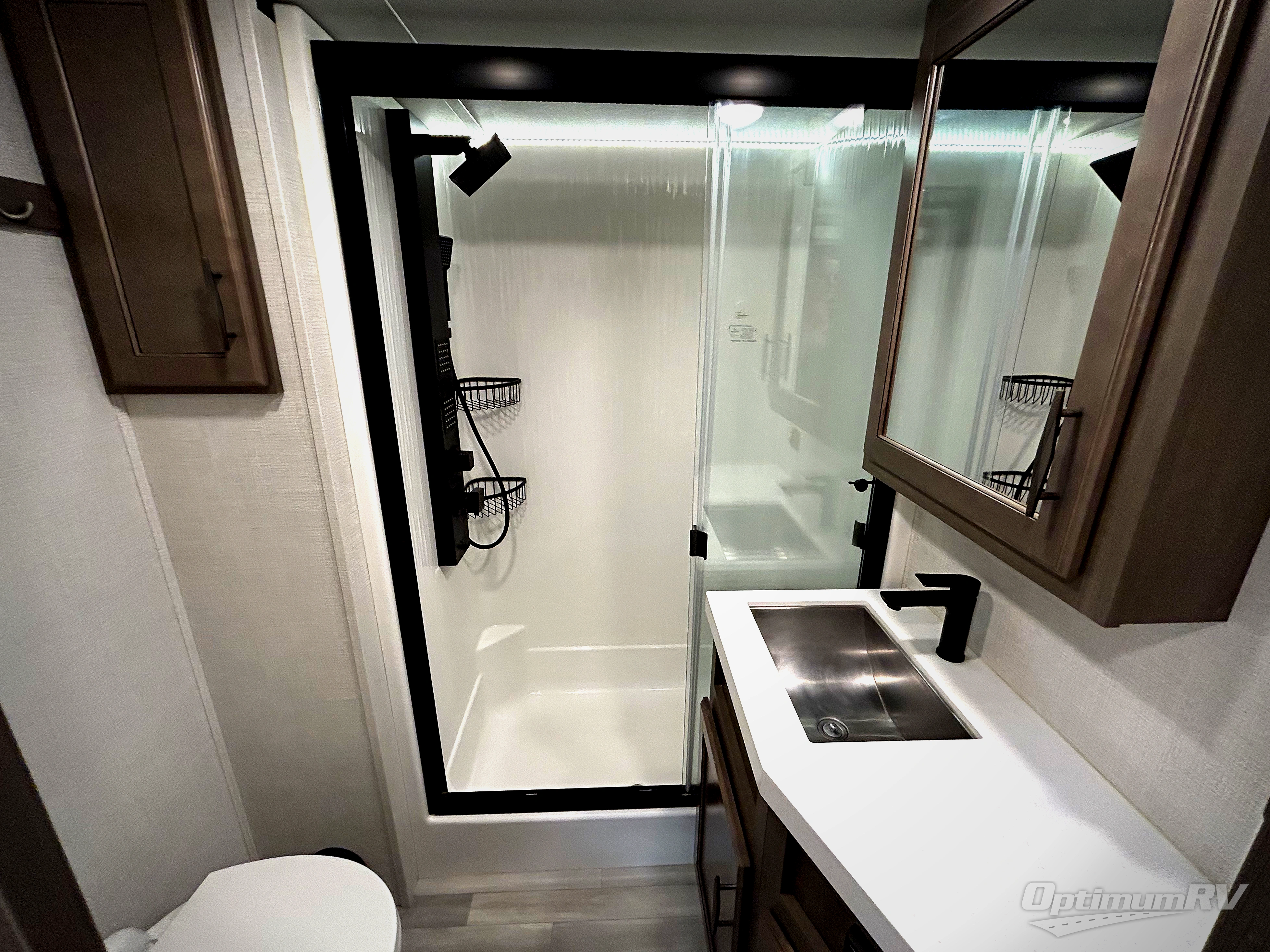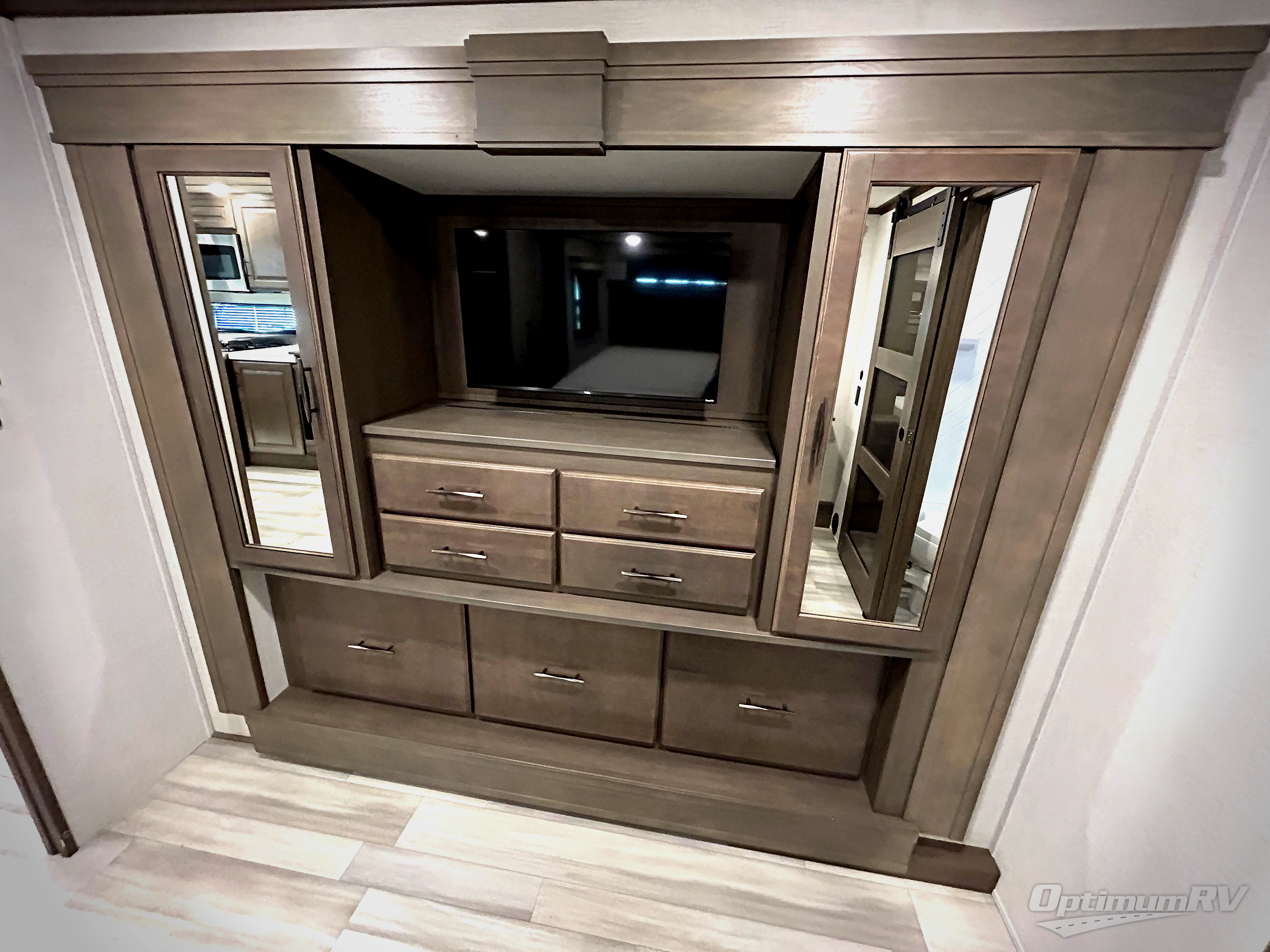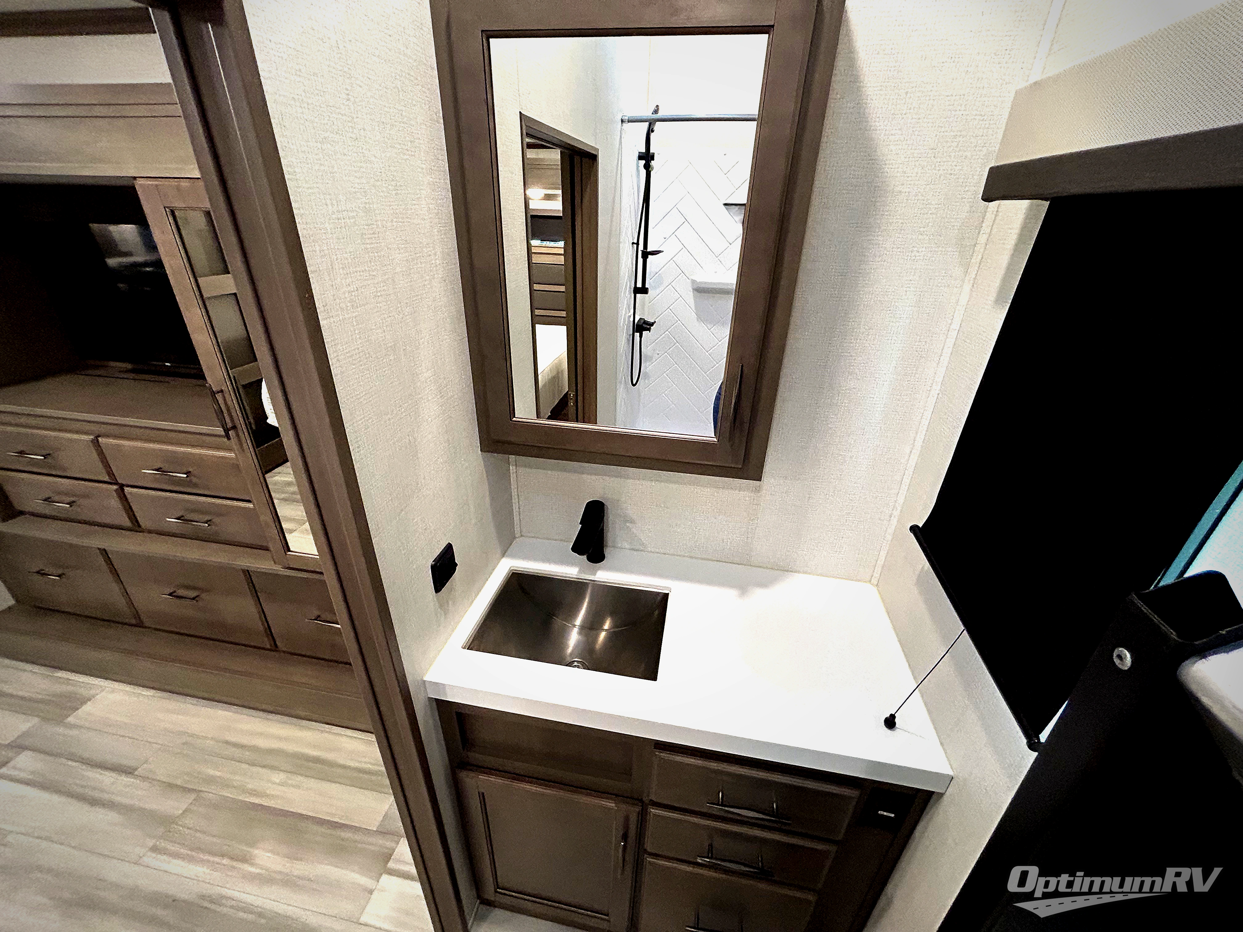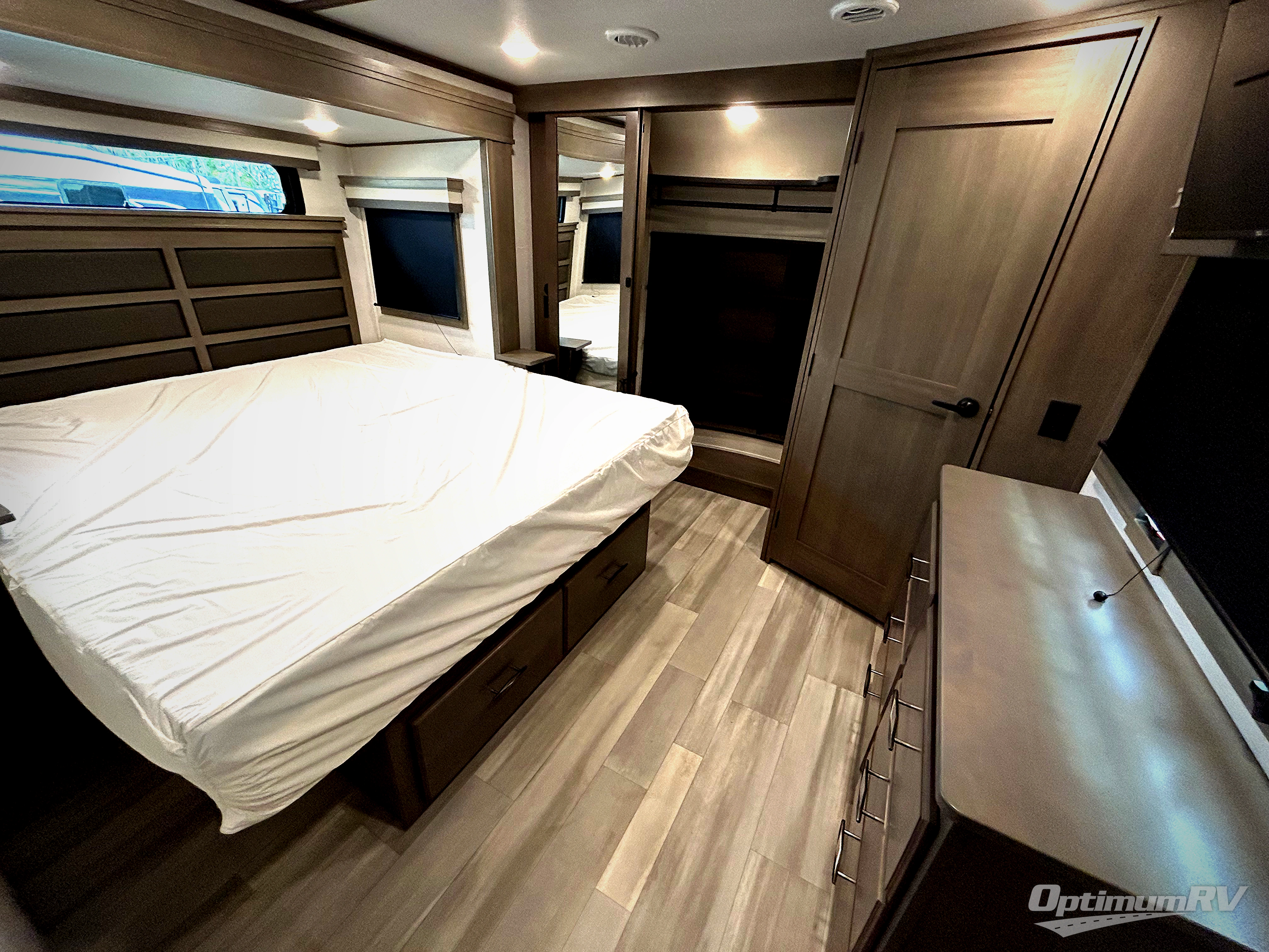 Each Solitude fifth wheel by Grand Design features a 101" wide-body construction, heavy duty 7,000 lb. axles, frameless tinted windows, and high-gloss gel coat sidewalls. You can camp year around thanks to the Weather-Tek Package that includes a 35K BTU high-capacity furnace, an all-in-one enclosed and heated utility center, and a fully enclosed underbelly with heated tanks and storage. Inside, you'll love the premium roller shades, hardwood cabinet doors, solid surface countertops and sinks, plus residential finishes throughout to make you truly feel at home. Each model also includes a MORryde CRE3000 suspension system, self adjusting brakes, and a MORryde pin box that will provide smooth towing from home to campground. Affordable luxury is possible with the Solitude fifth wheels; choose yours today!