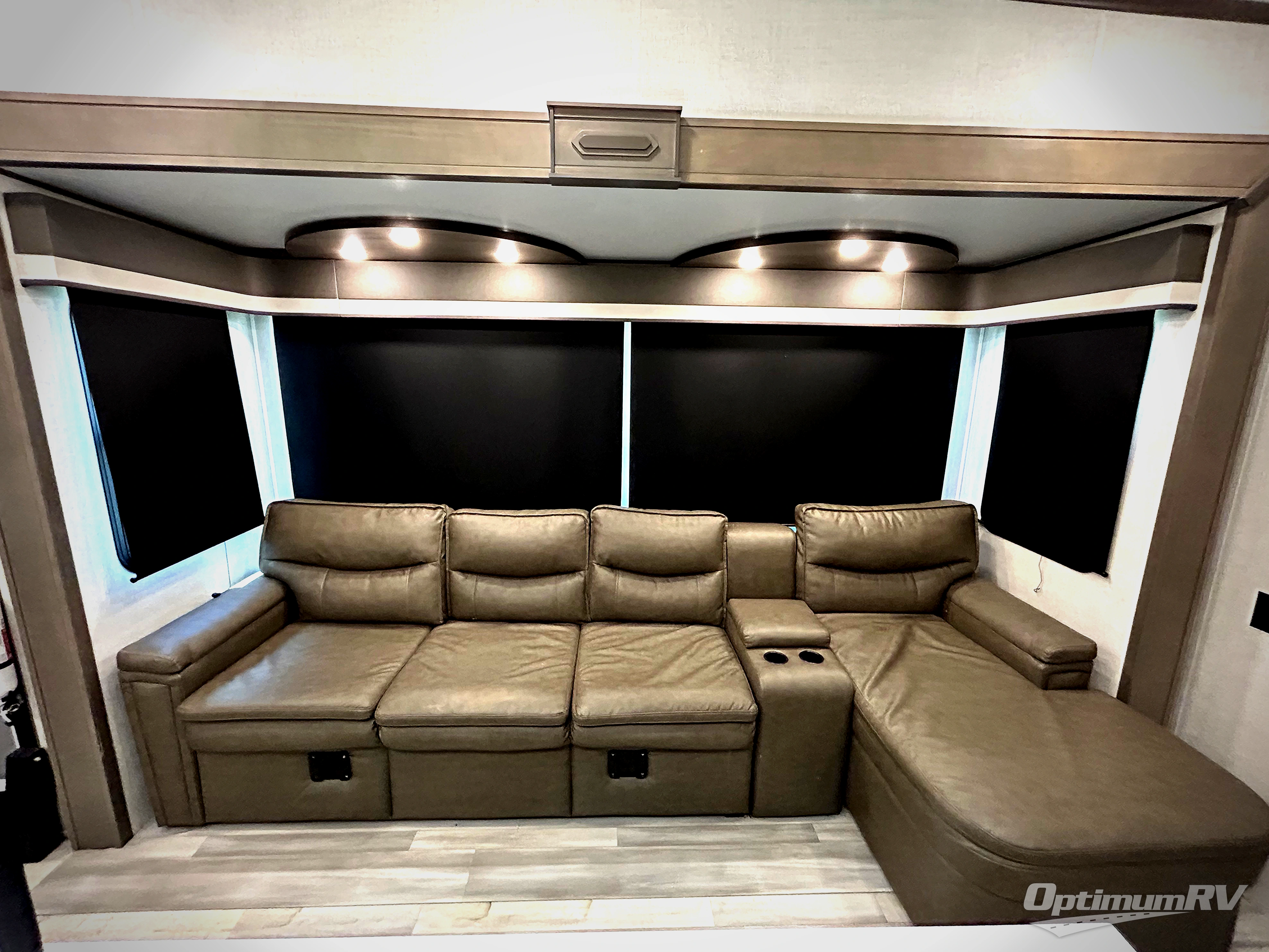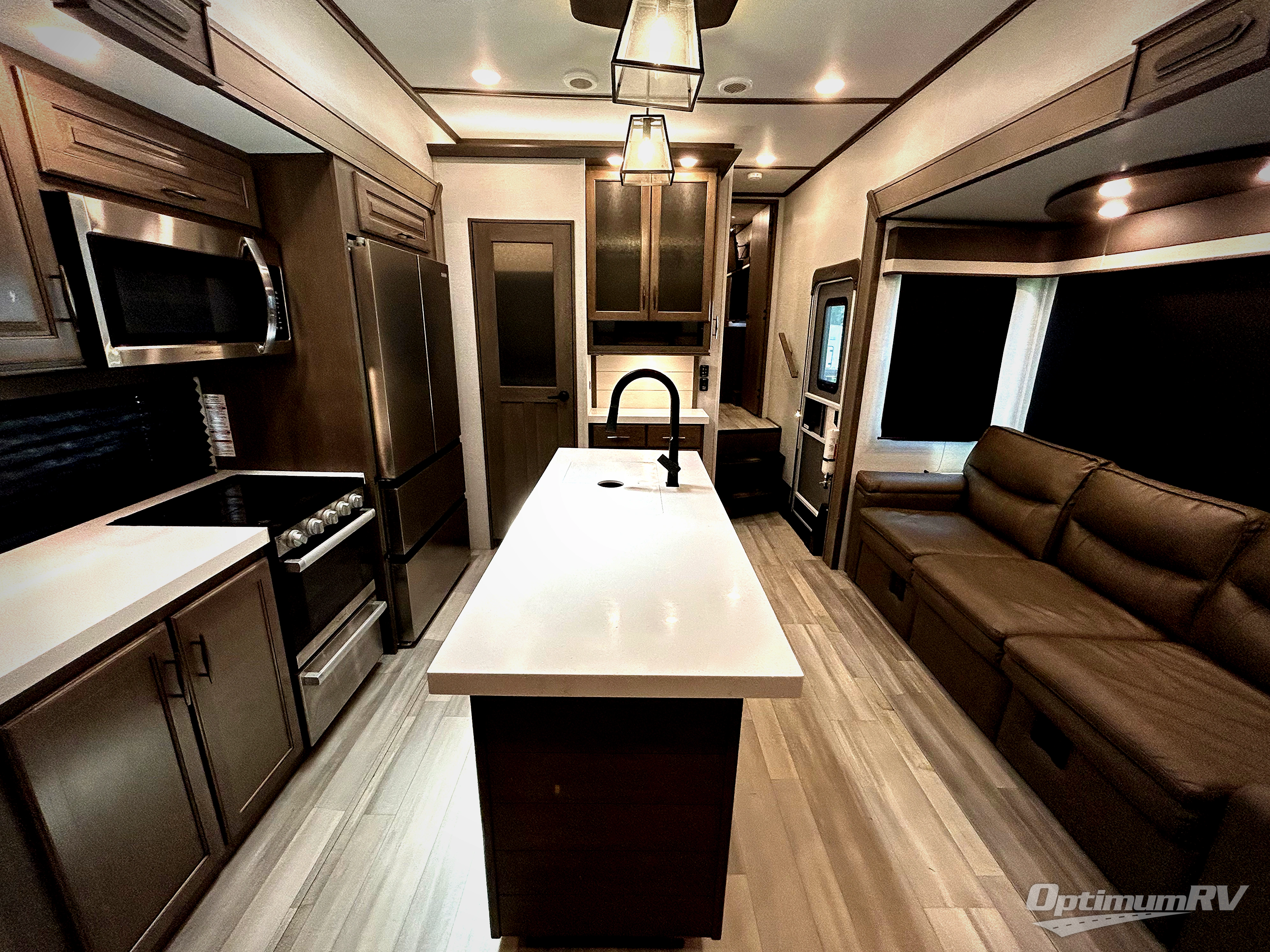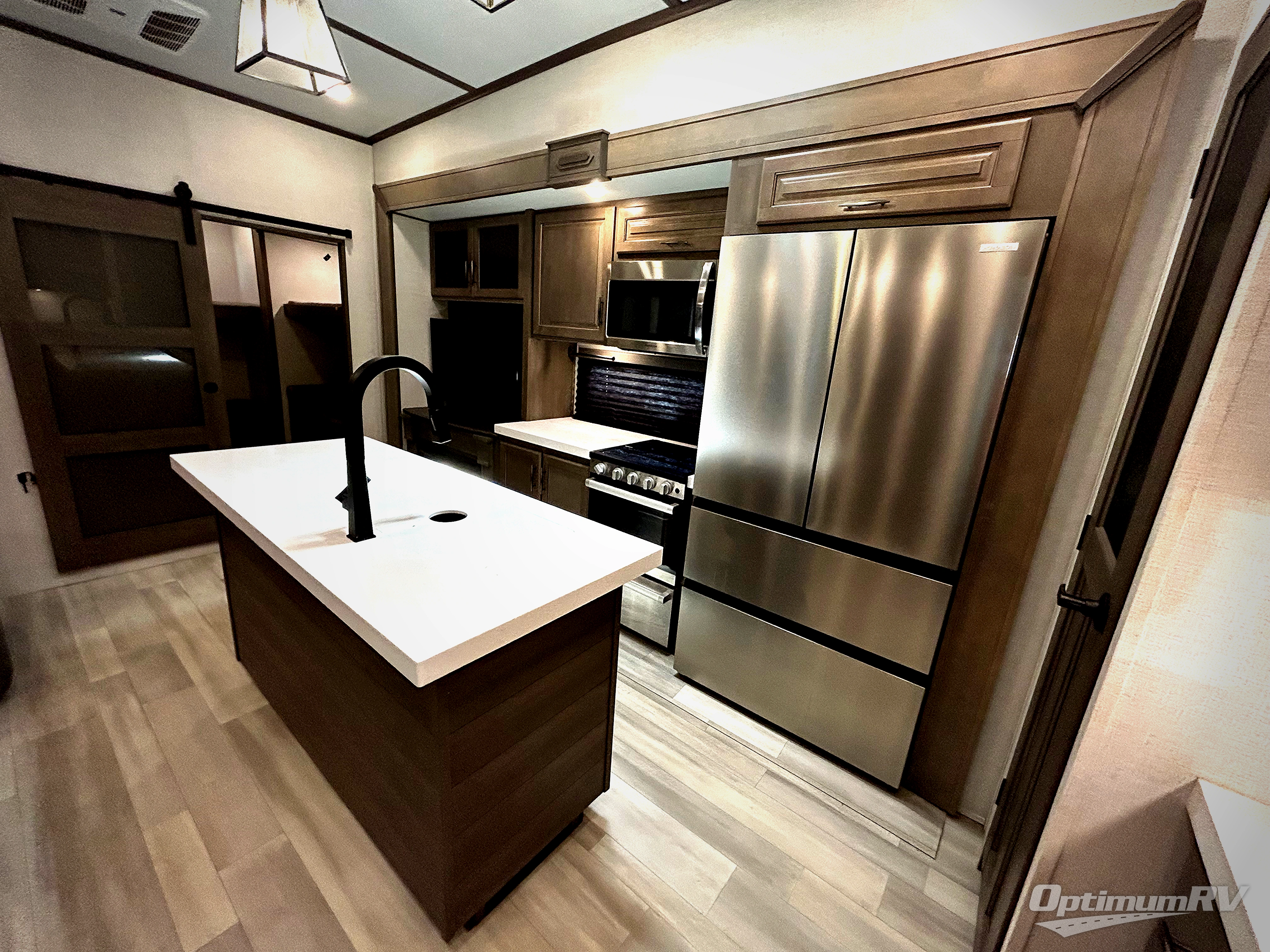 With any Solitude S-Class fifth wheel by Grand Design you will appreciate the Max Built Construction Package that features a 101" wide-body, gel coat exterior sidewalls, heavy-duty 7,000 lb. axles, plus many more durable construction materials. The self-adjusting brakes and the MORryde CRE3000 suspension system will provide a smooth towing experience, and each model includes heavy duty 17.5" H-rated tires with NitroFill. Some of the features you are sure to love are included in the Residential Living Package, like the solid surface countertops and sink covers, the hardwood cabinet doors, the night stands with USB ports, and the Rockford Fosgate stereo entertainment system with HDMI and App controls. These fifth wheels are extended-stay approved thanks to the Weather-Tek Package with a 35,000 BTU high-capacity furnace, the Stealth A/C system, and many high-end residential finishes to make you feel like you taken home with you!