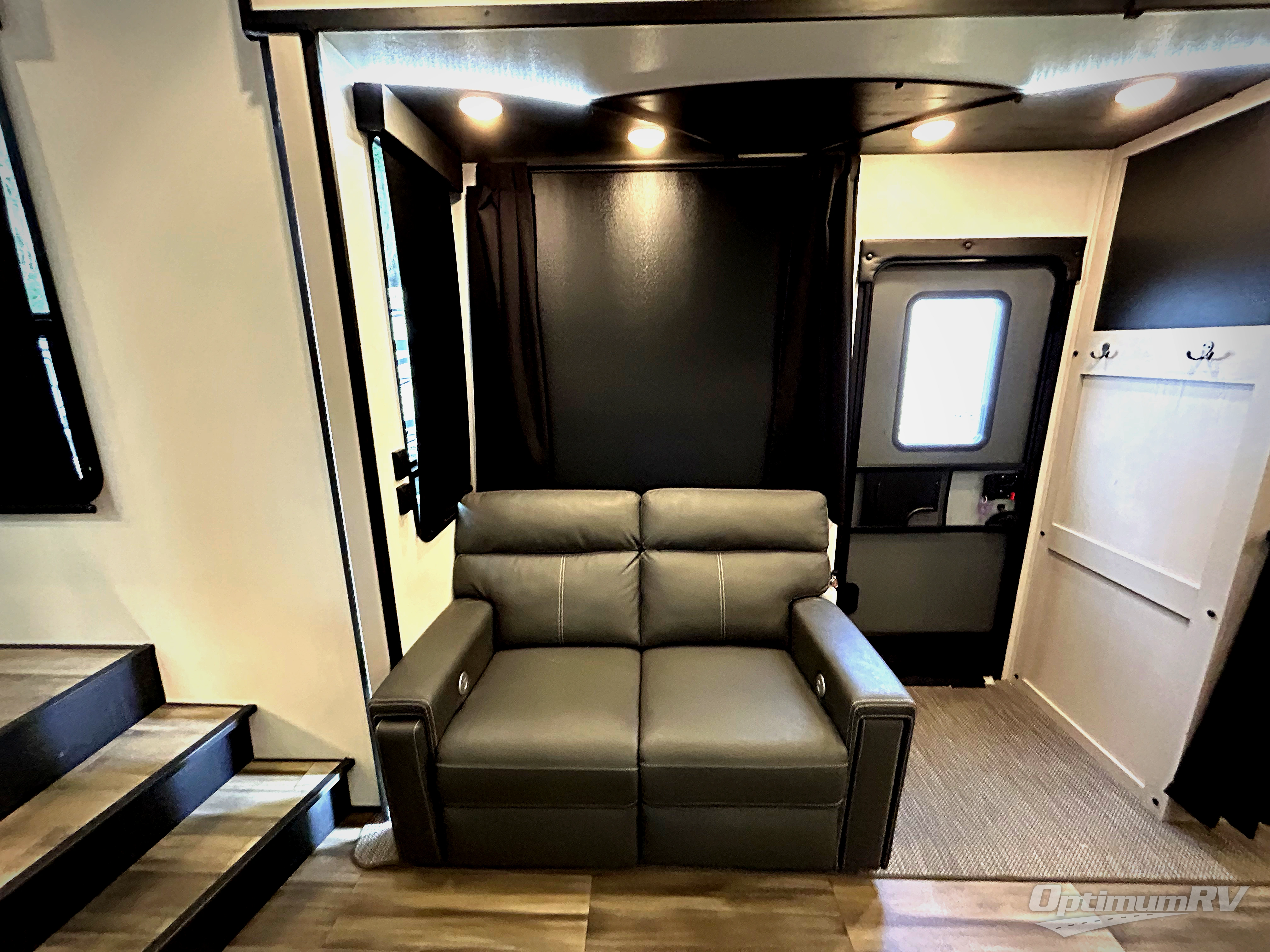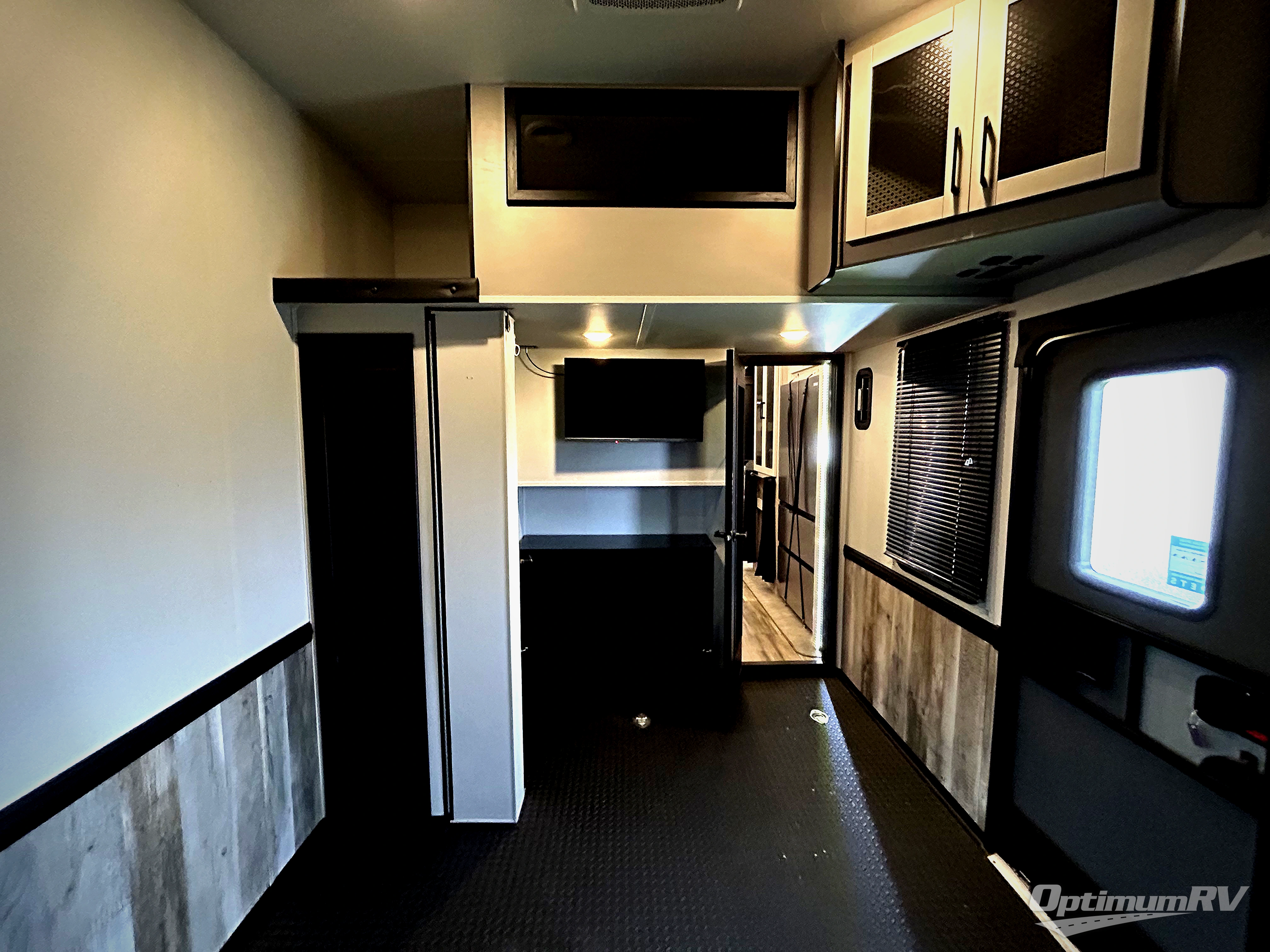 Everyone will have a comfortable place to sit in this toy hauler with the dual opposing theater seating slides and the third theater seating across from the 50" LCD HDTV! The 3,000 lb. weather resistant 8' ramp door makes it easy to load your toys into the 13' garage, and your guest can make this their bedroom at night. Here, you'll find an electric queen bed with a split bench seat/bed underneath, a half bath, plus a loft. There is even washer and dryer prep for wash day! The kitchen includes plenty of countertop space to prepare your best home cooked meals, or you can head outside to cook on the outdoor Grill N Go three burner griddle combo!
