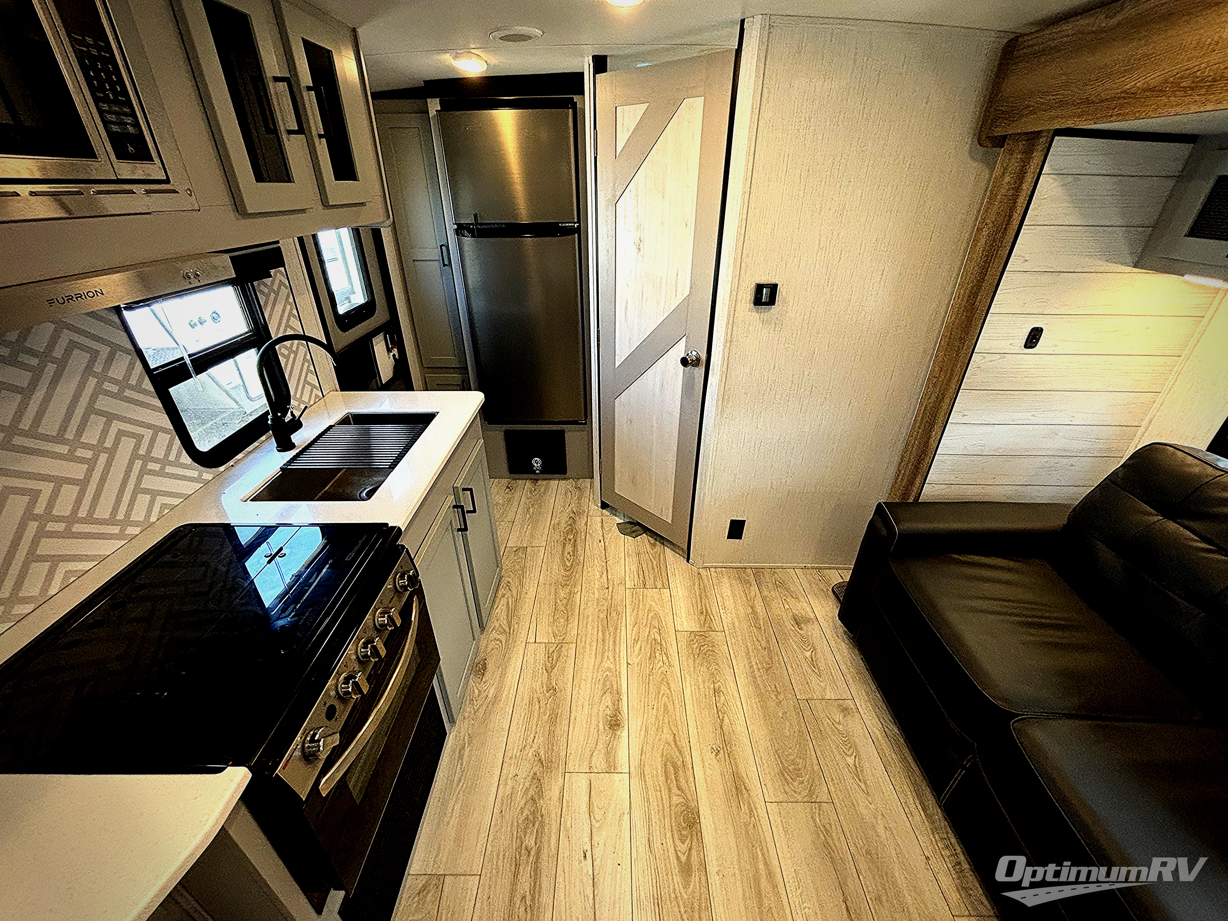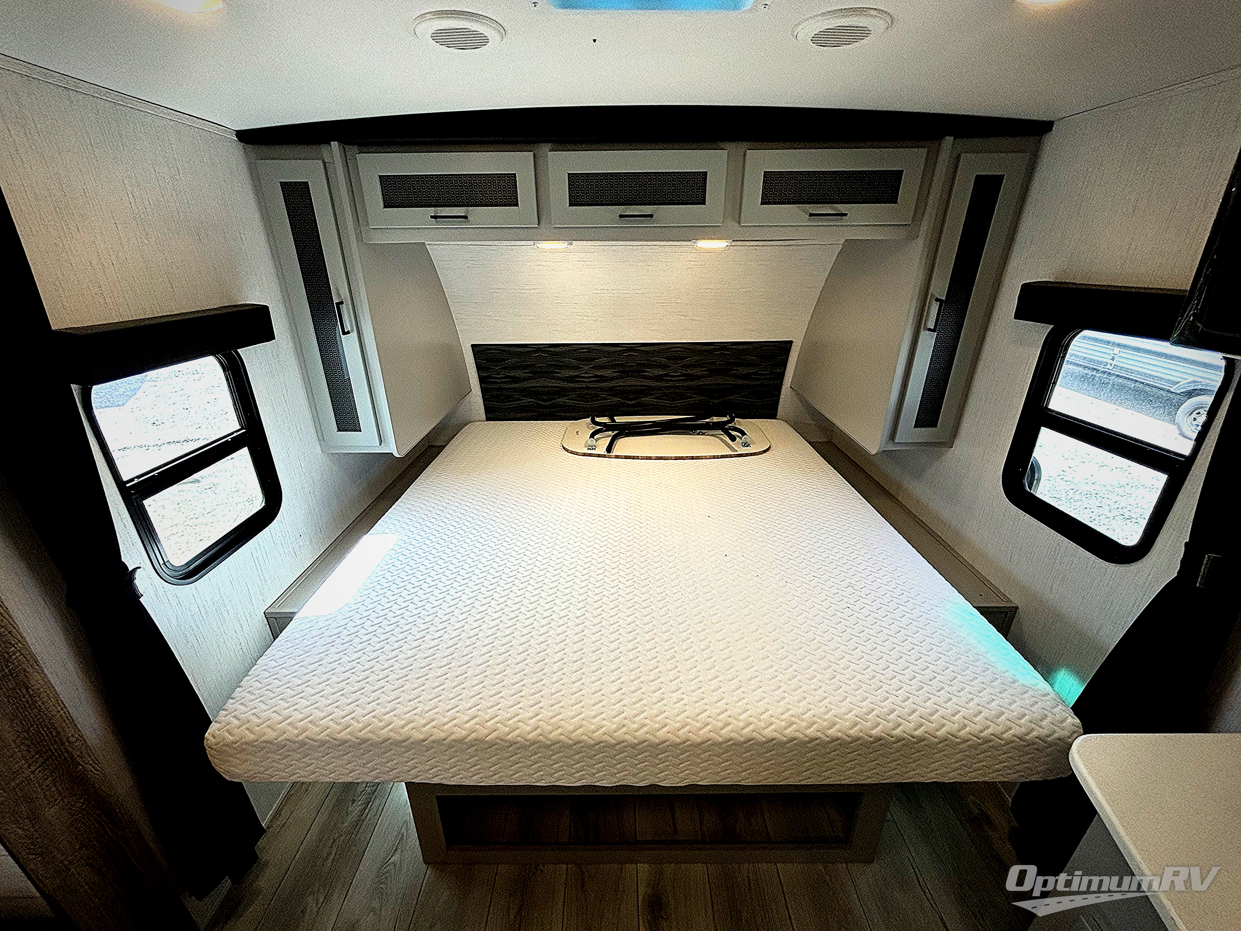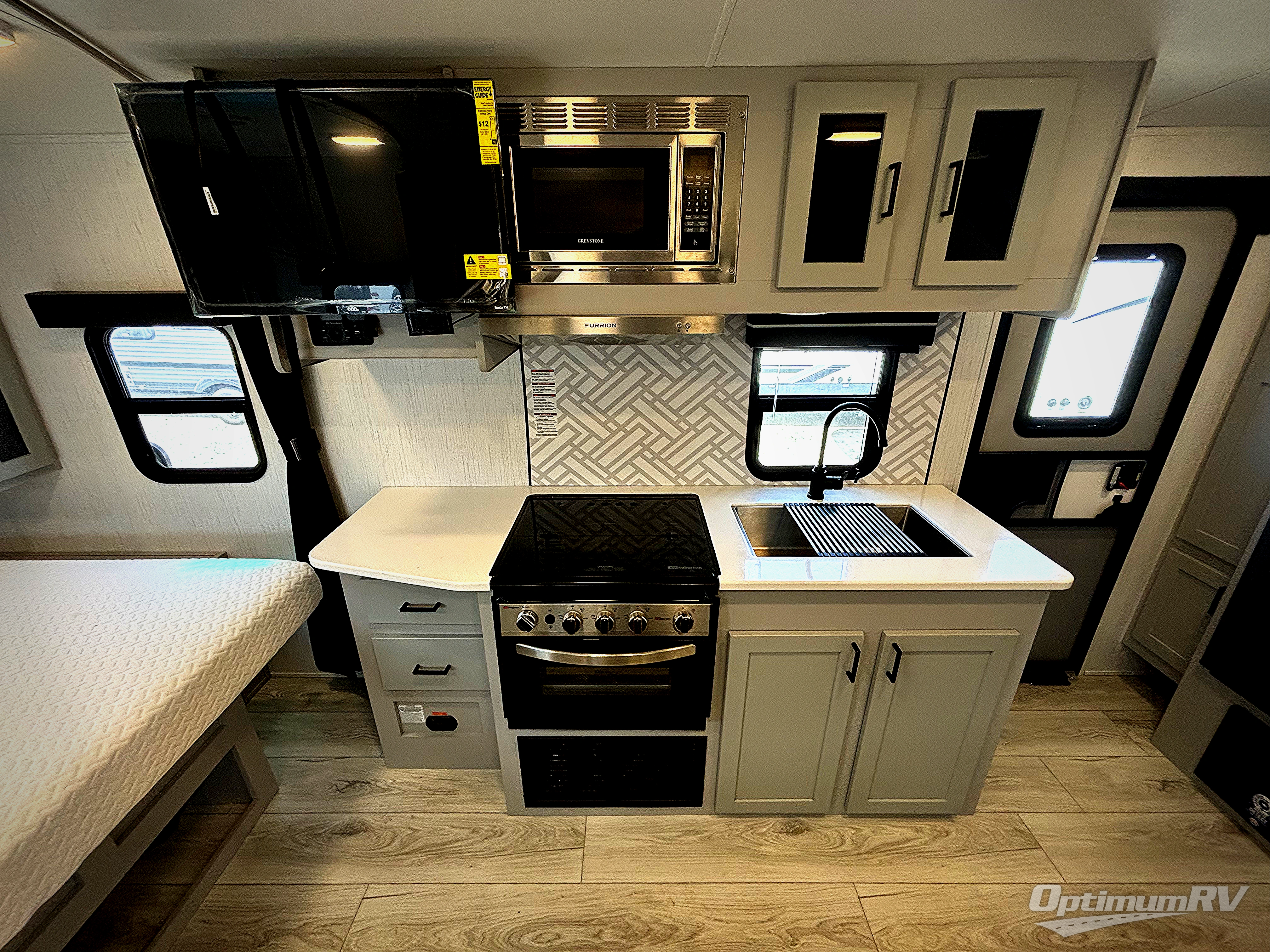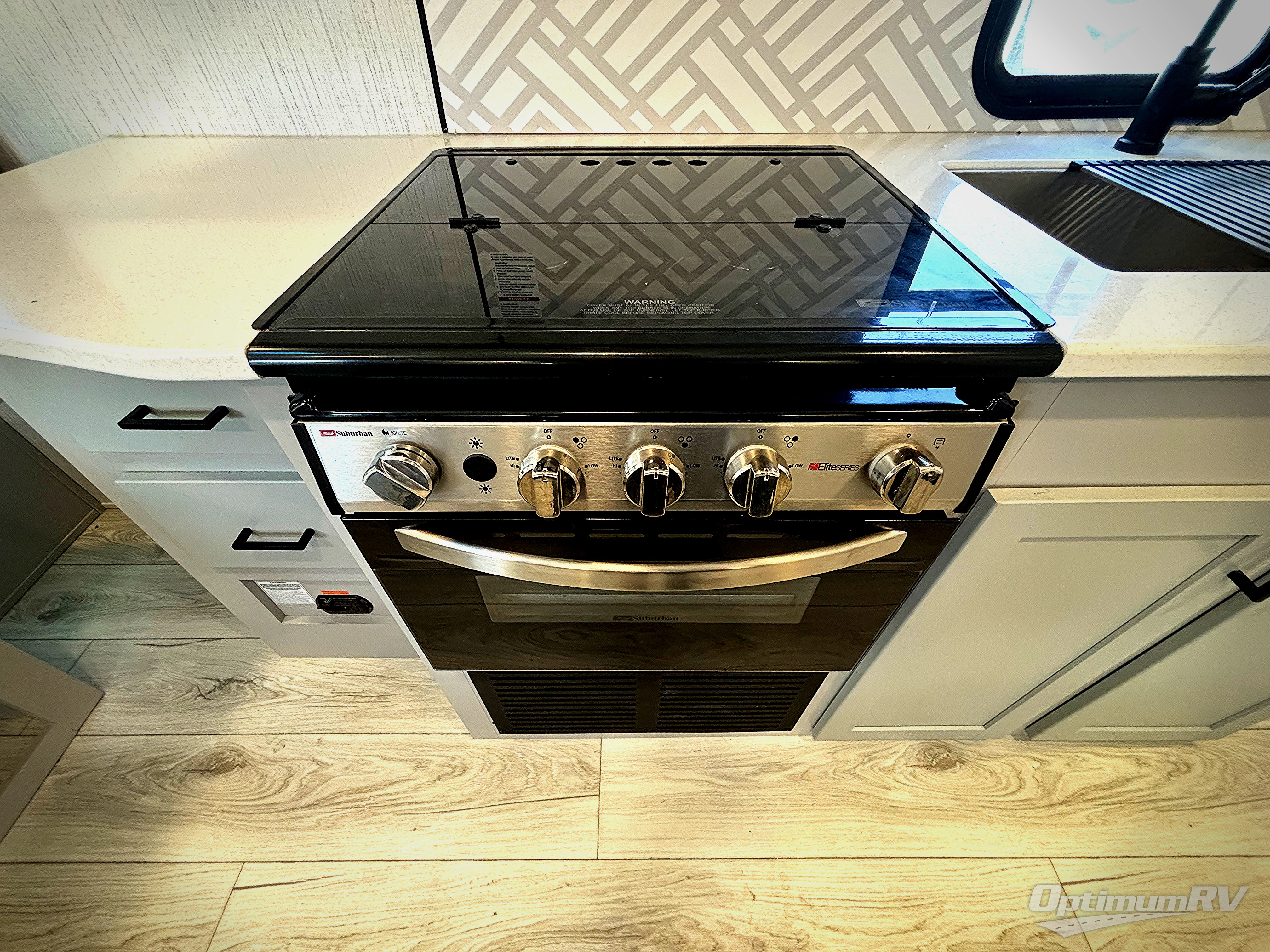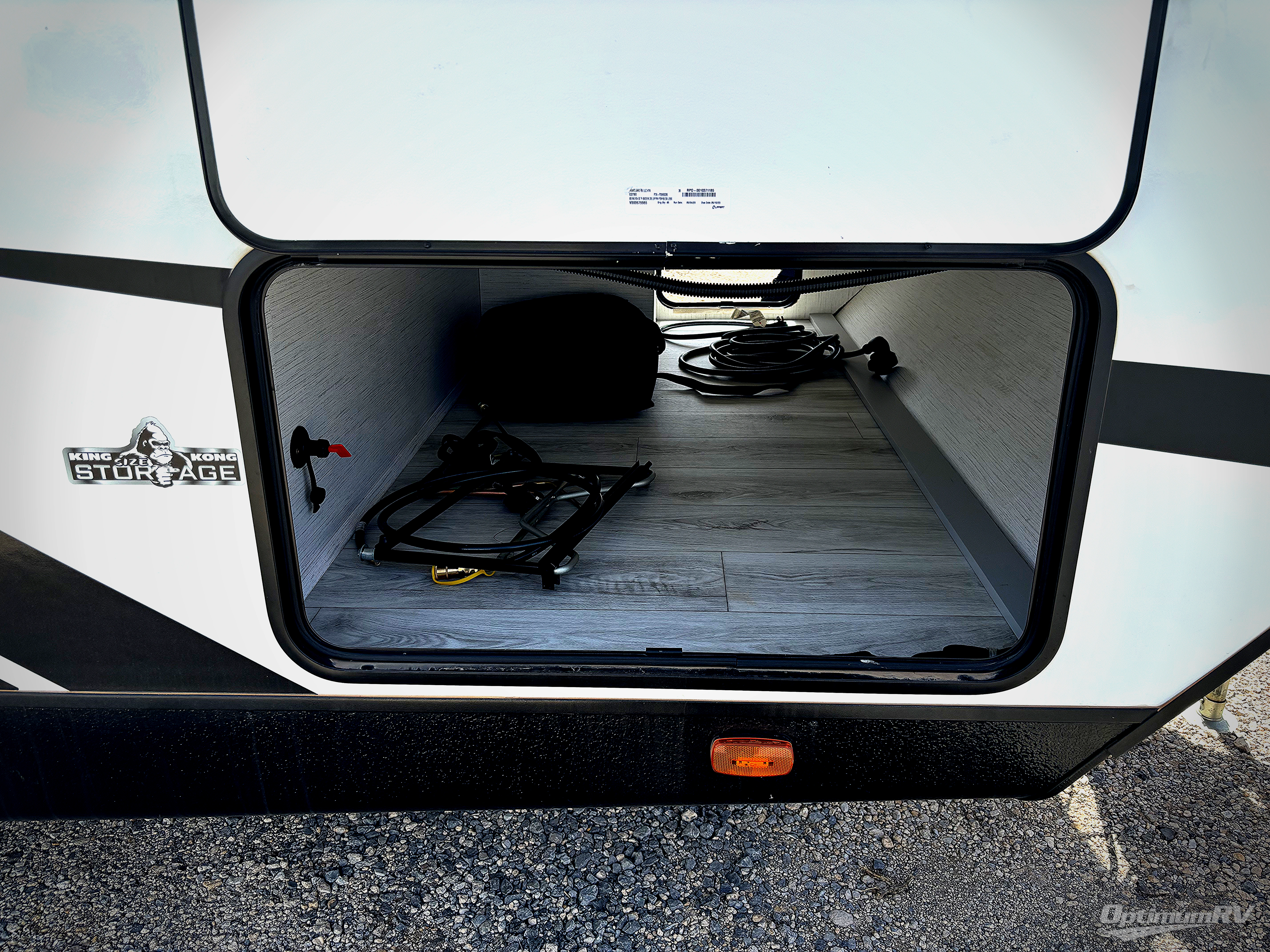This is the perfect couple's trailer for your weekend excursions. You will love having your own king bed up front that also includes a privacy curtain. The sofa with a stowaway table will provide a place to dine at each day, and an overnight guest can sleep here as well. You'll find a three burner cooktop and a microwave oven in the kitchen, as well as a stainless steel sink and a pantry for snacks. After dinner, head outdoors to relax under the 12' power awning LED lights before turning in for the night.