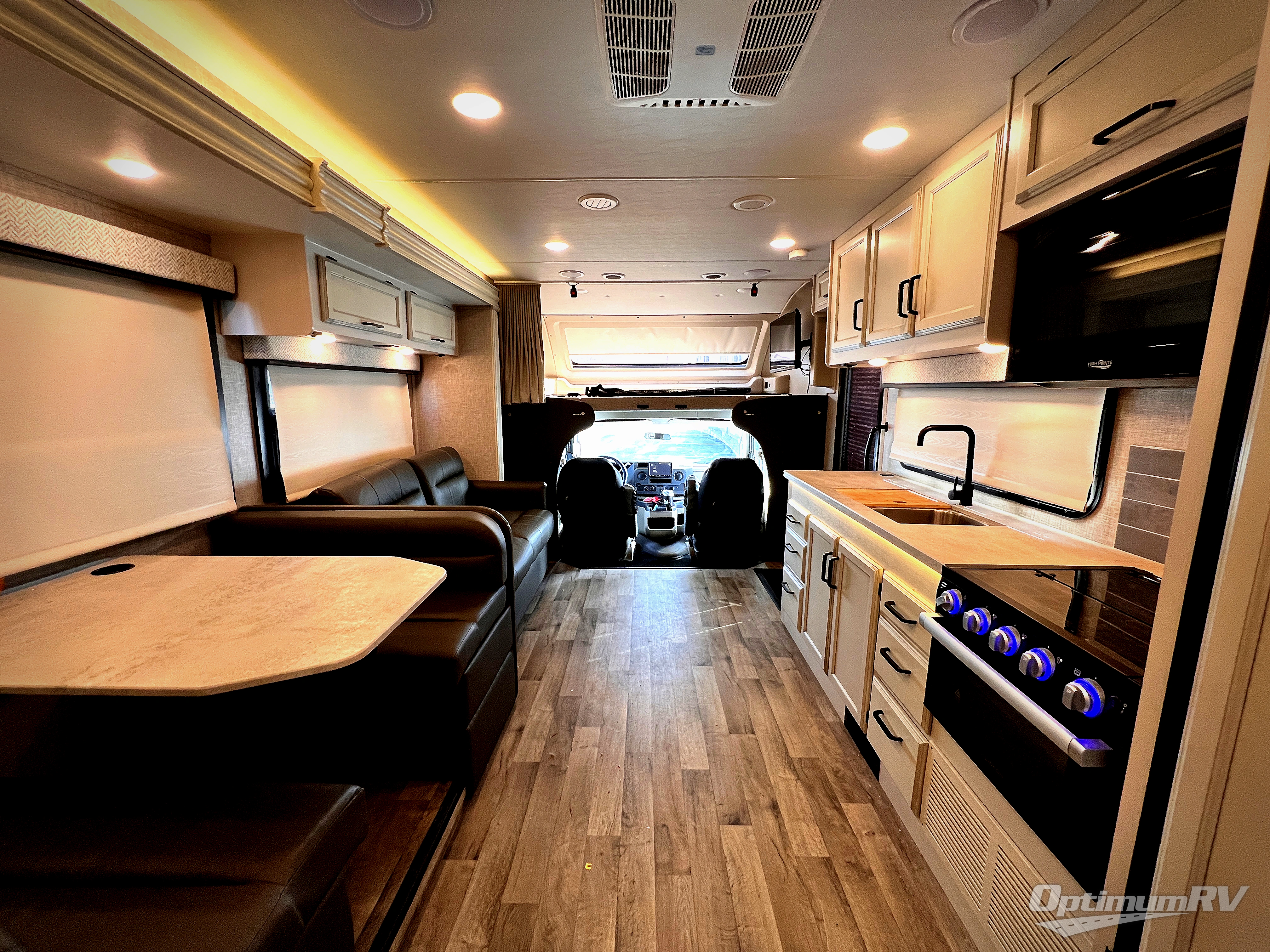 With any Greyhawk Class C gas motorhome by Jayco you will experience smooth sailing thanks to the JRIDE PLUS that comes with Koni shock absorbers, a computer-balanced driveshaft, Hellwig helper springs, and more. The Ford E-450 chassis with a 7.3L V8 325 HP engine will power your excursions, and you'll appreciate the added safety features for your peace of mind. Each model features a Sony infotainment center with Apple CarPlay and Android Auto, backup and side-view cameras, and a tire pressure monitor system the driver is sure to appreciate. Durable construction begins with Stronghold VBL roof, floor and sidewalls, bead-foam insulation, and a one-piece seamless fiberglass front cap. Head inside to find blackout night roller shades, LED-lit pressed countertops, an 84" interior ceiling height, and hardwood cabinet doors and drawers.