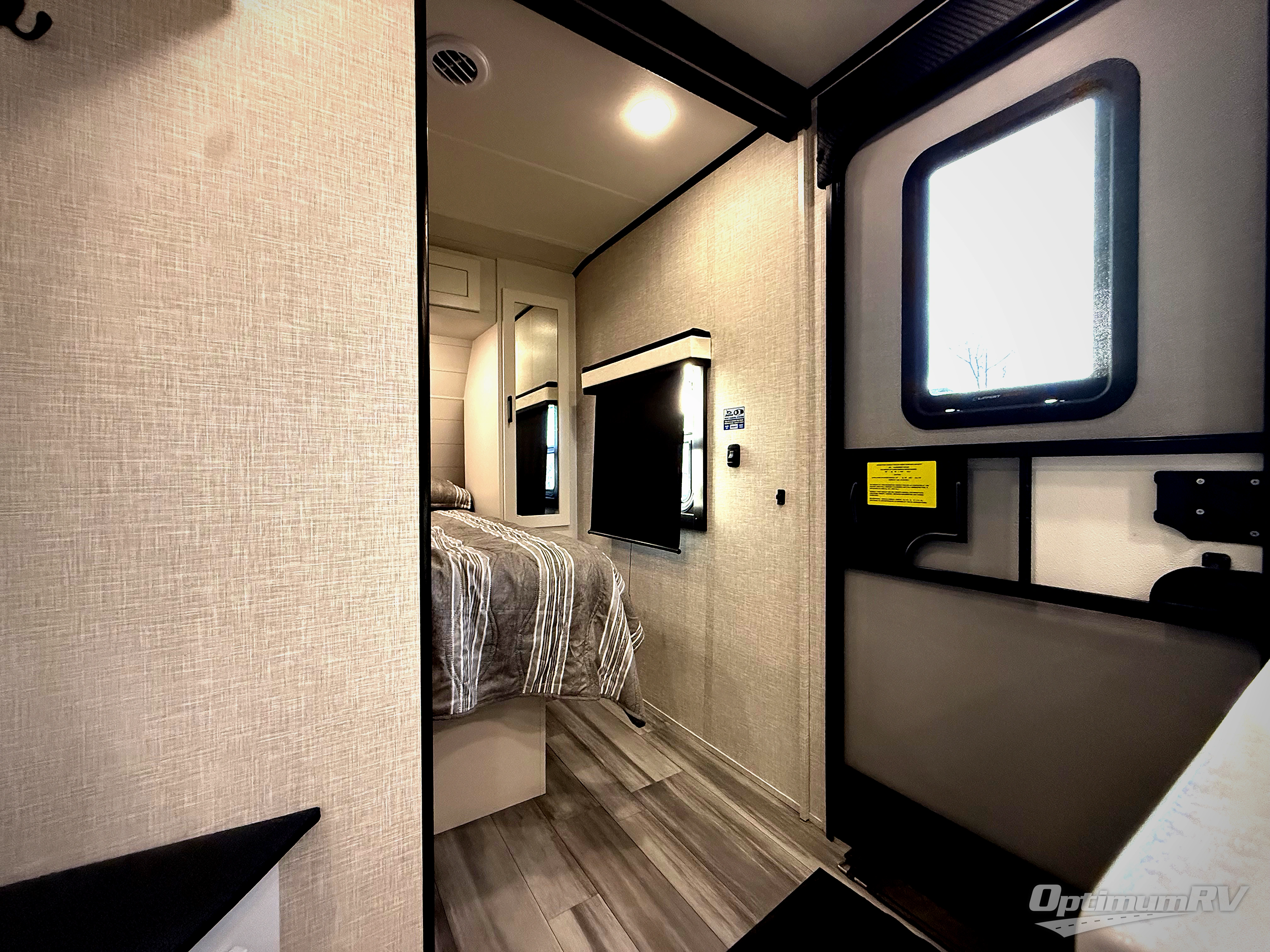 Get out and experience new campgrounds with this spacious trailer that offers a slide out jack knife sofa and booth dinette giving you dining, relaxing and sleeping space as well as more interior floor space to move from the front to the back. And having the second exterior entry/exit to the full bathroom is convenient for all. The cook will love the choice of making meals inside with full amenities or on the outside kitchen when relaxing under the 21' power awning with LED lights. And the front bedroom gives you a queen bed, dual wardrobes and windows for great views when inside.
