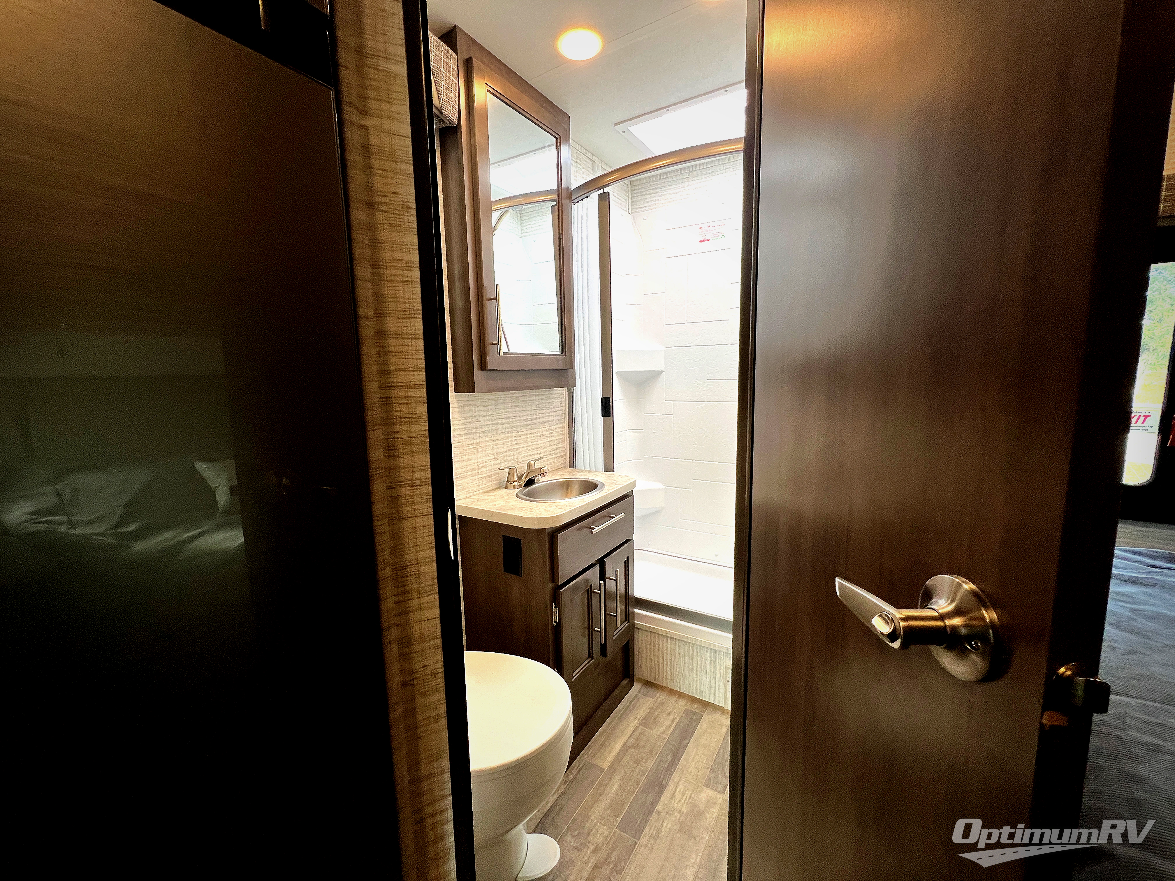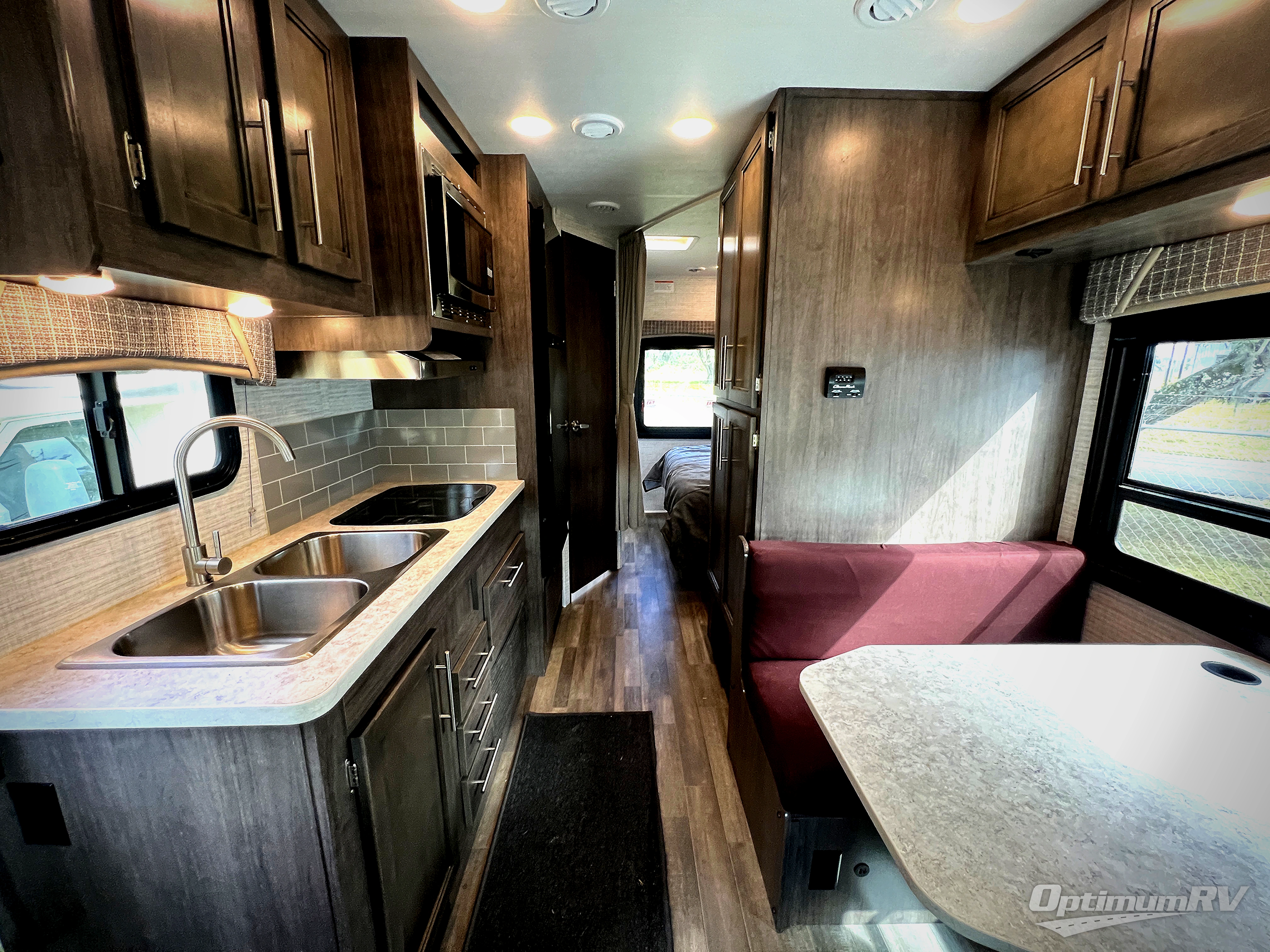 There's a comfortable place to sleep for everyone in this motorhome! From the corner 60" x 70" queen bed that slides out to the bunk over cab, and even the 42" x 70" booth dinette once converted. You can store your favorite snacks and hang up your clothes in the wardrobe/pantry. The chef can prepare delicious meals with the two burner cooktop and if there happens to be any leftovers then they can be stored in the 10 cu. ft. 12V refrigerator. The rear corner bathroom has a 24" x 36" shower that you are sure to enjoy after a long day of traveling!